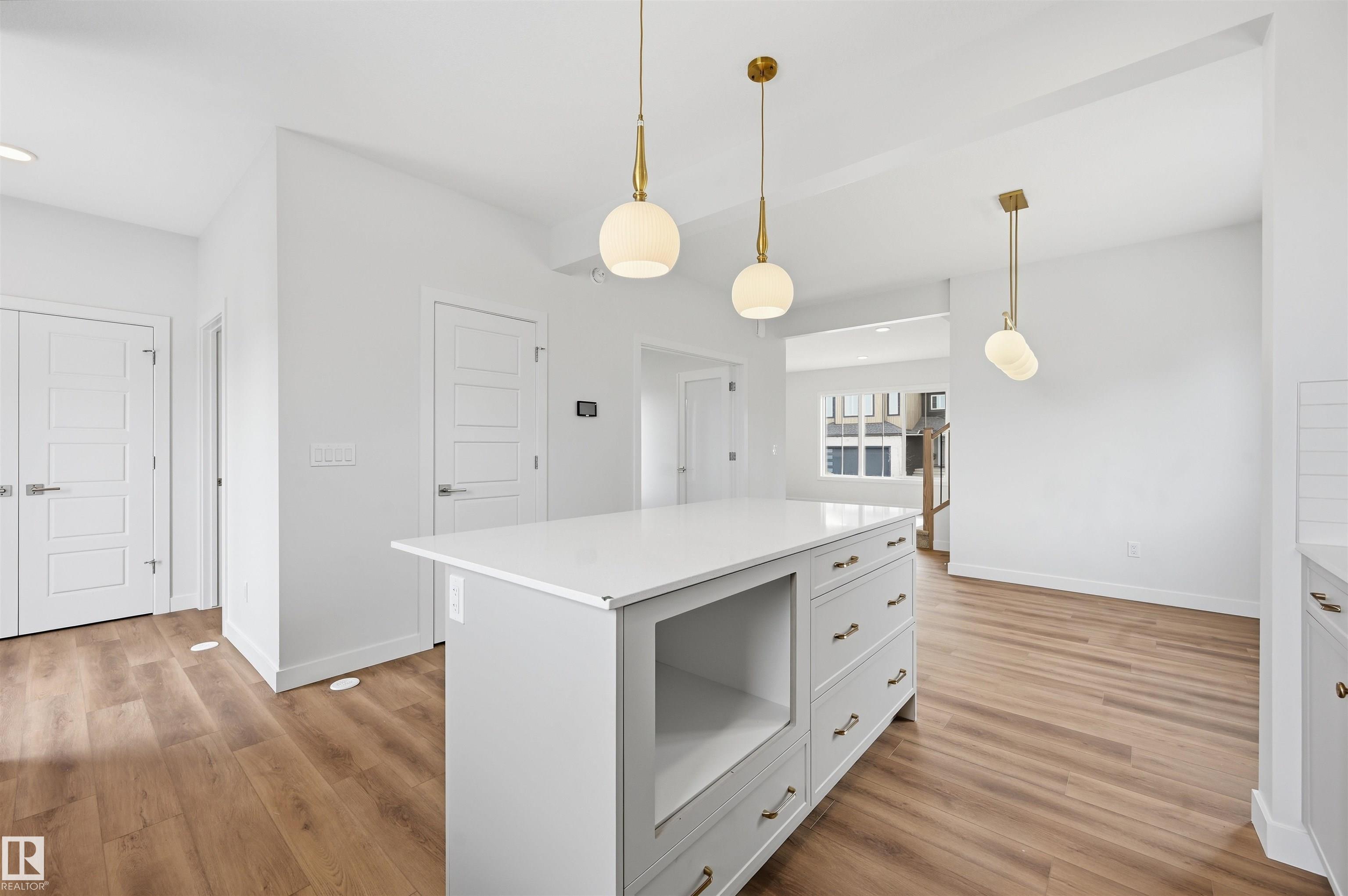 Welcome to the Canyon model by Landmark Homes. This well-appointed 1836sf two-storey home which offers thoughtful upgrades throughout, including a side entry, 9' main floor ceilings, 36" upper cabinetry, quartz countertops, hi-velocity furnace, Navien tankless hot water system, 3-stage medical-grade indoor air purification system, and Low-E argon-filled triple-pane windows. Appliances, full fencing, landscaping, and a detached garage are all included. The open-concept main floor features modern neutral tones, abundant natural light, a spacious great room with fireplace feature, den/flex room, oversized nook, and an L-shaped kitchen with prep island. Upstairs includes a bonus room, 3 bedrooms, 2 full bathrooms, and convenient laundry. Designer touches throughout & immediate possession available. Located in Griesbach, an award winning & truly unique community with over 23% dedicated to parks, lakes, greenspaces/walking trails, recreational fields, community garden and many more lifestyle amenities.