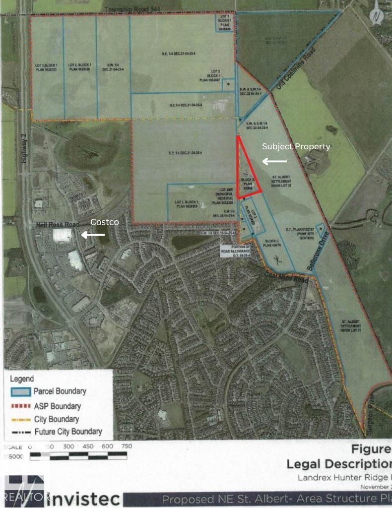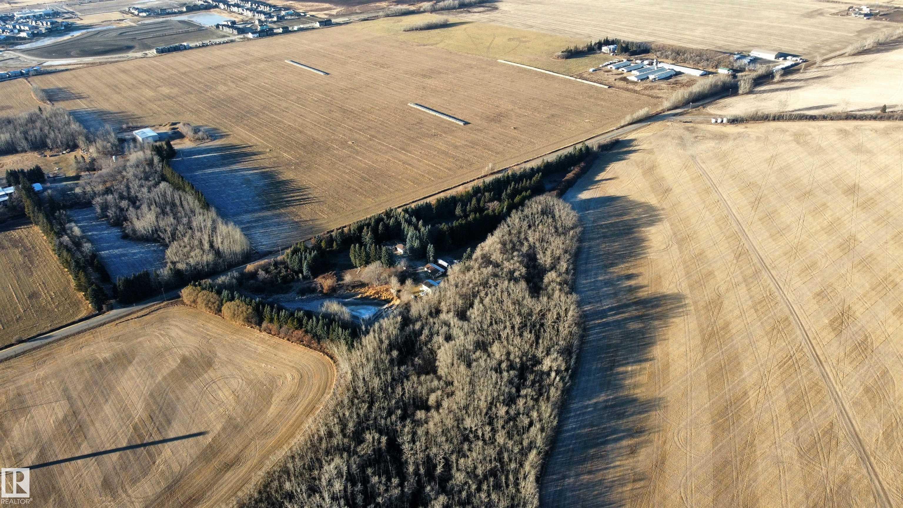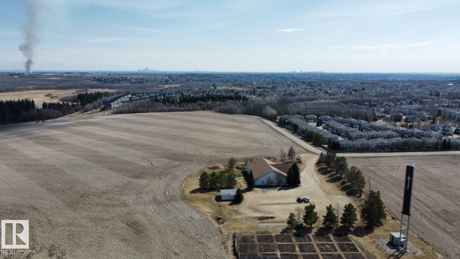 Recently Annexed Acreage in NE St. Albert This heavily treed 9.21-acre property offers a rare chance to enjoy country living right within city limits. Located in northeast St. Albert, just 1 km east of Costco (as the crow flies), the land combines privacy, space, and convenience.The property includes an older home, multiple outbuildings, and two large shops measuring 24 x 46 and 26 x 60. Full services are already in place, along with a spacious cleared building site surrounded by mature trees, ideal for creating your dream home.Zoning allows for several discretionary uses, including a home-based business, making this a flexible option for both personal and investment use.There?s also an added bonus for investors: the property currently generates $2,500 per month in income.Situated across from Erin Ridge North and just one block from established development, this location offers strong future potential while still delivering a quiet, private setting