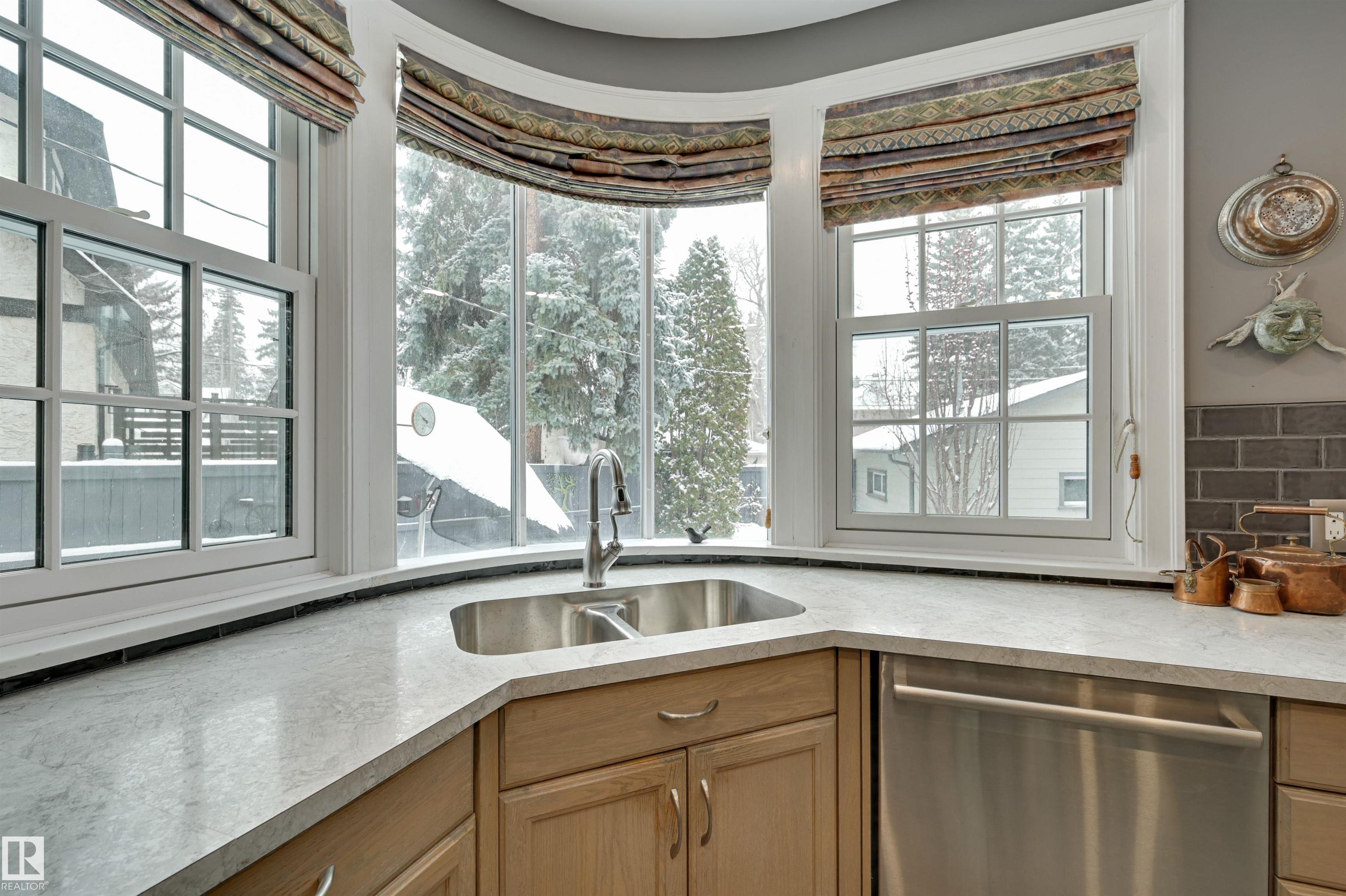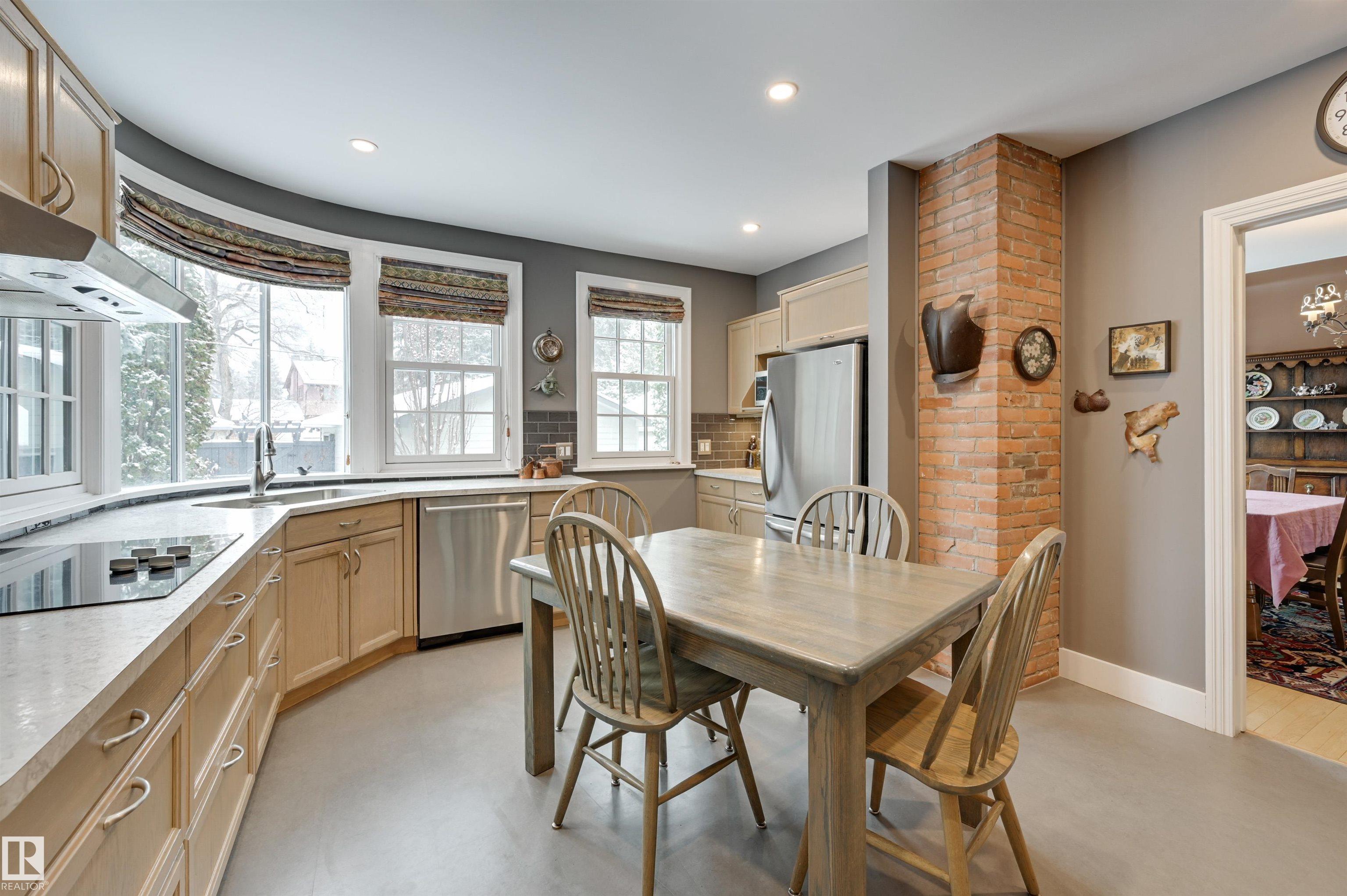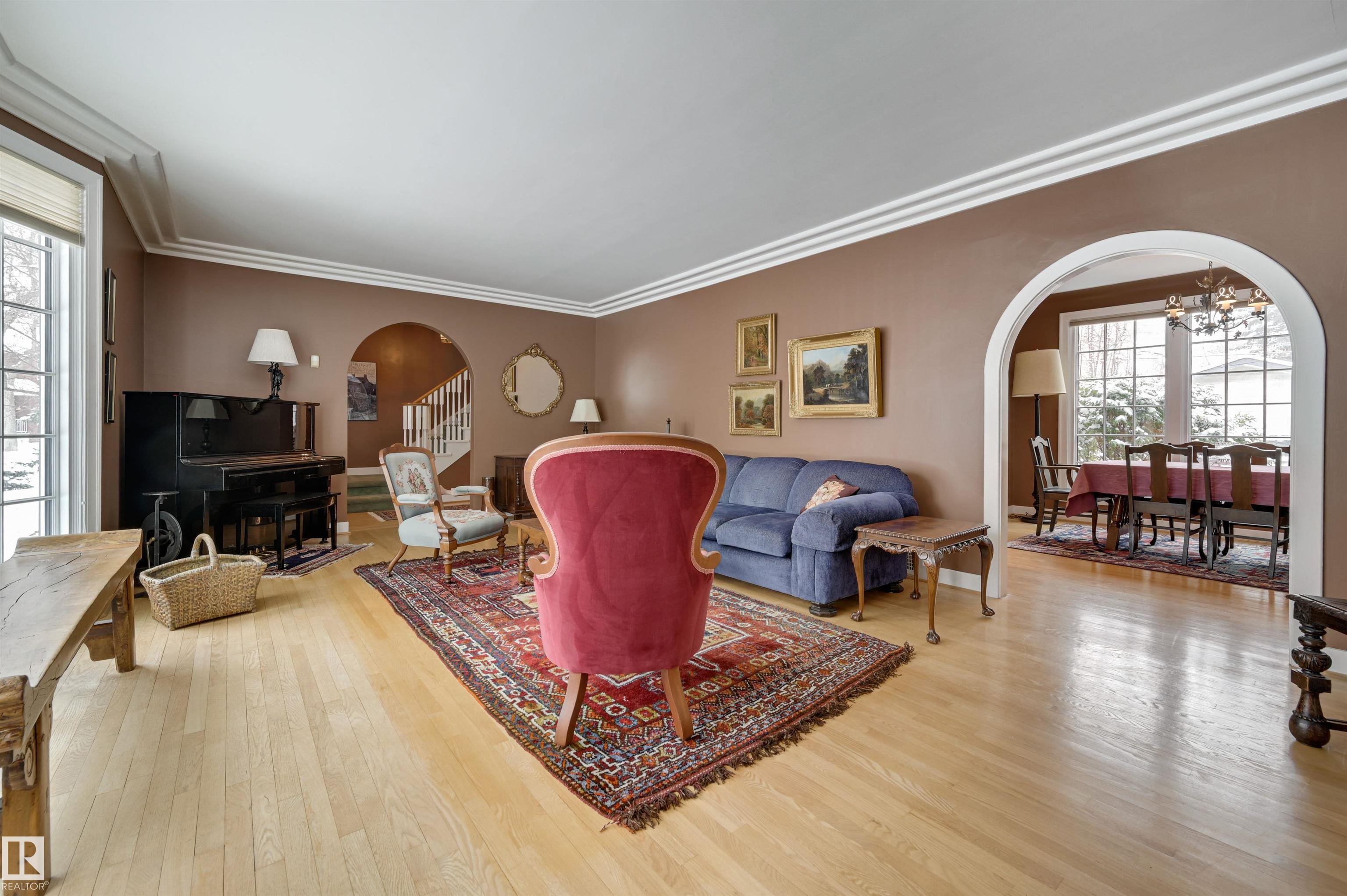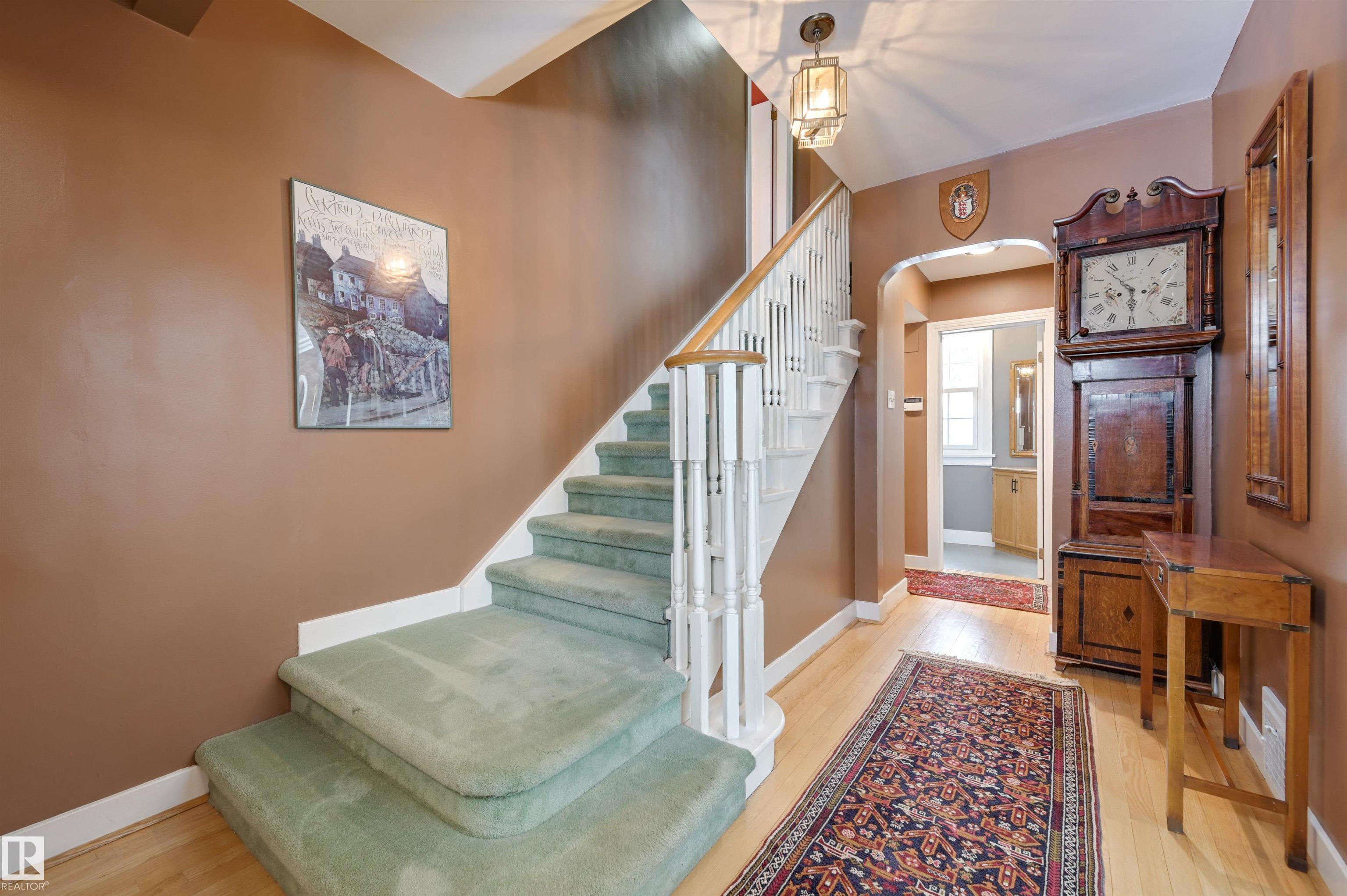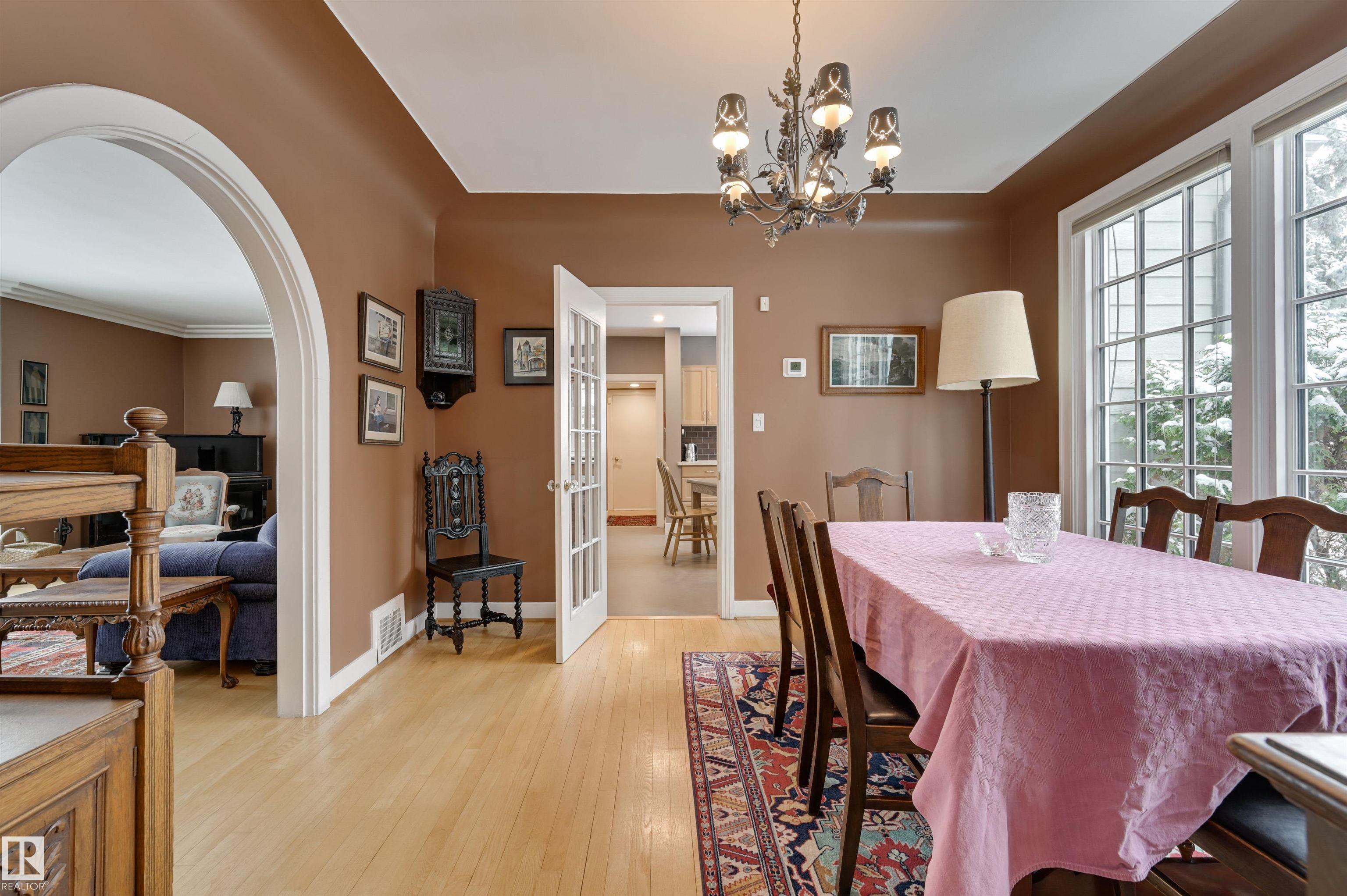 Rich in character and timeless charm, this breathtaking 2-storey on prestigious St. George?s Crescent in the heart of Glenora offers the perfect blend of elegance & warmth. Hardwood flooring spans the main floor, where the spacious living room is filled with natural light from the bay window and features crown moulding & a cozy gas fireplace, flowing into the formal dining room with elegant coved ceiling. The beautifully updated eat-in kitchen is full of personality with exposed brick, stainless steel appliances & tiled backsplash. A charming den with built-in bookcase creates the perfect office or library. Upstairs, the dreamy primary retreat features hardwood flooring, a walk-in closet and private ensuite with large soaker tub. Three additional bedrooms, a 3 pc bath & hobby room complete the upper level. The basement offers a large family room, 5th bedroom & 3 pc bath. Enjoy the private fenced yard with patio plus a double detached garage. Steps to the River Valley and close to schools, shops & transit.