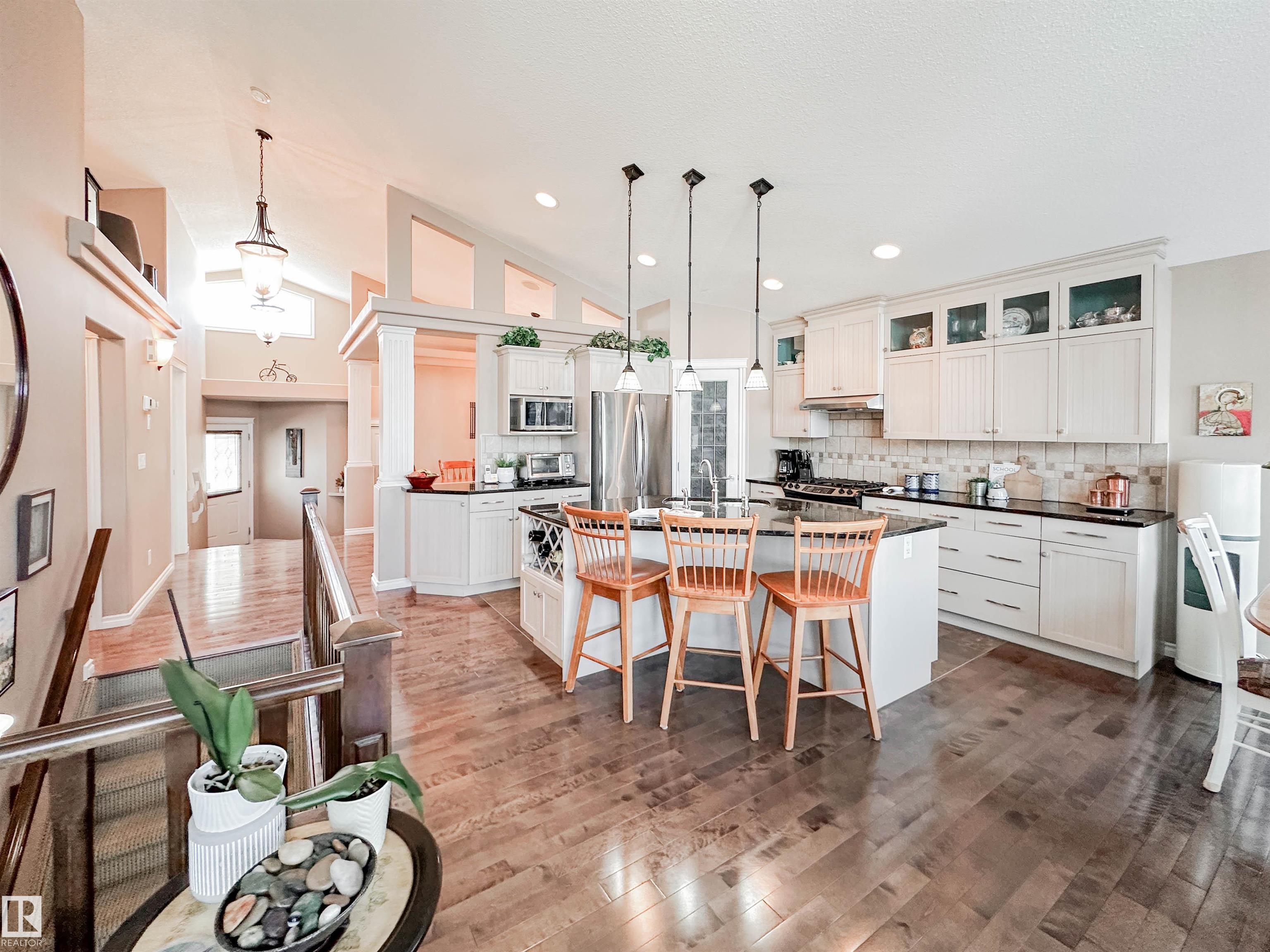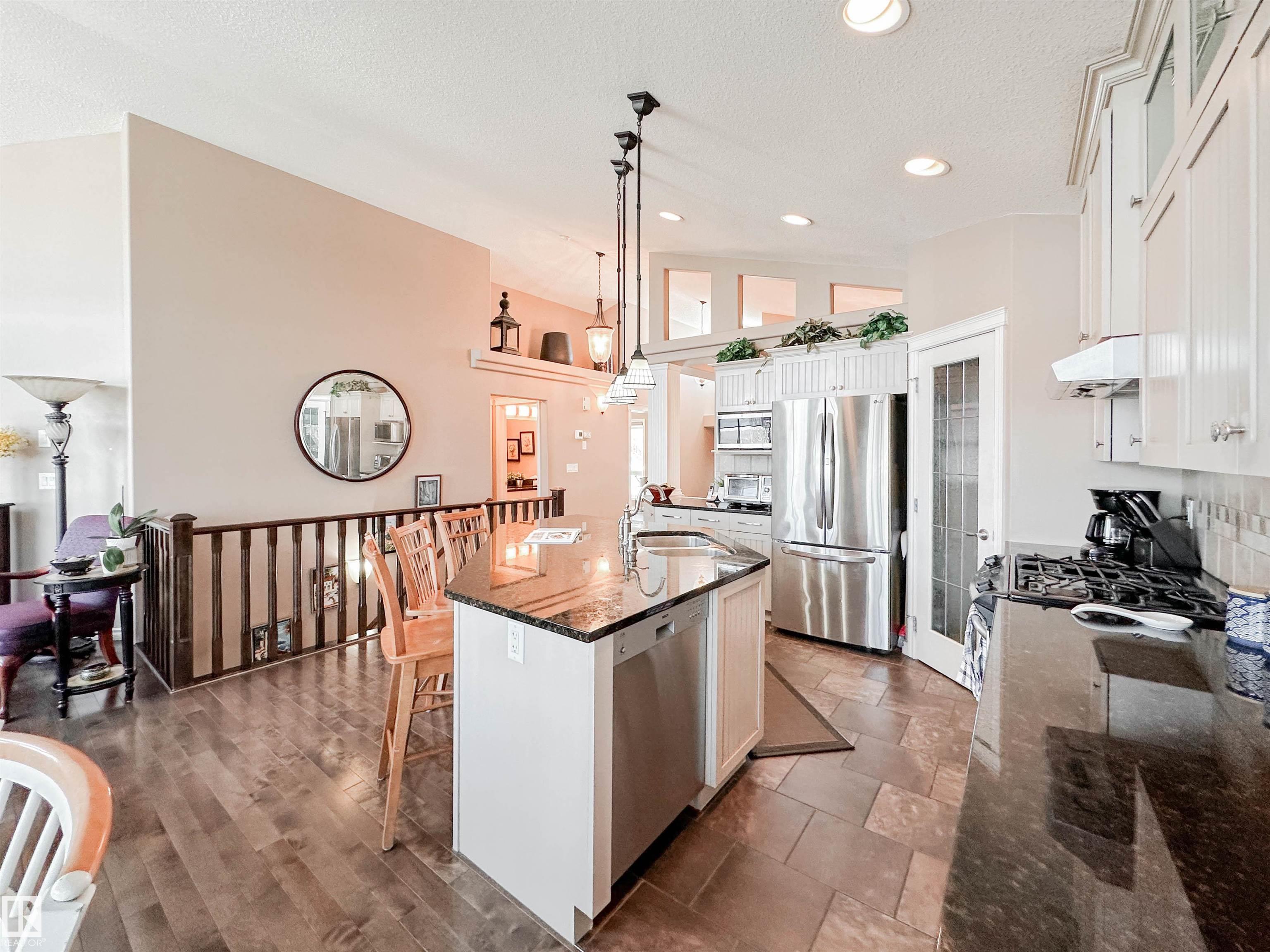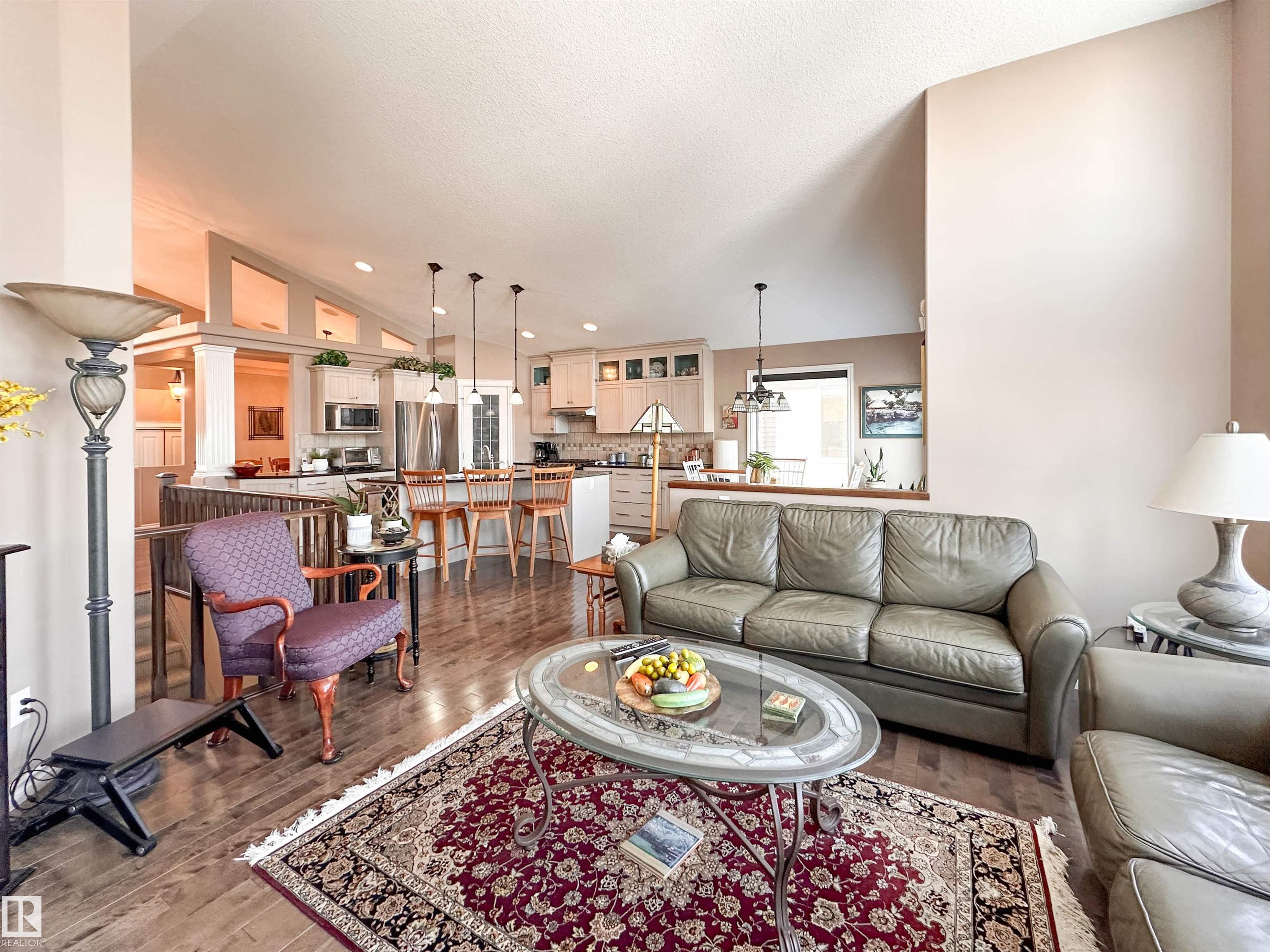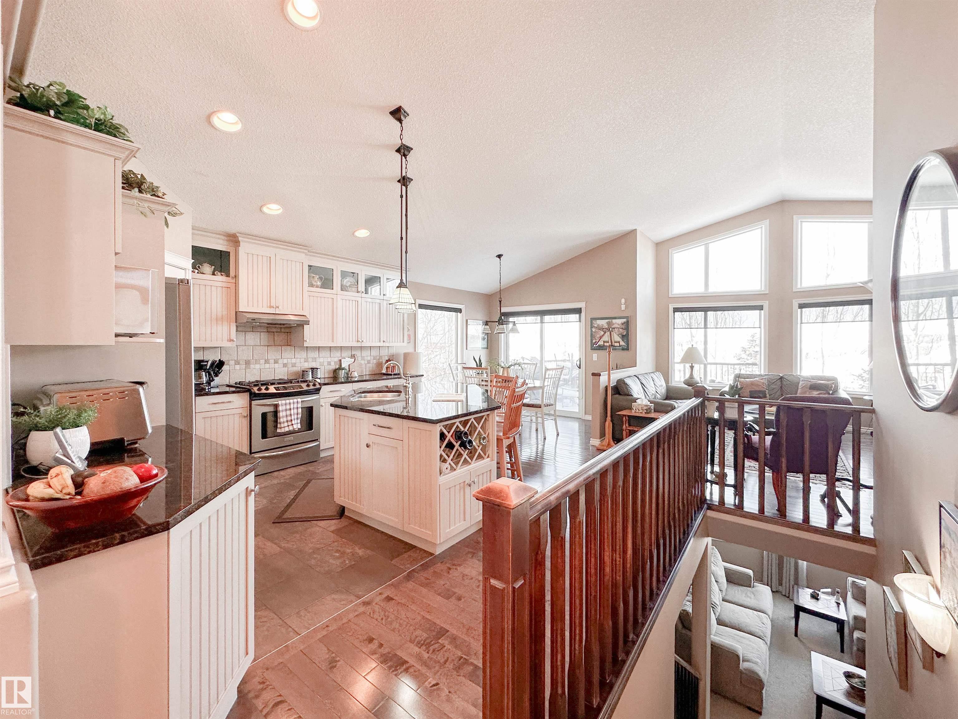 Welcome to this beautiful walk-out bungalow in Oakmont with incredible river valley views and over 2,700 sq ft of living space! From the moment you walk in, you?ll love the natural light, warm hardwood floors, and open layout that makes this home feel both spacious and inviting. The kitchen is perfect for hosting with rich cabinetry, granite countertops, and stainless steel appliances, flowing effortlessly into the nook area and spacious living room w/ soaring windows, vaulted ceiling & gas fireplace. Step out onto the upper balcony and take in the peaceful views. The primary suite offers a relaxing retreat with a 5-piece ensuite and walk-in closet. A den, formal dining, powder room, & main floor laundry add convenience. Downstairs, the FF walk-out basement features a large living room/rec room, wet bar, 2 bedrooms, and a full bath. Enjoy the private, low-maintenance yard surrounded by mature trees!