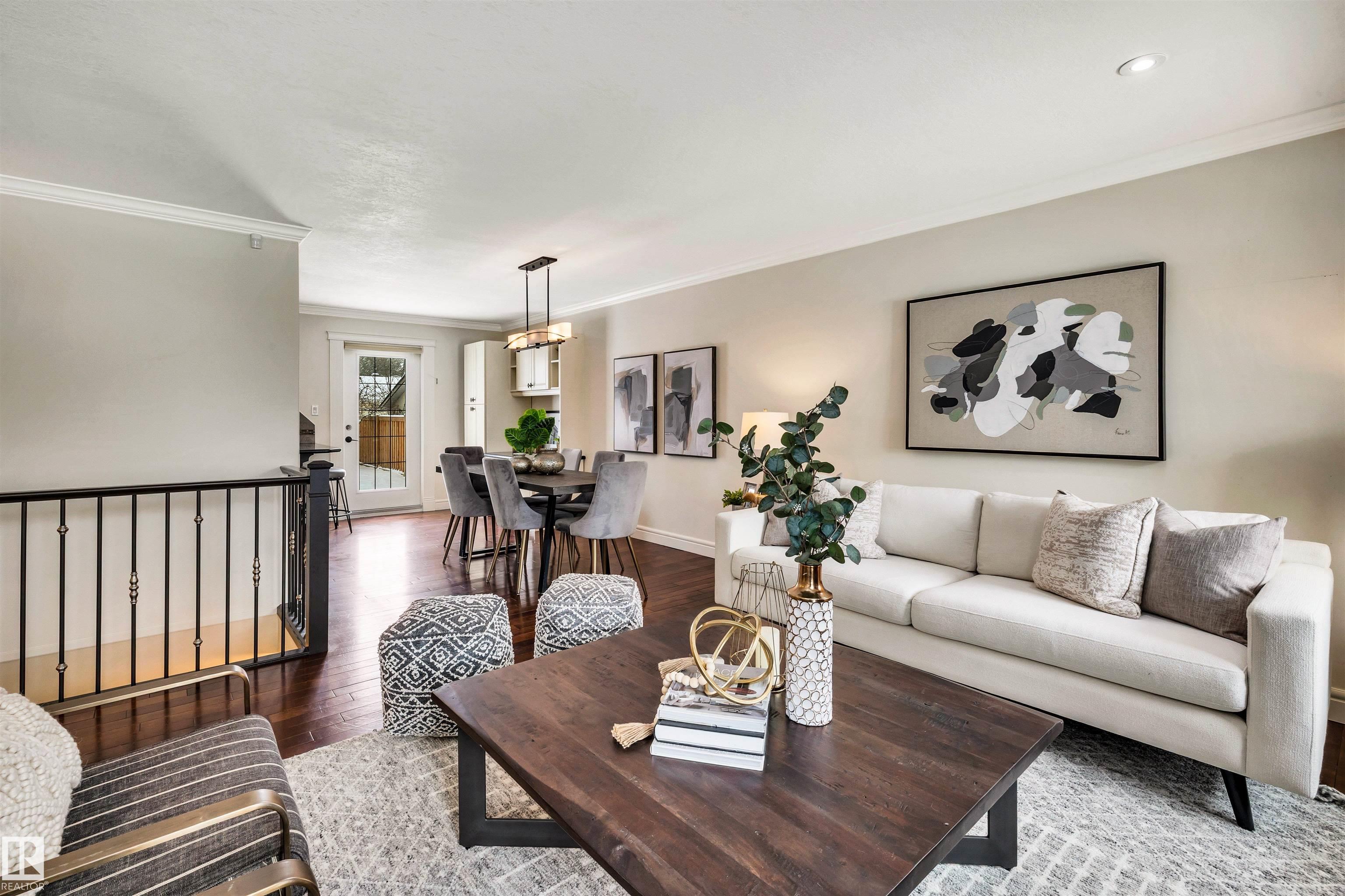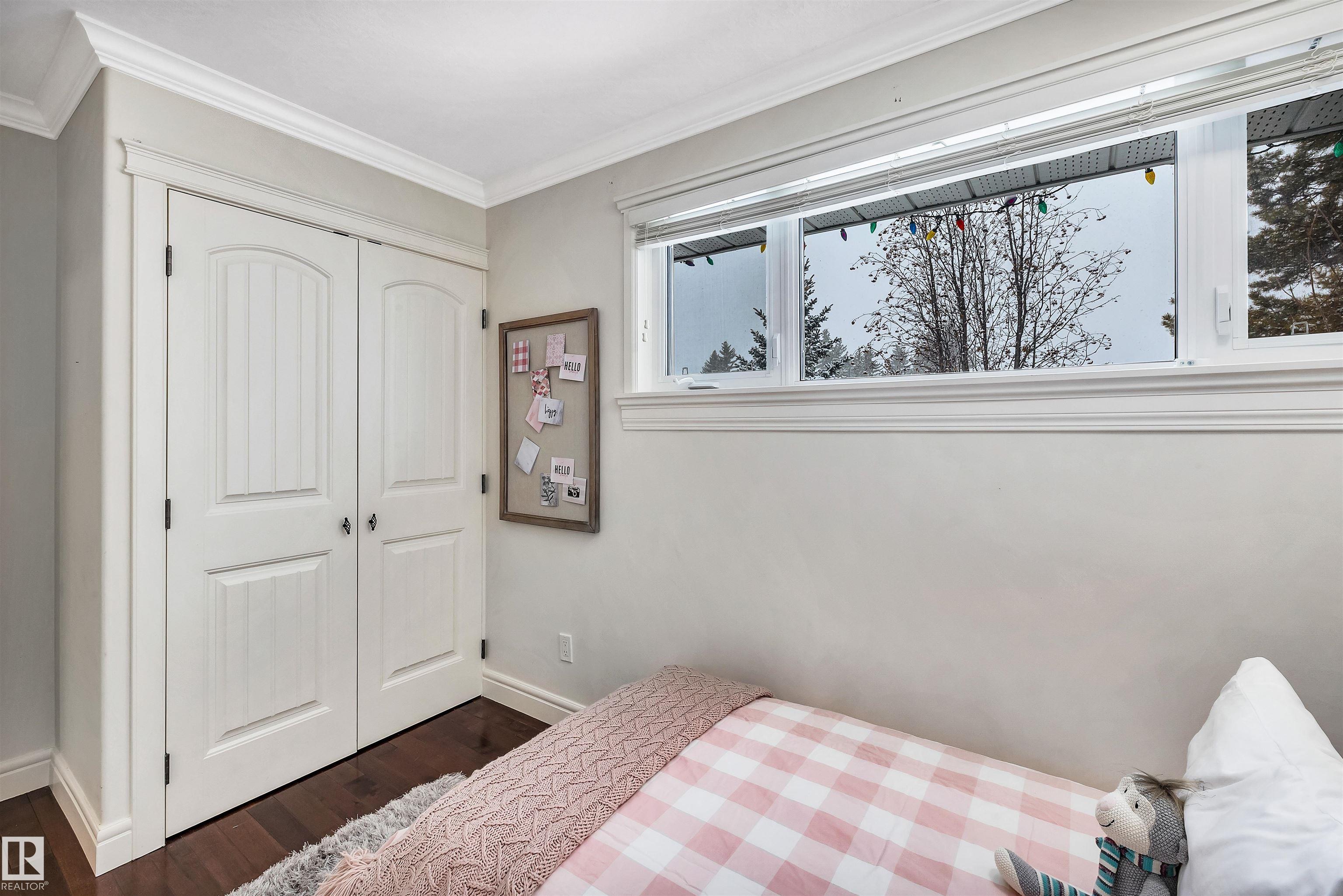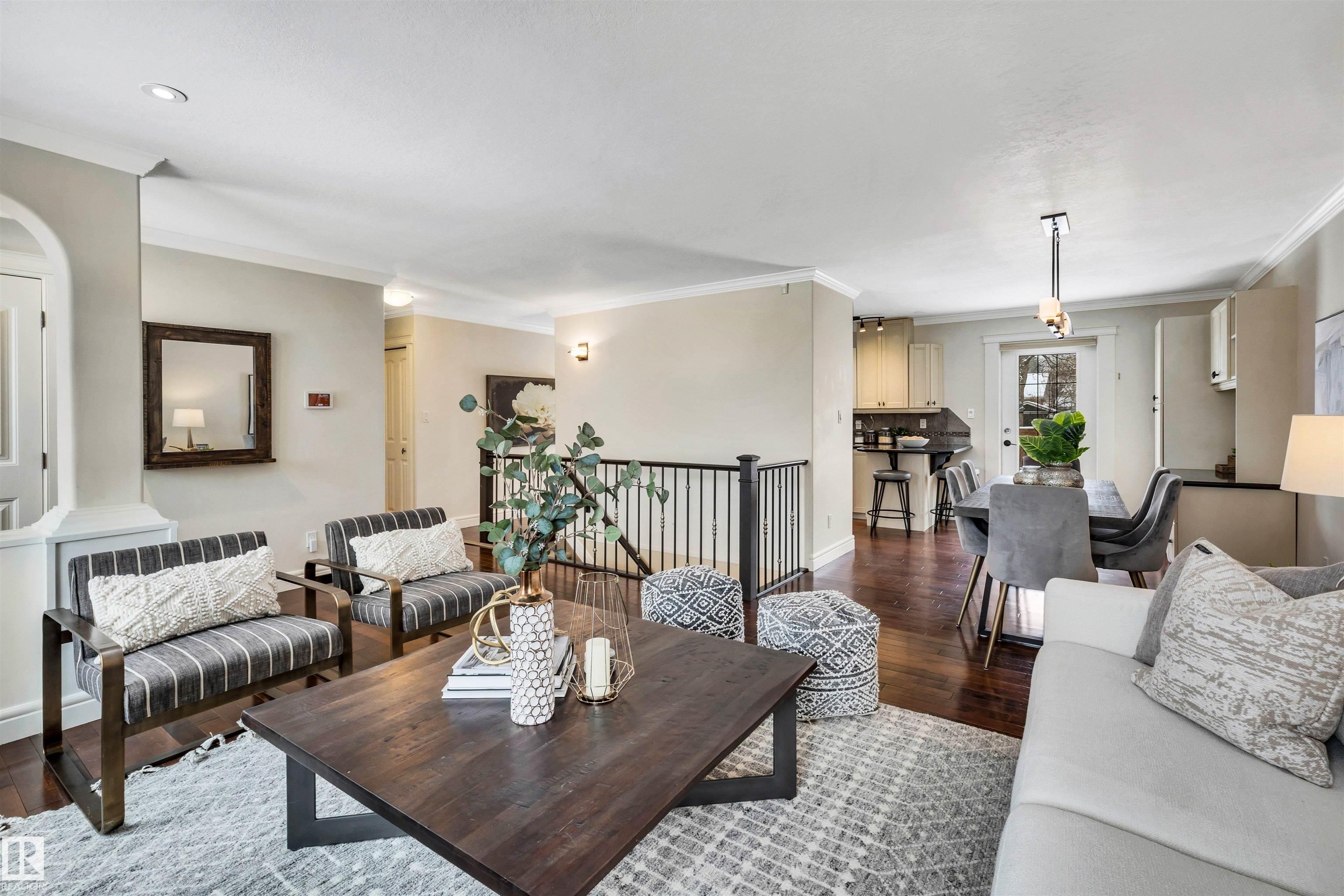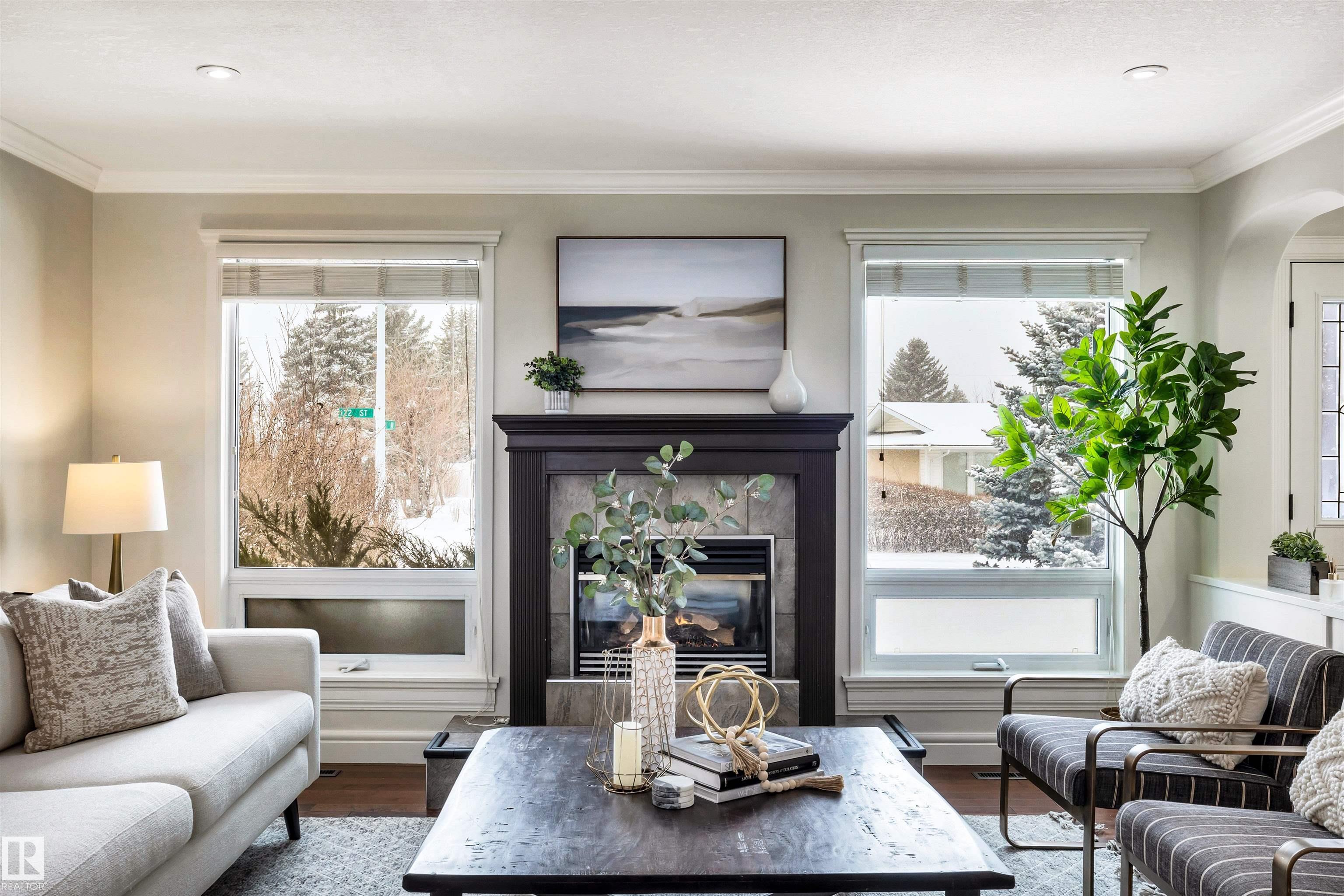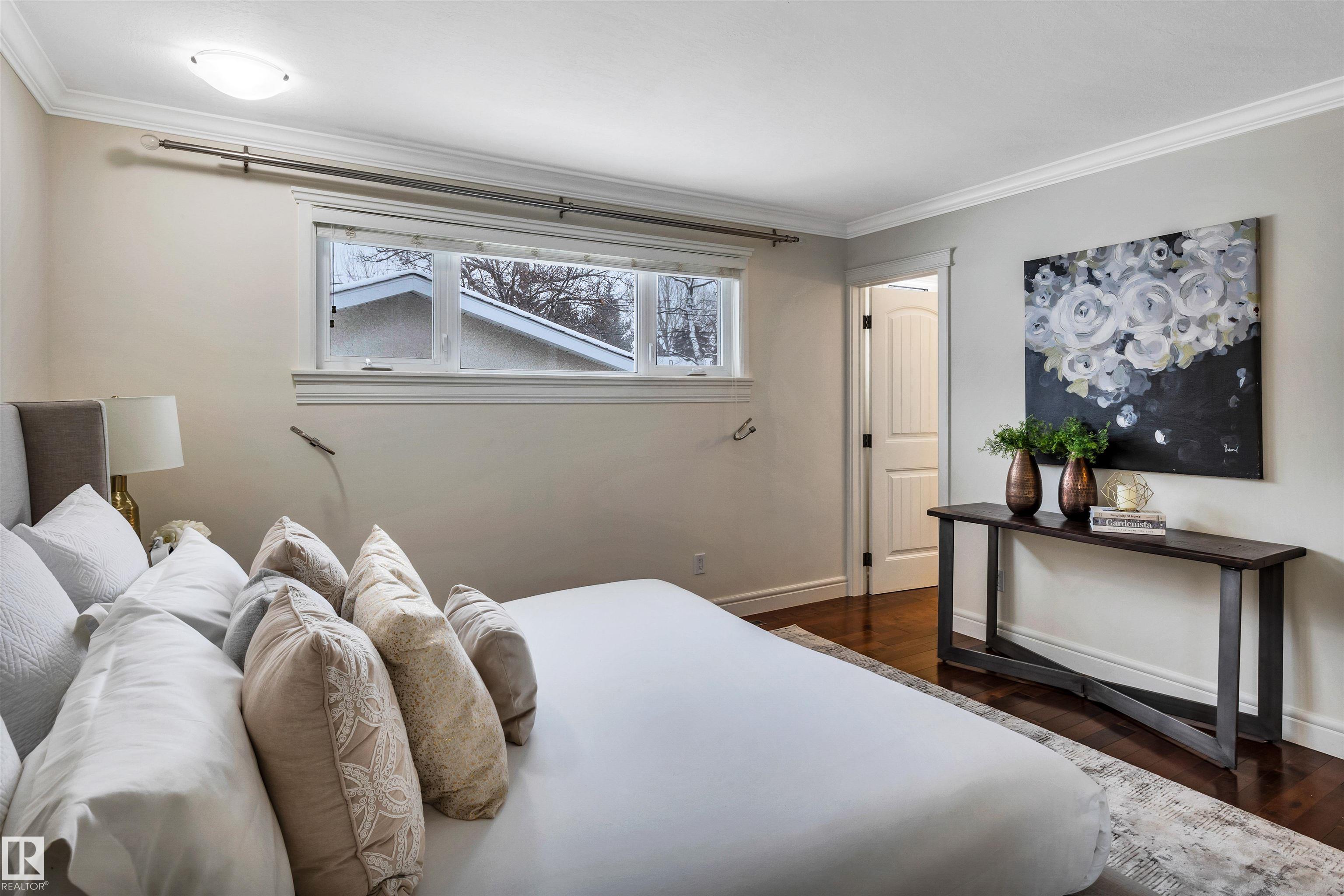 Welcome to Aspen Gardens! This charming 4-bed, 3-bath bungalow, a double detached garage has been tastefully renovated in recent years. The home features rich hdwd flooring thru-out the main level, while large newer windows & west-facing exposure fill the space with natural light. The inviting living rm offers a cozy gas fireplace & flows seamlessly into the dining area, accented by custom built-in cabinetry. The renovated kitchen incls granite countertops, ss appliances, & a convenient eating bar with direct access to the large backyard. The main flr includes a generous primary bdrm w/ a walk-in closet & 2-pce ensuite, along w/ 2 additional bdrms. The fully finished basement adds excellent living space, featuring a large recreation rm, 4th bdrm, office/gym area, 3-pce bath, & an oversized laundry & storage rm. Recent upgrades include A/C, furnace, roof shingles, & an on-demand hot water system. Ideally located on a quiet, family-friendly street near top-rated schools, with quick access to the ravine.