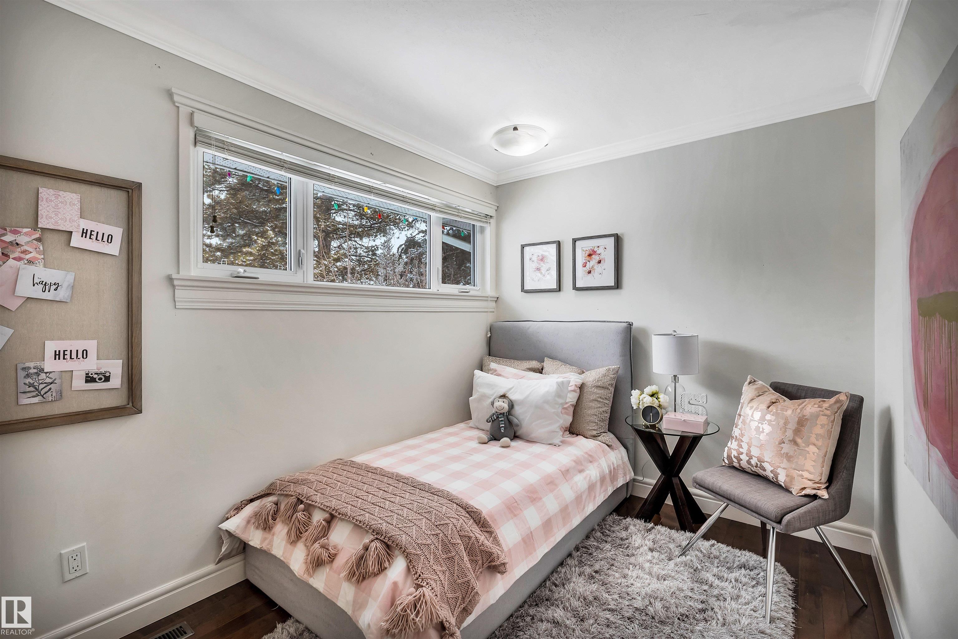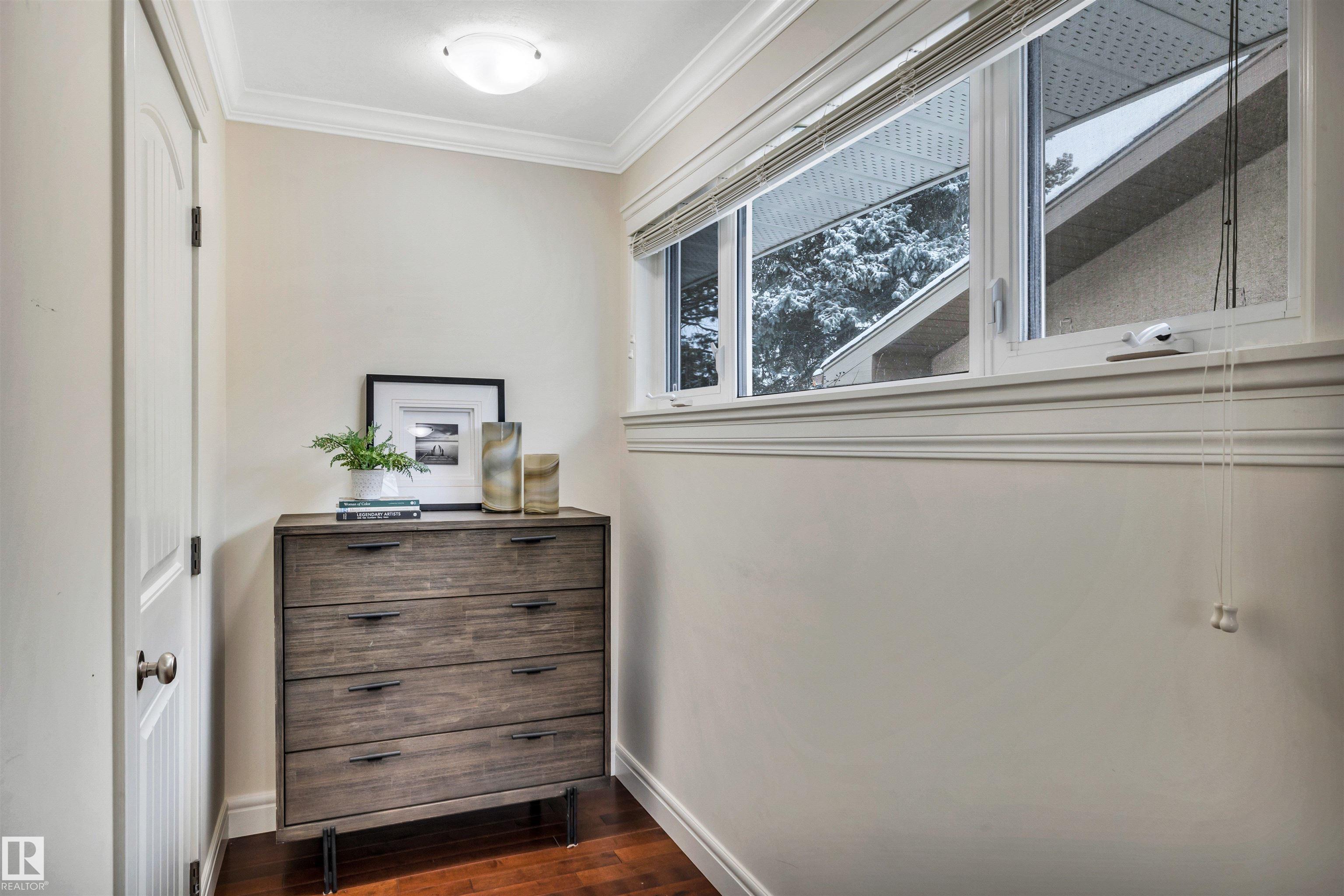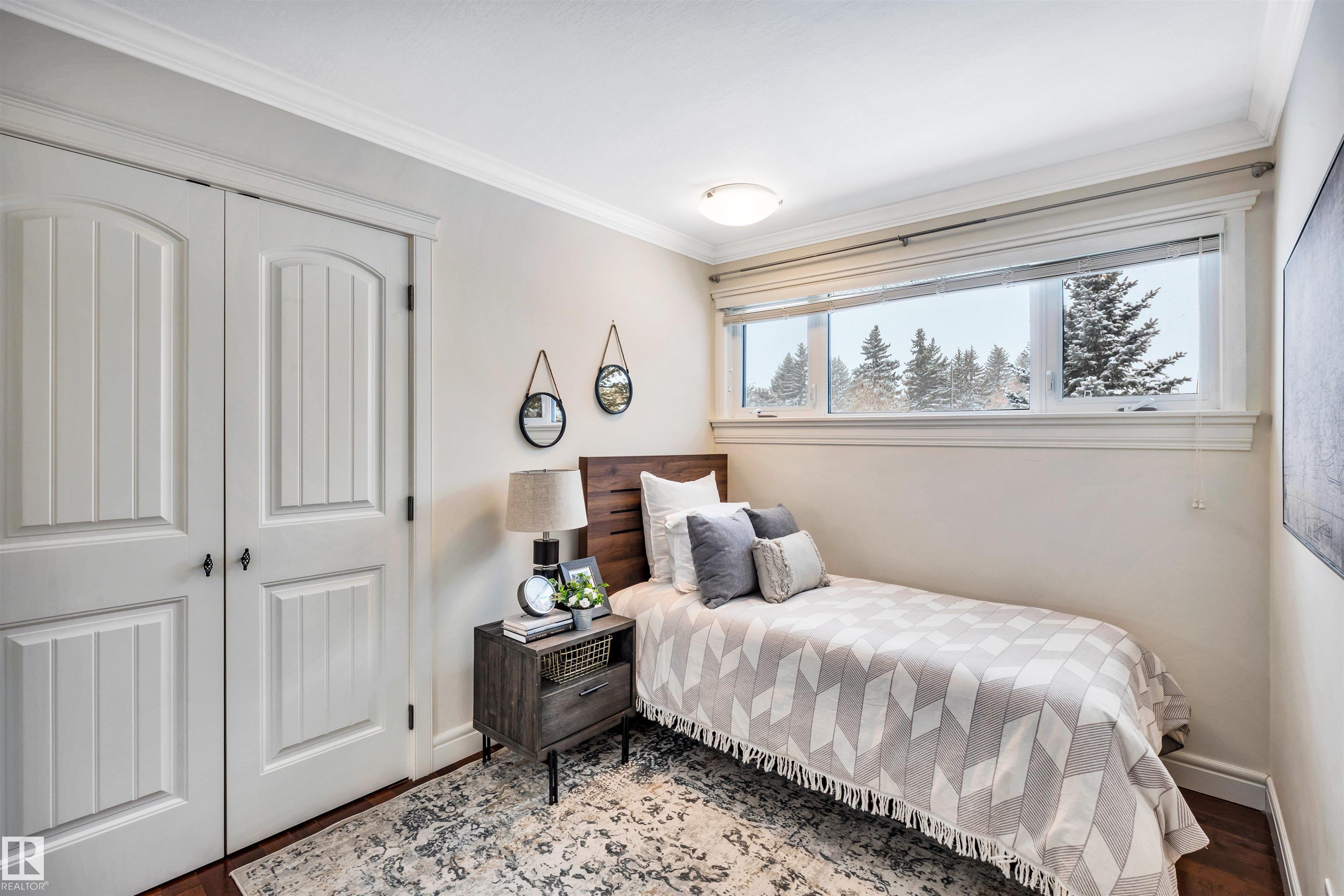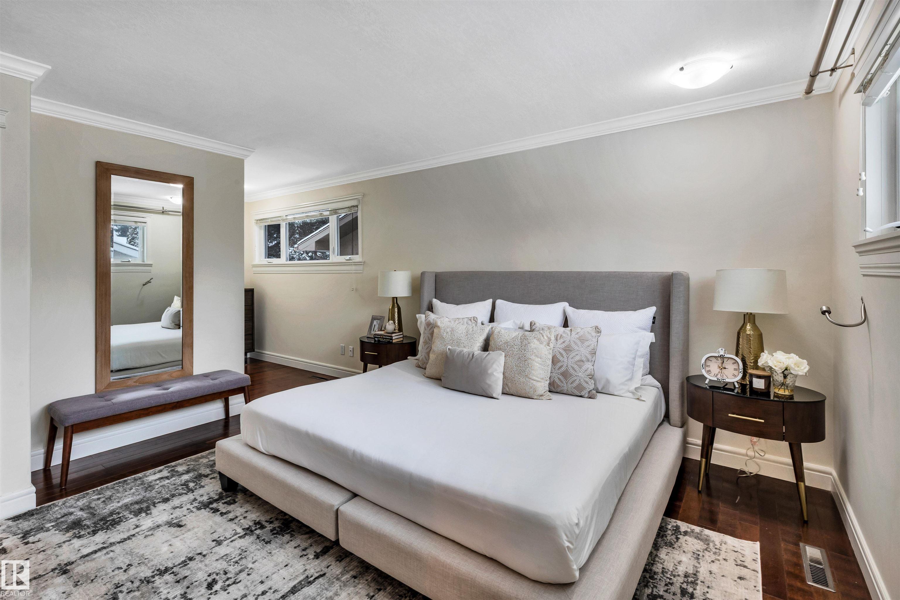 Welcome to Aspen Gardens! This charming 4-bed, 3-bath bungalow, a double detached garage has been tastefully renovated in recent years. The home features rich hdwd flooring thru-out the main level, while large newer windows & west-facing exposure fill the space with natural light. The inviting living rm offers a cozy gas fireplace & flows seamlessly into the dining area, accented by custom built-in cabinetry. The renovated kitchen incls granite countertops, ss appliances, & a convenient eating bar with direct access to the large backyard. The main flr includes a generous primary bdrm w/ a walk-in closet & 2-pce ensuite, along w/ 2 additional bdrms. The fully finished basement adds excellent living space, featuring a large recreation rm, 4th bdrm, office/gym area, 3-pce bath, & an oversized laundry & storage rm. Recent upgrades include A/C, furnace, roof shingles, & an on-demand hot water system. Ideally located on a quiet, family-friendly street near top-rated schools, with quick access to the ravine.
