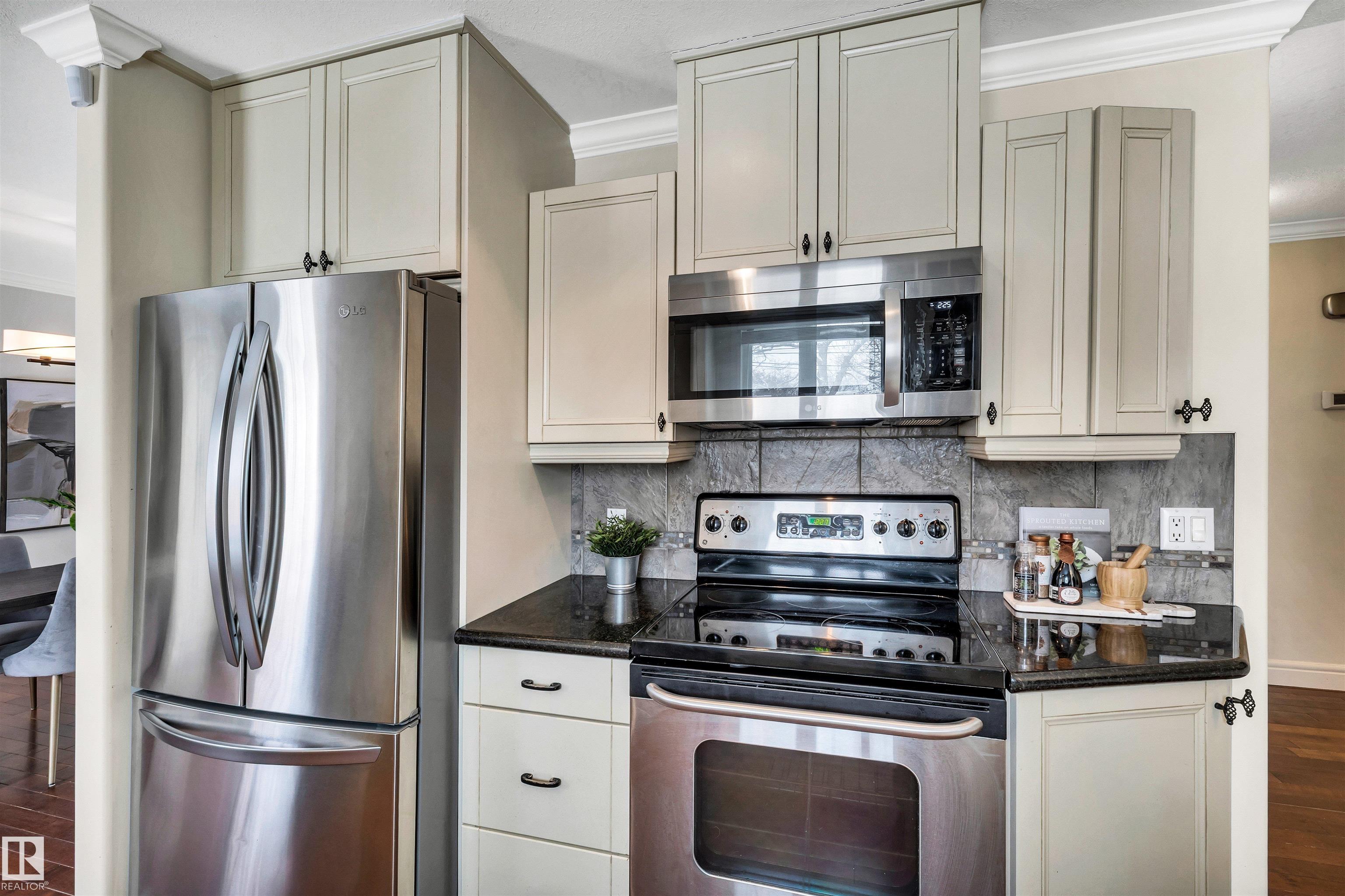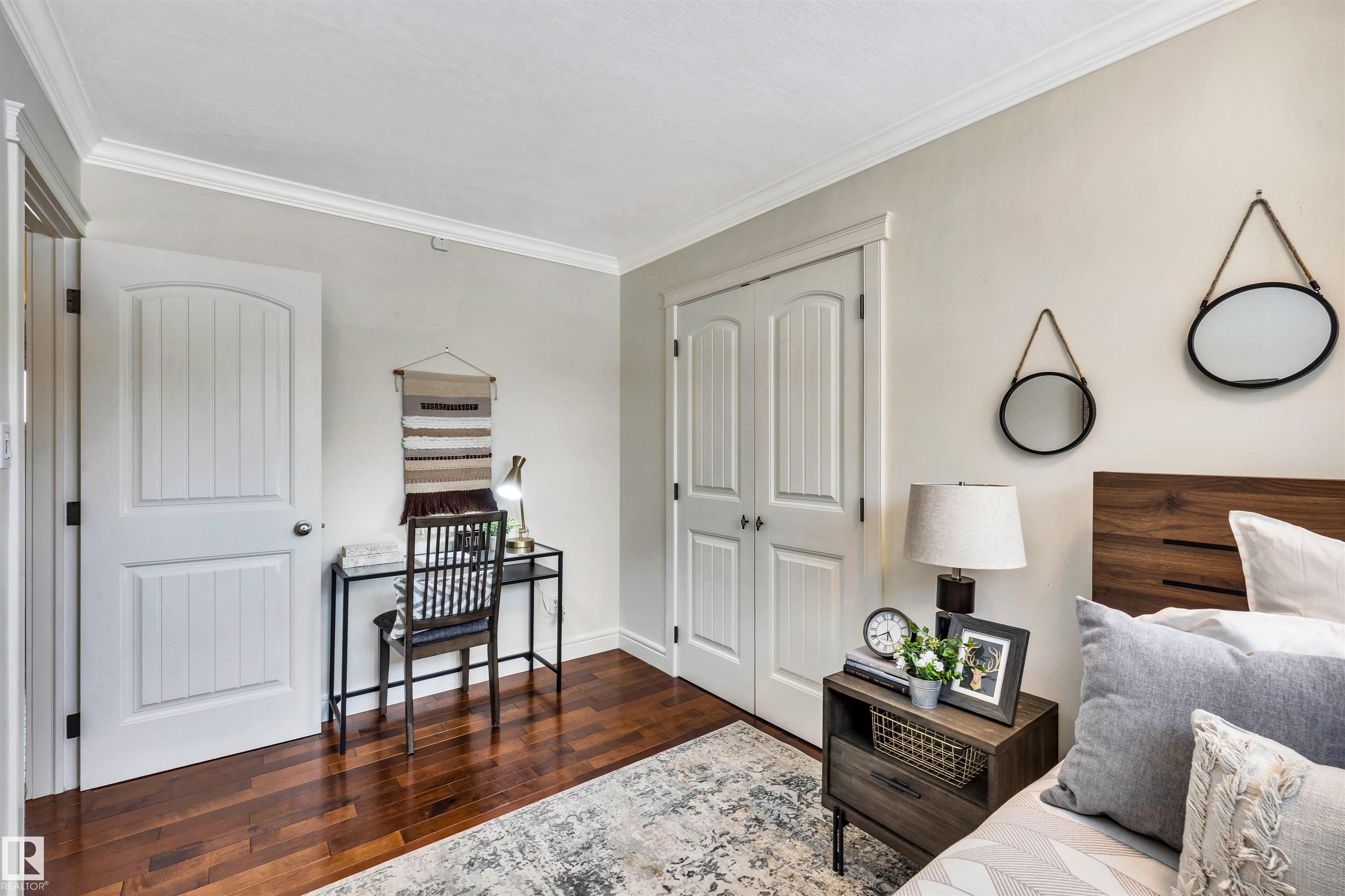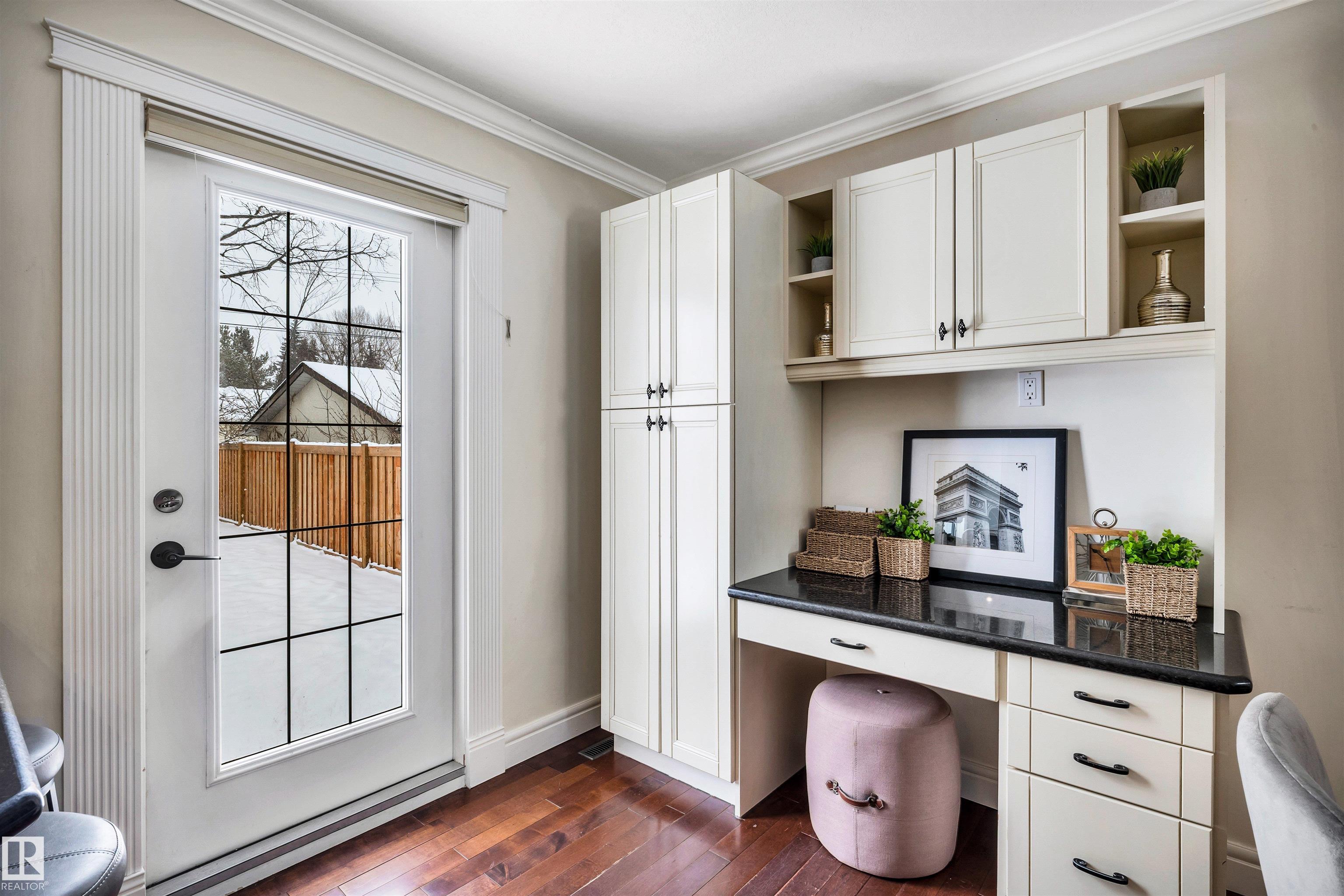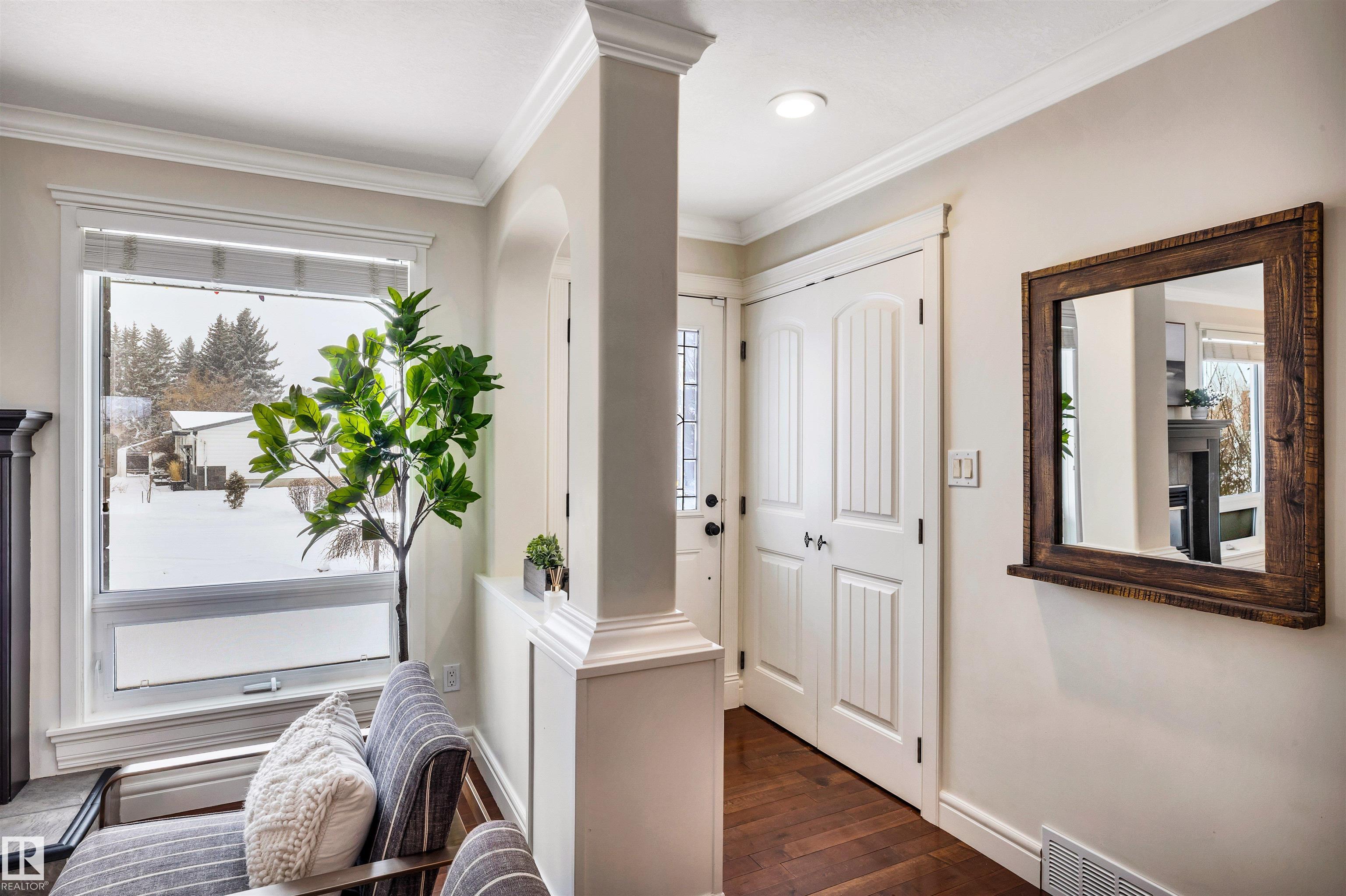 Welcome to Aspen Gardens! This charming 4-bed, 3-bath bungalow, a double detached garage has been tastefully renovated in recent years. The home features rich hdwd flooring thru-out the main level, while large newer windows & west-facing exposure fill the space with natural light. The inviting living rm offers a cozy gas fireplace & flows seamlessly into the dining area, accented by custom built-in cabinetry. The renovated kitchen incls granite countertops, ss appliances, & a convenient eating bar with direct access to the large backyard. The main flr includes a generous primary bdrm w/ a walk-in closet & 2-pce ensuite, along w/ 2 additional bdrms. The fully finished basement adds excellent living space, featuring a large recreation rm, 4th bdrm, office/gym area, 3-pce bath, & an oversized laundry & storage rm. Recent upgrades include A/C, furnace, roof shingles, & an on-demand hot water system. Ideally located on a quiet, family-friendly street near top-rated schools, with quick access to the ravine.