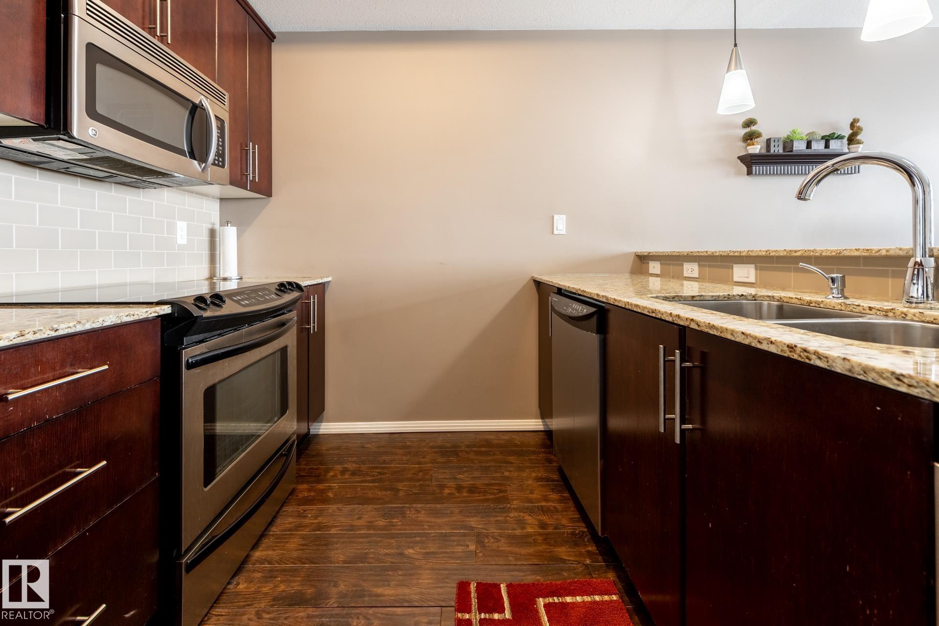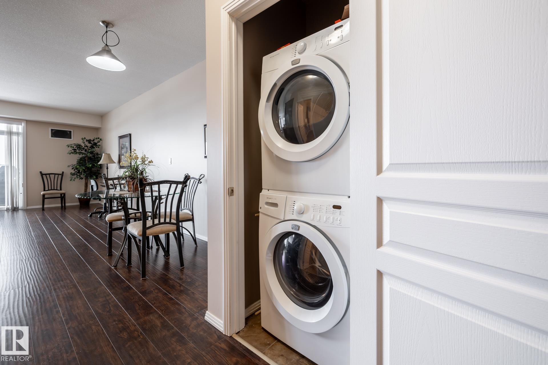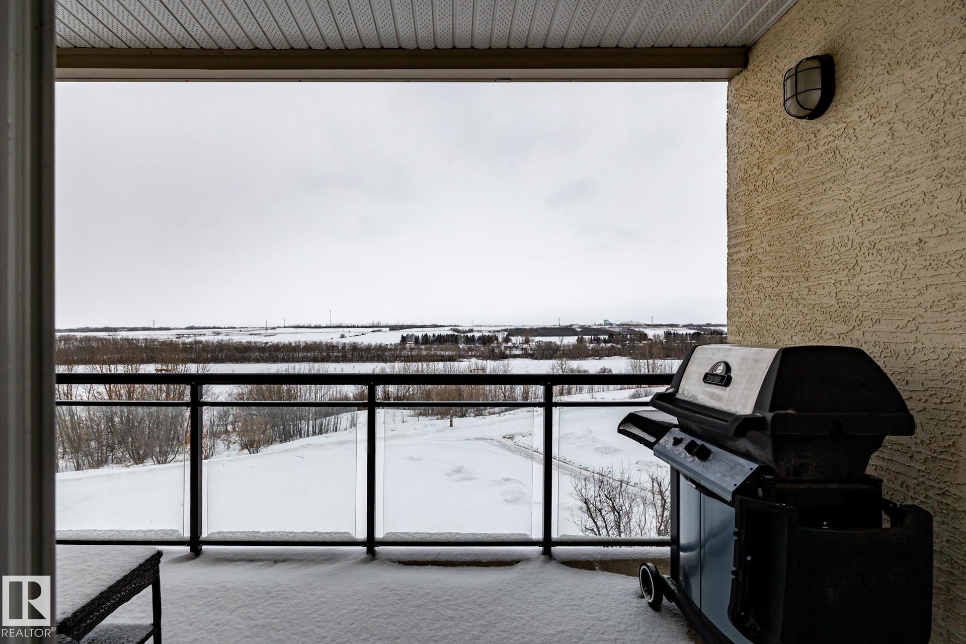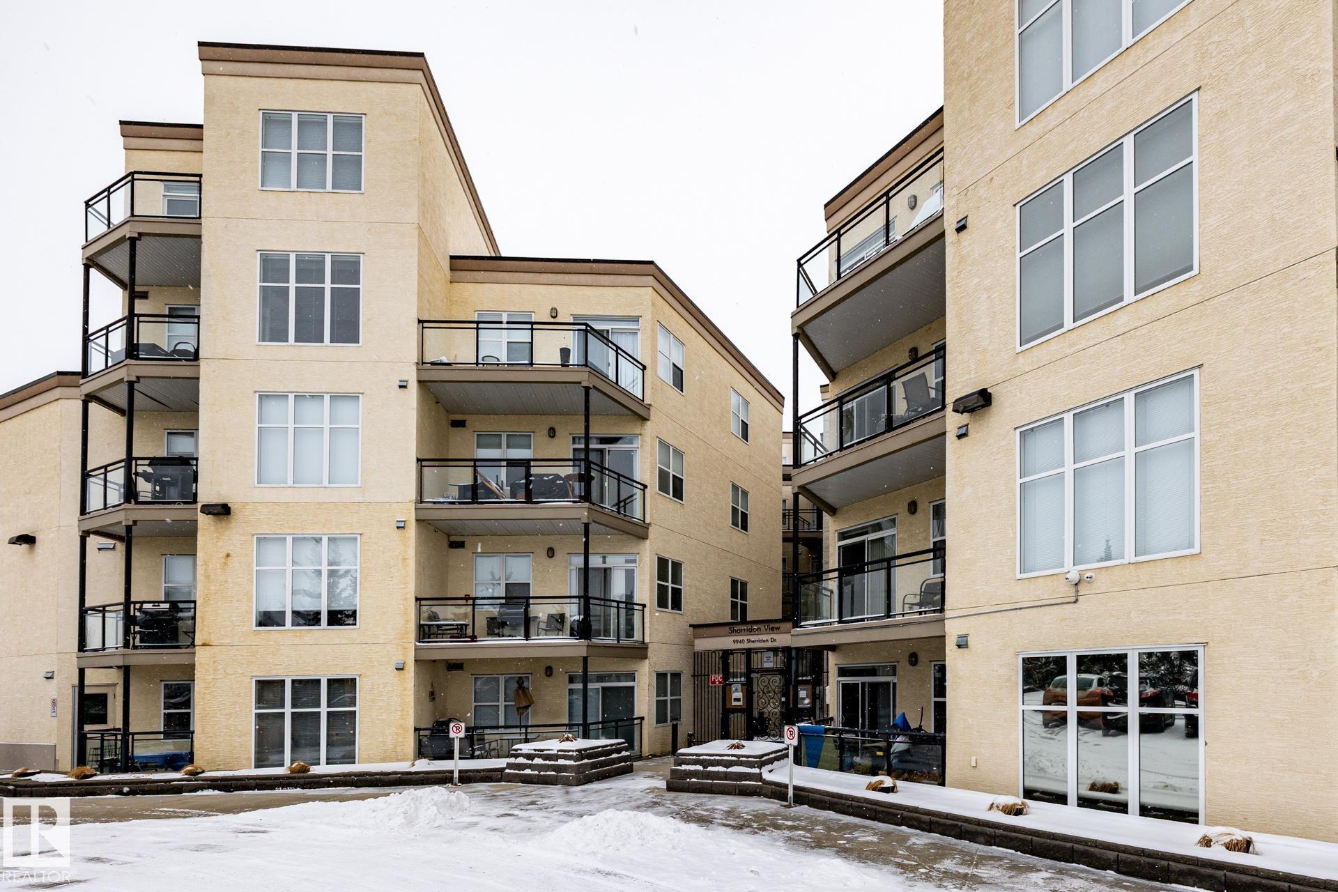 Amazing third floor RIVER VIEW unit at Fort Saskatchewan's Sherridon View. All furniture can be negotiable. Great opportunity for a furnished rental. This architecturally appealing building offers 2 bedrooms & 1 bath with SPECTACULAR VIEWs overlooking the river. Catch the STUNNING SUNSETS & the city fireworks from the comfort of your own private balcony. Offering beautiful laminate throughout, with carpet in bedrooms, in-suite laundry, STAINLESS STEEL APLLIANCES and air conditioning. Open kitchen with lots of storage and GRANITE countertops. Other features include, 2 heated underground TITLED parking stalls, walking & biking trails outside your door, & convenient access to most amenities. River view units do not come up often in this sought after building. Sherridon View is very well managed with the majority of units being owner occupied. Condo fees include water & sewer. One pet permitted (smaller dogs only) with prior approval by board. You're going to love your new home with a view.