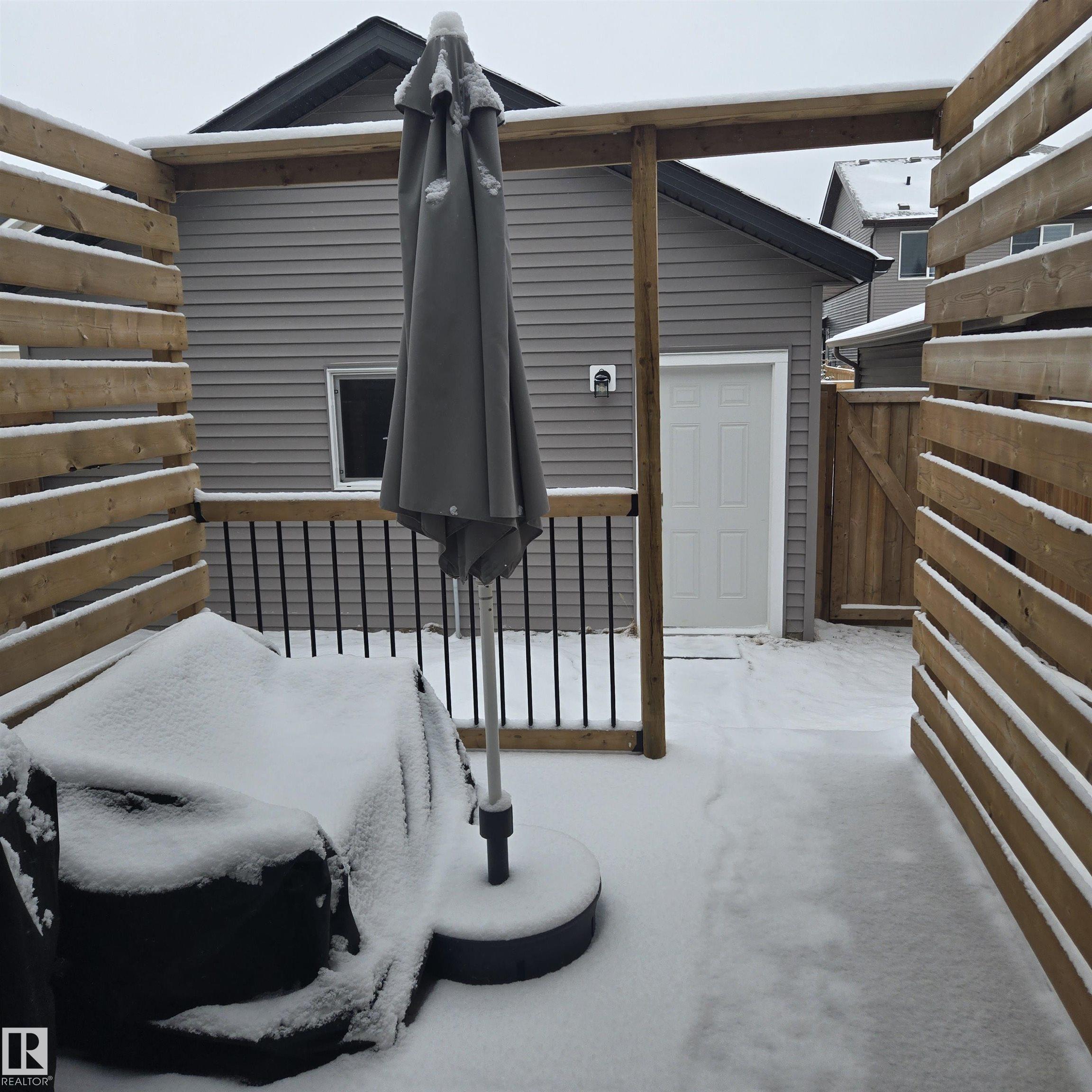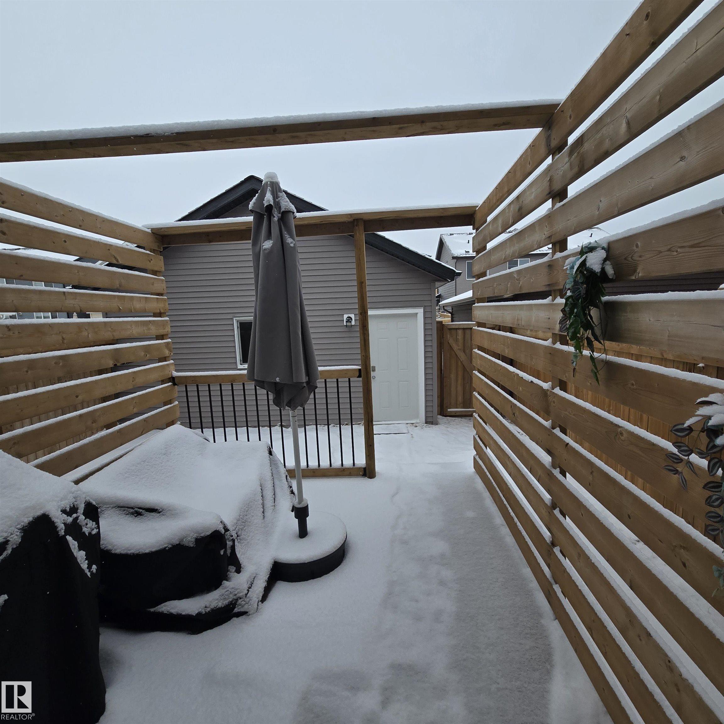 Welcome to this well-maintained 1,655 sq ft, 3-bedroom, 3-bathroom two-storey home located in the desirable community of Cavanagh. This property offers a functional and modern layout, featuring an open-concept main floor with upgraded lighting, including pot lights, and durable engineered laminate flooring throughout. The kitchen is thoughtfully designed with a large central island, granite countertops, and a stainless steel appliance package, providing both style and practicality. Upstairs, you will find three spacious bedrooms, including a primary bedroom with a 5-piece ensuite bathroom. The home also includes a separate side entrance; however, the basement is not included in this offering. A detached garage is available for parking and storage. Conveniently situated just minutes from major amenities, including shopping, dining, and transit access, this property also offers quick access to Edmonton International Airport and the Premium Outlet Collection Mall.
