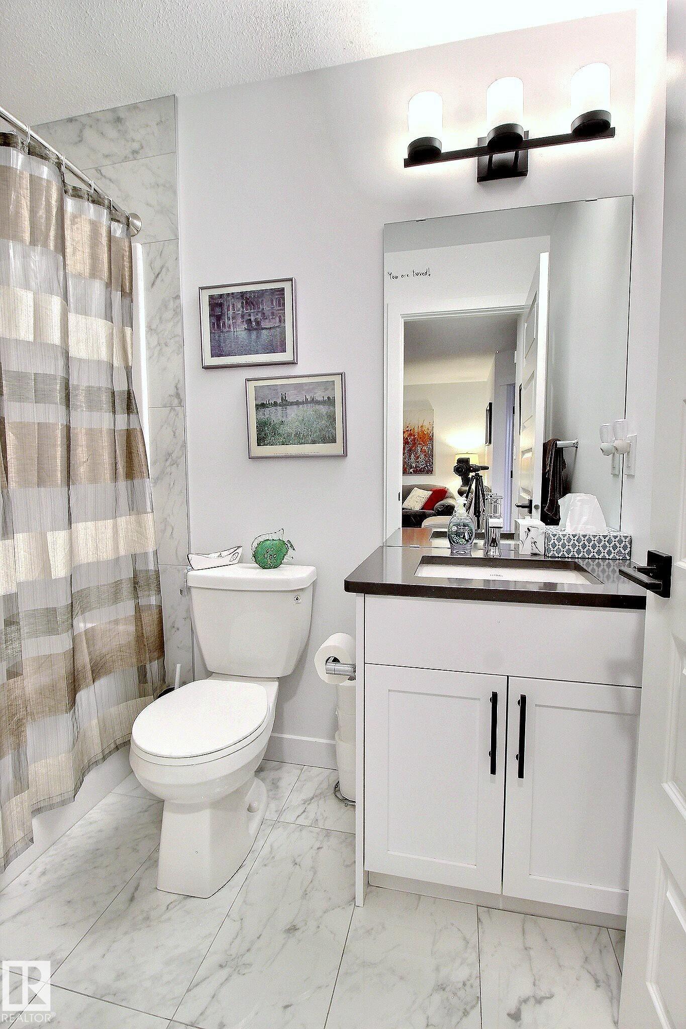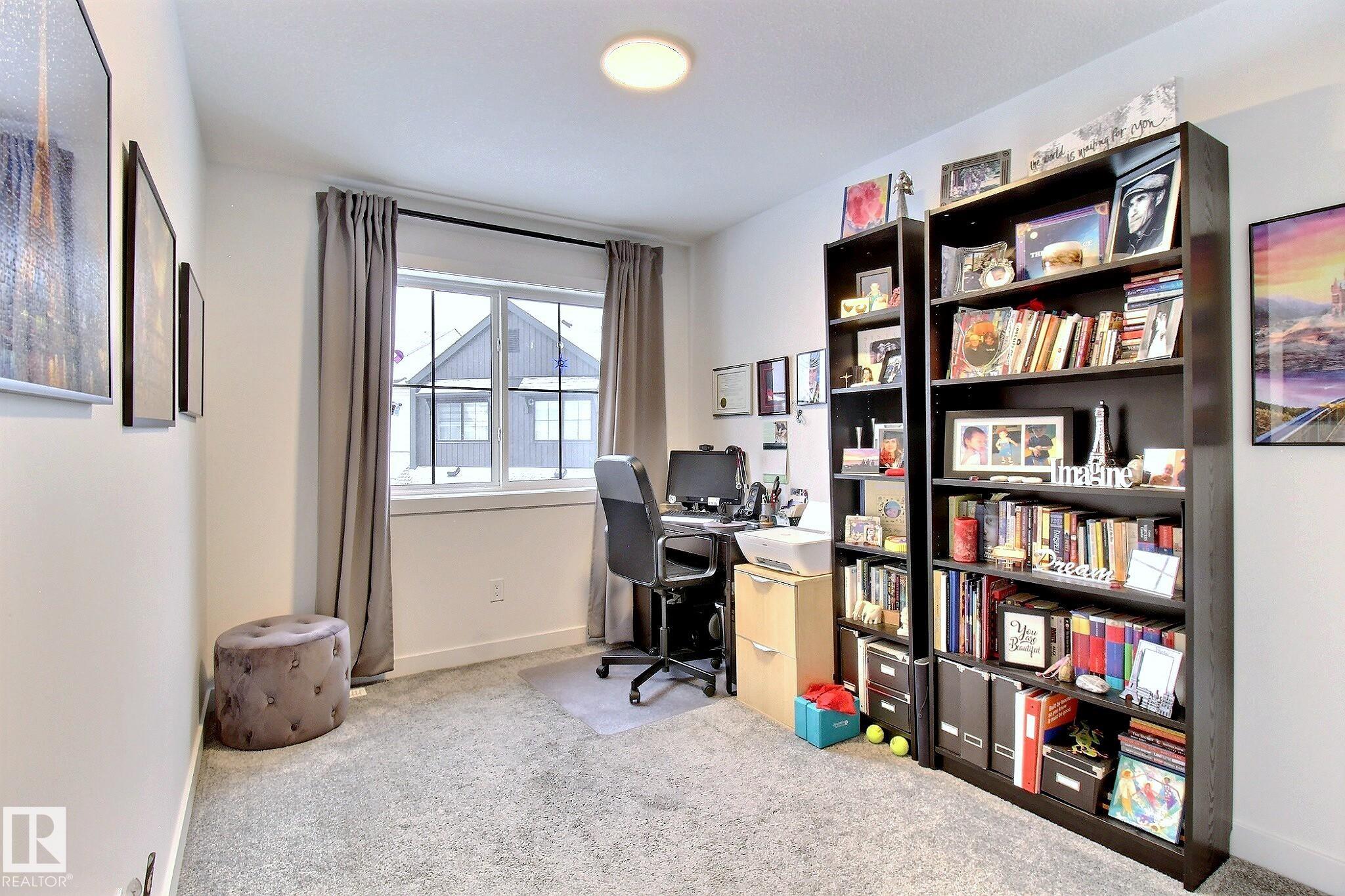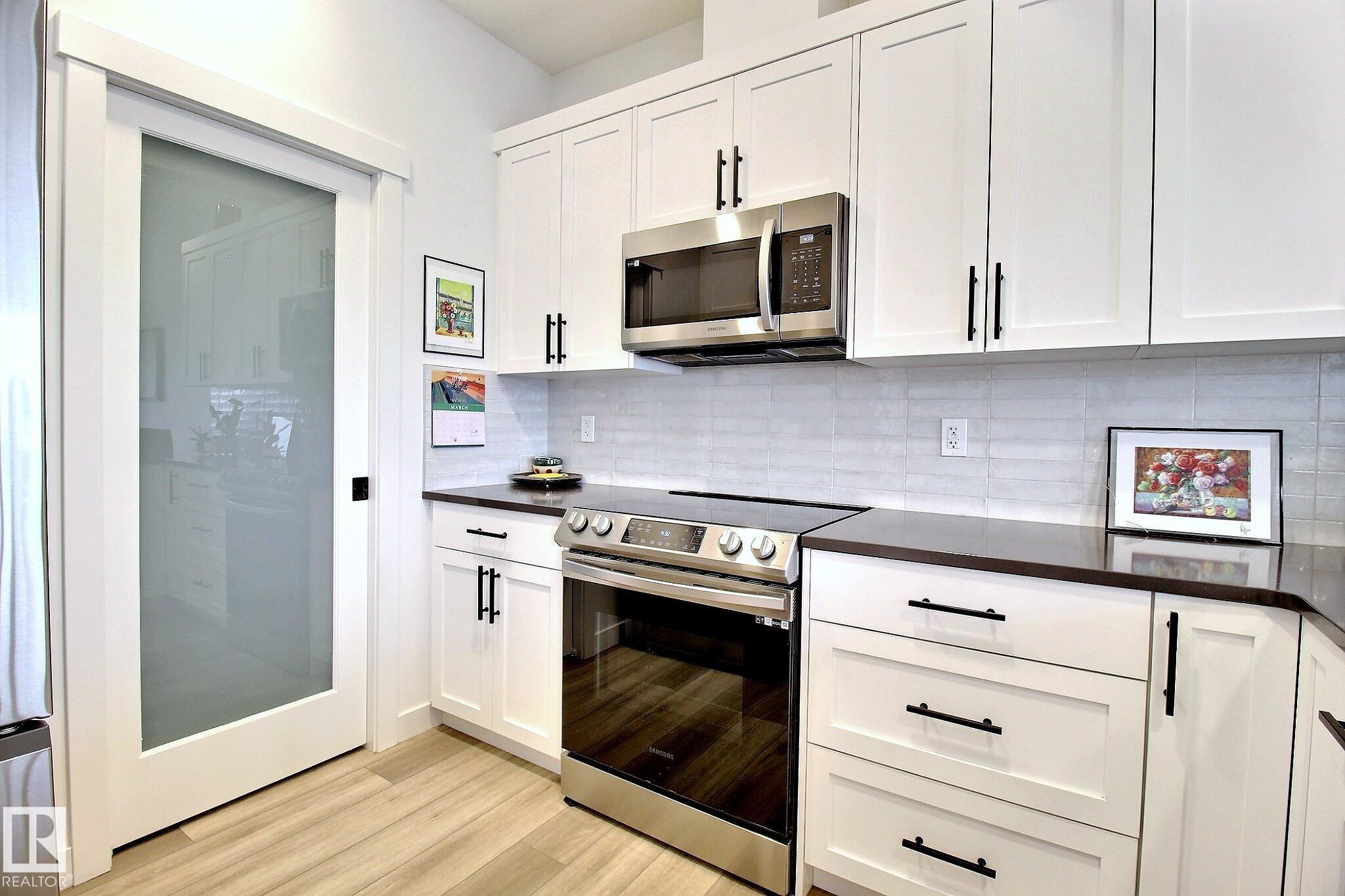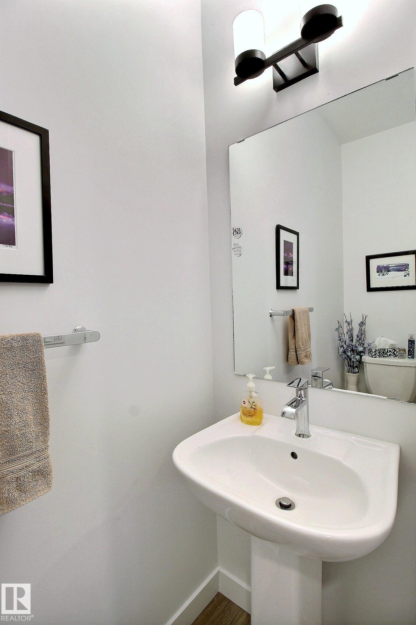 Beautifully maintained and impeccably designed, this exceptional townhome in the desirable Banks of Cavanagh offers a rare blend of style, comfort, and natural serenity. Backing onto the picturesque Blackmud Creek ravine with no neighbours to the south, you'll enjoy peaceful views and direct access to scenic walking trails. The bright, open-concept main floor showcases 9-foot ceilings, large windows, and a modern kitchen with ss appliances, quartz countertops, and seamless flow for everyday living and entertaining. Thoughtfully designed, it features a walk-through mudroom from the double attached garage and central A/C for year-round comfort. Upstairs offers a cozy family room, convenient laundry, and three spacious bedrooms, including a refined primary retreat with a spacious walk-in closet and private 4-pc ensuite. An unfinished basement with roughed-in plumbing provides future potential. Ideally located just minutes from South Edmonton Common and all amenities. A true MUST SEE property!