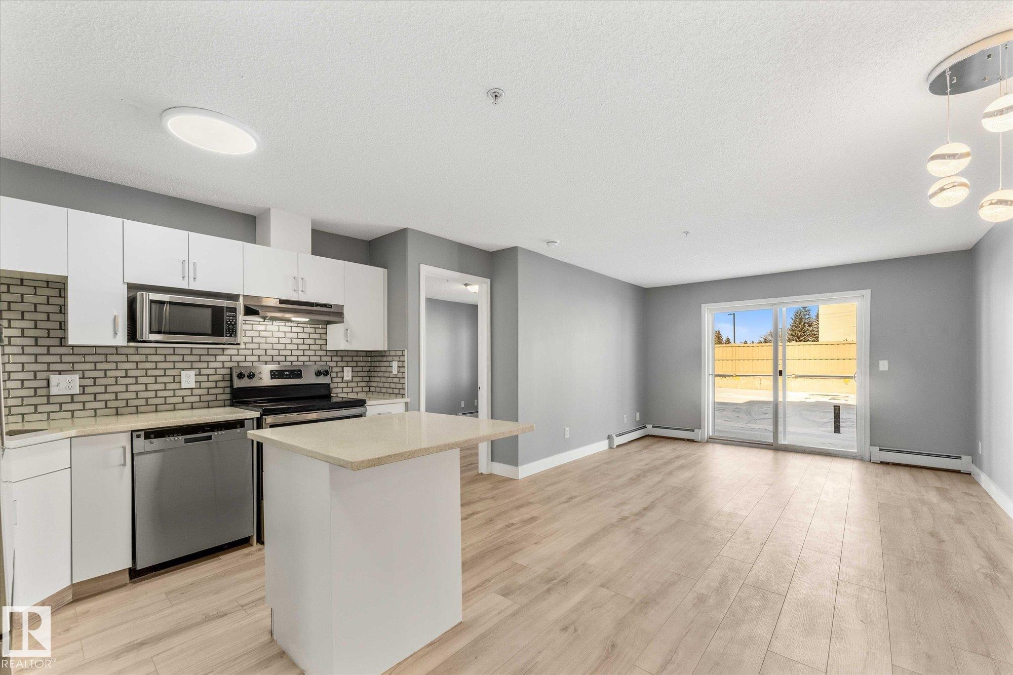 *** Oh So Convenient In Eaux Claires *** Are you craving affordable easy-living without giving up style, Dear Buyer? This condo?s got you covered: Quartz countertops, updated cabinets & lighting fixtures, fresh flooring & paint, and yes? in-suite laundry (because hauling baskets down a hallway is overrated). Main-floor living = effortless & accessible. No long waits for the elevator, here. Groceries? In and out in seconds. Dog walks? Step out your patio. Parking? Close to the door. Over 800+ sqft of living space ensures everything (and everyone!) feels open and comfortable.Two VERY roomy bedrooms on opposite sides (fits a king!) each with a full bath. Perfect if you?ve got a roommate, guests, or just don?t want to share your space. Shopping, dining & essentials along 97 Street AND the Eaux Claires ETS main station all within WALKING distance. Quick access to Henday makes getting around the city a breeze. CFB Edm or Remand Centre? Quick 10min drive. Investor-friendly. Affordable and turnkey. Welcome Home!