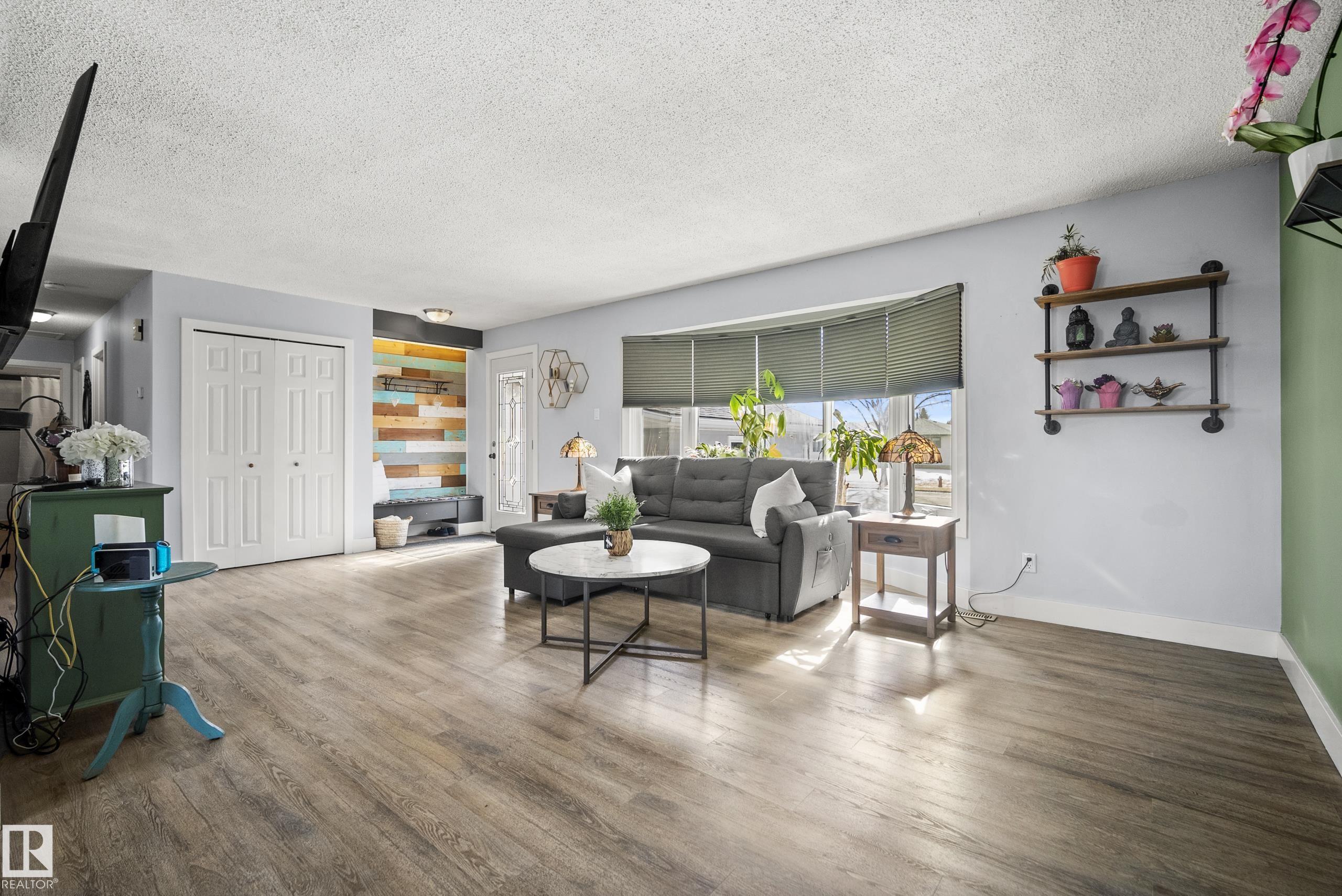Welcome to the perfect family home in one of Stony Plain?s most mature and sought-after neighbourhoods! This warm and inviting 3-bedroom beauty offers an ideal blend of comfort, charm, and functional space for everyday living. The main floor features stylish vinyl plank flooring and a super-convenient main-floor laundry?truly a game changer for busy households. Upstairs, the bedrooms are bright and welcoming, while the fully finished basement adds incredible versatility with a spacious rec room, a quiet den, and a fantastic theatre room, plus loads of extra storage. Love outdoor living? The massive backyard is ready for summer fun, complete with a deck and handy back-lane access. With 3 well-appointed bathrooms and a huge front attached garage measuring 23'10" x 23'6", there?s room for everything?from vehicles to hobbies and more. This is the kind of home that just feels right the moment you walk in?warm, roomy, and ready for its next family to love!