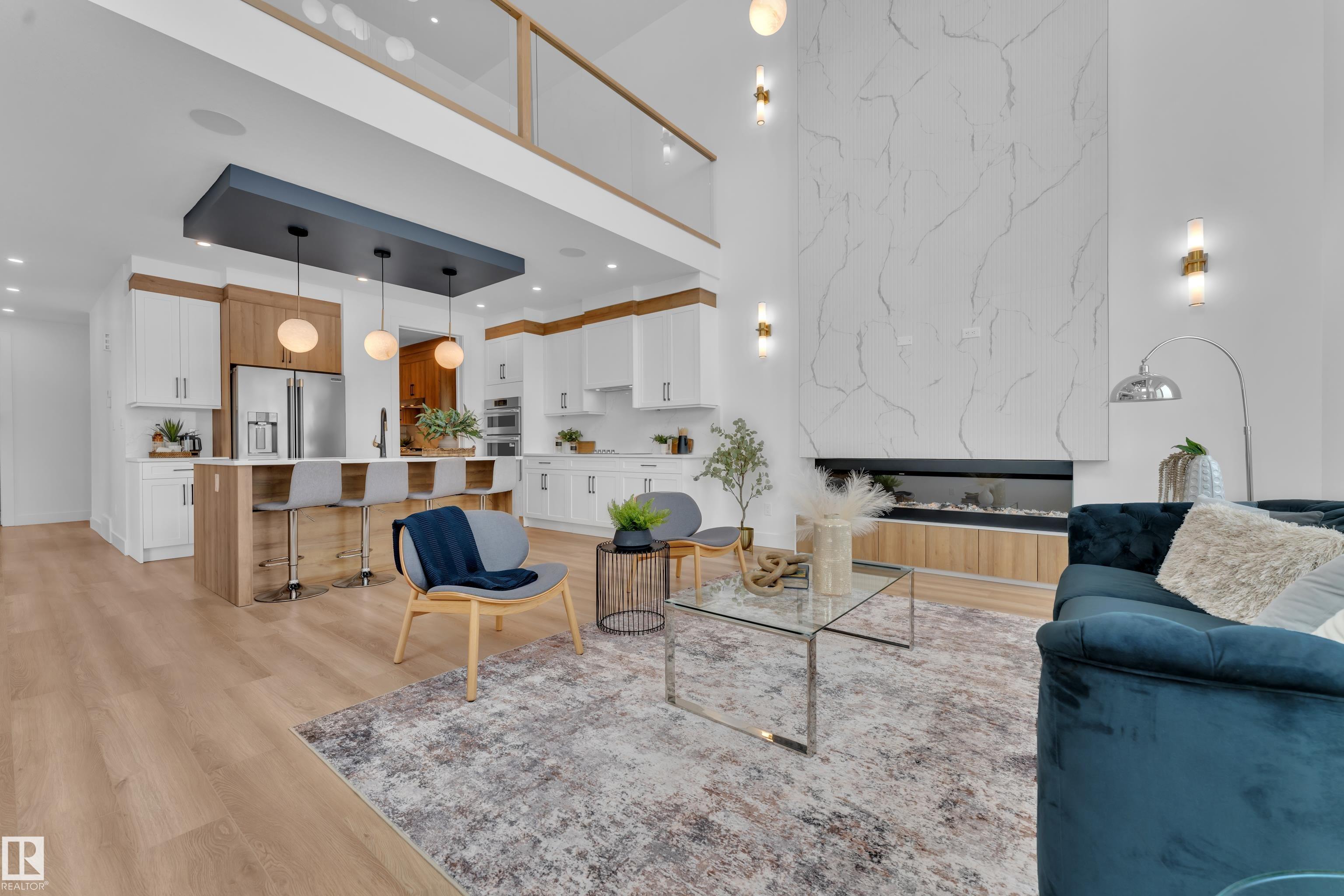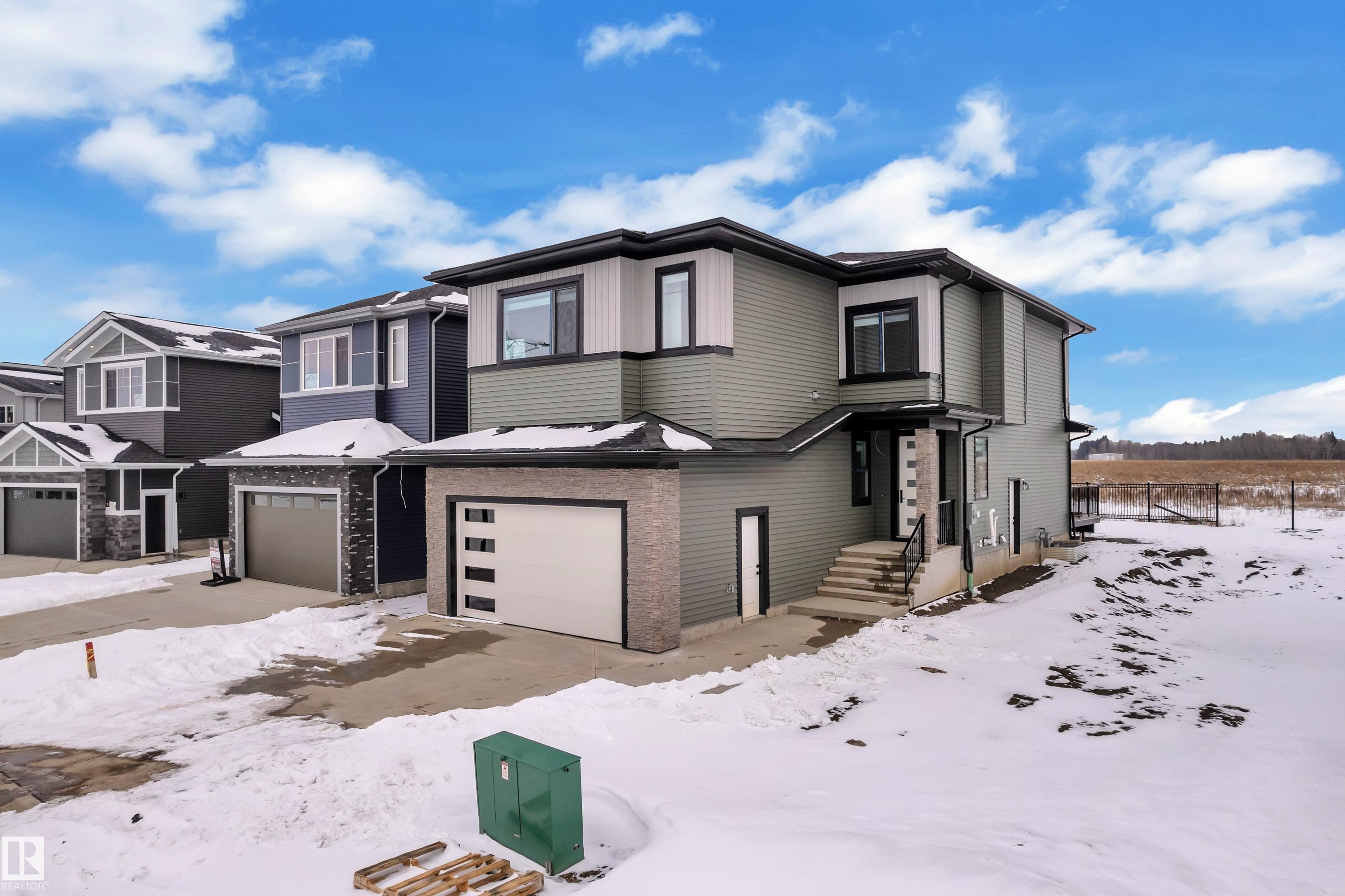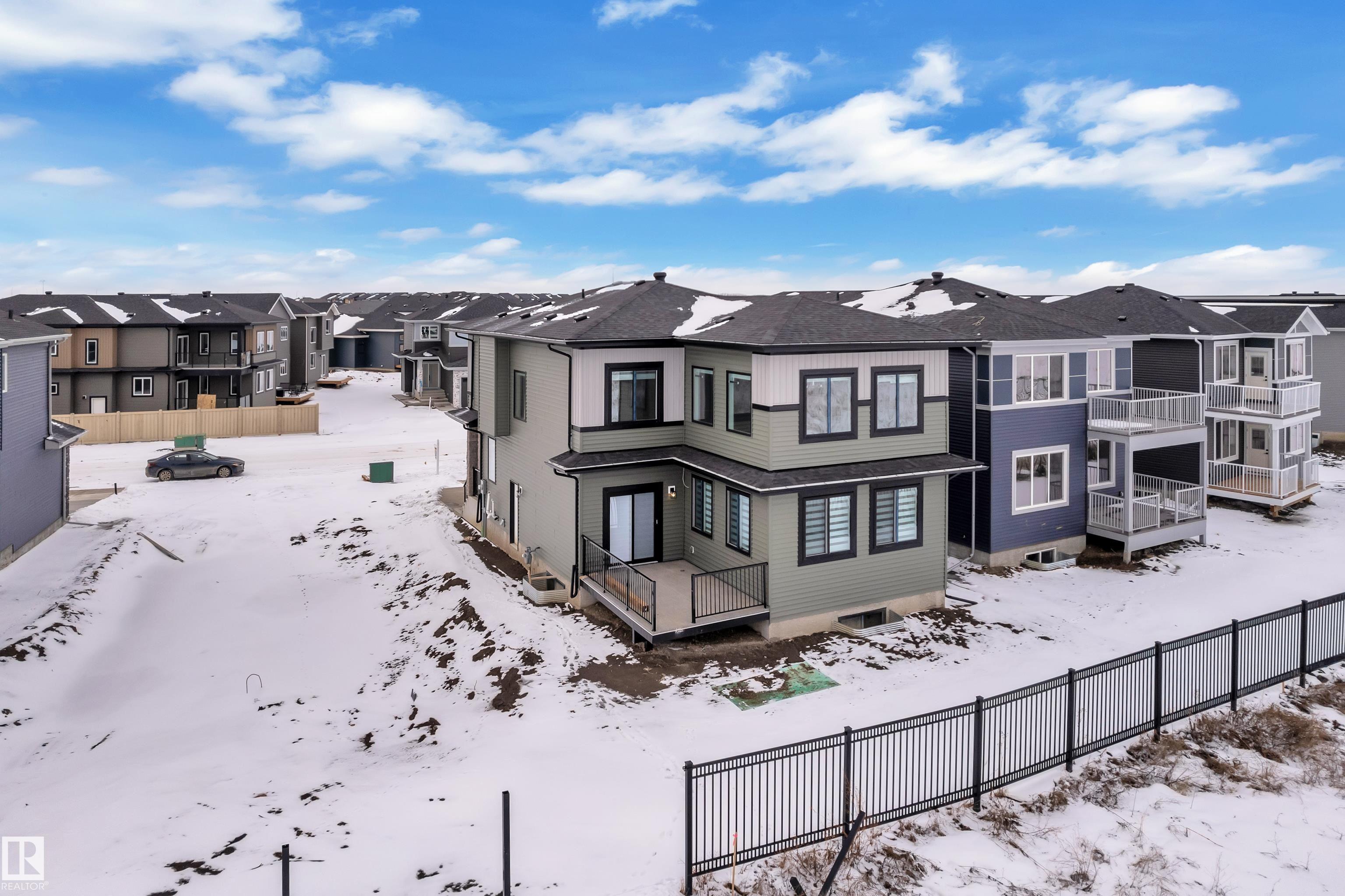 Backing onto park, stunning 2-storey home on a 28 Pkt REGULAR LOT offers 2666 SF of modern living. Beautifully designed open to above LIVING AREA WRAPPED WITH 8 MASSIVE WINDOWS, filling the home with natural light. MAIN FLOOR FULL BED & BATH, MASSIVE SPICE KITCHEN, large island and elegant cabinetry flows into a spacious living area OVERLOOKING GREEN SPACE. Upstairs features 2 MASTER BEDROOMS with luxurious ensuites, bonus room overlooking main living area and park, plus 2 additional bedrooms. Other feature include Indent ceilings, MAN DOOR to garage, Vinyl DECK with metal spindle railing, 3 WINDOWS in basement and 8 FT DOORS throughout to add style & SEPARATE SIDE ENTRANCE for future legal suite potential. Close to COSTCO, Multiple retail plazas, schools and major amenities. Welcome Home!!