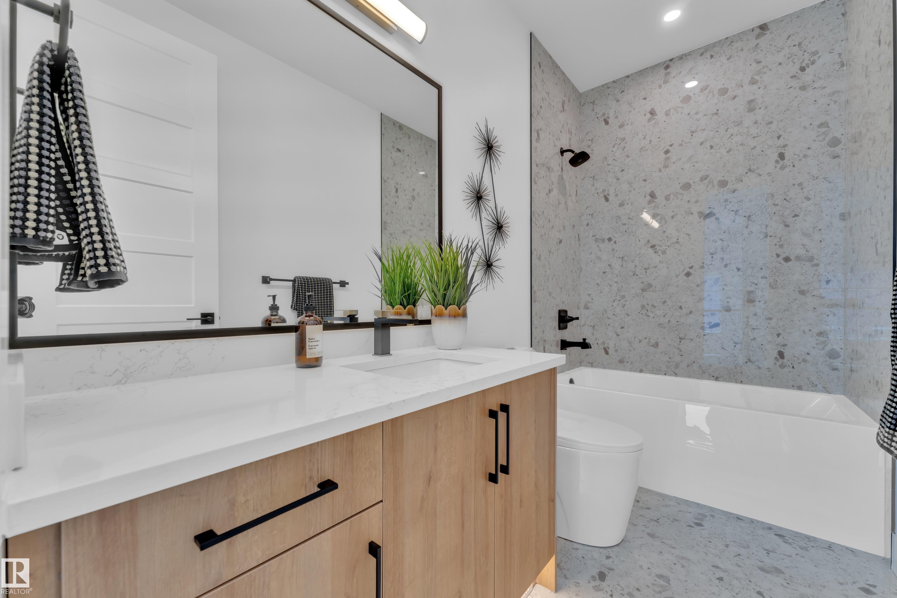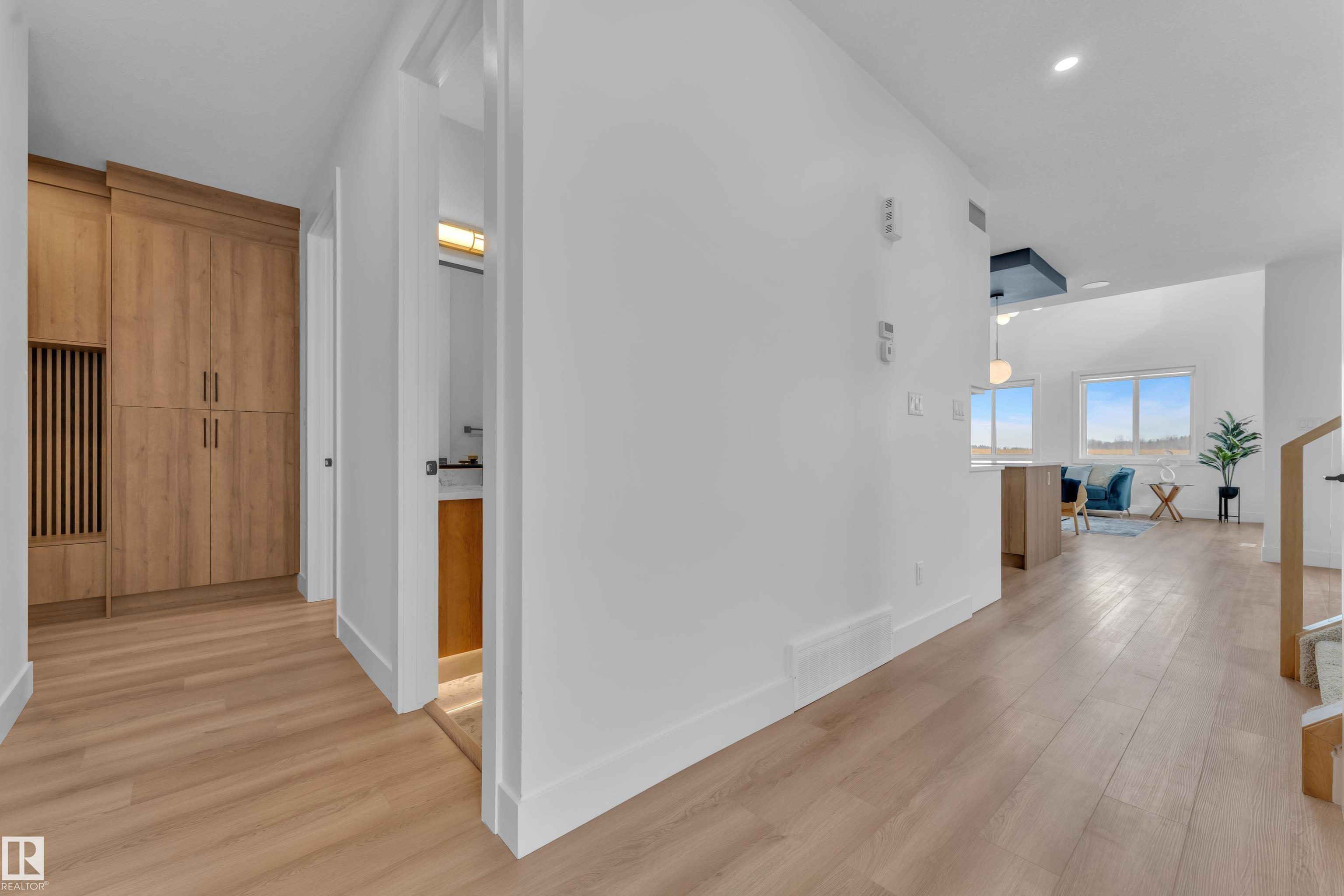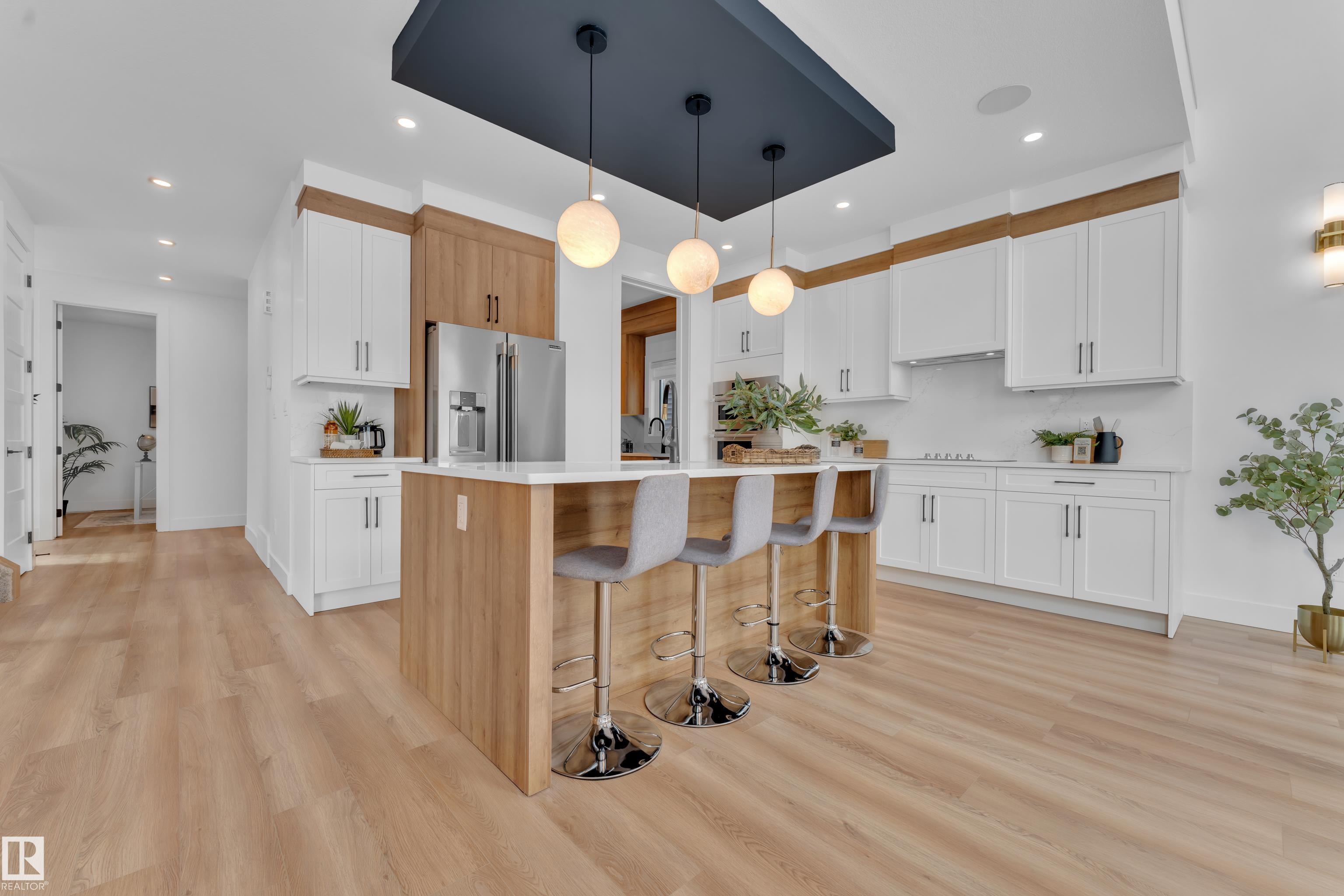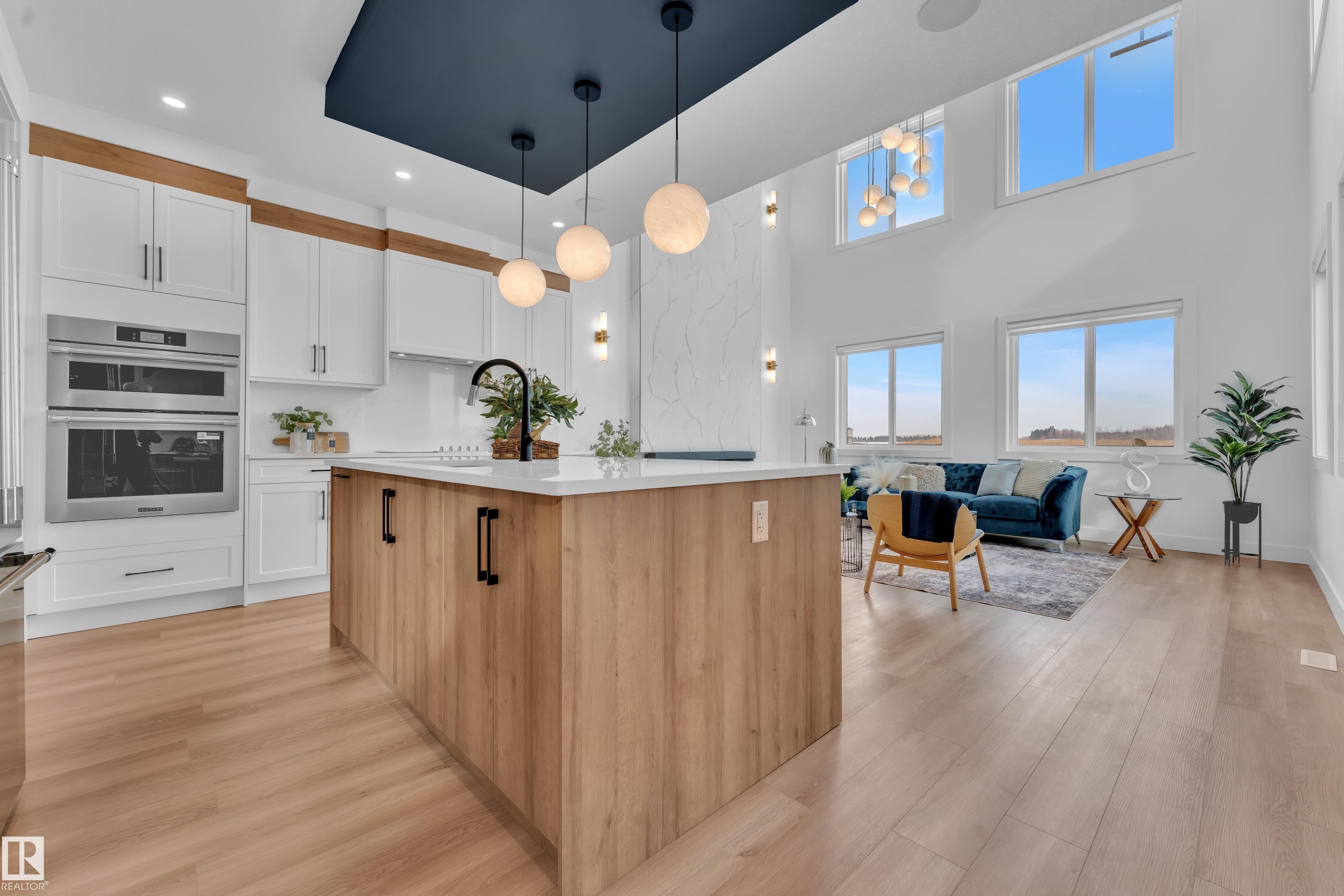 Backing onto park, stunning 2-storey home on a 28 Pkt REGULAR LOT offers 2666 SF of modern living. Beautifully designed open to above LIVING AREA WRAPPED WITH 8 MASSIVE WINDOWS, filling the home with natural light. MAIN FLOOR FULL BED & BATH, MASSIVE SPICE KITCHEN, large island and elegant cabinetry flows into a spacious living area OVERLOOKING GREEN SPACE. Upstairs features 2 MASTER BEDROOMS with luxurious ensuites, bonus room overlooking main living area and park, plus 2 additional bedrooms. Other feature include Indent ceilings, MAN DOOR to garage, Vinyl DECK with metal spindle railing, 3 WINDOWS in basement and 8 FT DOORS throughout to add style & SEPARATE SIDE ENTRANCE for future legal suite potential. Close to COSTCO, Multiple retail plazas, schools and major amenities. Welcome Home!!