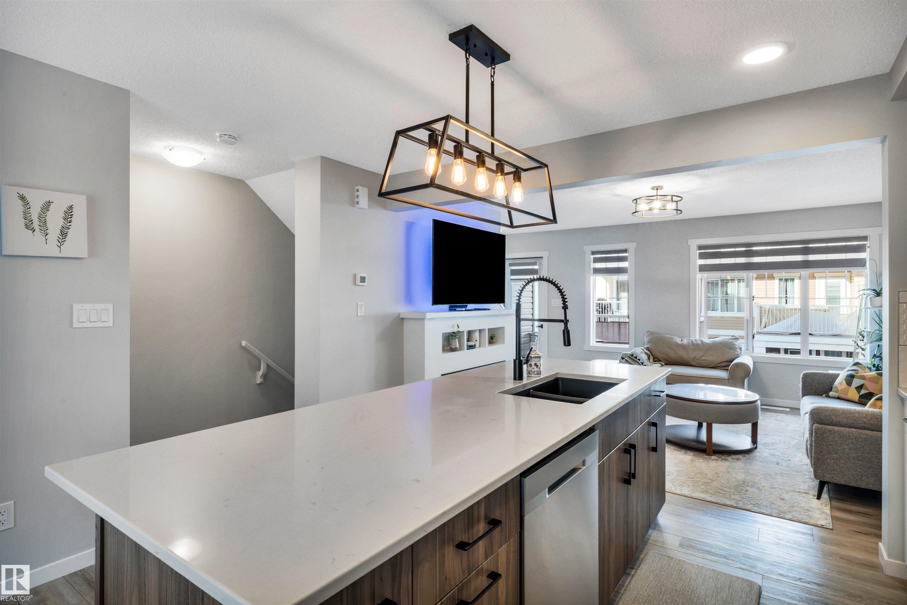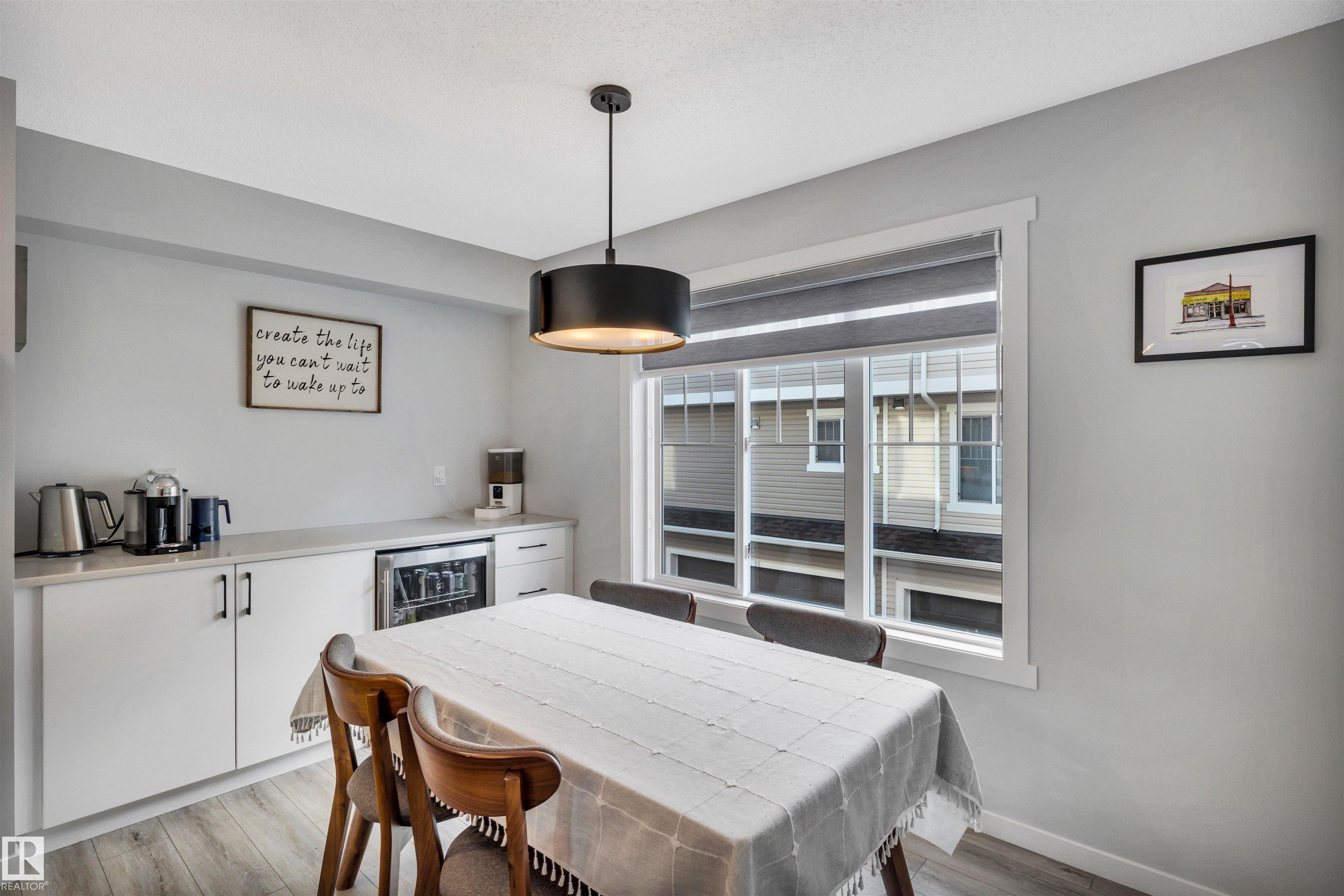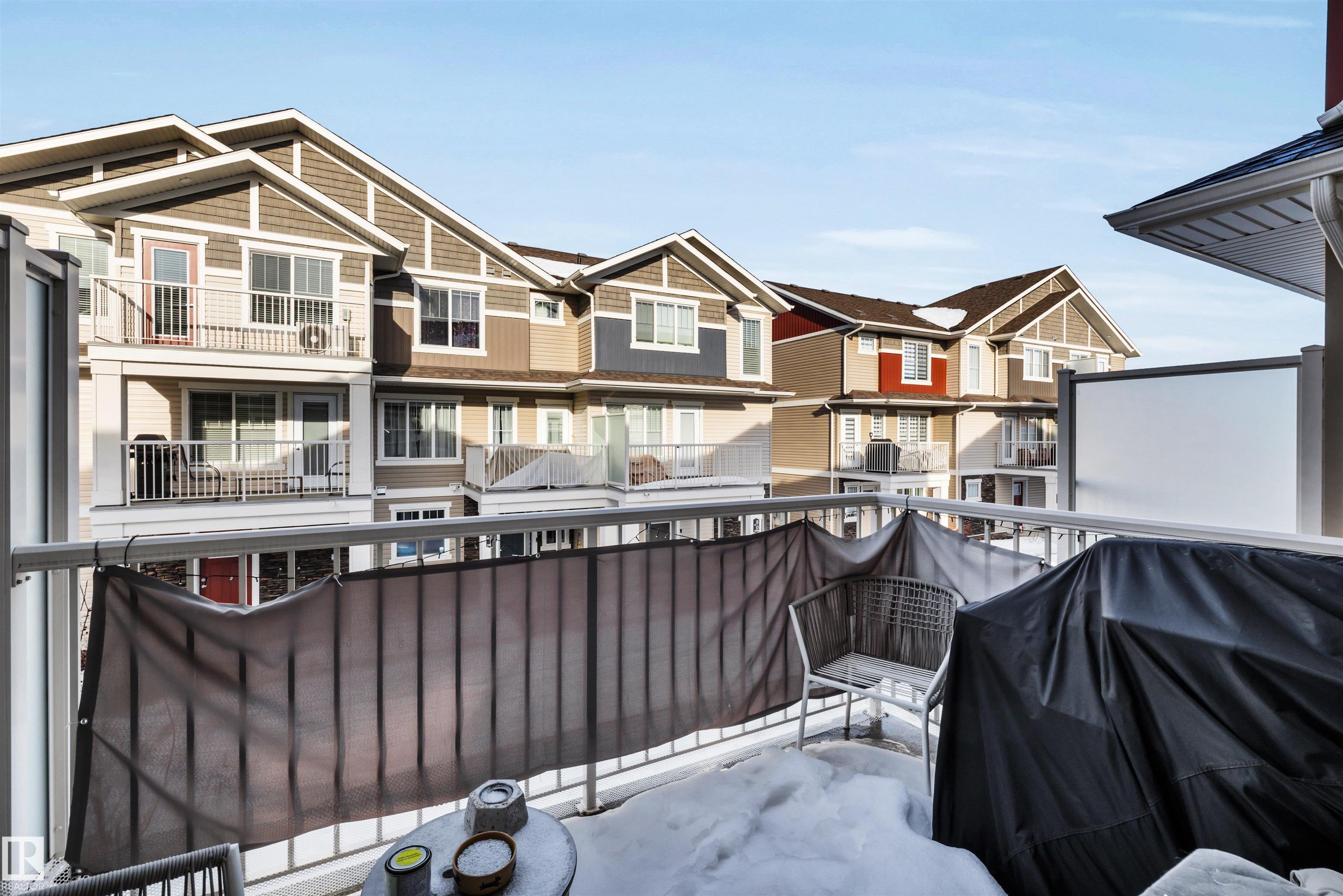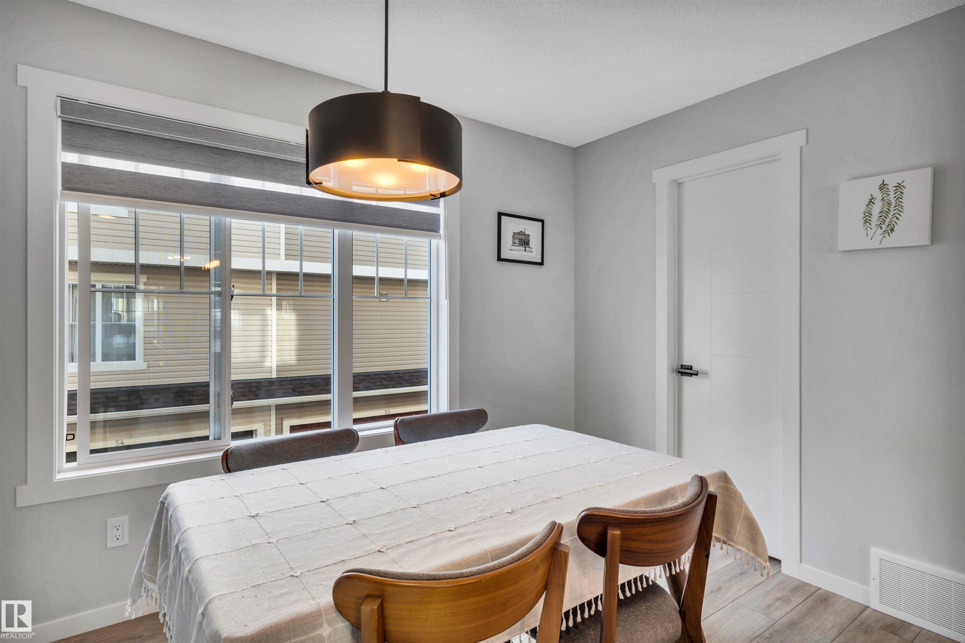 Modern 1408 sq. ft. 3 storey townhouse is in immaculate condition! The owners carefully planned every upgrade to maximize comfort, quality and long-term enjoyment. No carpet here, vinyl plank flooring throughout! Stunning kitchen with upgraded quartz countertops, soft close drawers & cabinets and upgraded stainless steel appliances. The dining room has a built-in coffee bar plus a mini fridge and a walk-in pantry. The living room has an electric fireplace and large windows. Balcony off the living room is perfect to BBQ or enjoy your morning coffee. There are 2 primary bedrooms on the 3rd floor, each with their own walk-in closet and ensuite featuring granite counters, heated towel racks and LED lit mirrors! Zebra blinds throughout the unit. A main floor flex room and access to the double attached garage complete this home. Central A/C and vacuum. Quiet location with shopping, walking trails and a pond nearby.