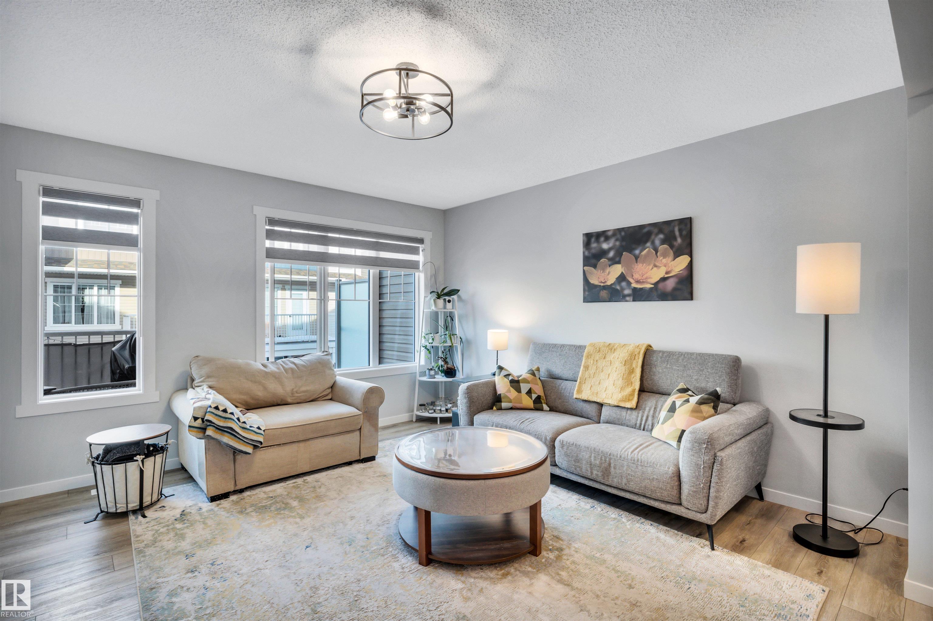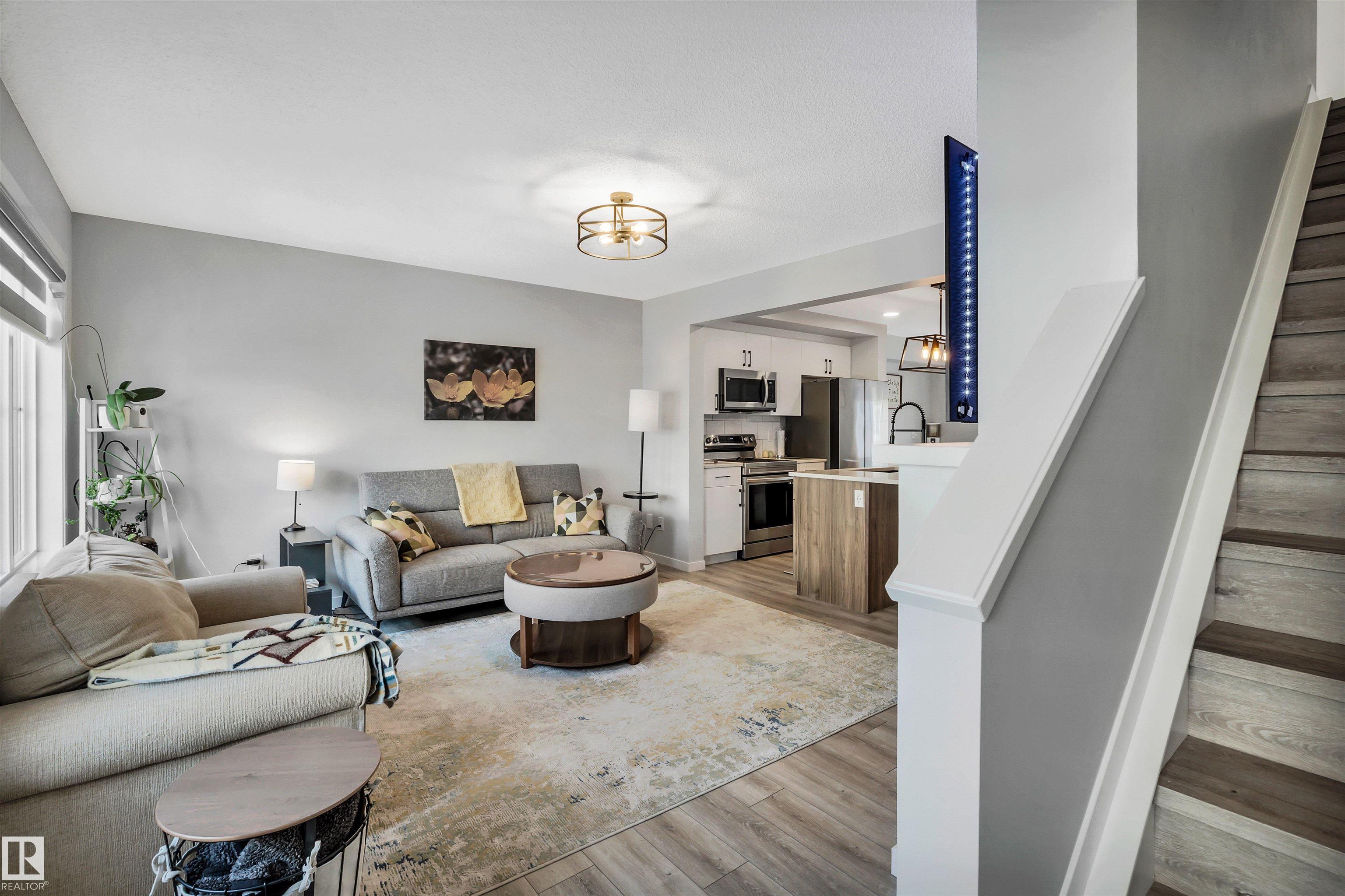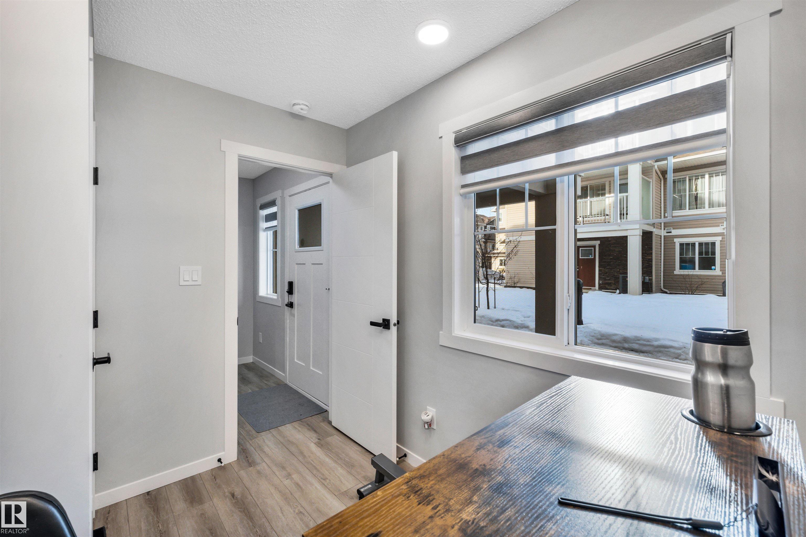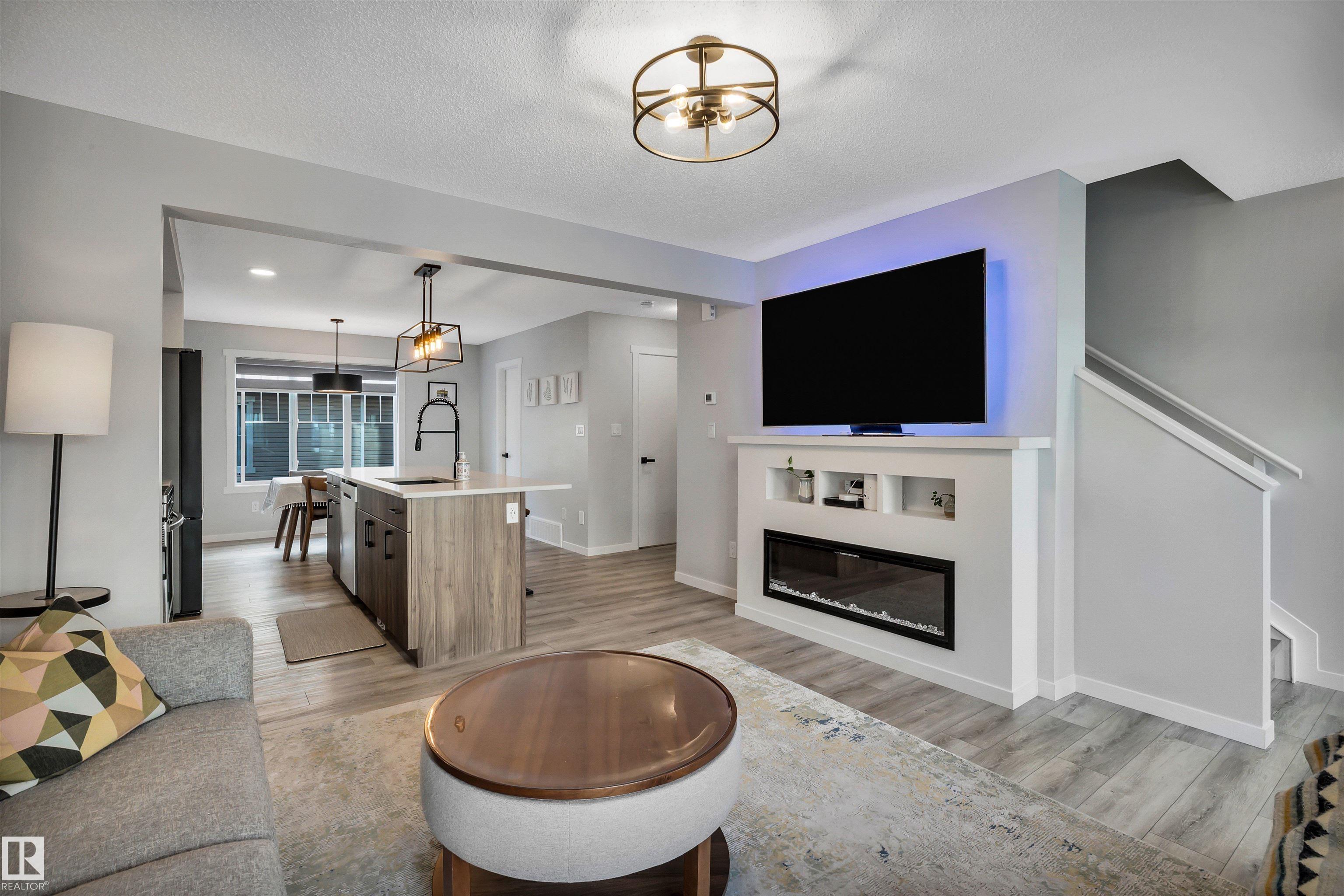 Modern 1408 sq. ft. 3 storey townhouse is in immaculate condition! The owners carefully planned every upgrade to maximize comfort, quality and long-term enjoyment. No carpet here, vinyl plank flooring throughout! Stunning kitchen with upgraded quartz countertops, soft close drawers & cabinets and upgraded stainless steel appliances. The dining room has a built-in coffee bar plus a mini fridge and a walk-in pantry. The living room has an electric fireplace and large windows. Balcony off the living room is perfect to BBQ or enjoy your morning coffee. There are 2 primary bedrooms on the 3rd floor, each with their own walk-in closet and ensuite featuring granite counters, heated towel racks and LED lit mirrors! Zebra blinds throughout the unit. A main floor flex room and access to the double attached garage complete this home. Central A/C and vacuum. Quiet location with shopping, walking trails and a pond nearby.