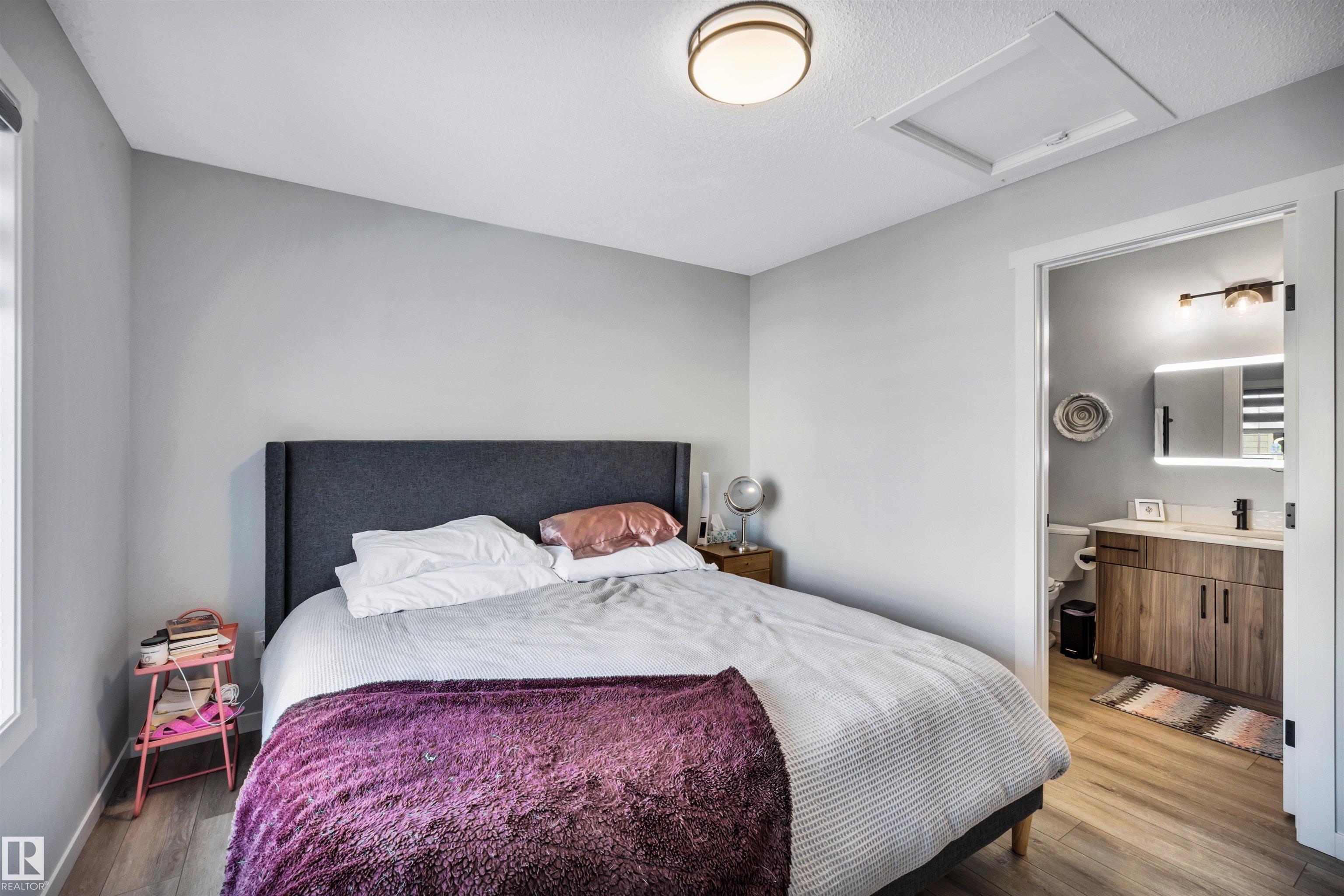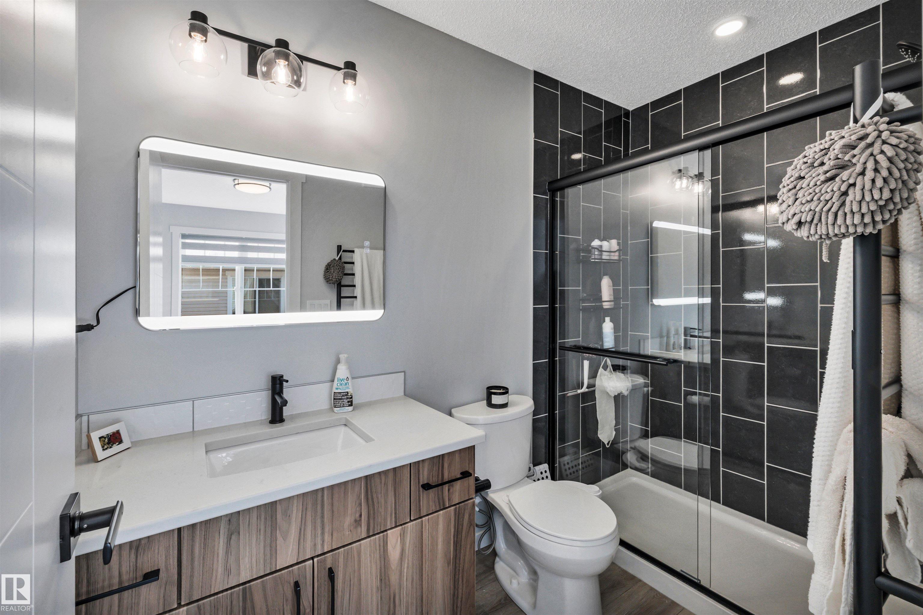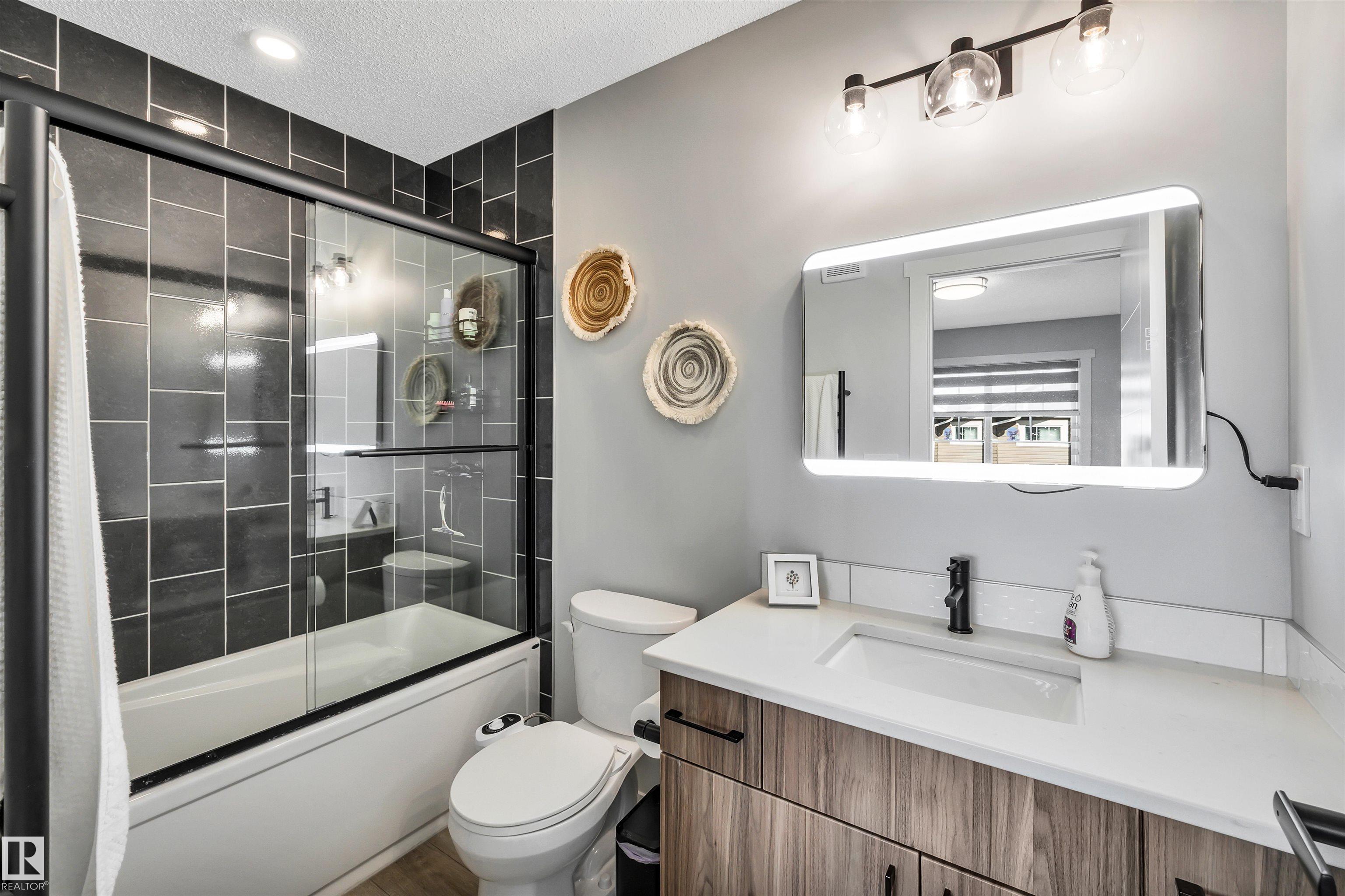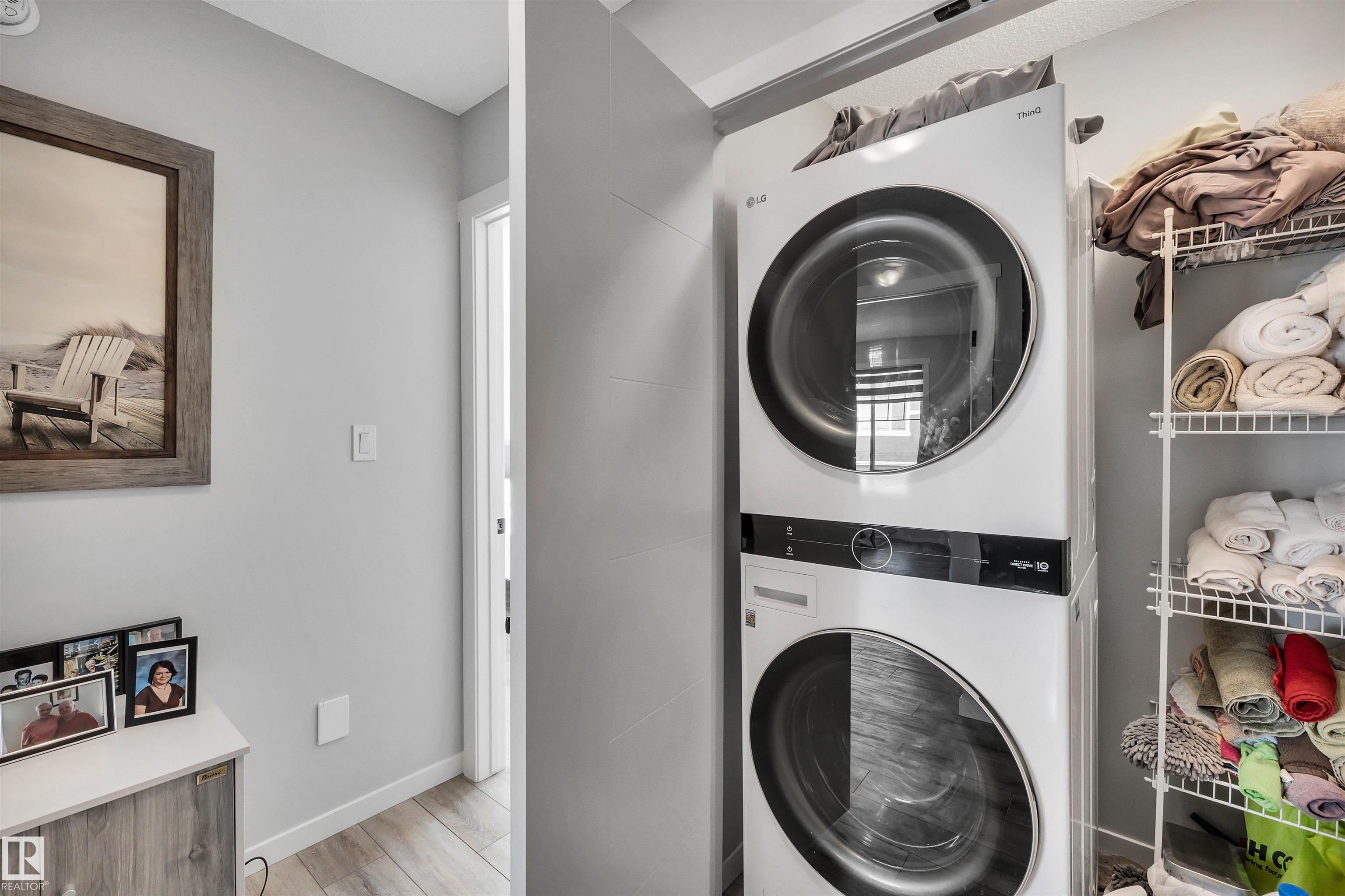 Modern 1408 sq. ft. 3 storey townhouse is in immaculate condition! The owners carefully planned every upgrade to maximize comfort, quality and long-term enjoyment. No carpet here, vinyl plank flooring throughout! Stunning kitchen with upgraded quartz countertops, soft close drawers & cabinets and upgraded stainless steel appliances. The dining room has a built-in coffee bar plus a mini fridge and a walk-in pantry. The living room has an electric fireplace and large windows. Balcony off the living room is perfect to BBQ or enjoy your morning coffee. There are 2 primary bedrooms on the 3rd floor, each with their own walk-in closet and ensuite featuring granite counters, heated towel racks and LED lit mirrors! Zebra blinds throughout the unit. A main floor flex room and access to the double attached garage complete this home. Central A/C and vacuum. Quiet location with shopping, walking trails and a pond nearby.