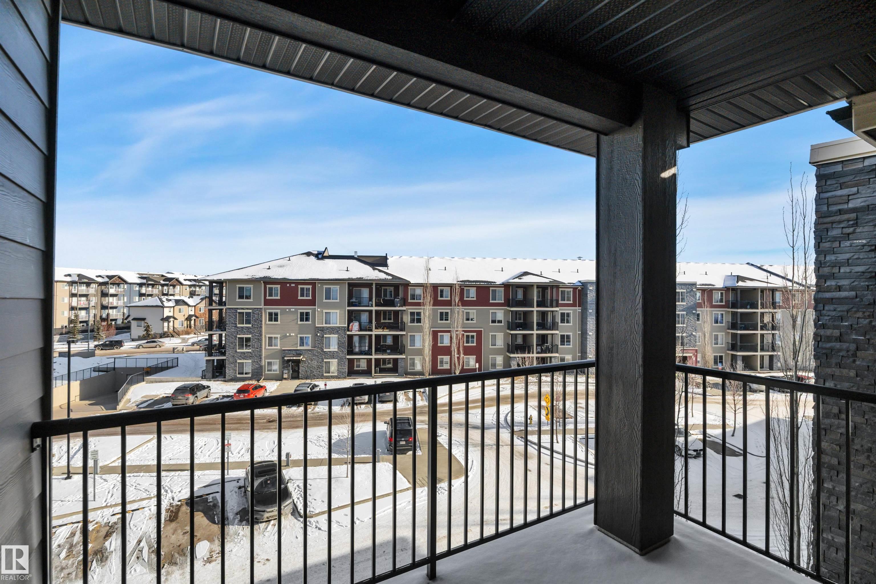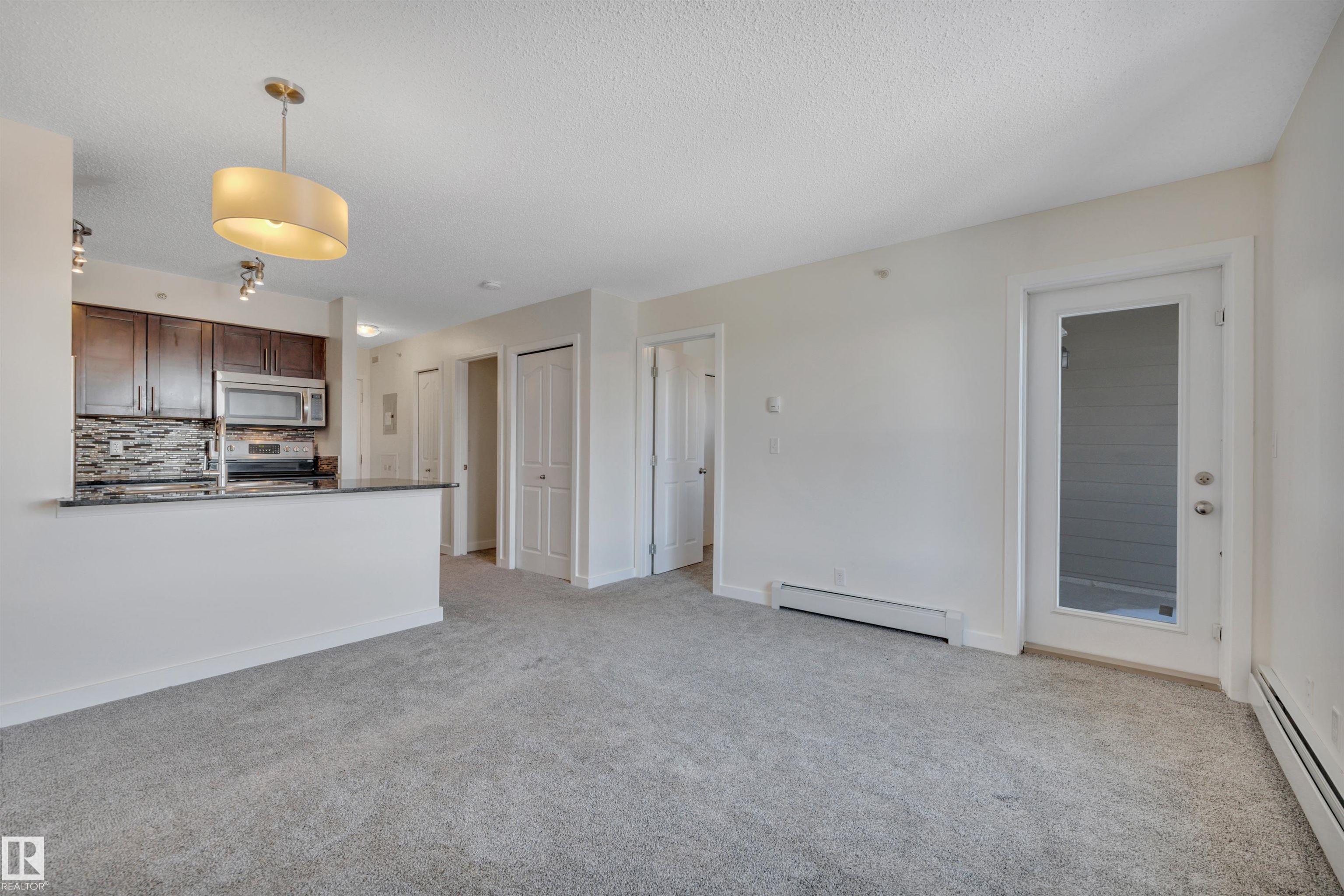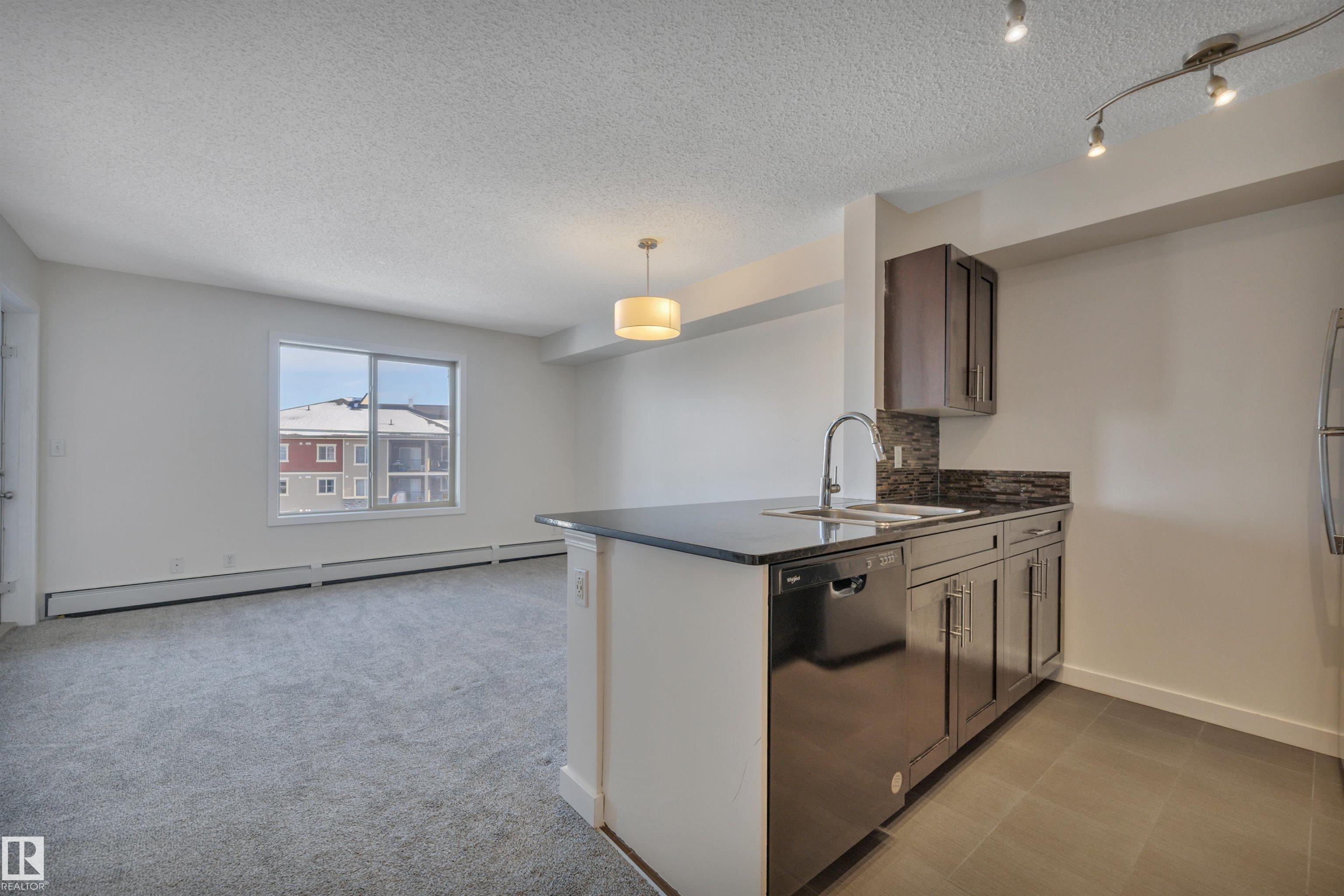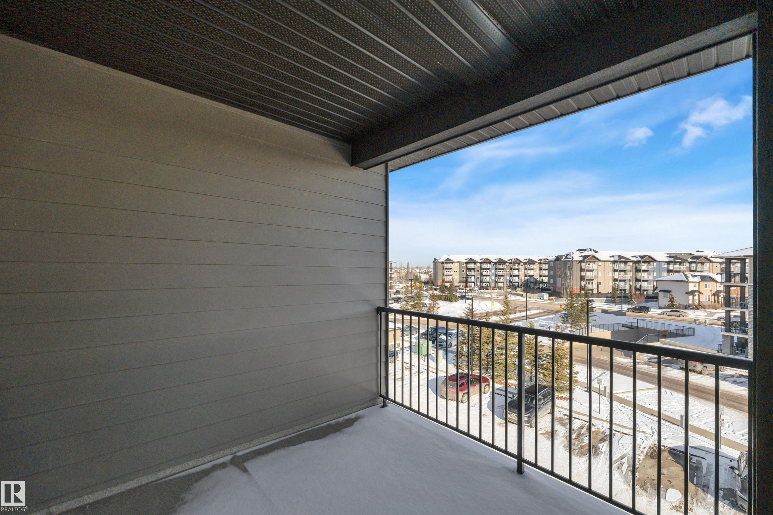 Welcome to Rutherford Landing! This TOP-FLOOR (4th level) 1 bedroom + DEN condo offers a bright and inviting layout with an easy, functional flow?perfect for low-maintenance living. The open-concept main living space is filled with natural light and connects seamlessly to a well-designed kitchen featuring rich cabinetry, stainless steel appliances, a practical layout, and a breakfast bar for casual dining or entertaining. The primary bedroom is generously sized, while the den provides flexible space for a home office, guest area, or additional storage. Step outside to your LARGE private balcony?an ideal spot to enjoy summer evenings, your morning coffee, or simply relax with added outdoor space. Complete with in-suite laundry and TWO TITLED above-ground parking stalls, this unit offers both comfort and convenience. Located close to shopping, parks, schools, Anthony Henday, QE2, and the new LRT expansion, this is a fantastic opportunity for first-time buyers, downsizers, or investors alike.