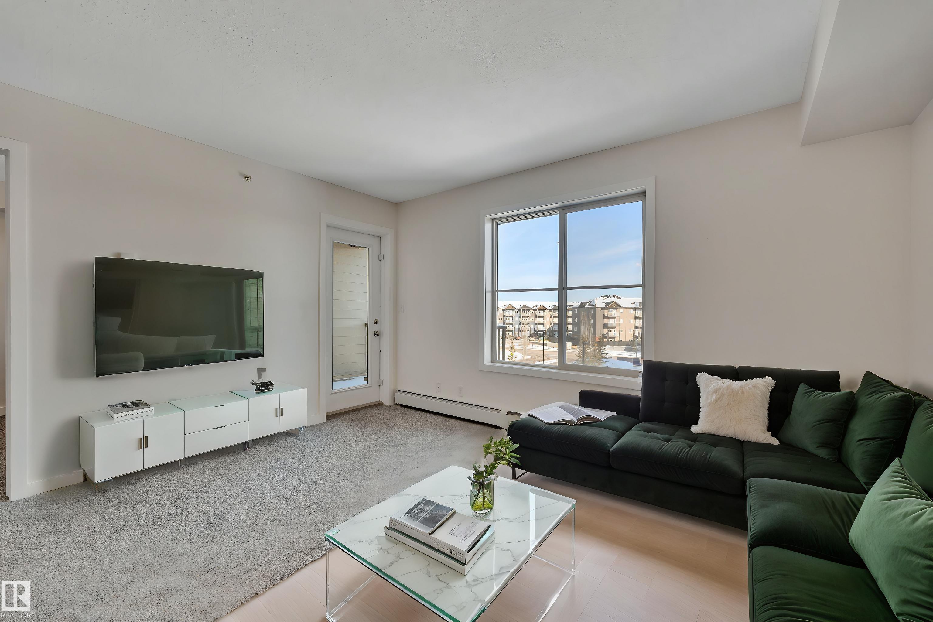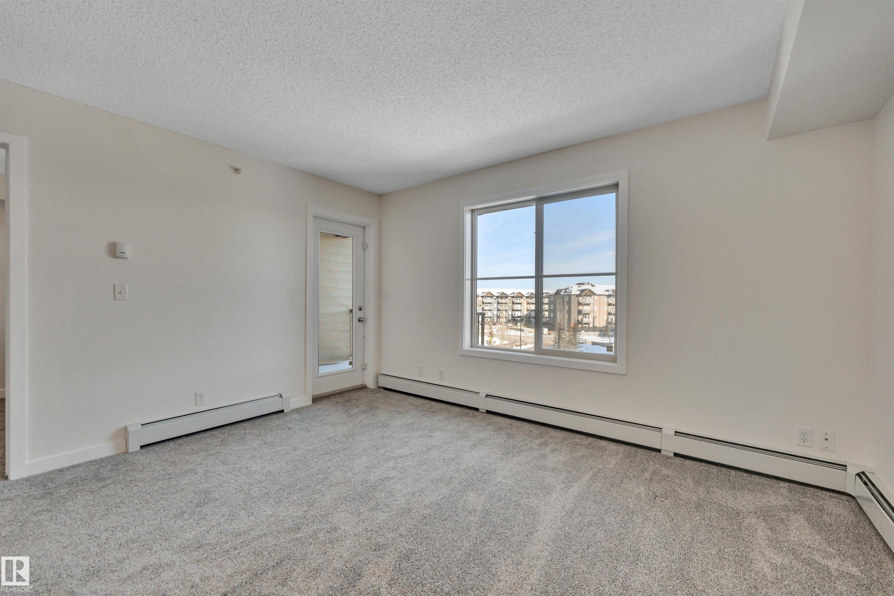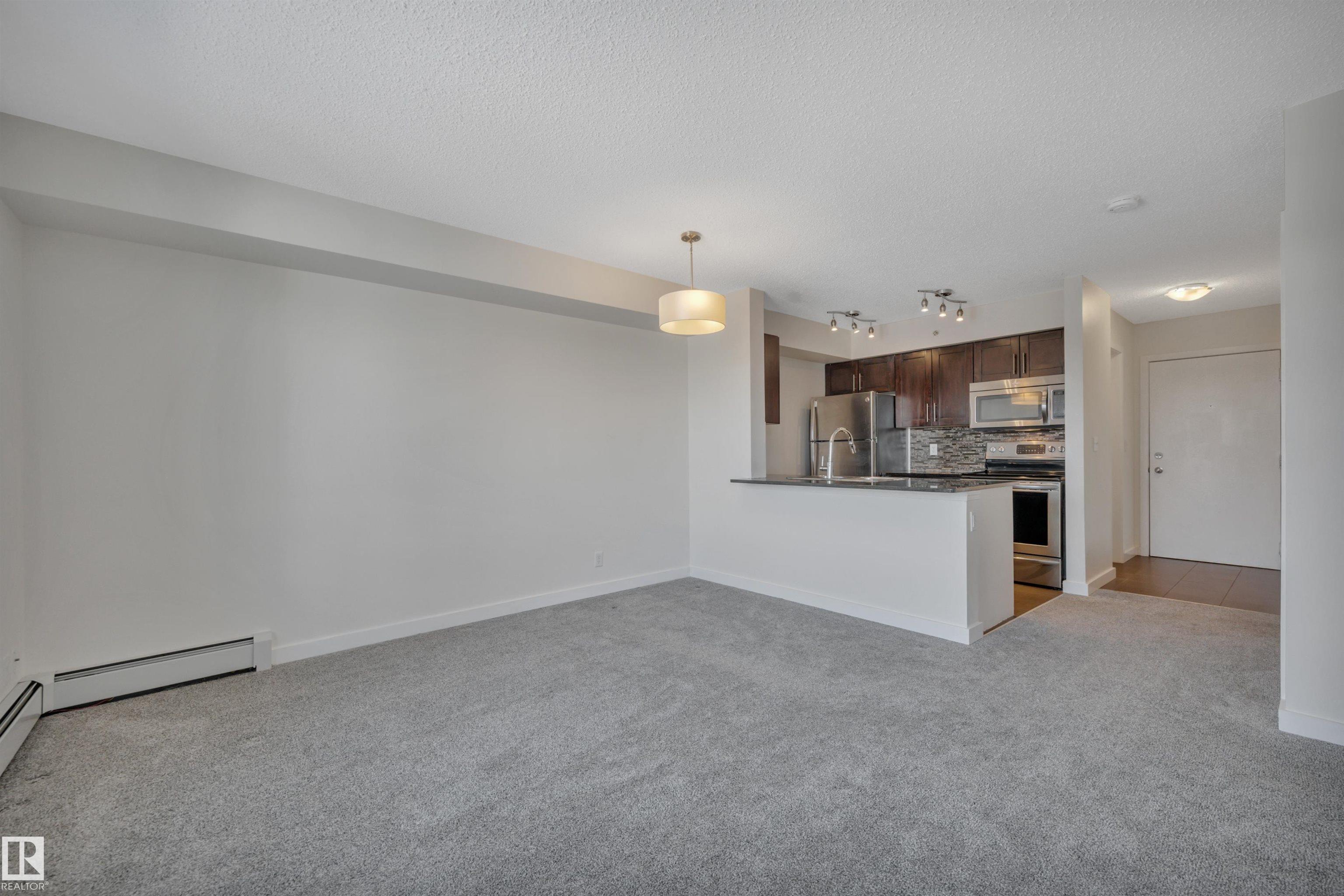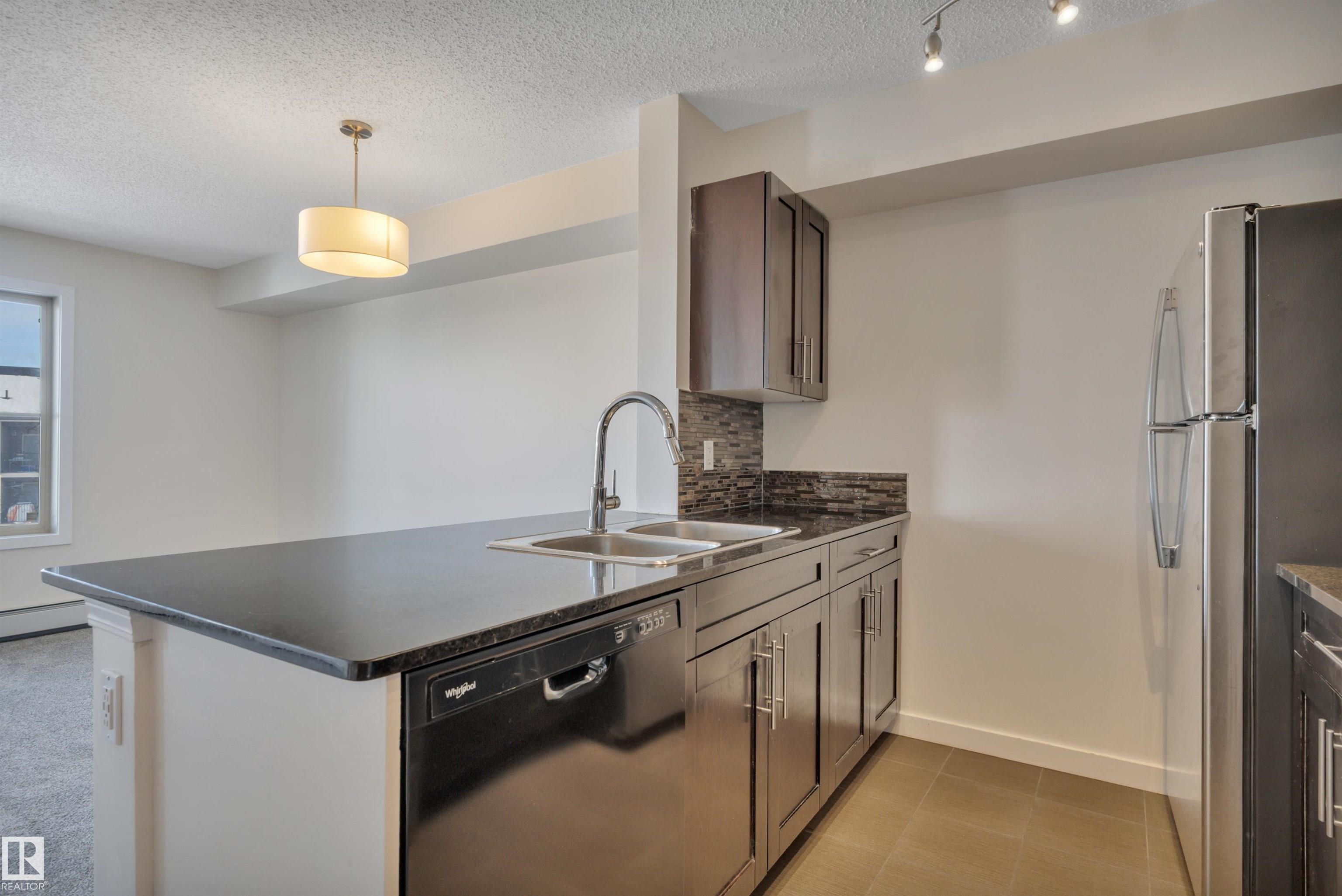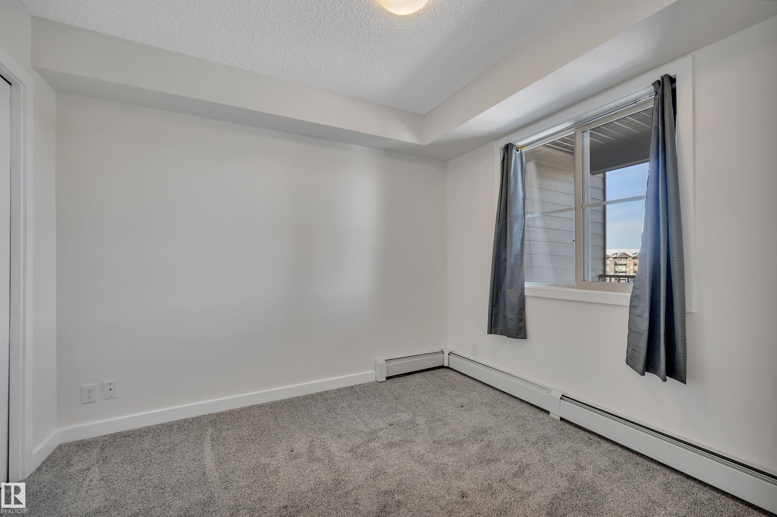 Welcome to Rutherford Landing! This TOP-FLOOR (4th level) 1 bedroom + DEN condo offers a bright and inviting layout with an easy, functional flow?perfect for low-maintenance living. The open-concept main living space is filled with natural light and connects seamlessly to a well-designed kitchen featuring rich cabinetry, stainless steel appliances, a practical layout, and a breakfast bar for casual dining or entertaining. The primary bedroom is generously sized, while the den provides flexible space for a home office, guest area, or additional storage. Step outside to your LARGE private balcony?an ideal spot to enjoy summer evenings, your morning coffee, or simply relax with added outdoor space. Complete with in-suite laundry and TWO TITLED above-ground parking stalls, this unit offers both comfort and convenience. Located close to shopping, parks, schools, Anthony Henday, QE2, and the new LRT expansion, this is a fantastic opportunity for first-time buyers, downsizers, or investors alike.