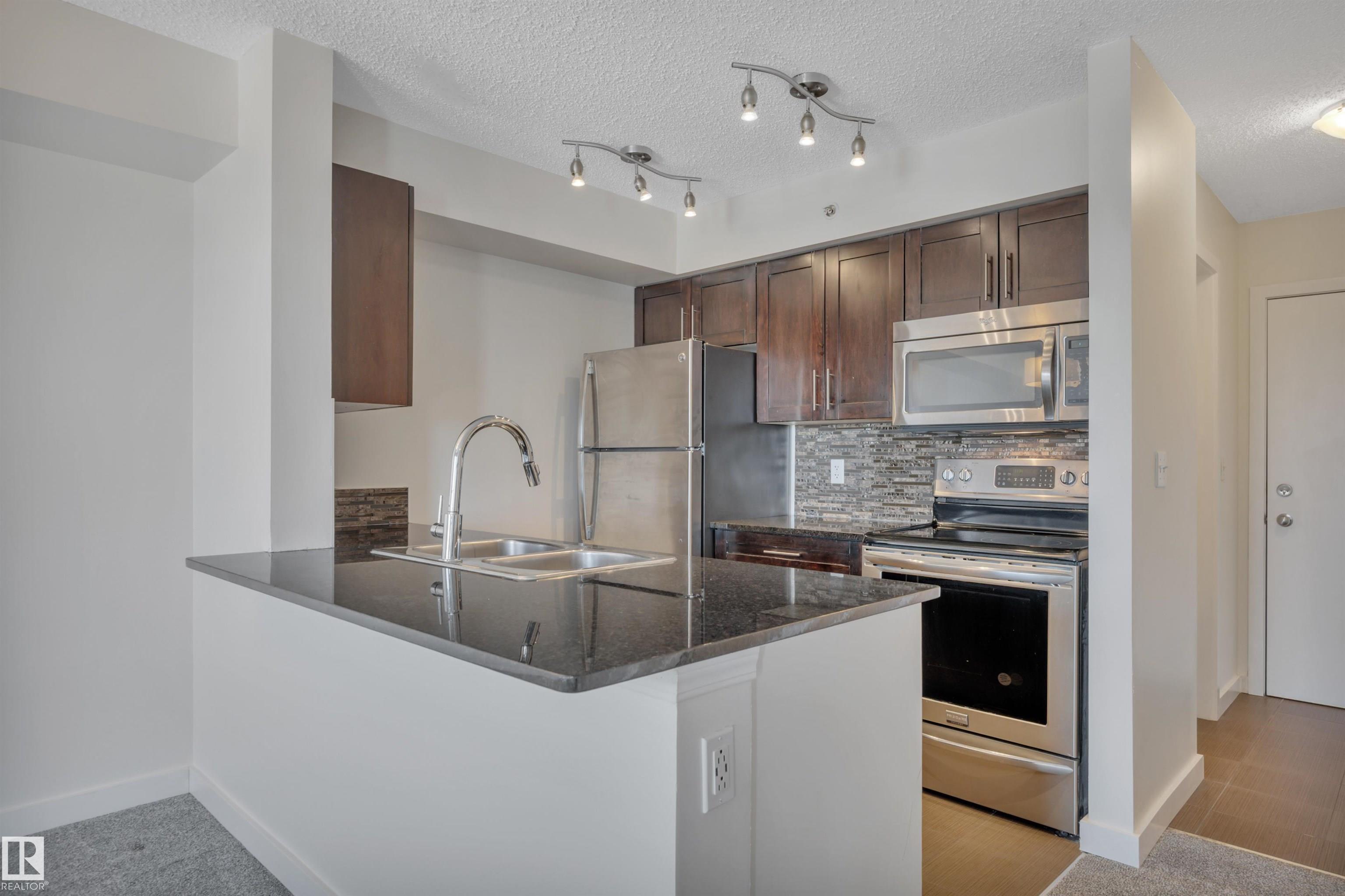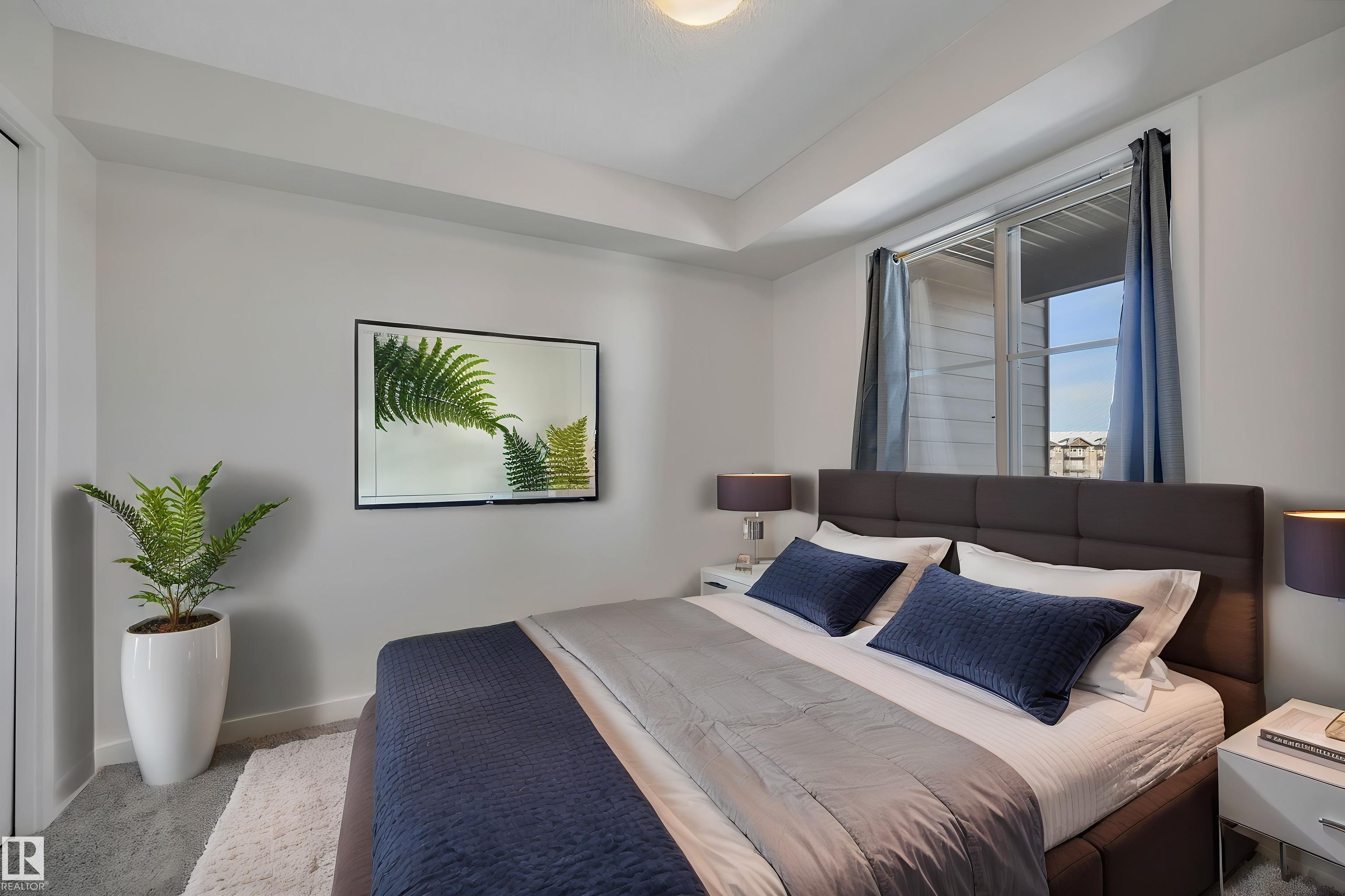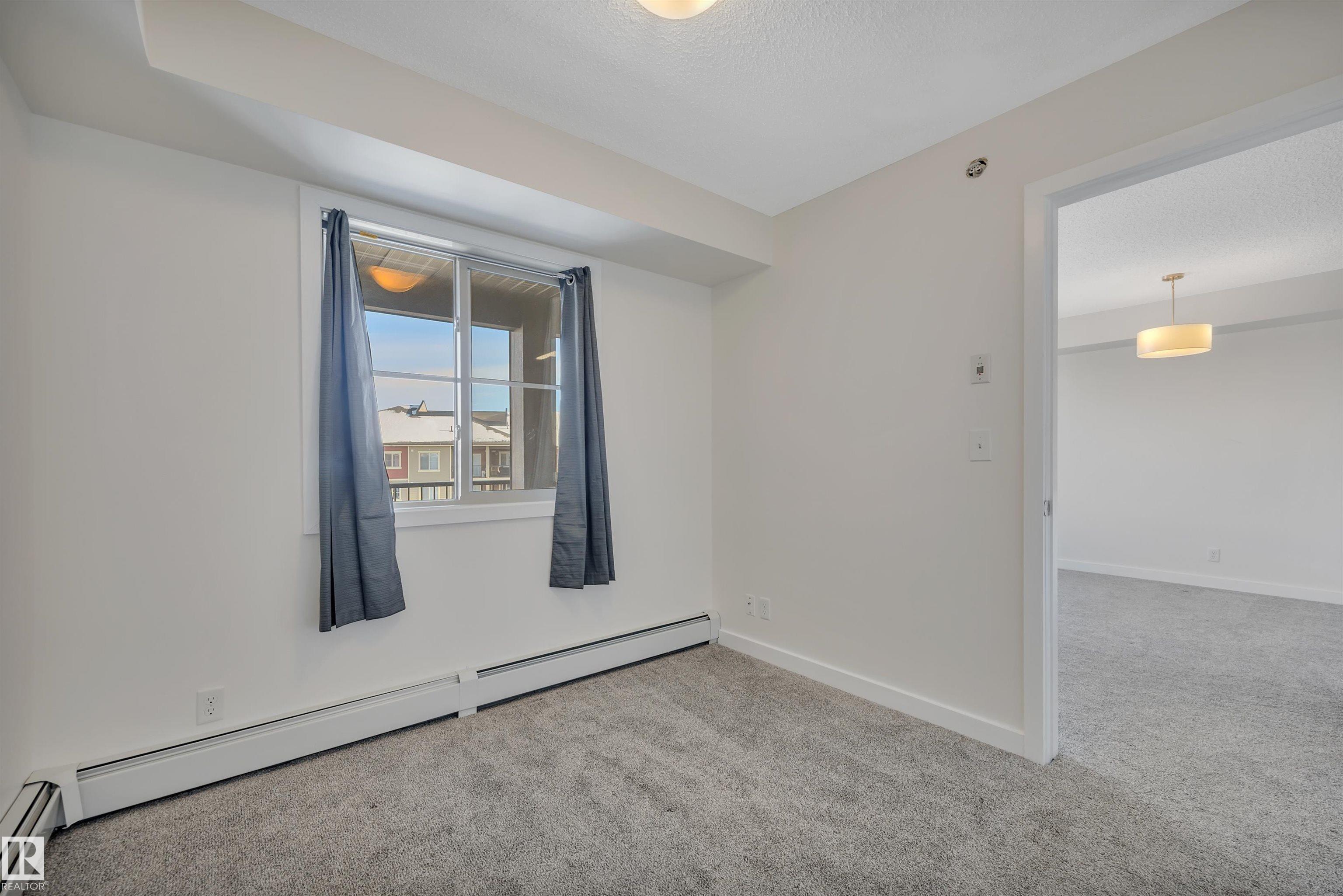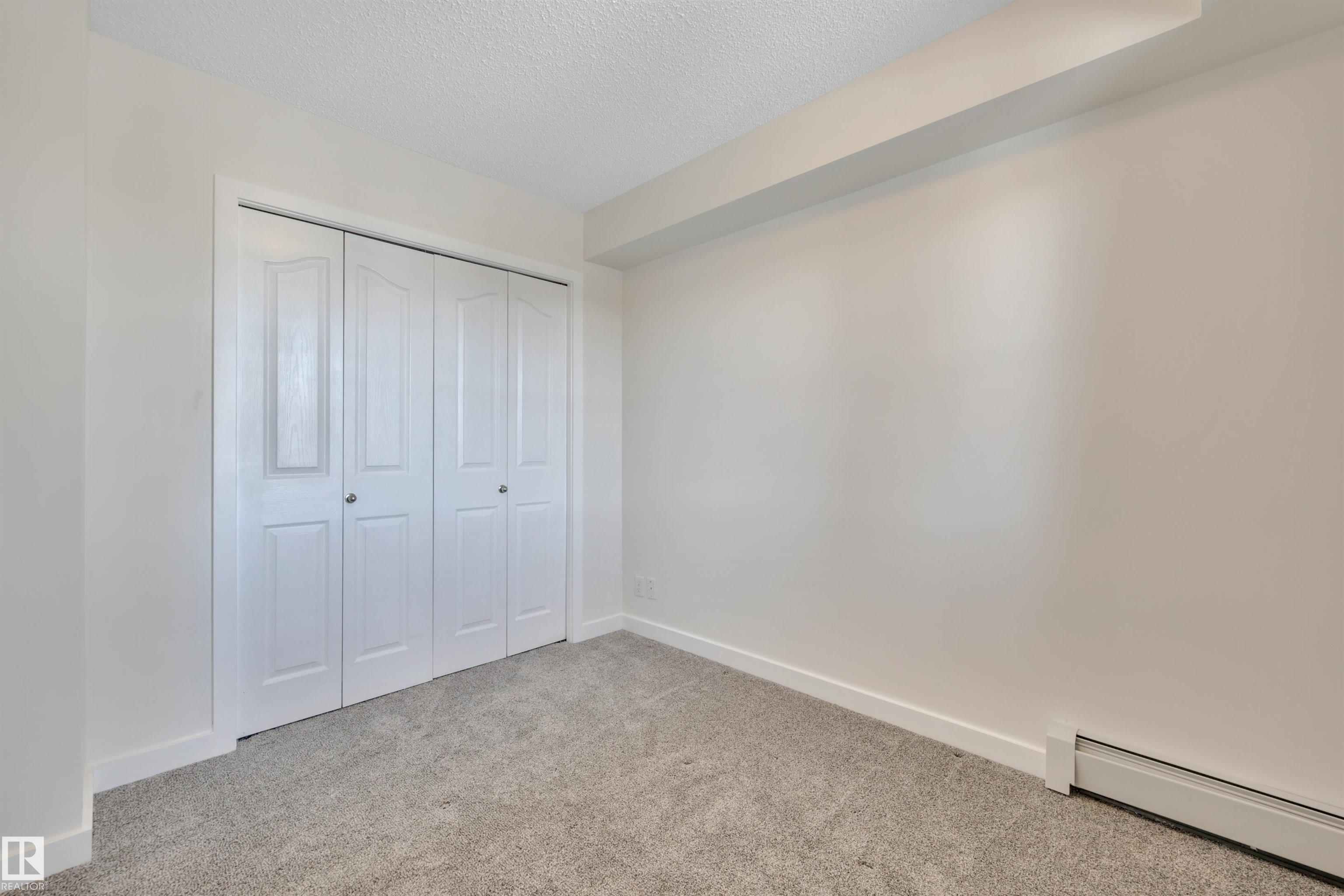 Welcome to Rutherford Landing! This TOP-FLOOR (4th level) 1 bedroom + DEN condo offers a bright and inviting layout with an easy, functional flow?perfect for low-maintenance living. The open-concept main living space is filled with natural light and connects seamlessly to a well-designed kitchen featuring rich cabinetry, stainless steel appliances, a practical layout, and a breakfast bar for casual dining or entertaining. The primary bedroom is generously sized, while the den provides flexible space for a home office, guest area, or additional storage. Step outside to your LARGE private balcony?an ideal spot to enjoy summer evenings, your morning coffee, or simply relax with added outdoor space. Complete with in-suite laundry and TWO TITLED above-ground parking stalls, this unit offers both comfort and convenience. Located close to shopping, parks, schools, Anthony Henday, QE2, and the new LRT expansion, this is a fantastic opportunity for first-time buyers, downsizers, or investors alike.