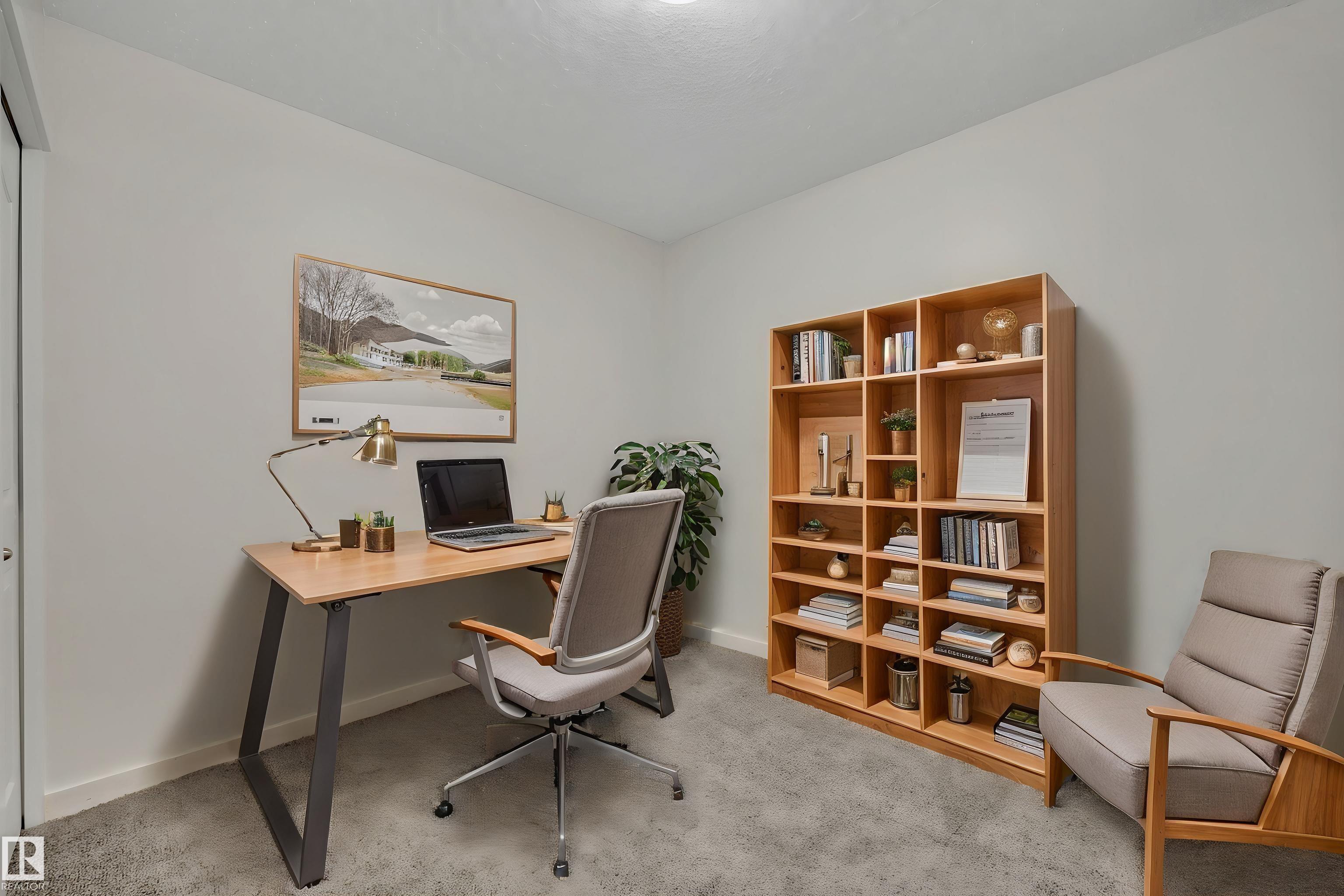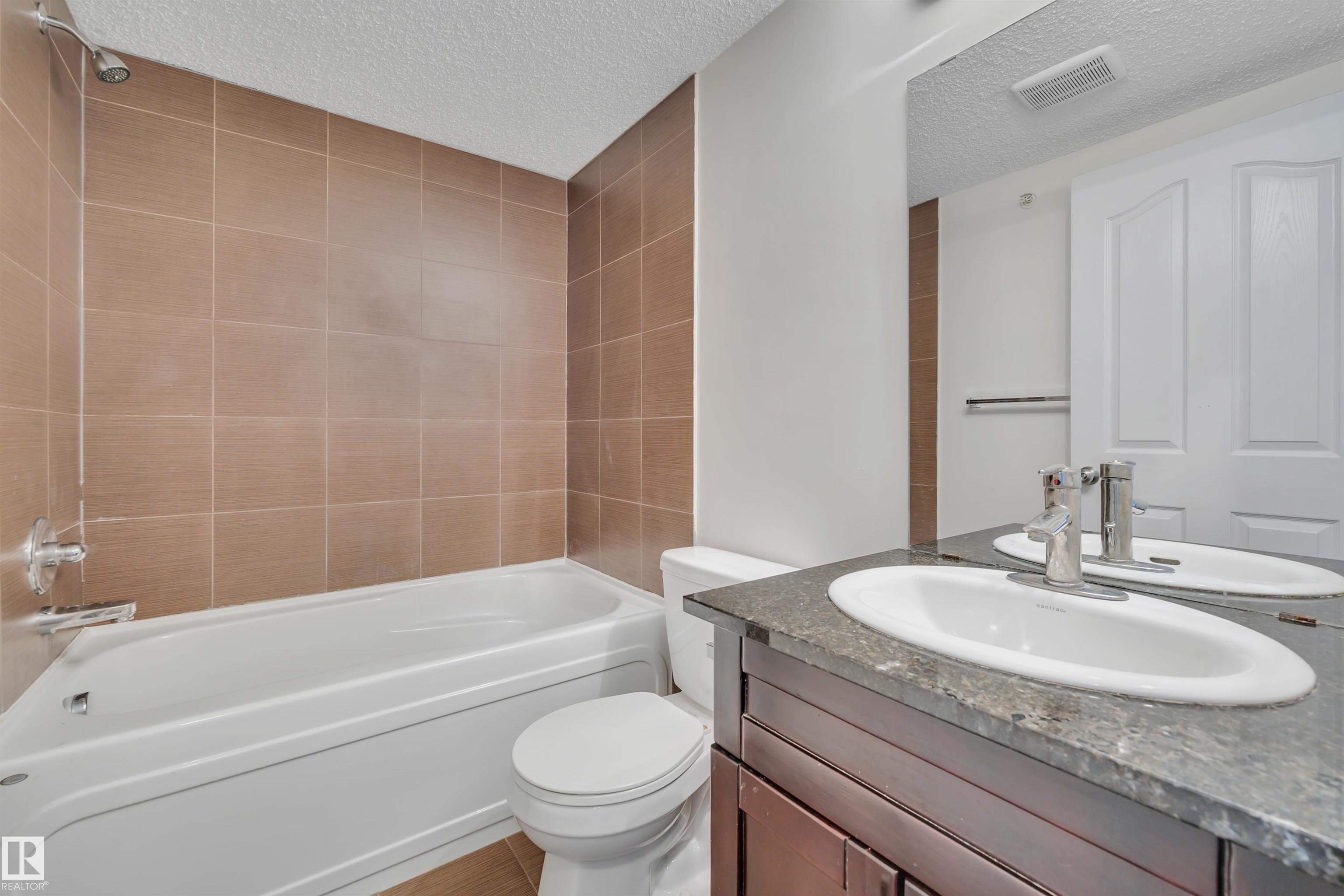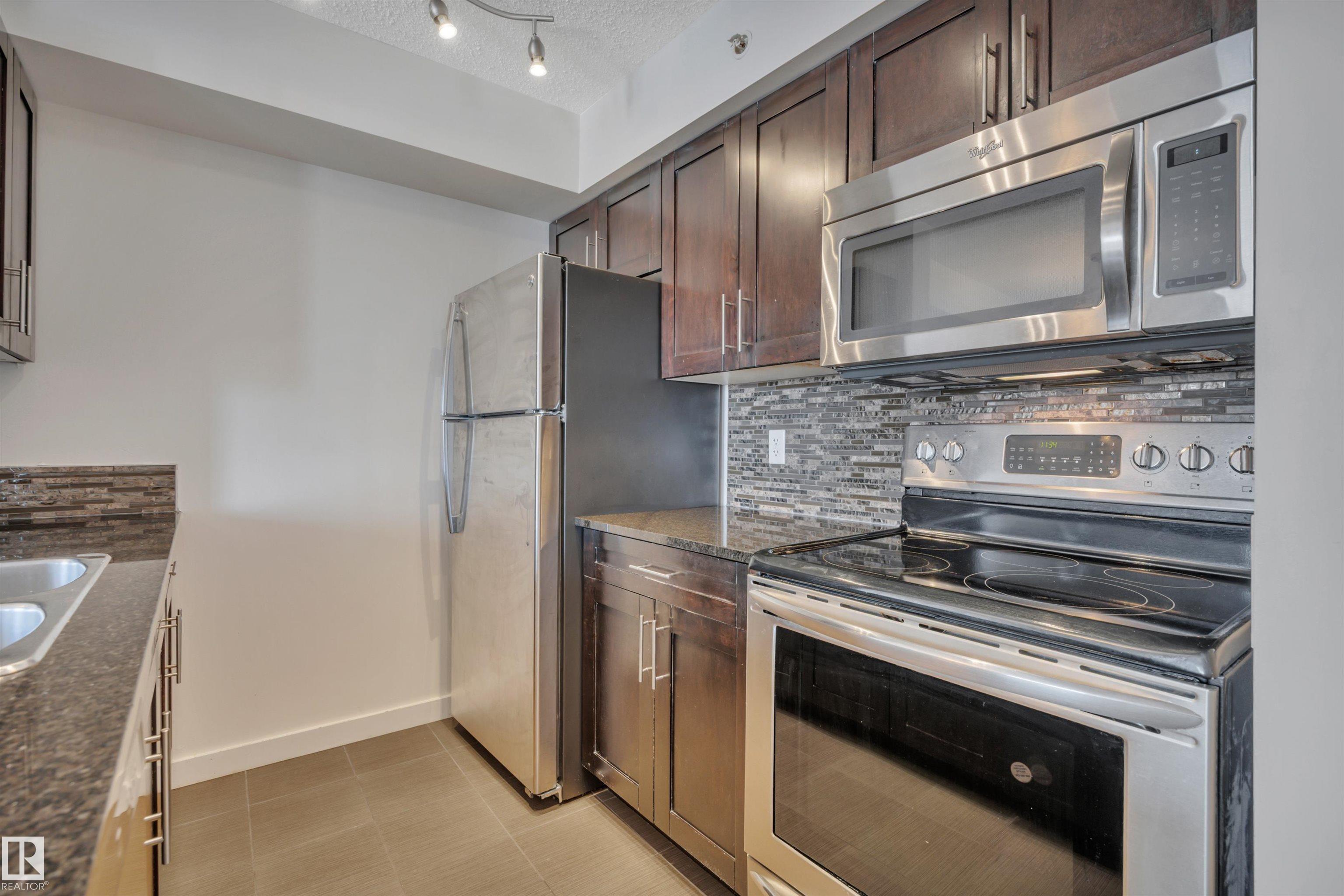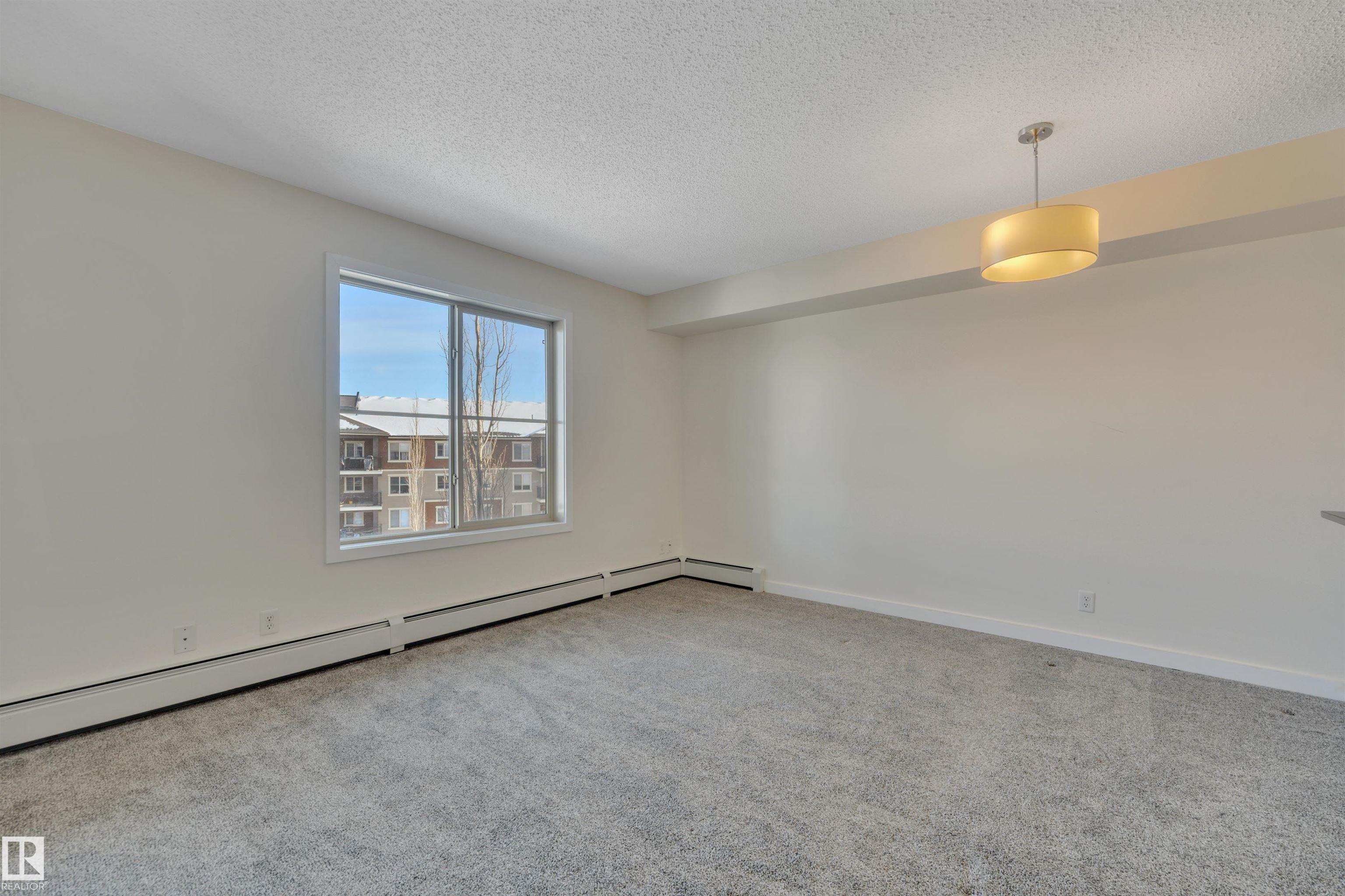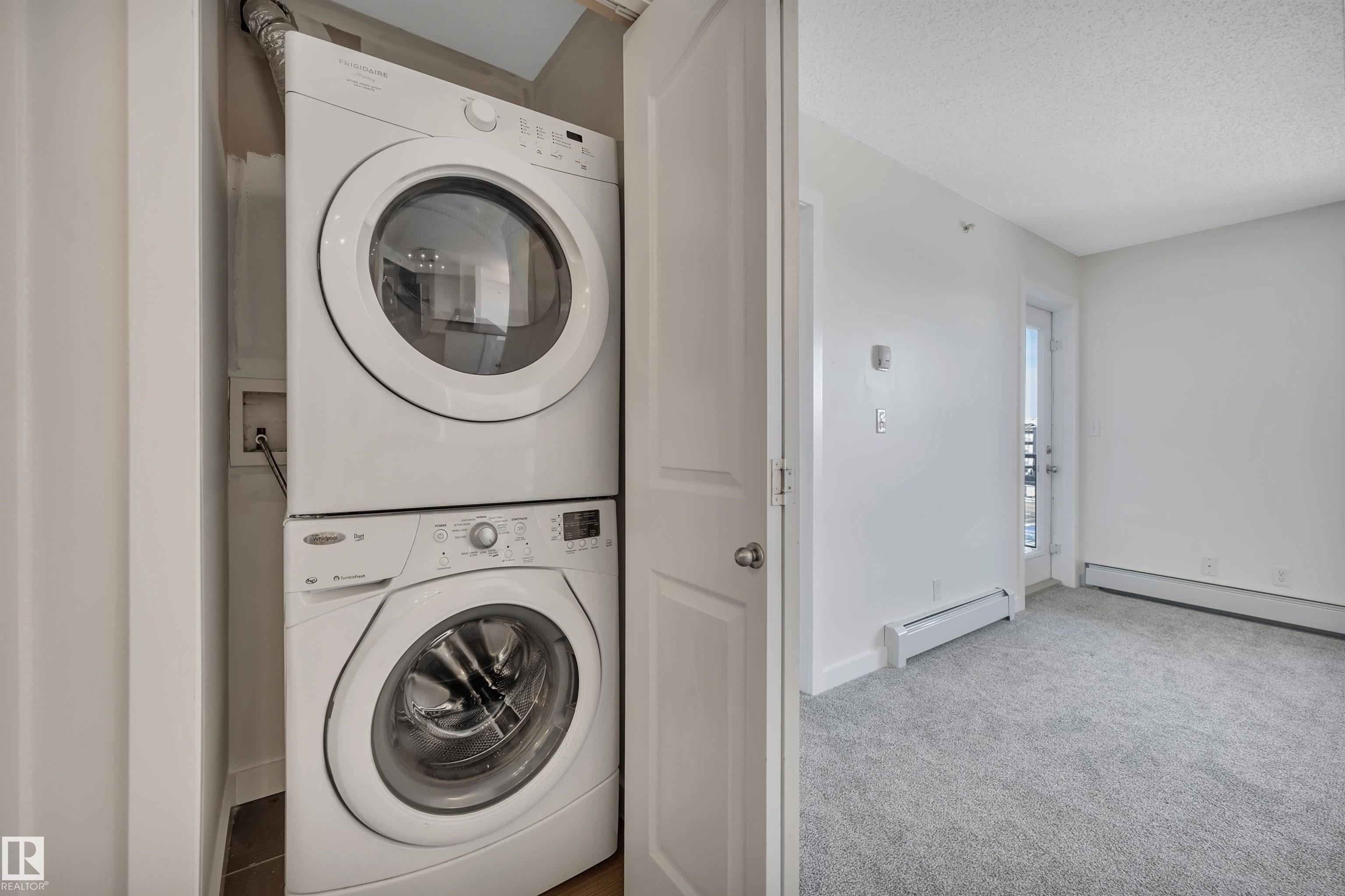 Welcome to Rutherford Landing! This TOP-FLOOR (4th level) 1 bedroom + DEN condo offers a bright and inviting layout with an easy, functional flow?perfect for low-maintenance living. The open-concept main living space is filled with natural light and connects seamlessly to a well-designed kitchen featuring rich cabinetry, stainless steel appliances, a practical layout, and a breakfast bar for casual dining or entertaining. The primary bedroom is generously sized, while the den provides flexible space for a home office, guest area, or additional storage. Step outside to your LARGE private balcony?an ideal spot to enjoy summer evenings, your morning coffee, or simply relax with added outdoor space. Complete with in-suite laundry and TWO TITLED above-ground parking stalls, this unit offers both comfort and convenience. Located close to shopping, parks, schools, Anthony Henday, QE2, and the new LRT expansion, this is a fantastic opportunity for first-time buyers, downsizers, or investors alike.