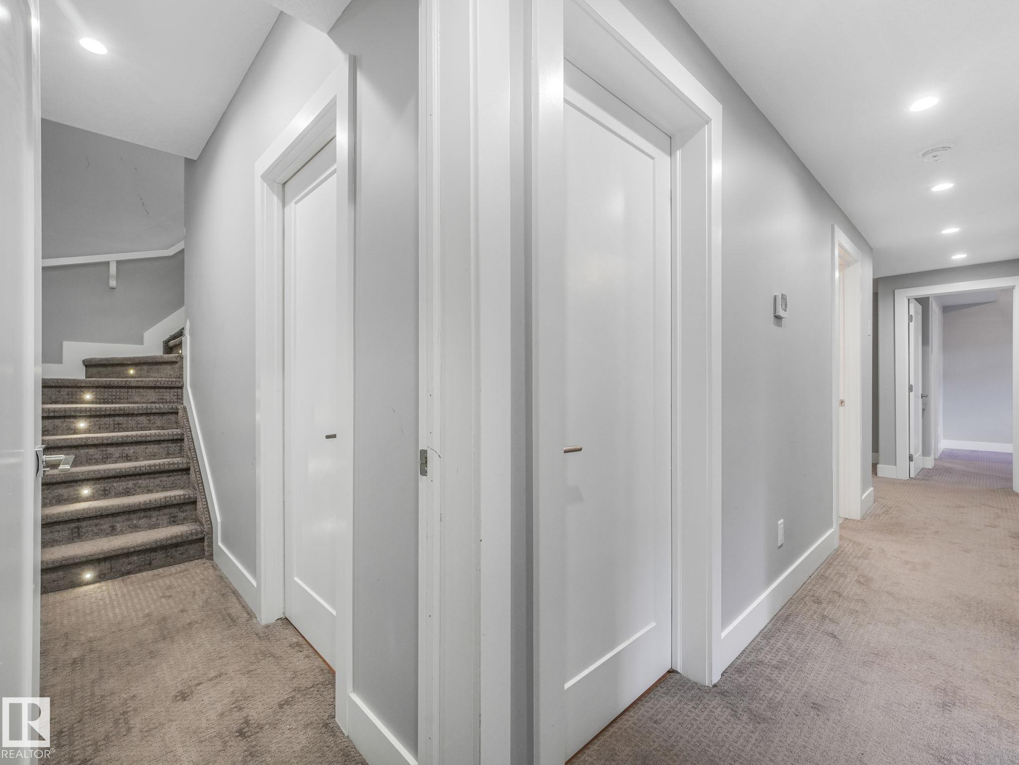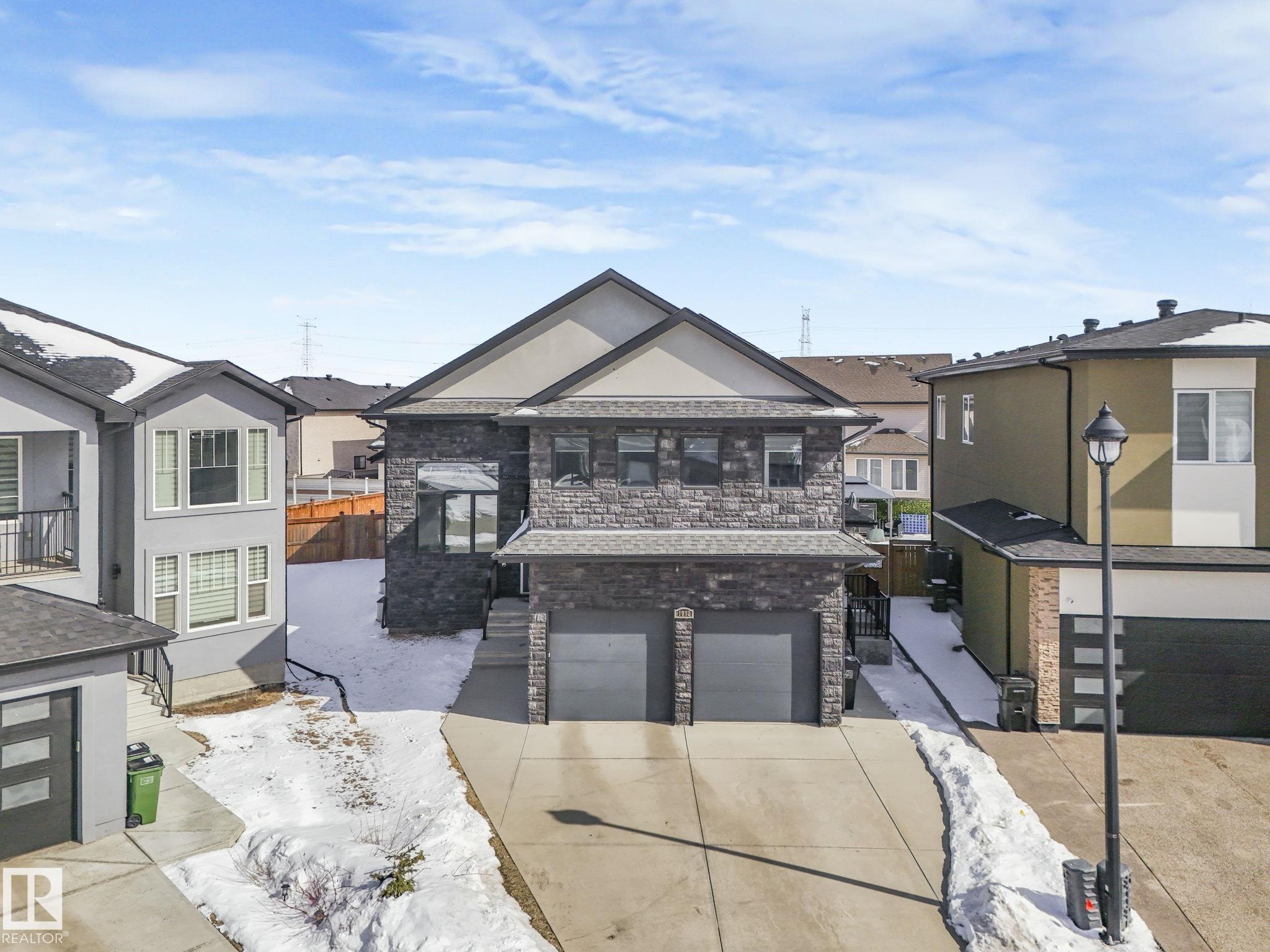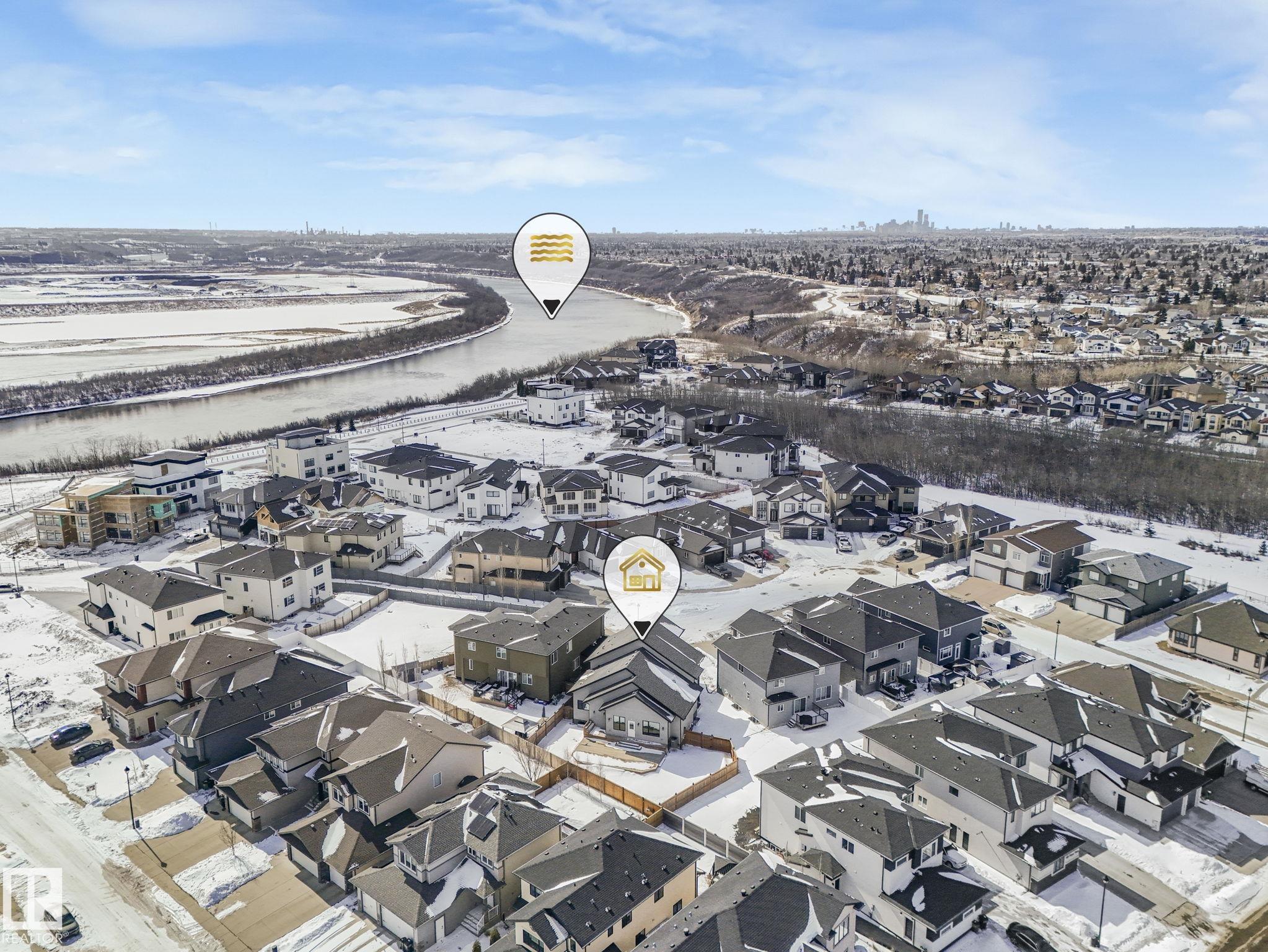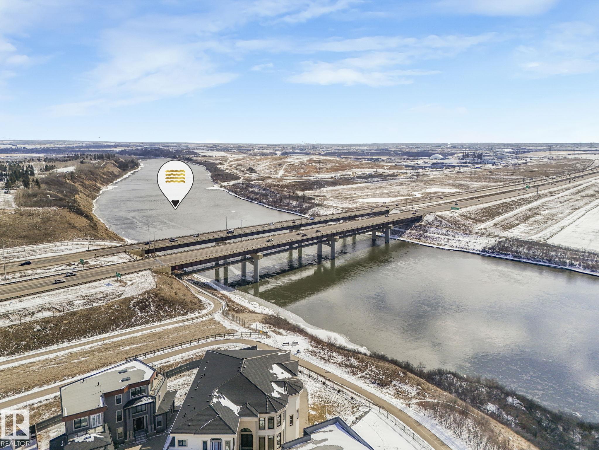 LUXURY LIVING IN AN UNBEATABLE LOCATION! Nestled in a quiet cul-de-sac just steps to the North Saskatchewan River & scenic walking trails, this stunning executive bi-level offers over 4,600 sq ft of upscale living on a large lot. Showcasing a LEGAL SUITE & exceptional craftsmanship, this home impresses with porcelain tile, glass railings & exquisite custom millwork throughout. The main level features a bright living room, elegant dining area with a striking stone feature wall, dual linear fireplace & family room with coffered ceilings. The chef-inspired kitchen is a showstopper, quartz countertops, large island, European cabinetry, premium s/s appliances, gas range, & w/i pantry. 2 spacious bedrooms share a Jack & Jill bath, while the upper level boasts a luxurious primary retreat, spa-like 5-pce ensuite, jacuzzi & steam shower. The finished lower level with SEPARATE ENTRANCE offers an equisite kitchen, 3 bedrooms, multiple baths, family room & separate laundry. Complete with a huge deck - IMPRESSIVE!!