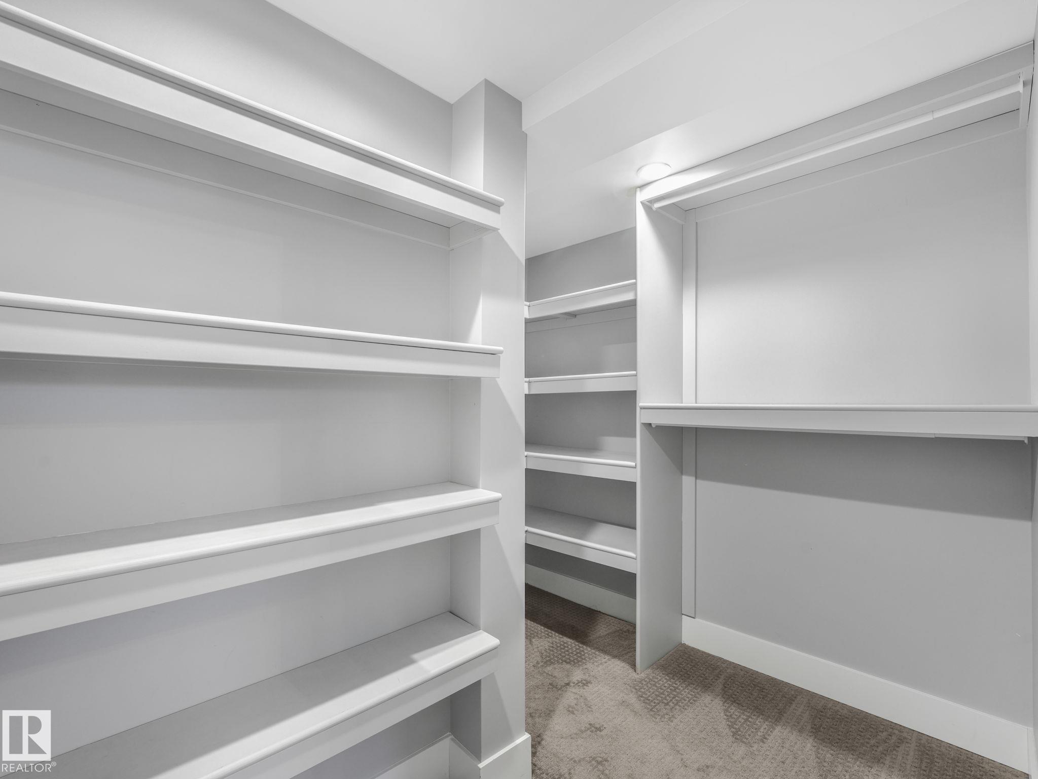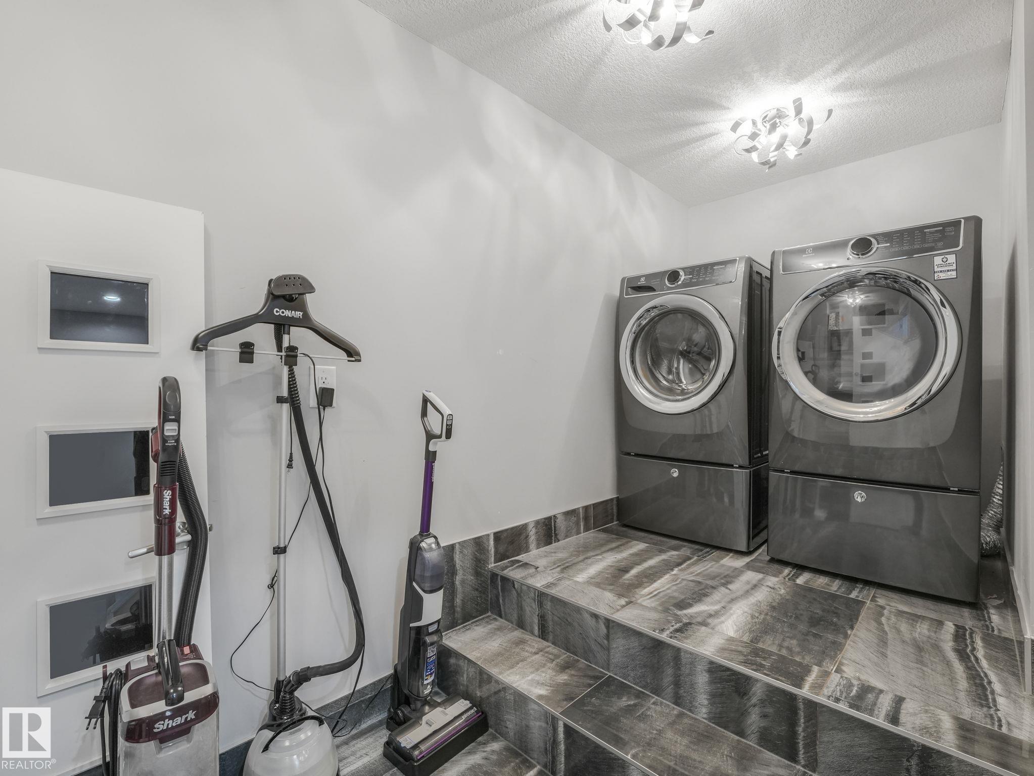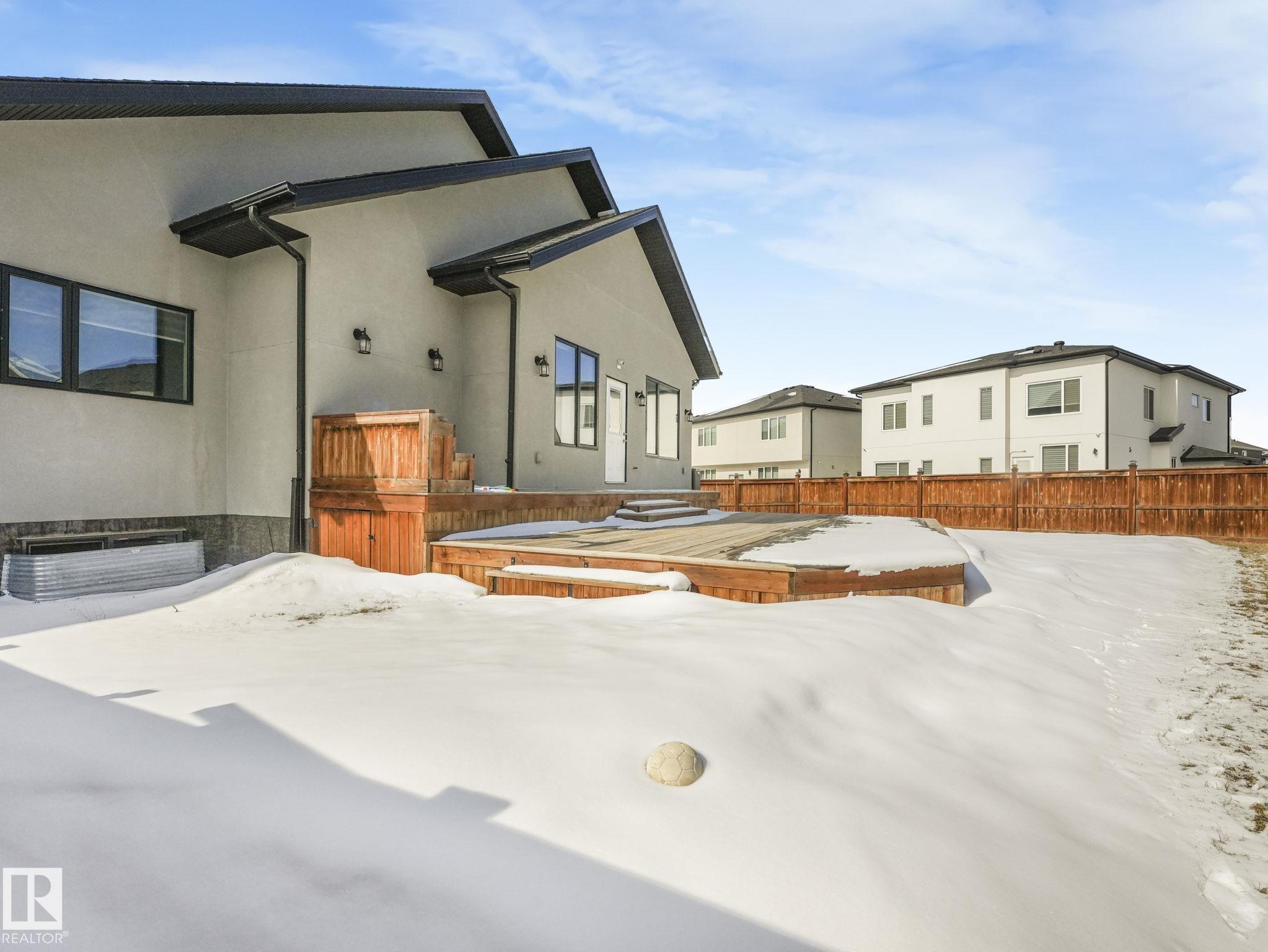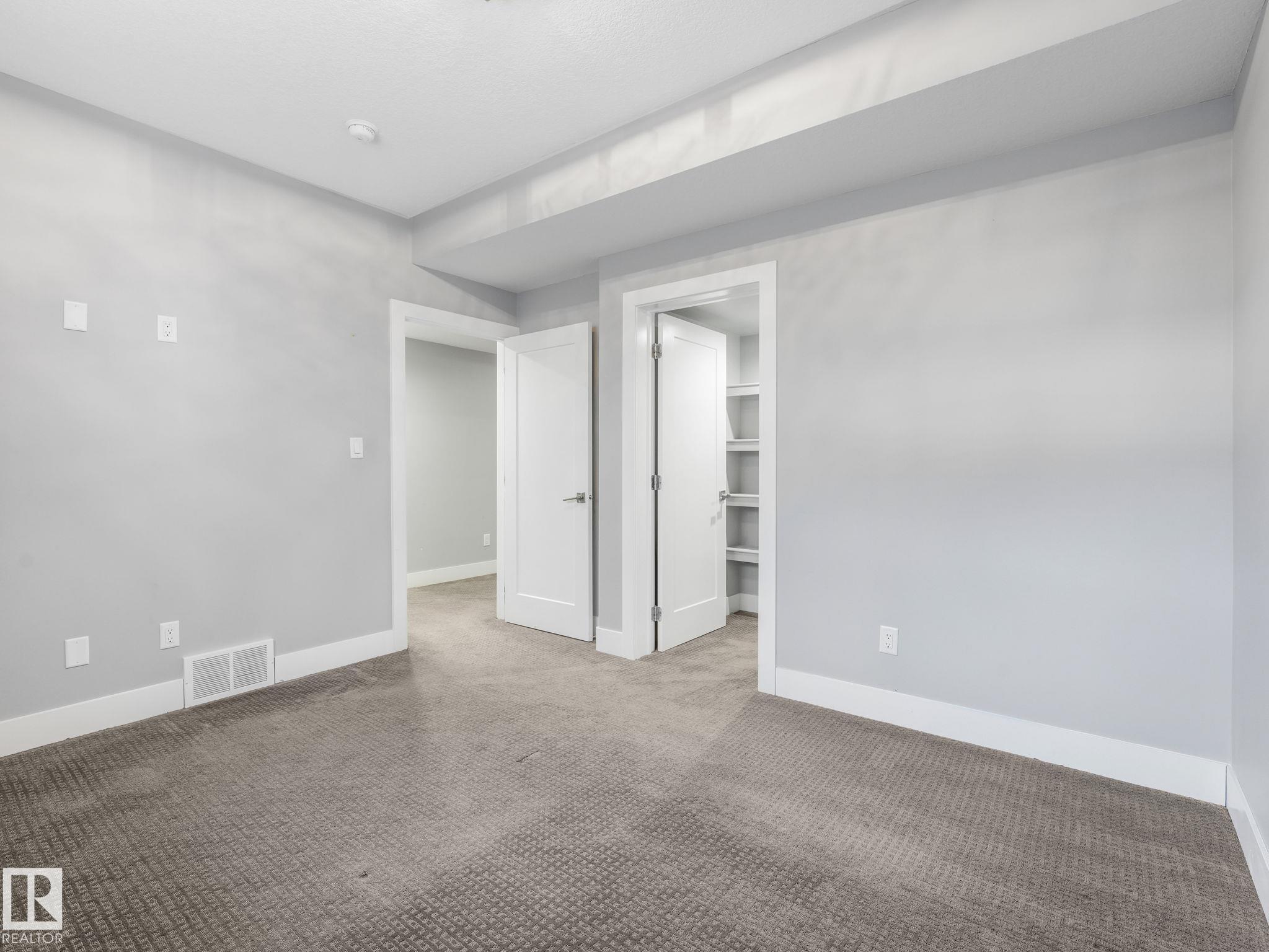 LUXURY LIVING IN AN UNBEATABLE LOCATION! Nestled in a quiet cul-de-sac just steps to the North Saskatchewan River & scenic walking trails, this stunning executive bi-level offers over 4,600 sq ft of upscale living on a large lot. Showcasing a LEGAL SUITE & exceptional craftsmanship, this home impresses with porcelain tile, glass railings & exquisite custom millwork throughout. The main level features a bright living room, elegant dining area with a striking stone feature wall, dual linear fireplace & family room with coffered ceilings. The chef-inspired kitchen is a showstopper, quartz countertops, large island, European cabinetry, premium s/s appliances, gas range, & w/i pantry. 2 spacious bedrooms share a Jack & Jill bath, while the upper level boasts a luxurious primary retreat, spa-like 5-pce ensuite, jacuzzi & steam shower. The finished lower level with SEPARATE ENTRANCE offers an equisite kitchen, 3 bedrooms, multiple baths, family room & separate laundry. Complete with a huge deck - IMPRESSIVE!!