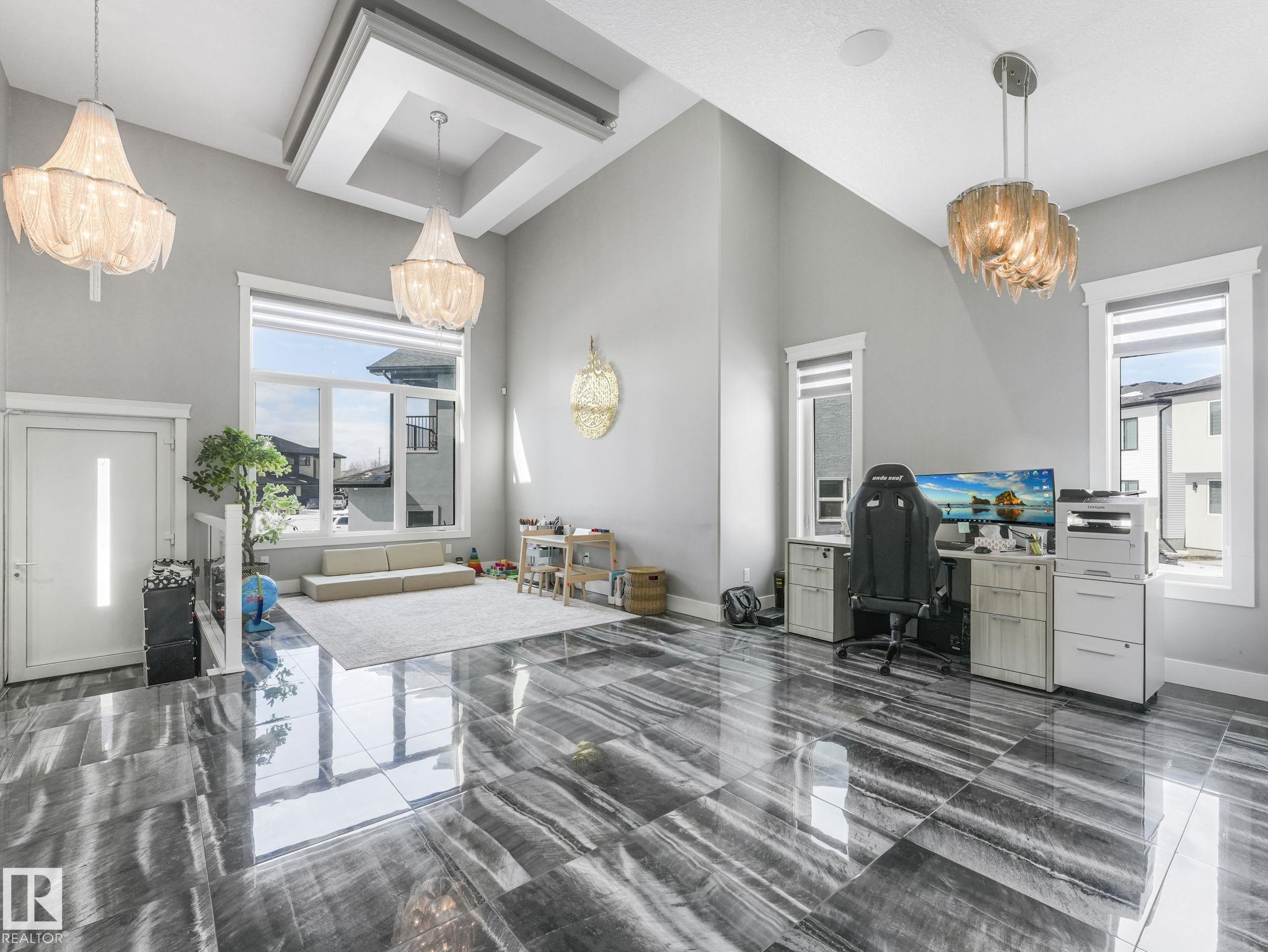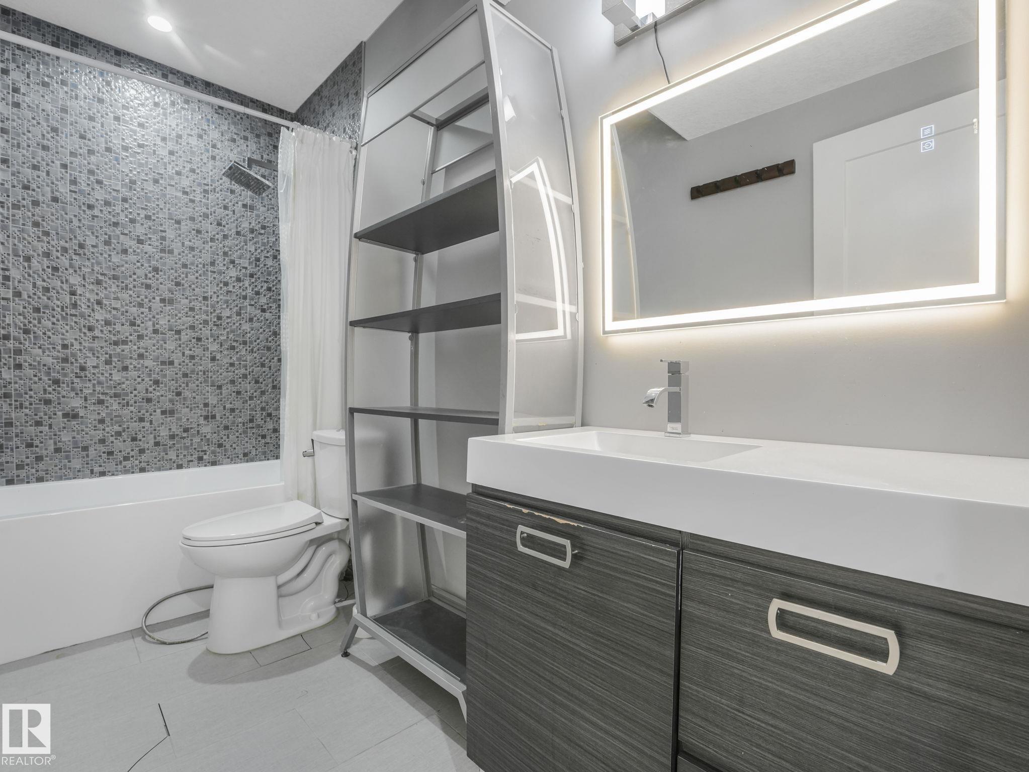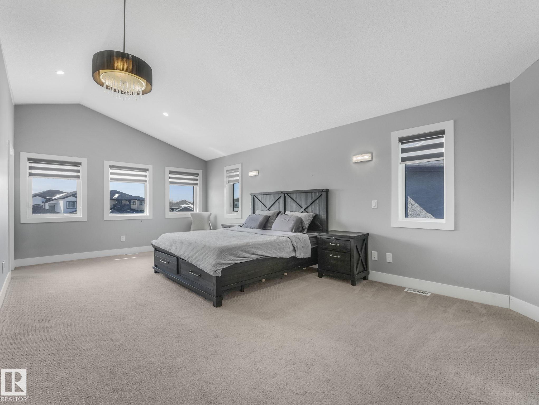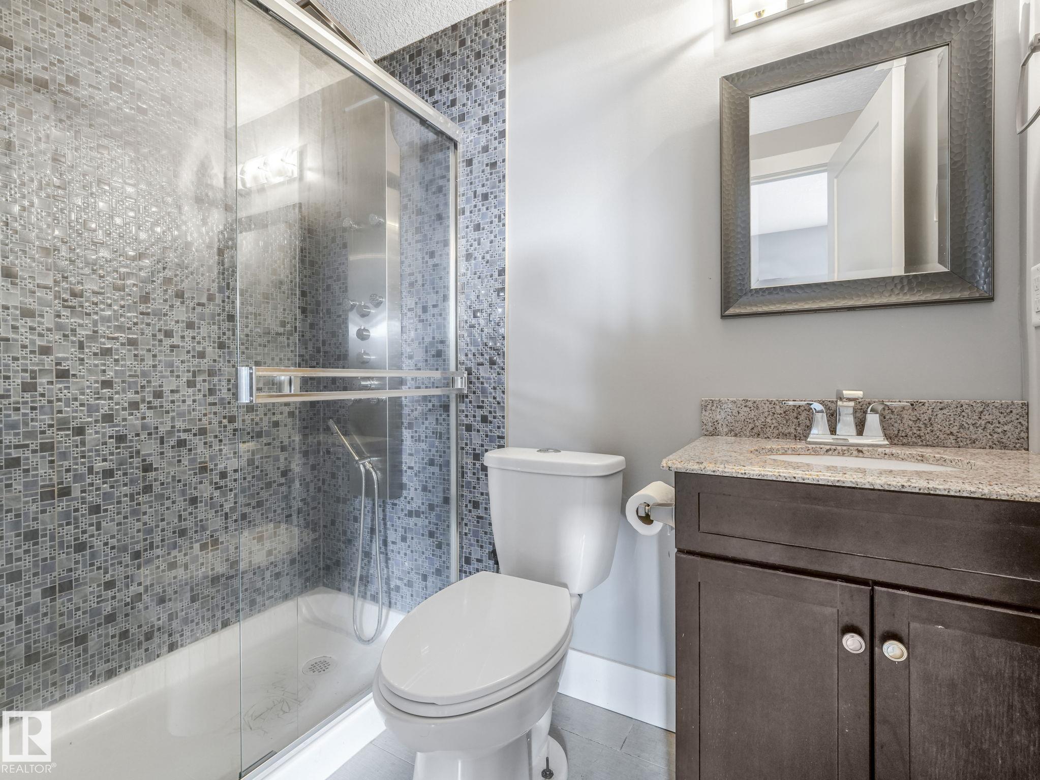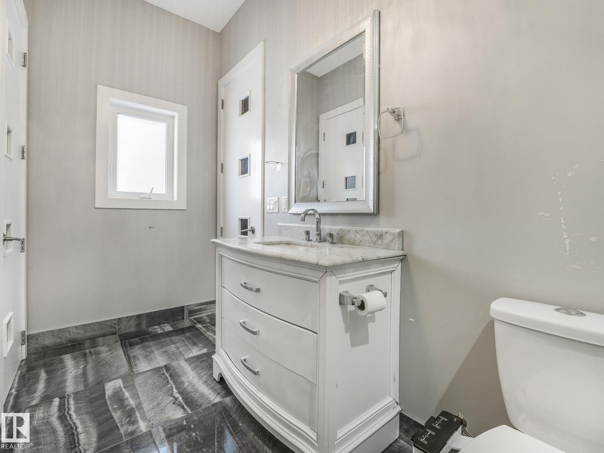 LUXURY LIVING IN AN UNBEATABLE LOCATION! Nestled in a quiet cul-de-sac just steps to the North Saskatchewan River & scenic walking trails, this stunning executive bi-level offers over 4,600 sq ft of upscale living on a large lot. Showcasing a LEGAL SUITE & exceptional craftsmanship, this home impresses with porcelain tile, glass railings & exquisite custom millwork throughout. The main level features a bright living room, elegant dining area with a striking stone feature wall, dual linear fireplace & family room with coffered ceilings. The chef-inspired kitchen is a showstopper, quartz countertops, large island, European cabinetry, premium s/s appliances, gas range, & w/i pantry. 2 spacious bedrooms share a Jack & Jill bath, while the upper level boasts a luxurious primary retreat, spa-like 5-pce ensuite, jacuzzi & steam shower. The finished lower level with SEPARATE ENTRANCE offers an equisite kitchen, 3 bedrooms, multiple baths, family room & separate laundry. Complete with a huge deck - IMPRESSIVE!!