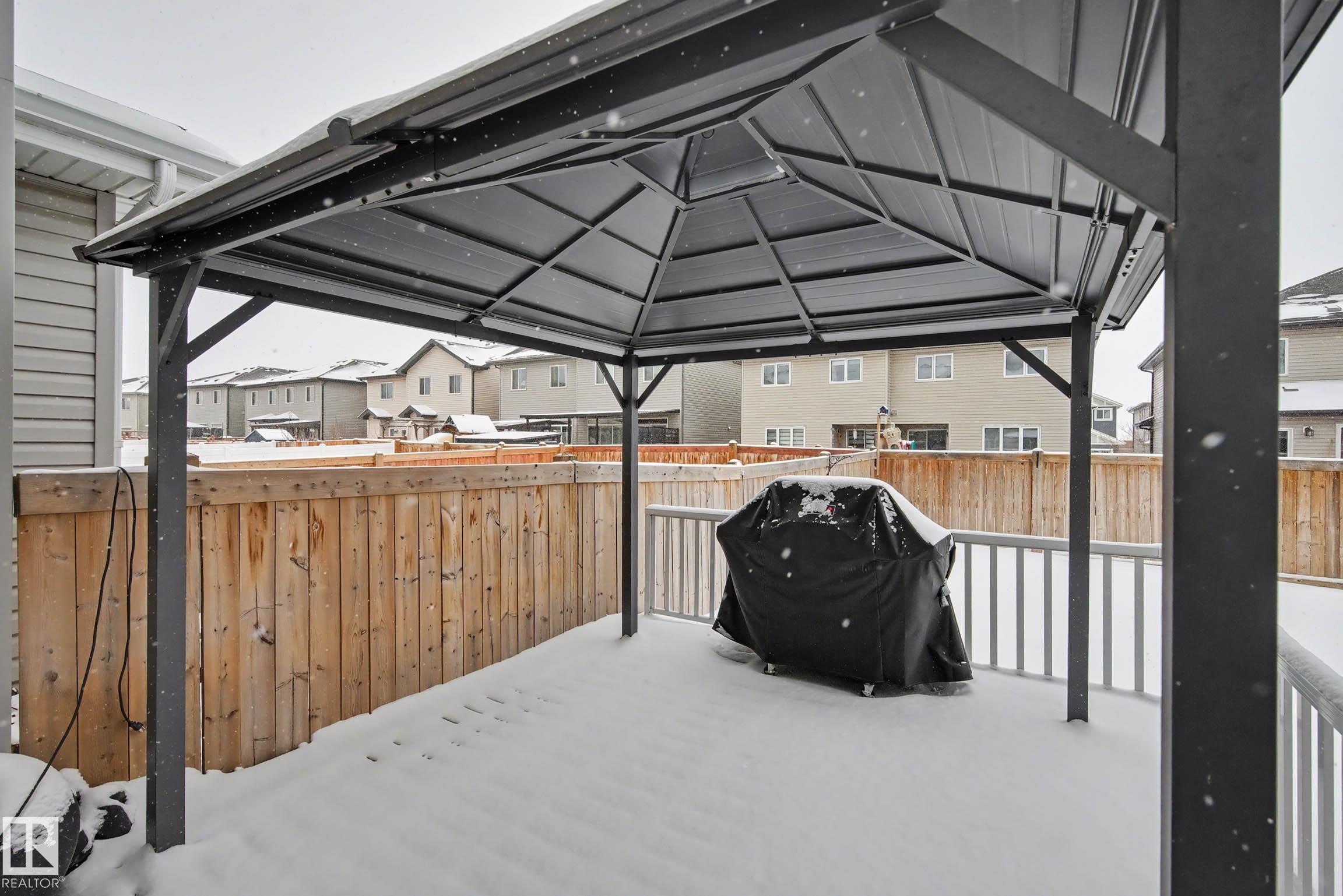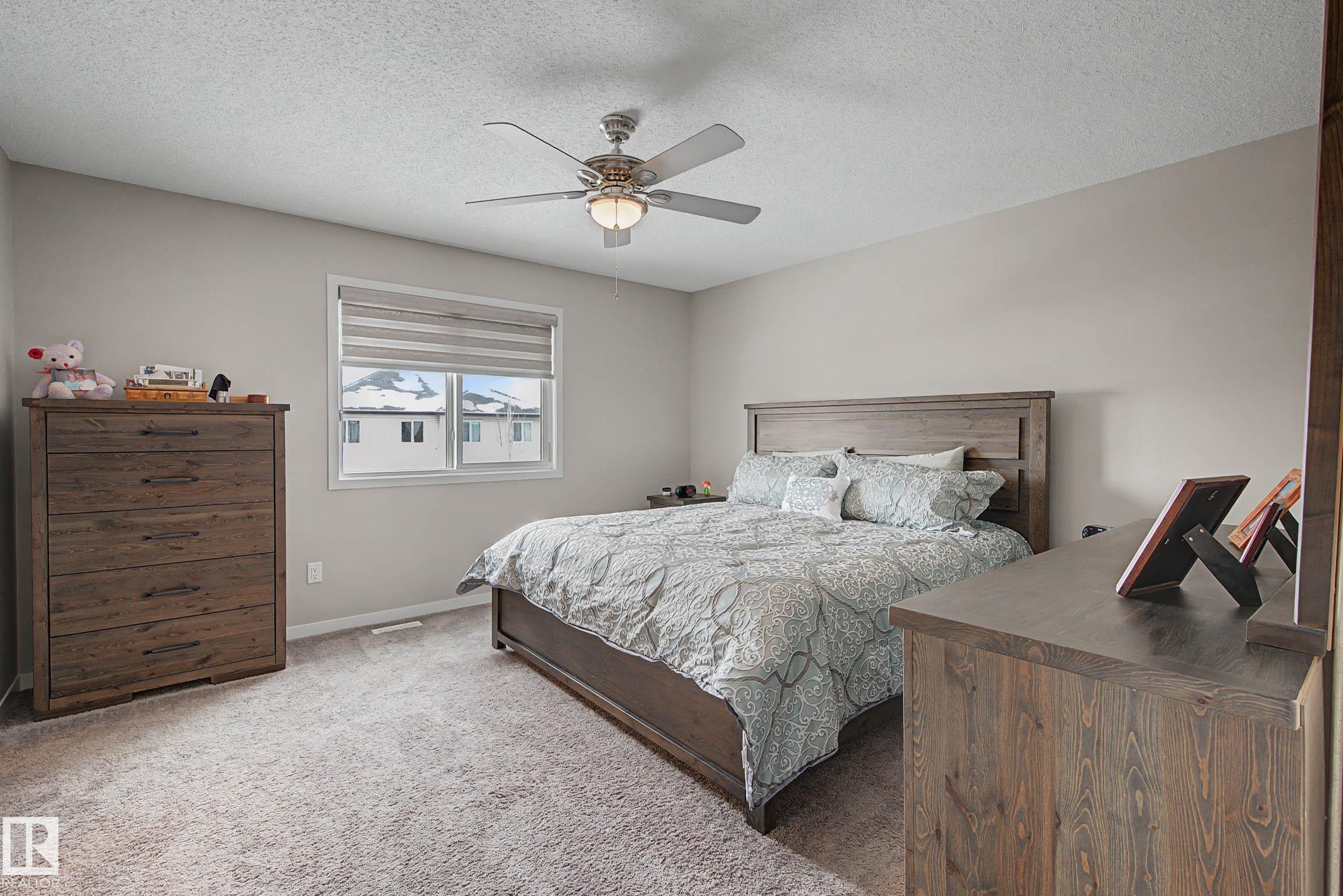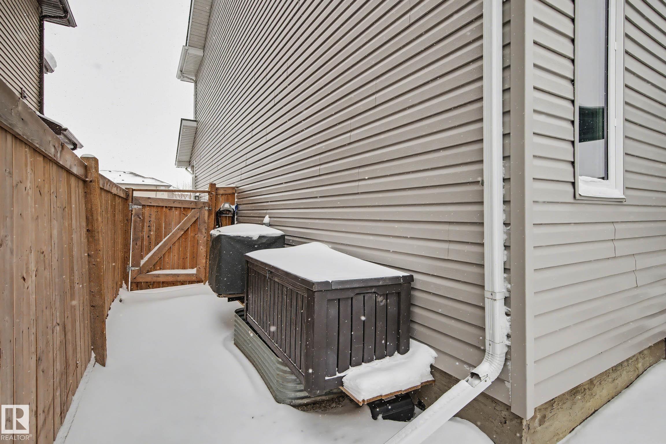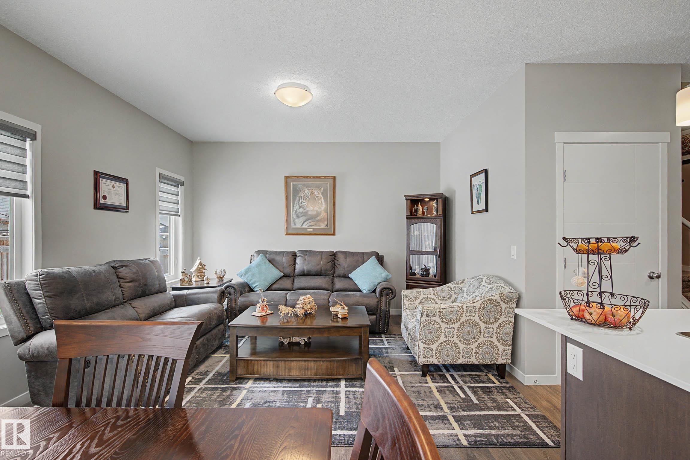 Beautifully finished 2-storey half-duplex offering 3 bedrooms and 3 bathrooms, complete with a single attached garage. The main floor features impressive 9? ceilings and an open-concept layout with laminate flooring throughout. The kitchen is well-appointed with maple cabinetry, a central island with eating ledge, and a convenient walk-through pantry, flowing into a spacious dining nook with patio doors leading to the backyard. Outside, enjoy the durable and low-maintenance composite deck & the front porch/steps are also finished in matching composite decking for added curb appeal and longevity. A stylish half bath with pedestal sink completes the main level. Upstairs, you?ll find a convenient laundry area, a primary suite with walk-in closet and 4-piece ensuite, plus two additional well-sized bedrooms and a full bathroom. The unfinished basement offers endless potential for future development. This home offers plenty of outdoor space and is ideally located near parks with quick access to the Henday!