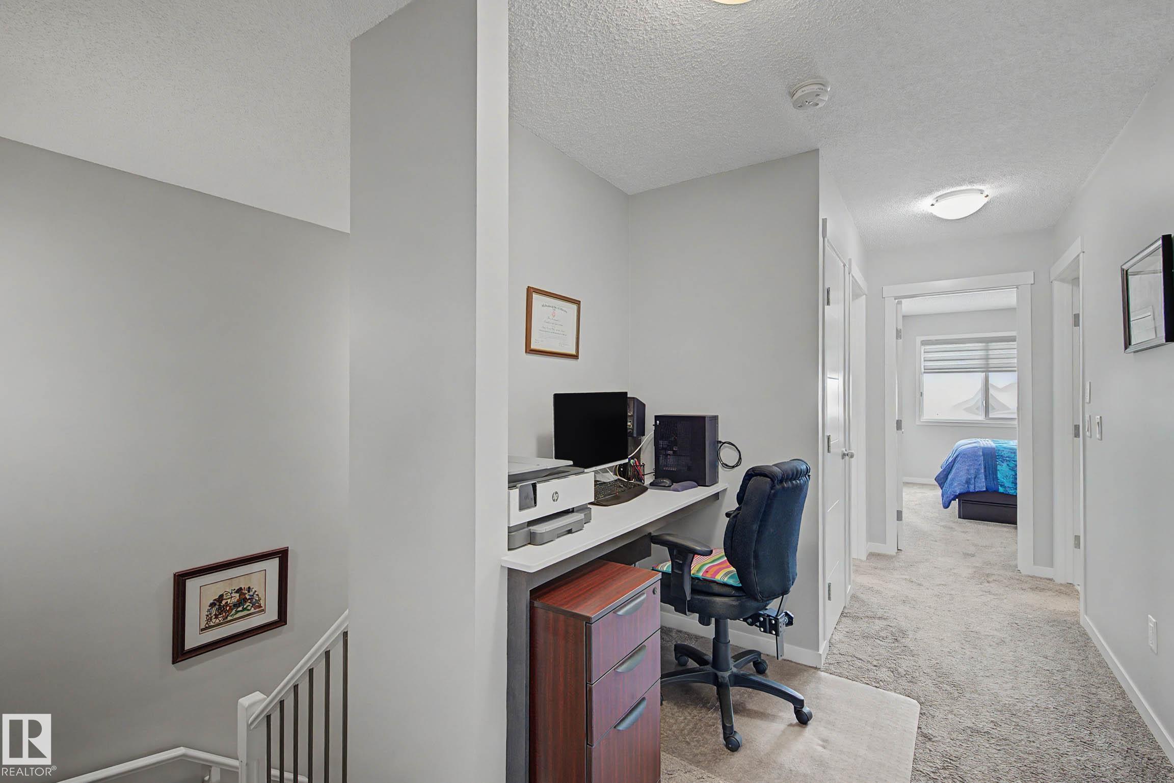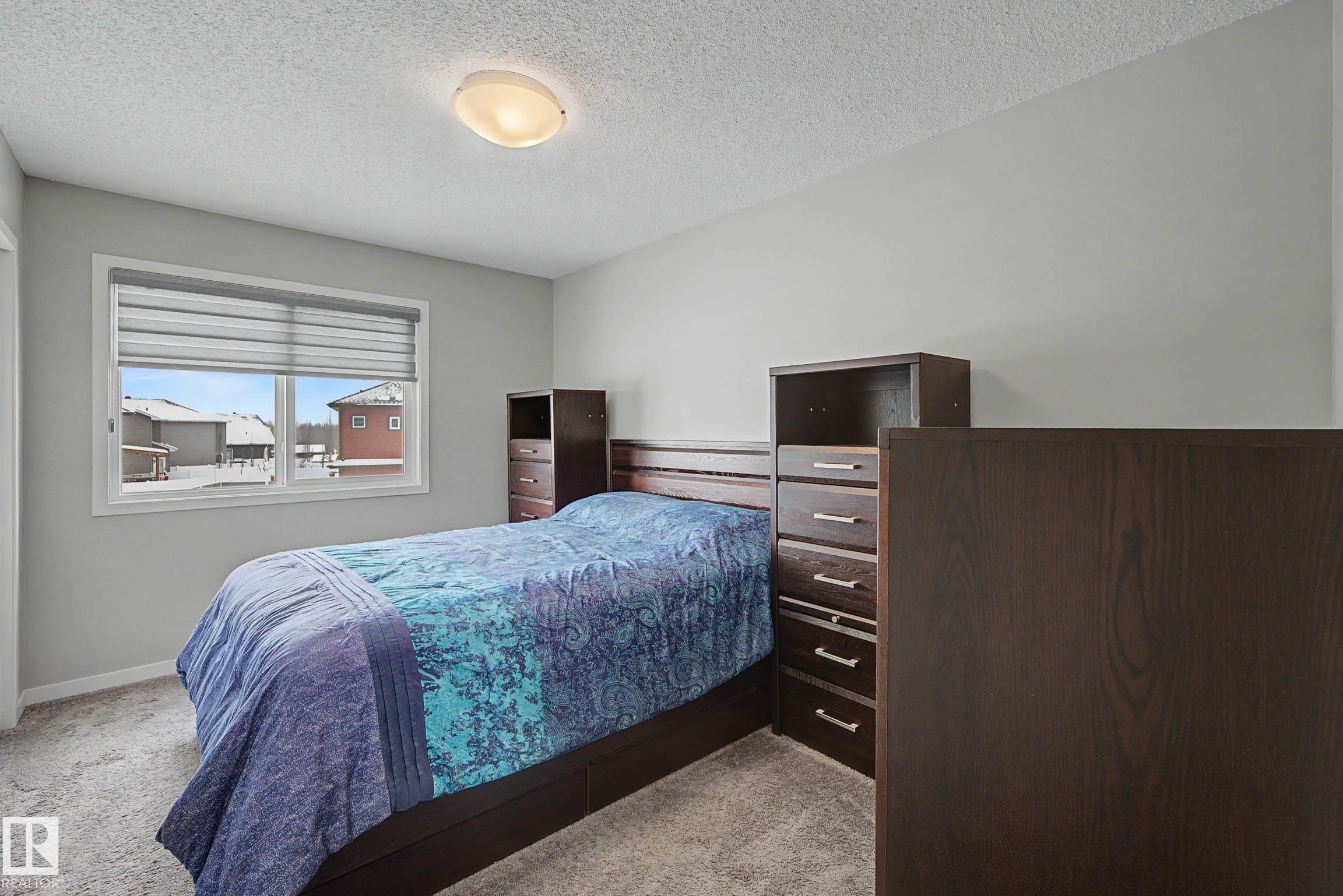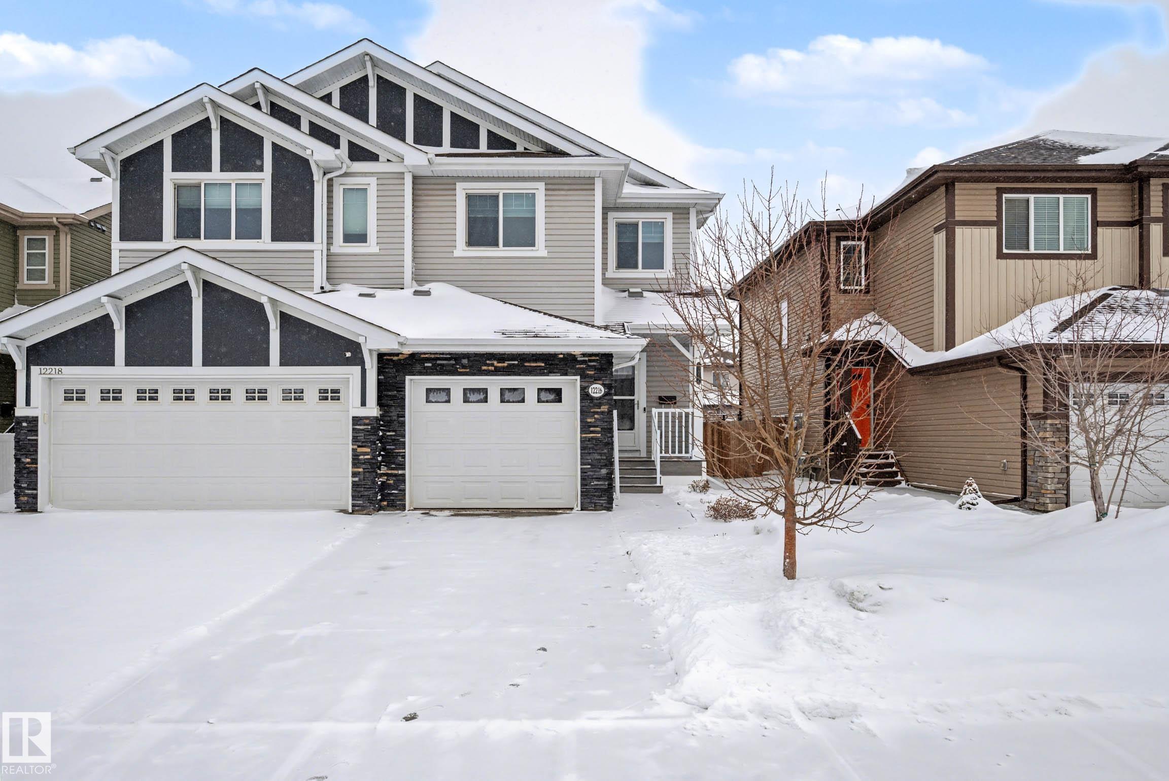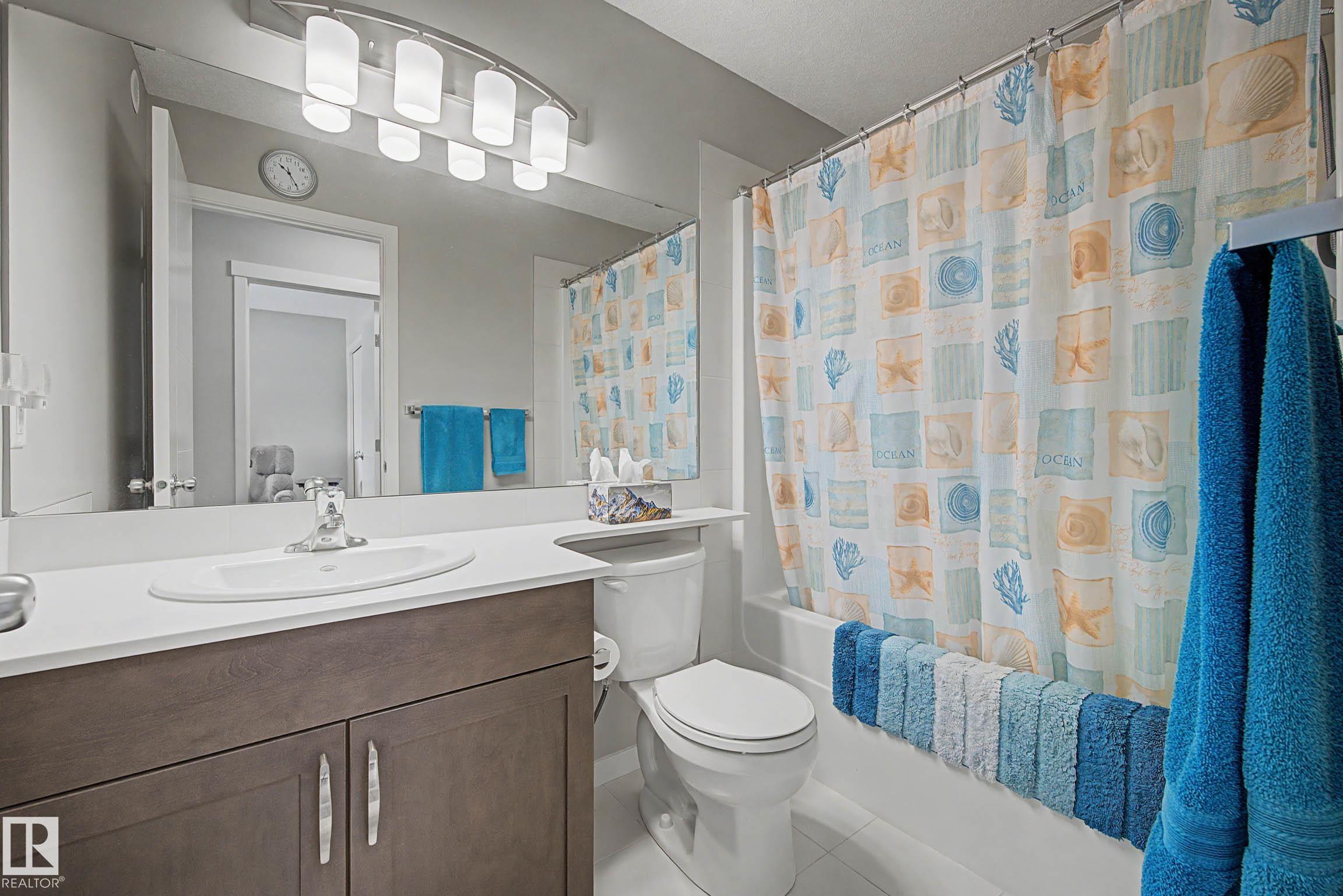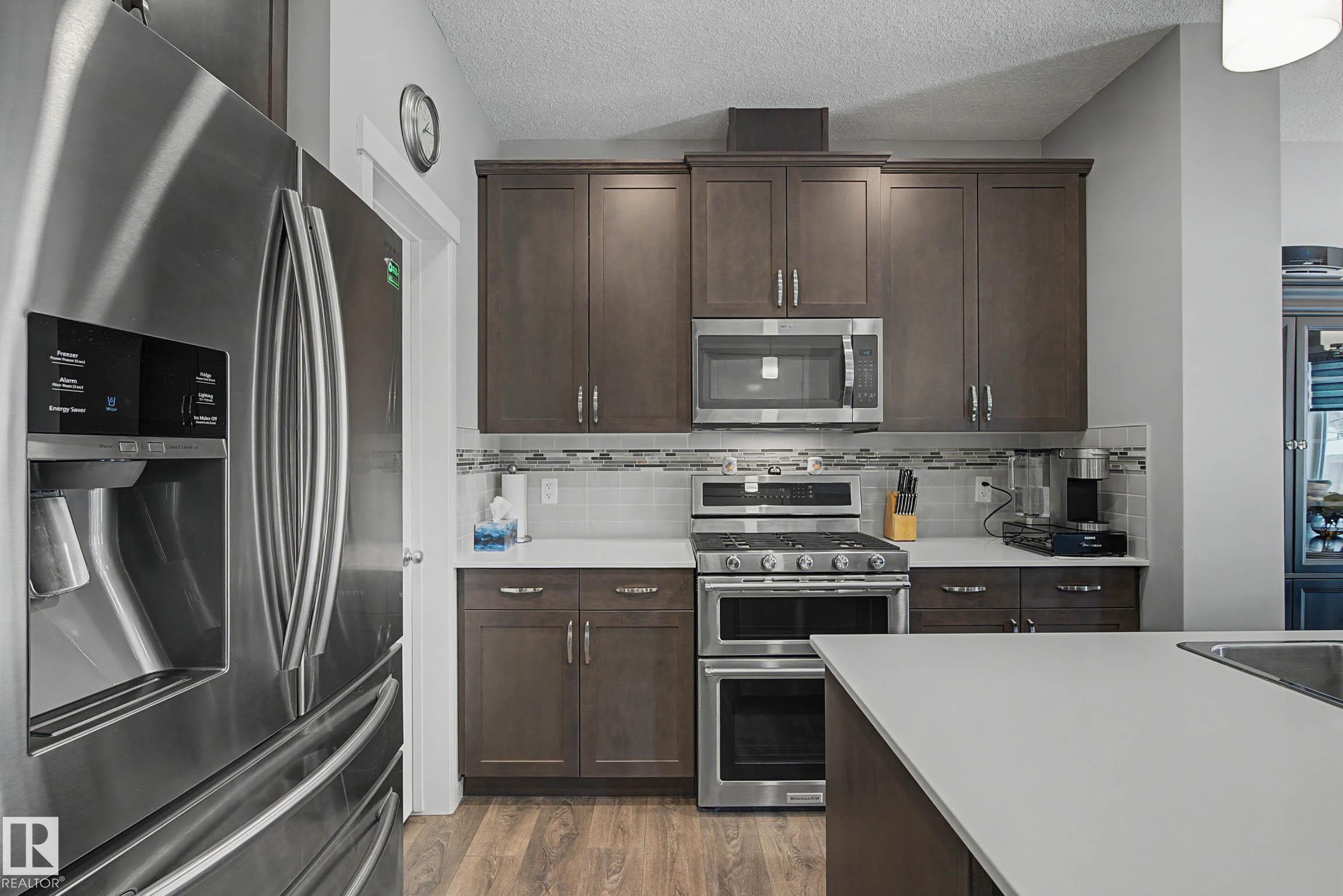 Beautifully finished 2-storey half-duplex offering 3 bedrooms and 3 bathrooms, complete with a single attached garage. The main floor features impressive 9? ceilings and an open-concept layout with laminate flooring throughout. The kitchen is well-appointed with maple cabinetry, a central island with eating ledge, and a convenient walk-through pantry, flowing into a spacious dining nook with patio doors leading to the backyard. Outside, enjoy the durable and low-maintenance composite deck & the front porch/steps are also finished in matching composite decking for added curb appeal and longevity. A stylish half bath with pedestal sink completes the main level. Upstairs, you?ll find a convenient laundry area, a primary suite with walk-in closet and 4-piece ensuite, plus two additional well-sized bedrooms and a full bathroom. The unfinished basement offers endless potential for future development. This home offers plenty of outdoor space and is ideally located near parks with quick access to the Henday!
