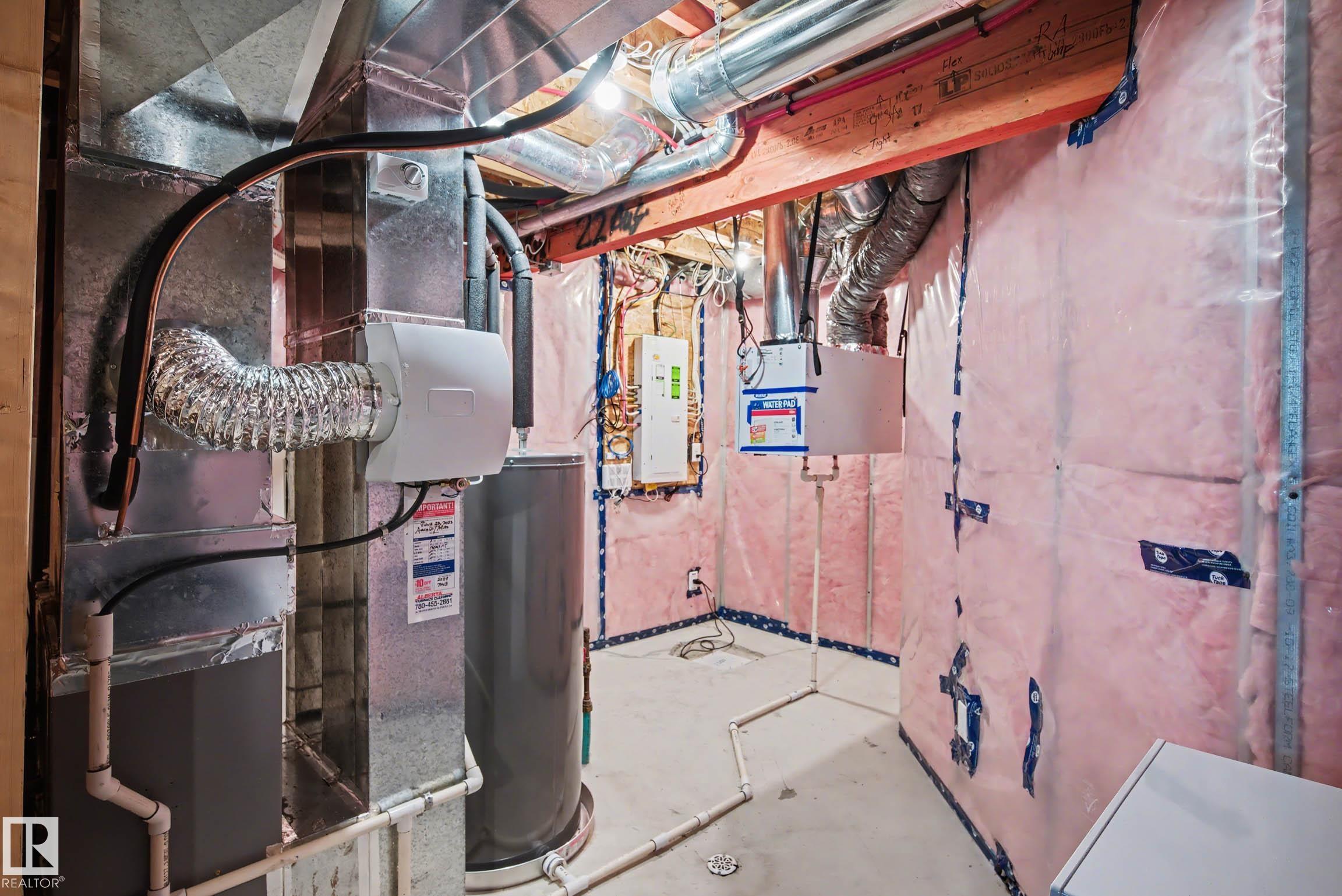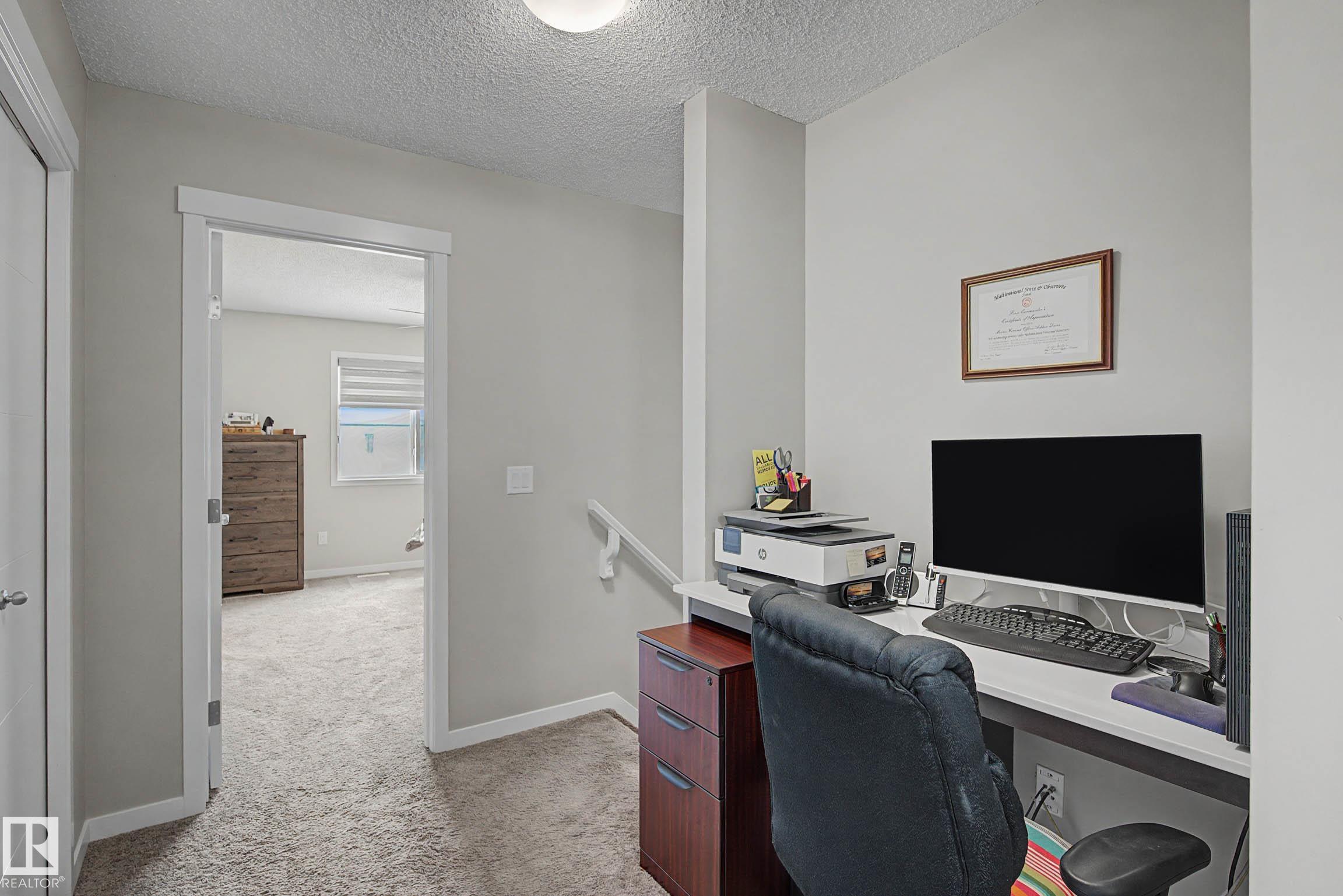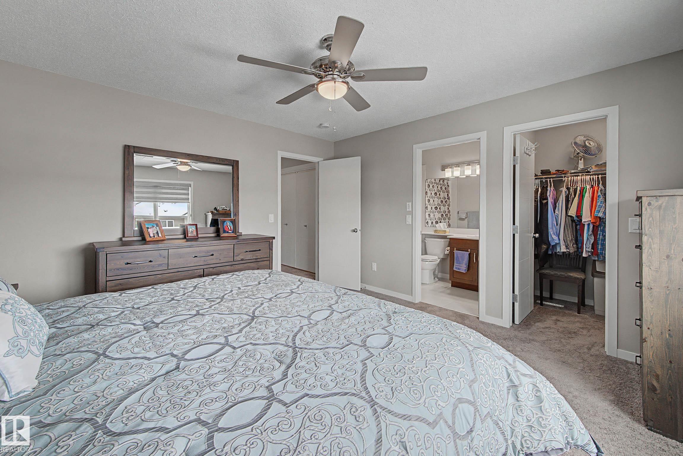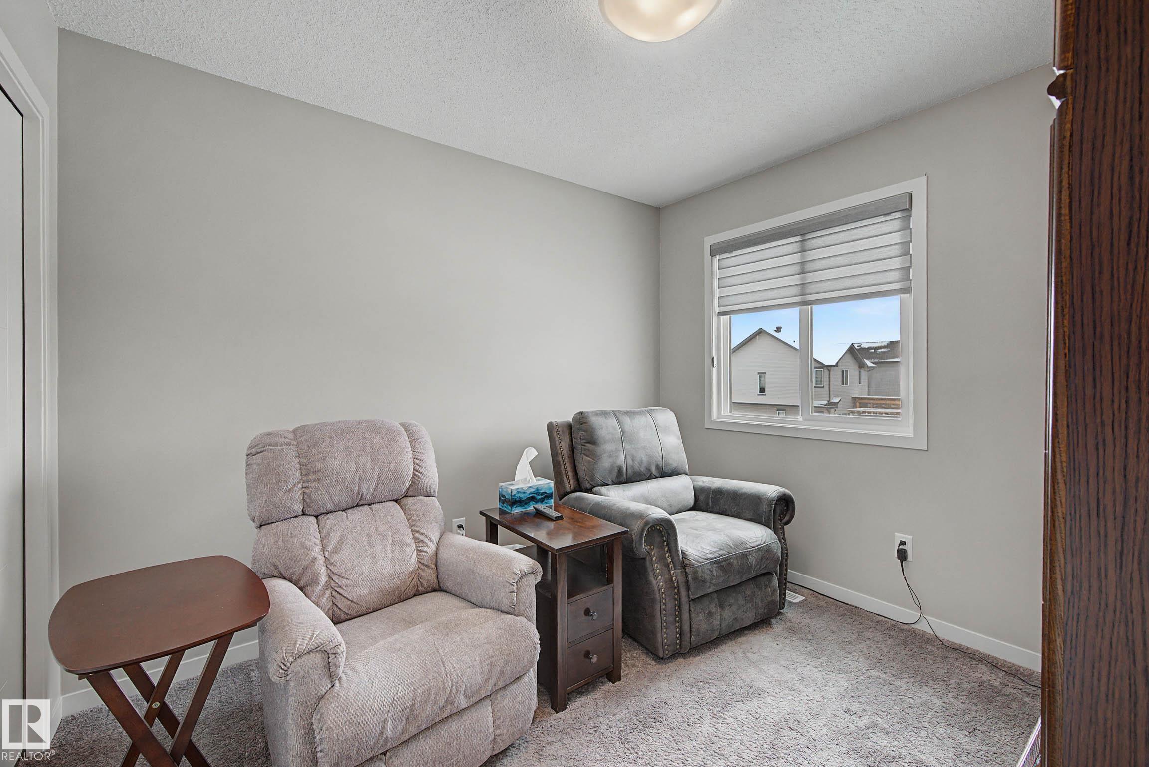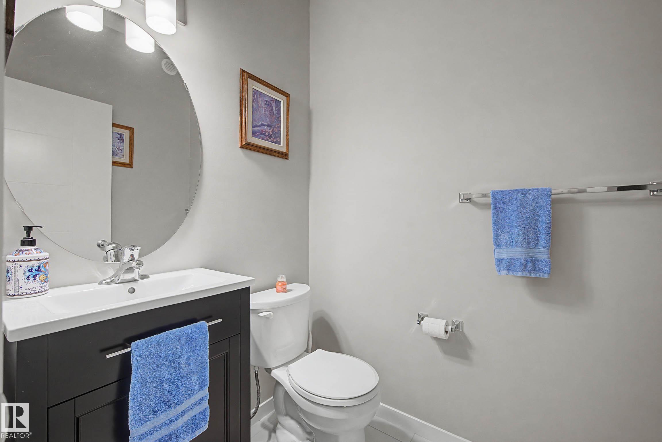 Beautifully finished 2-storey half-duplex offering 3 bedrooms and 3 bathrooms, complete with a single attached garage. The main floor features impressive 9? ceilings and an open-concept layout with laminate flooring throughout. The kitchen is well-appointed with maple cabinetry, a central island with eating ledge, and a convenient walk-through pantry, flowing into a spacious dining nook with patio doors leading to the backyard. Outside, enjoy the durable and low-maintenance composite deck & the front porch/steps are also finished in matching composite decking for added curb appeal and longevity. A stylish half bath with pedestal sink completes the main level. Upstairs, you?ll find a convenient laundry area, a primary suite with walk-in closet and 4-piece ensuite, plus two additional well-sized bedrooms and a full bathroom. The unfinished basement offers endless potential for future development. This home offers plenty of outdoor space and is ideally located near parks with quick access to the Henday!