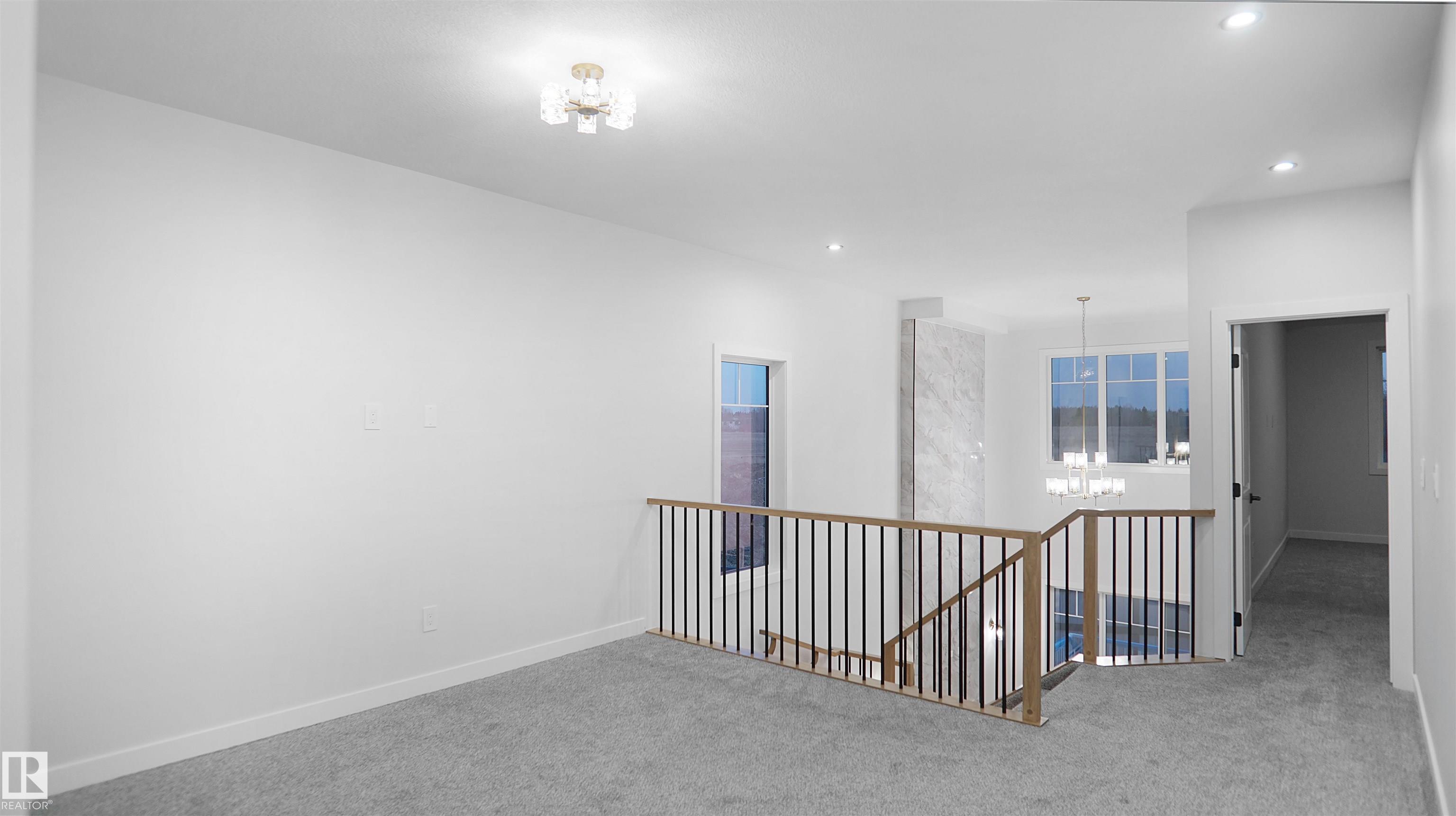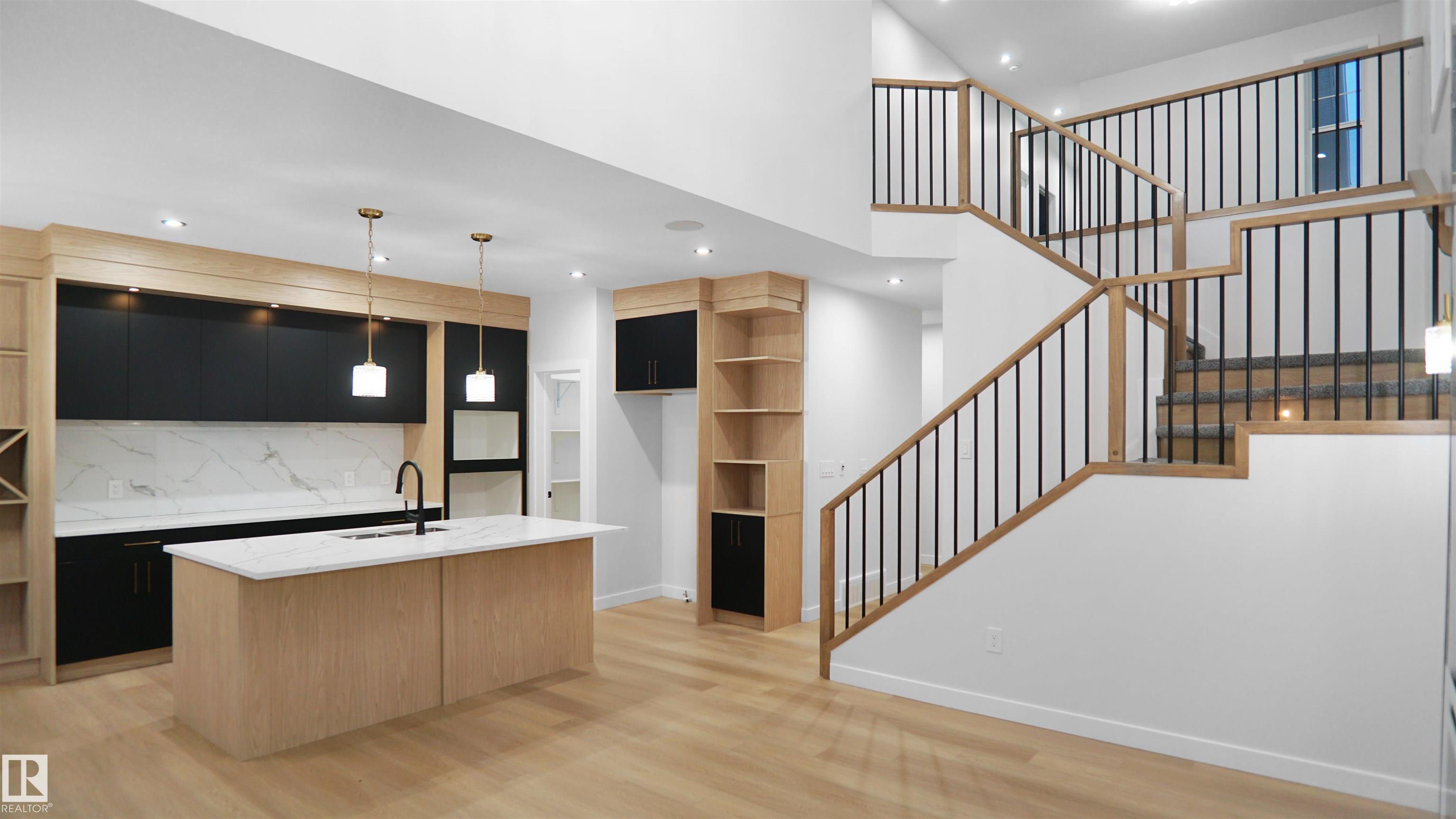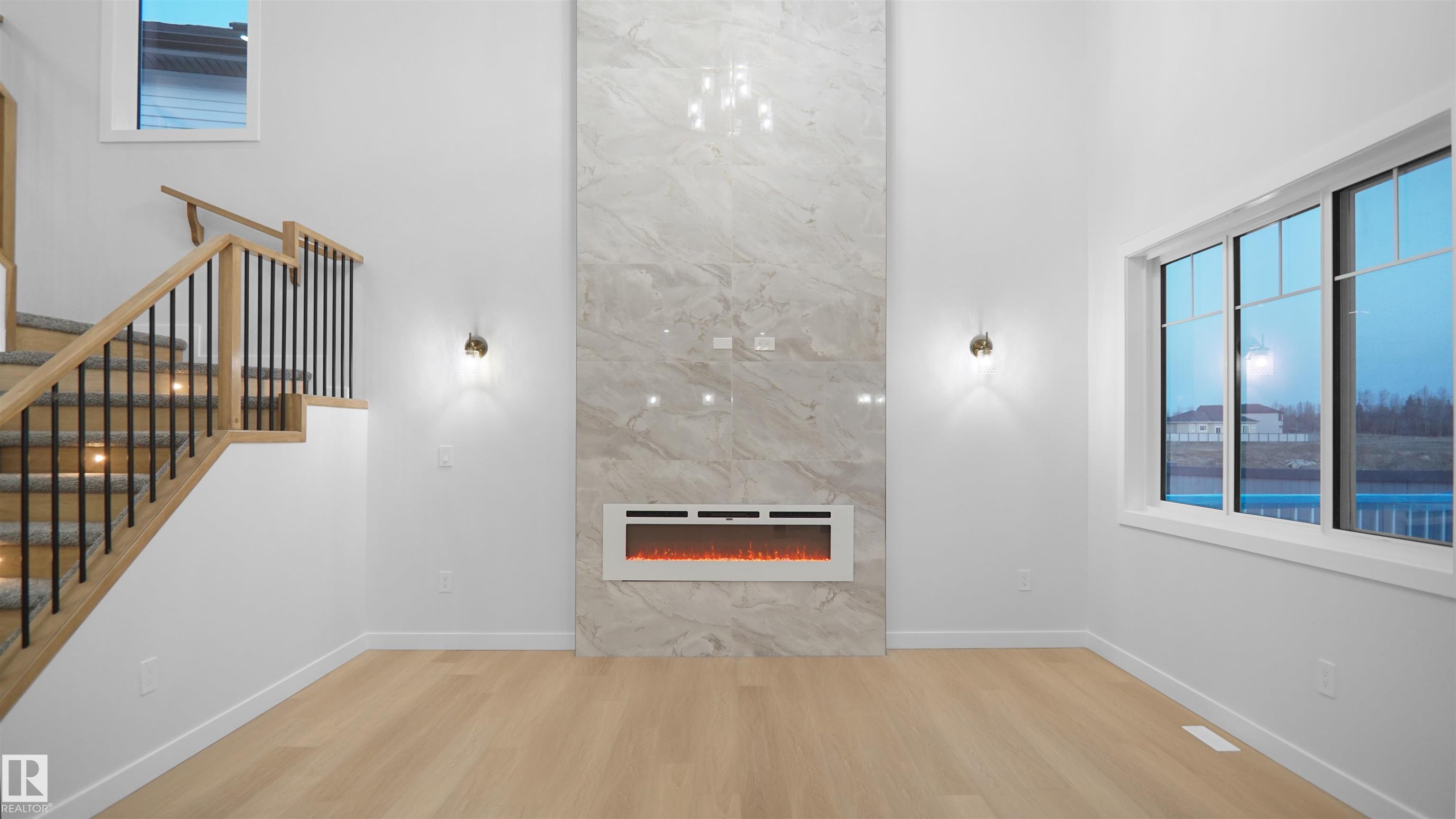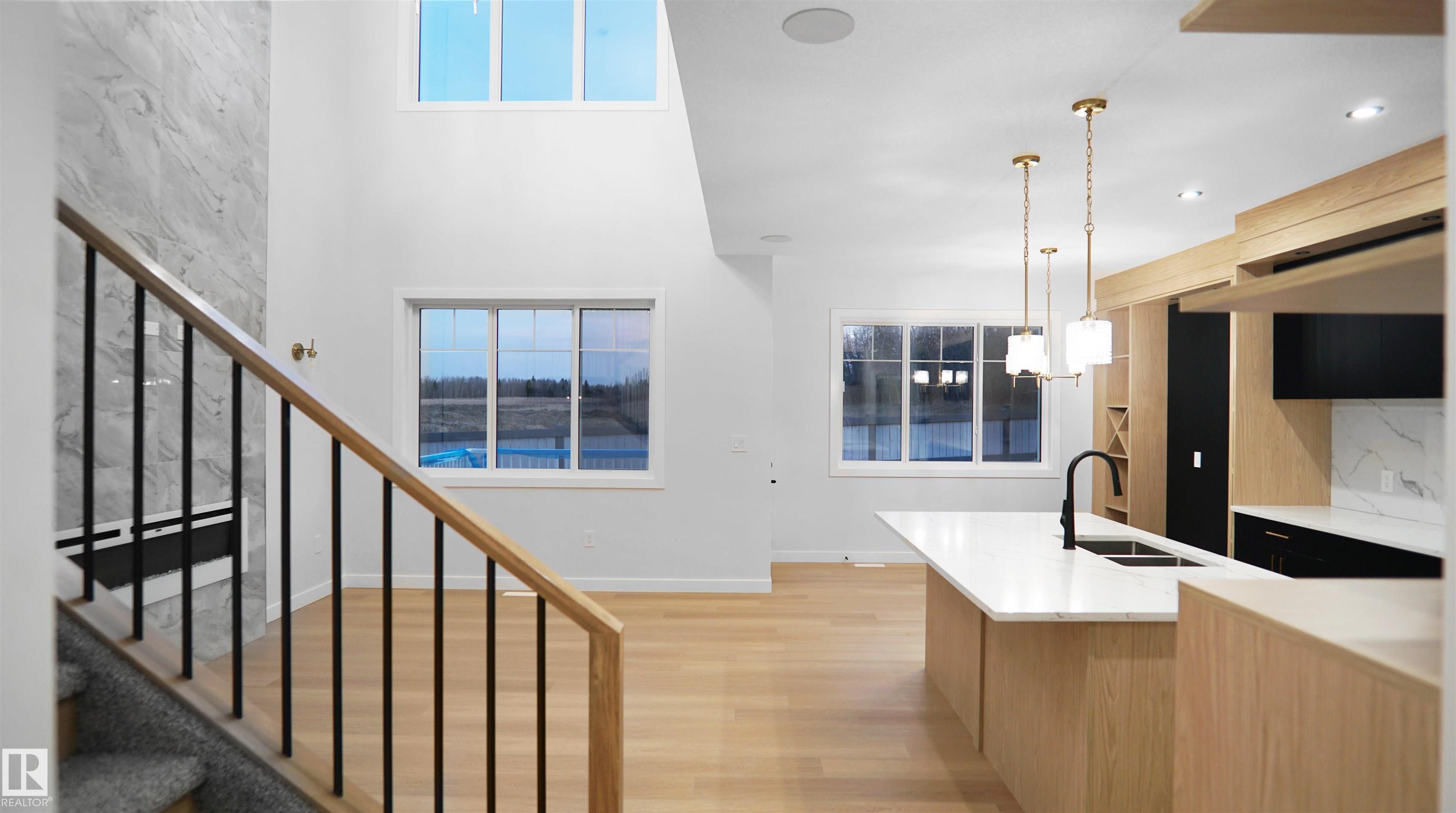 UPGRADED HOME IN THE COMMUNITY OF McLaughlin. This home boasts with 4 bedrooms, 3 full baths, bonus room & 9ft ceilings on all three levels. Main floor offers vinyl plank flooring, bedroom/den, family room with 18ft ceiling, fireplace. Kitchen, with modern high cabinetry, quartz countertops, island, wet bar, & walk-in pantry, is made for cooking family meals and entertaining. Spacious dinning area with ample sunlight is perfect for get togethers. The 3 piece bath finishes the main level. Walk up stairs to master bedroom with 5 piece ensuite/spacious walk in closet, 2 bedrooms, full bath, laundry computer station, and bonus room. Unfinished basement with separate entrance and roughed in bathroom is waiting for creative ideas. Public transit to Edmonton, & more than 40 km of trails, your dream home home awaits. Includes:TRIPLE PANE WINDOWS/ WIRELESS SPEAKERS/ GAS HOOKUP ON DECK.Photos are representative.