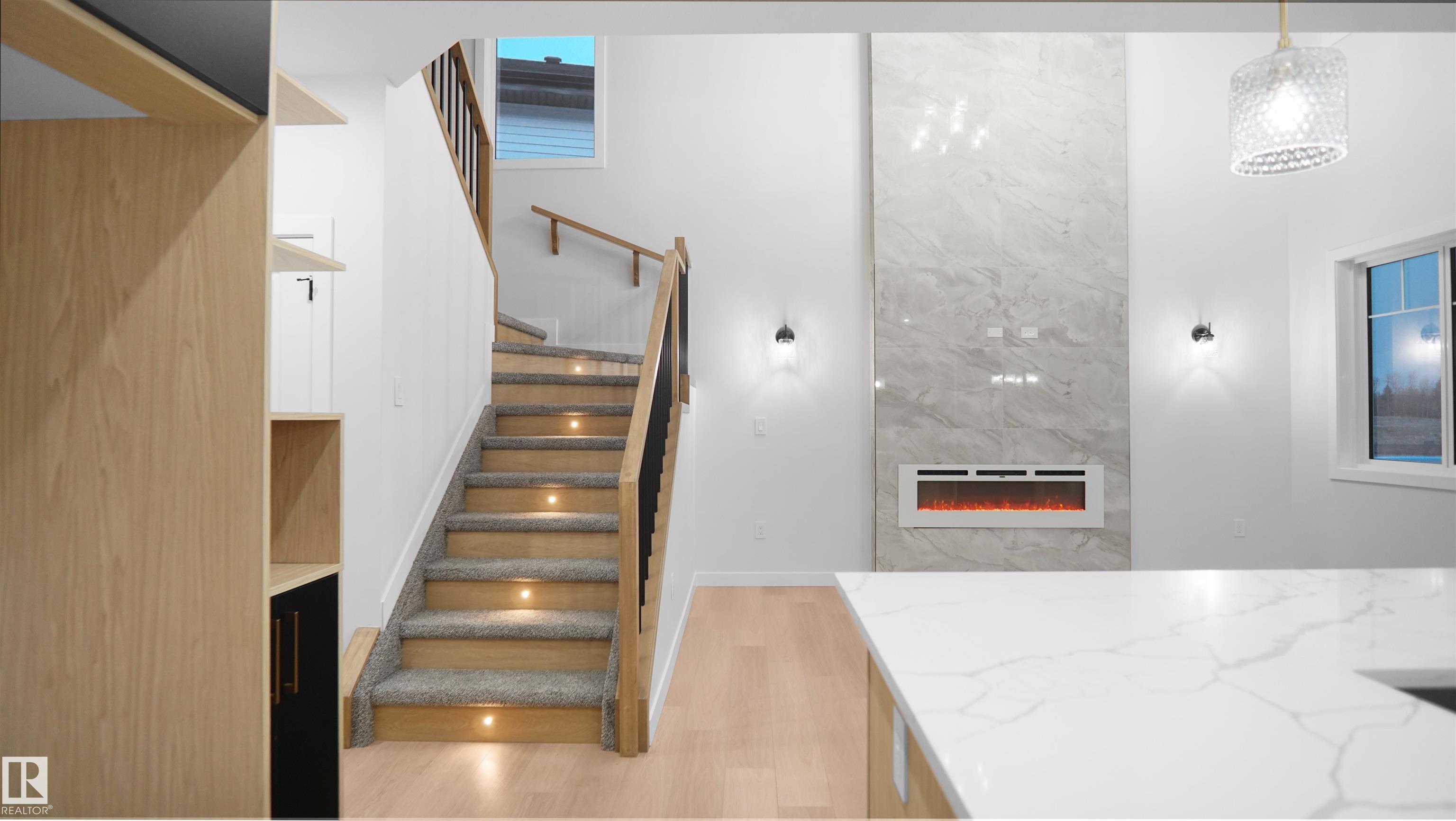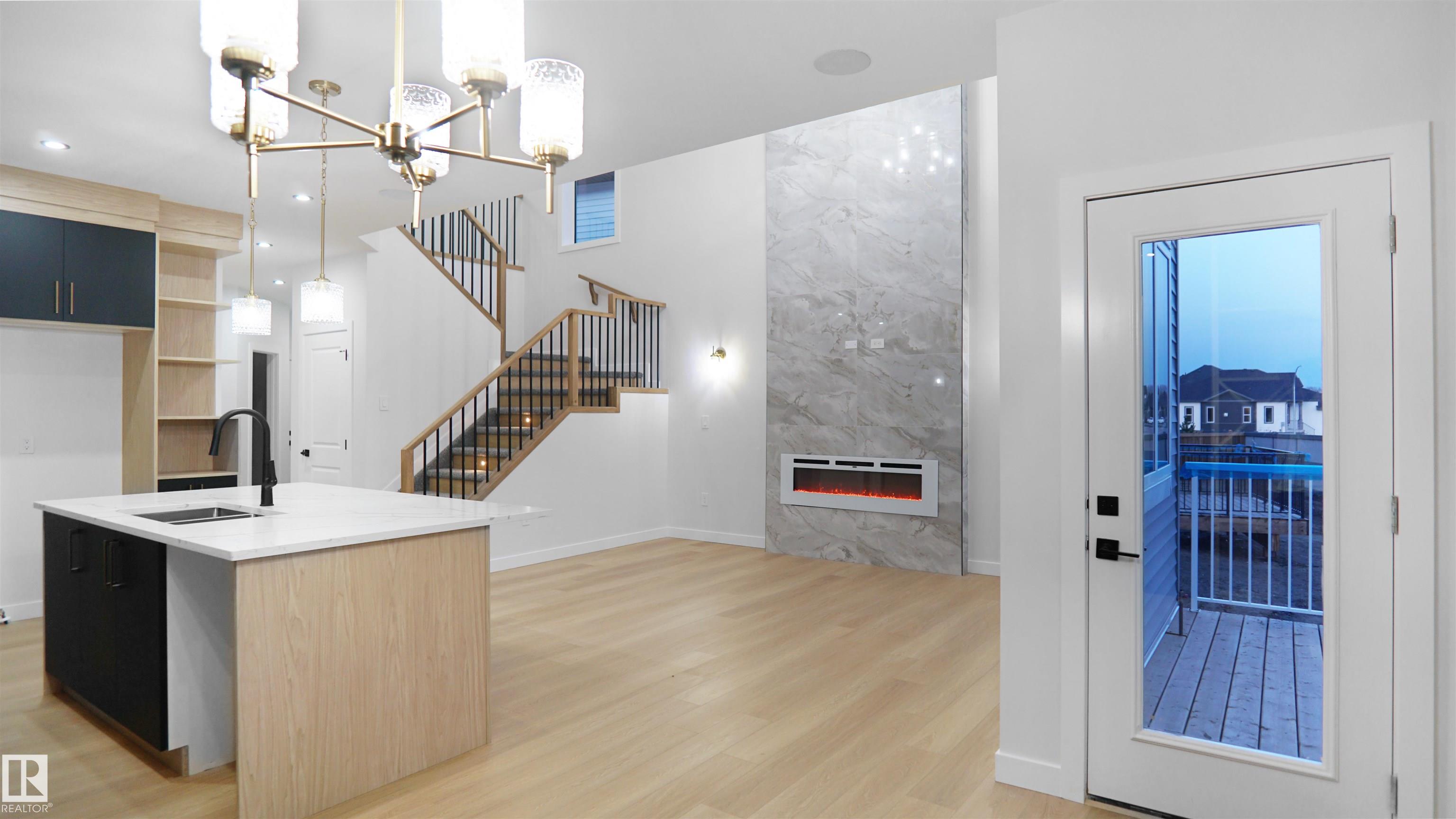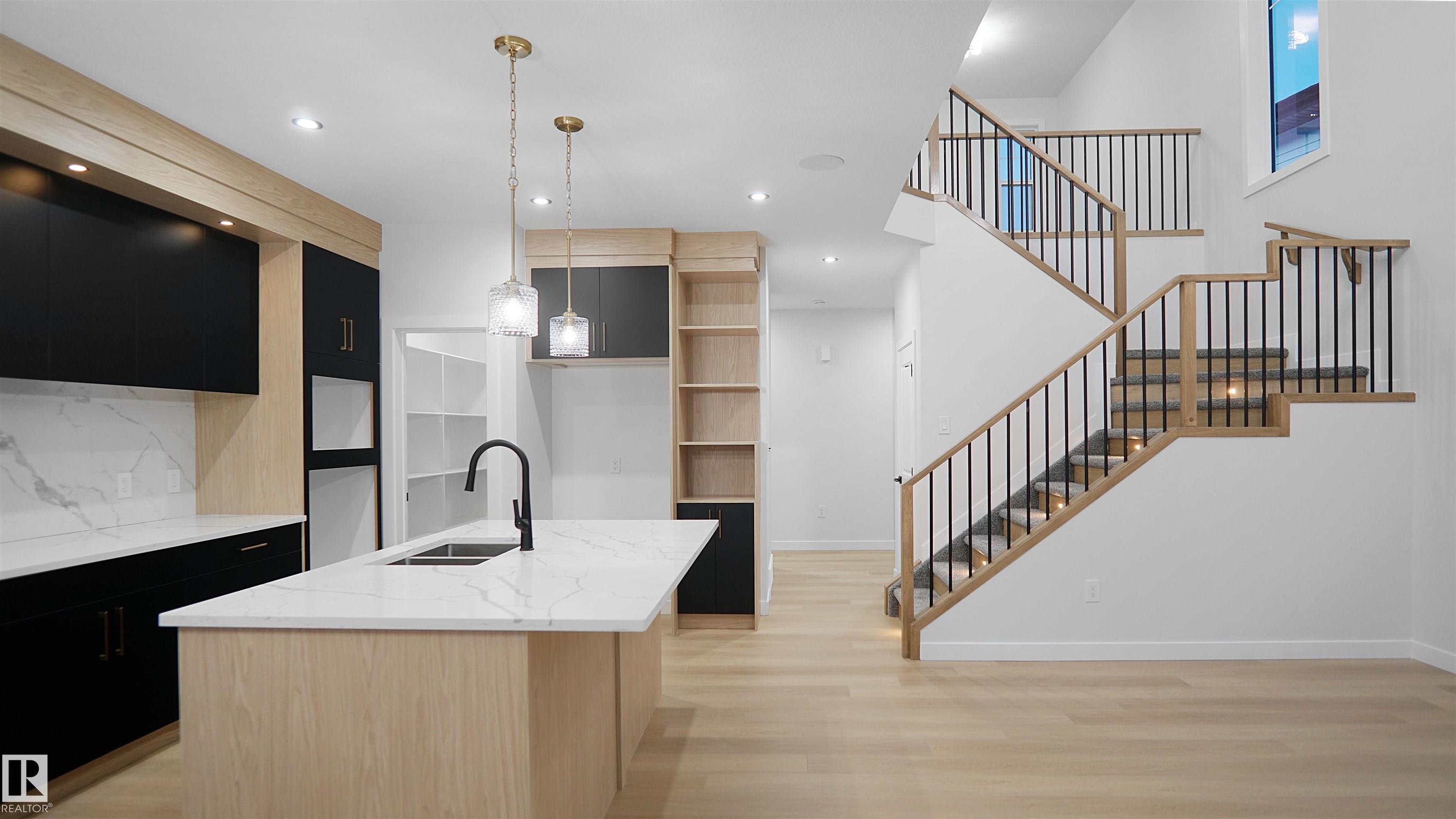 UPGRADED HOME IN THE COMMUNITY OF McLaughlin. This home boasts with 4 bedrooms, 3 full baths, bonus room & 9ft ceilings on all three levels. Main floor offers vinyl plank flooring, bedroom/den, family room with 18ft ceiling, fireplace. Kitchen, with modern high cabinetry, quartz countertops, island, wet bar, & walk-in pantry, is made for cooking family meals and entertaining. Spacious dinning area with ample sunlight is perfect for get togethers. The 3 piece bath finishes the main level. Walk up stairs to master bedroom with 5 piece ensuite/spacious walk in closet, 2 bedrooms, full bath, laundry computer station, and bonus room. Unfinished basement with separate entrance and roughed in bathroom is waiting for creative ideas. Public transit to Edmonton, & more than 40 km of trails, your dream home home awaits. Includes:TRIPLE PANE WINDOWS/ WIRELESS SPEAKERS/ GAS HOOKUP ON DECK.Photos are representative.