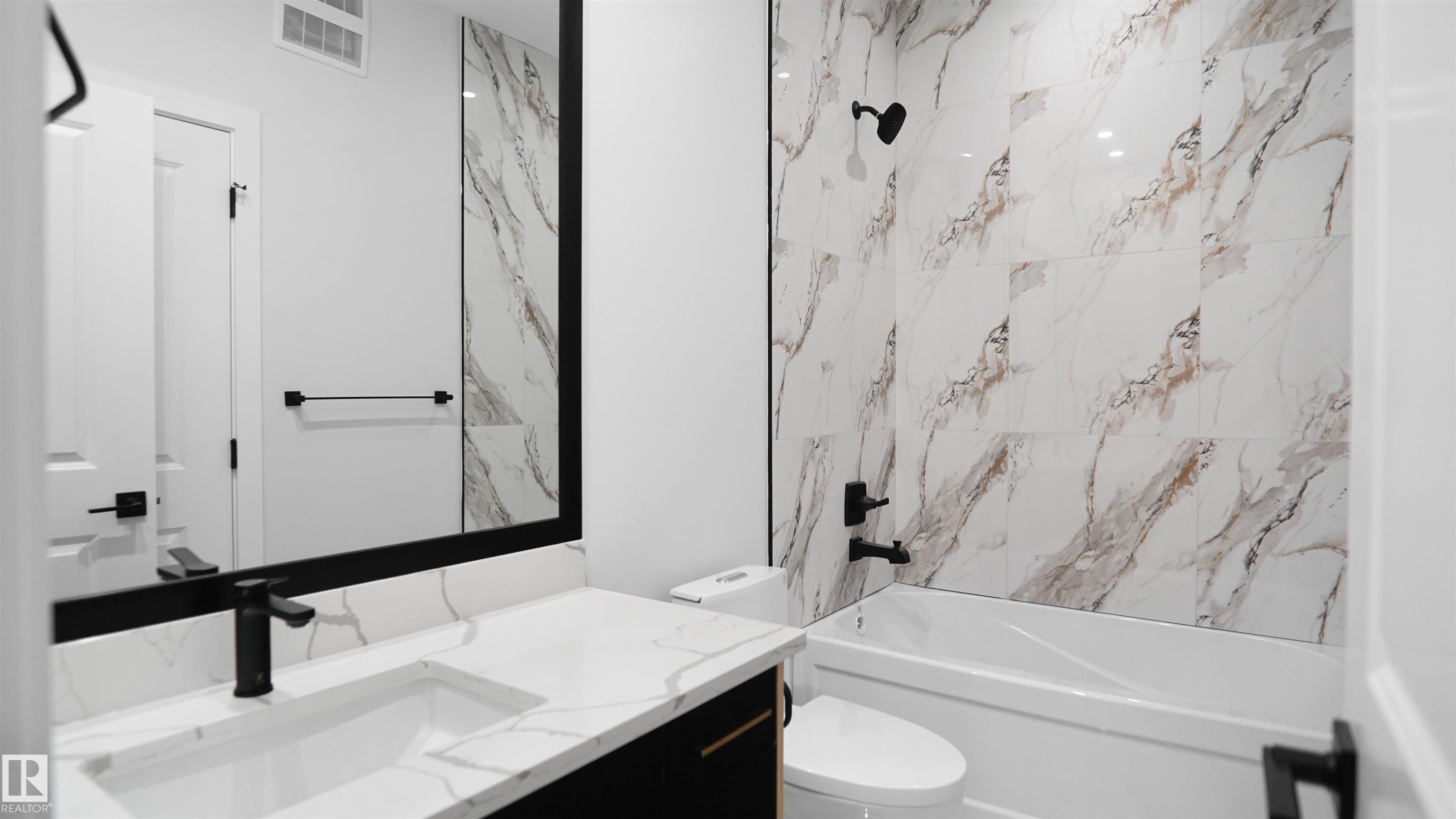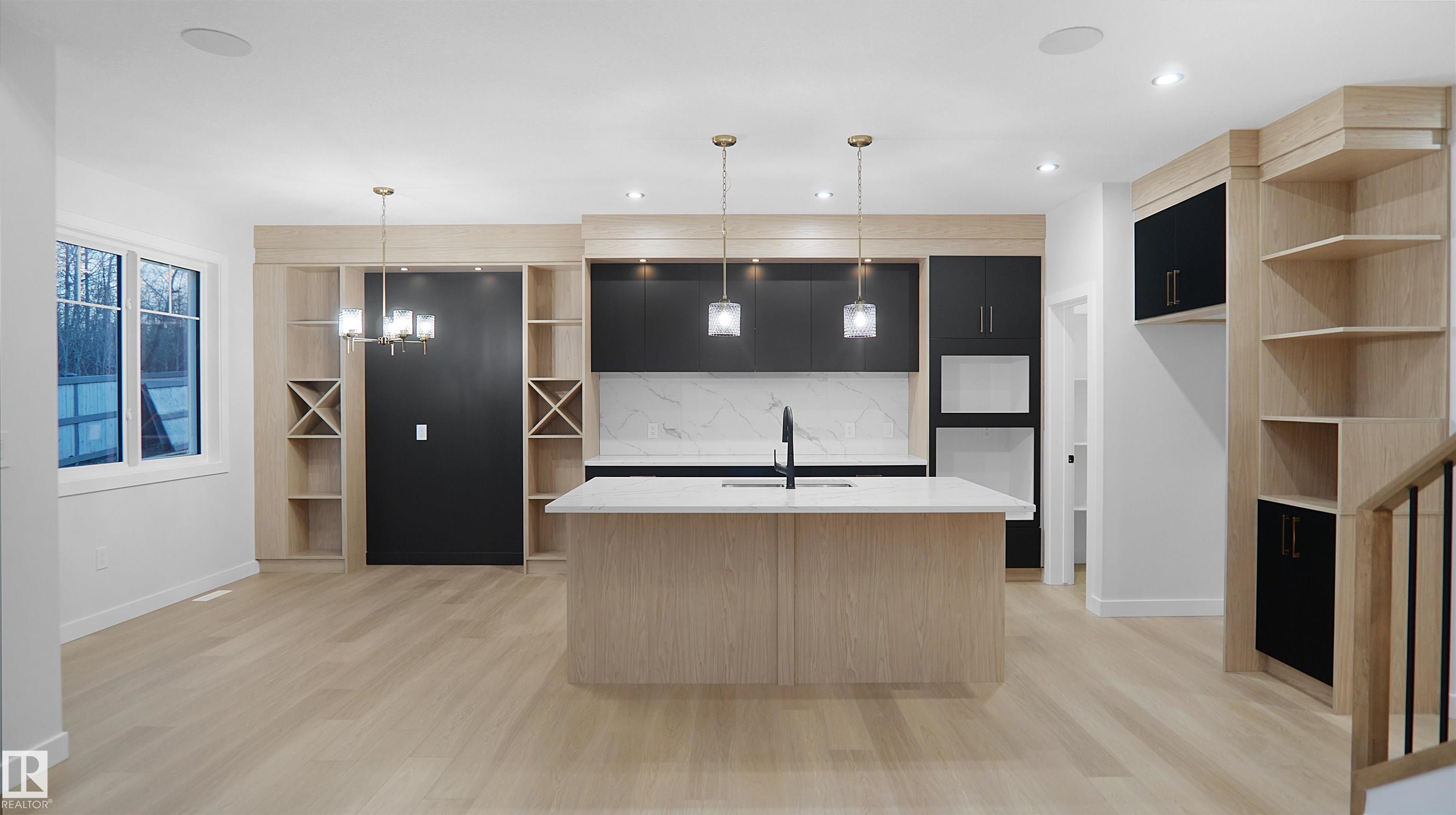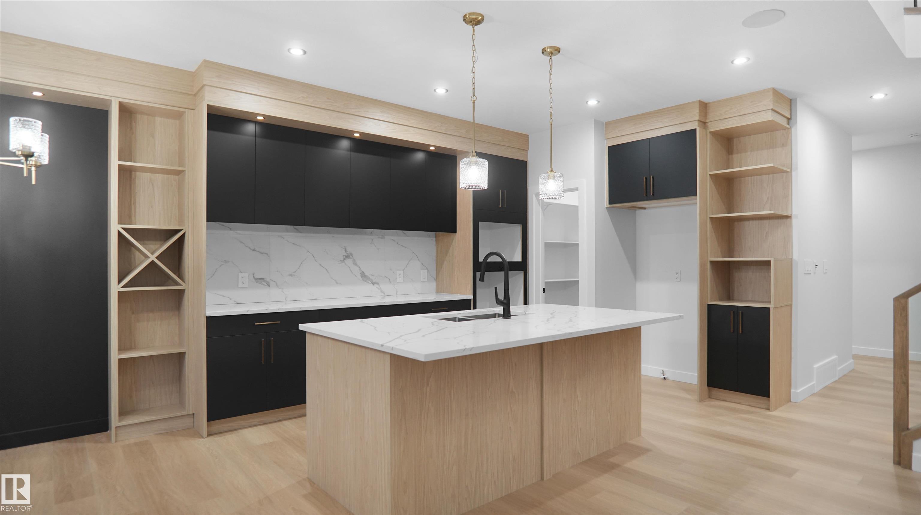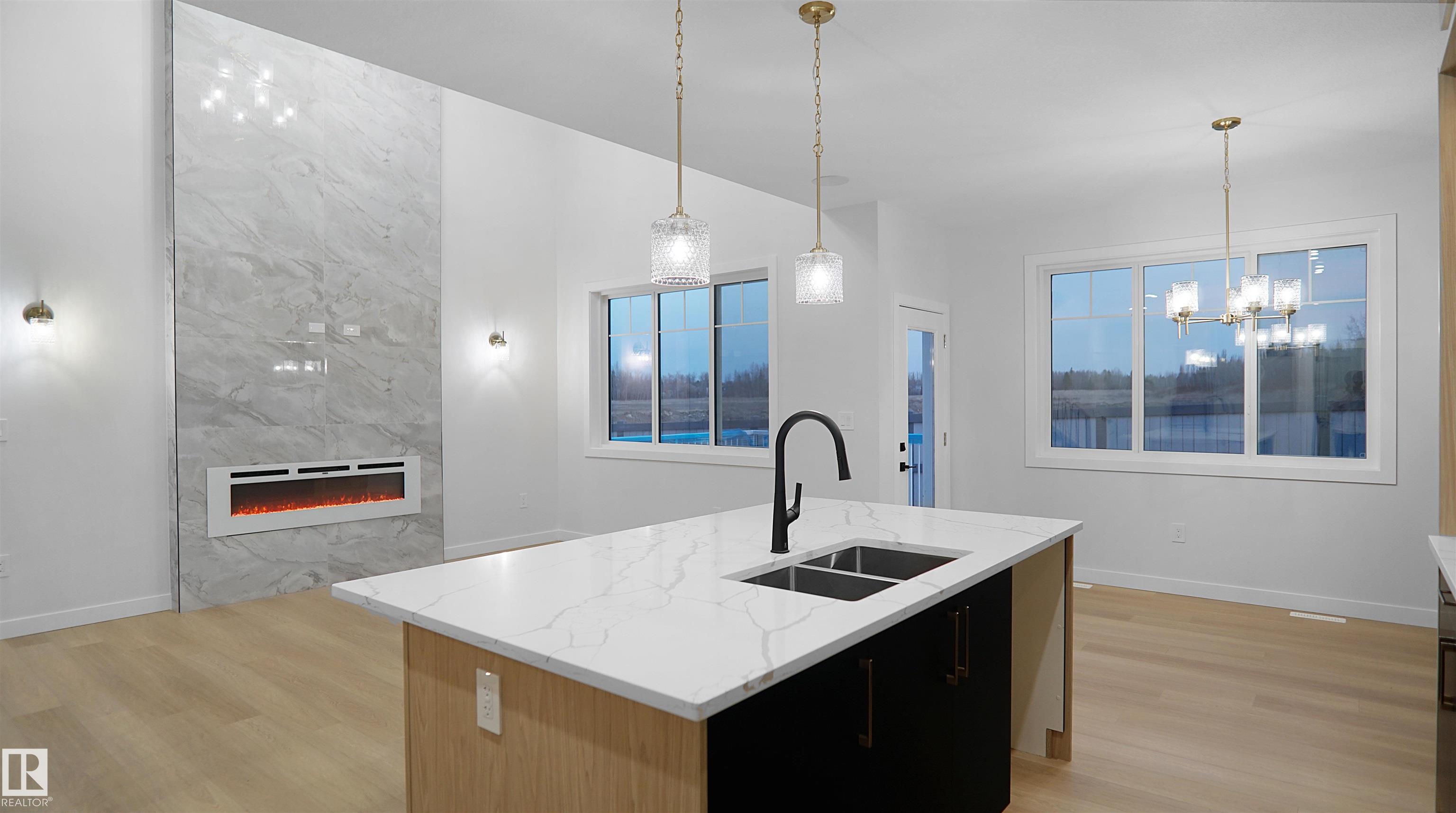 UPGRADED HOME IN THE COMMUNITY OF McLaughlin. This home boasts with 4 bedrooms, 3 full baths, bonus room & 9ft ceilings on all three levels. Main floor offers vinyl plank flooring, bedroom/den, family room with 18ft ceiling, fireplace. Kitchen, with modern high cabinetry, quartz countertops, island, wet bar, & walk-in pantry, is made for cooking family meals and entertaining. Spacious dinning area with ample sunlight is perfect for get togethers. The 3 piece bath finishes the main level. Walk up stairs to master bedroom with 5 piece ensuite/spacious walk in closet, 2 bedrooms, full bath, laundry computer station, and bonus room. Unfinished basement with separate entrance and roughed in bathroom is waiting for creative ideas. Public transit to Edmonton, & more than 40 km of trails, your dream home home awaits. Includes:TRIPLE PANE WINDOWS/ WIRELESS SPEAKERS/ GAS HOOKUP ON DECK.Photos are representative.