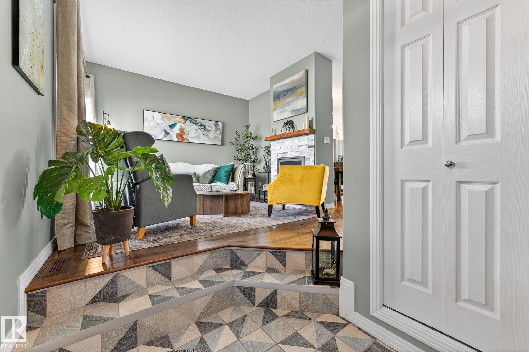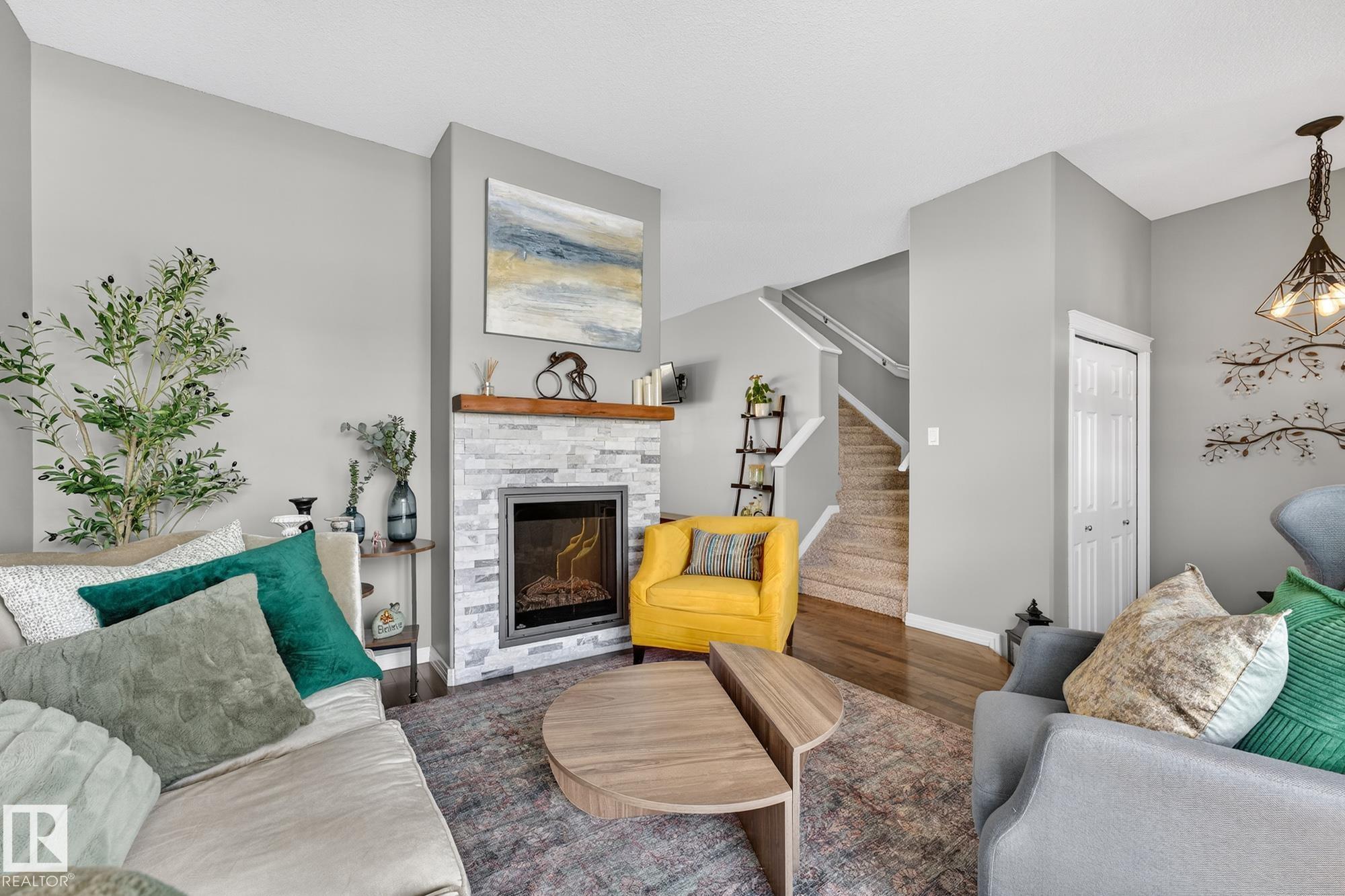 Welcome to The Terraces of Griesbach. Tucked away on a quiet street in central Edmonton, just minutes from shopping, transit, walking paths & more! From the moment you arrive, you?ll love the charming curb appeal & inviting front veranda. Inside, the living room is filled w/ natural light from large front windows & features hardwood floors & a refinished fireplace. The renovated kitchen showcases modern white soft-close cabinetry, quartz countertops, newer appliances, & views of the low-maintenance yard (artificial turf) & double garage. An updated 2-piece bath completes the main floor. Upstairs, you?ll find 2 spacious bedrooms. One w/ cork flooring & a private balcony, along w/ upper-level laundry (washer/dryer 2020) & a Jack-and-Jill 4-piece bathroom. The entire third floor is dedicated to the primary bedroom, offering vaulted ceilings, a walk-in closet, & a 4-piece ensuite. The finished basement includes a large rec room w/ a bar. Additional features: A/C, central vacuum, Hunter Douglas blinds & MORE!