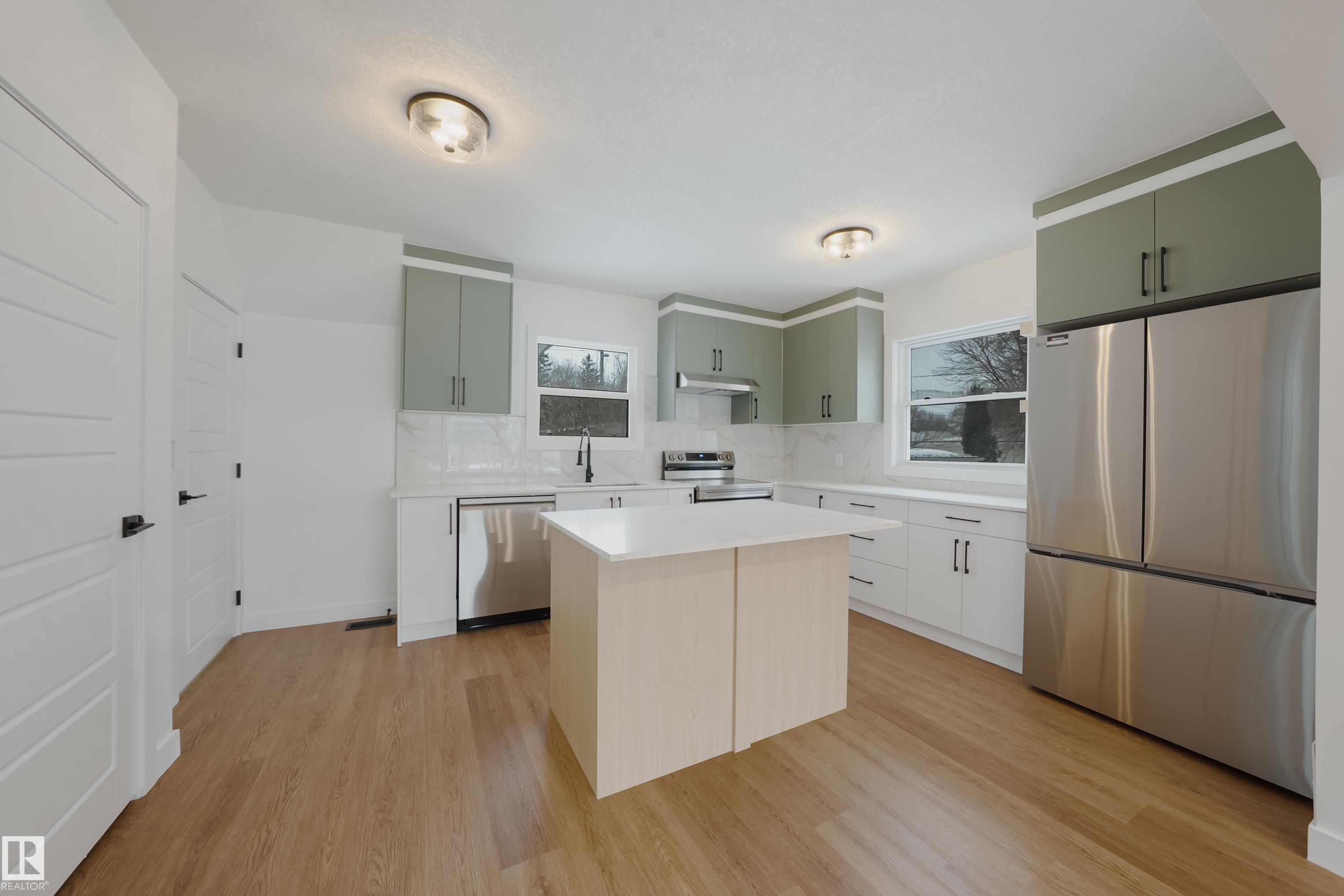 Welcome to this beautifully fully renovated home on a large 55? x 123? lot in the established community of Newton, within walking distance to elementary schools. This spacious property offers 6 bedrooms and 2 full bathrooms, making it perfect for families, first-time buyers, or investors seeking rental potential. The main floor features 3 bright bedrooms with large windows, a welcoming living room with a stylish feature wall, and a stunning modern kitchen with island, quartz countertops, and brand new stainless steel appliances. The fully finished basement includes 3 additional bedrooms, a fully renovated bathroom, separate entrance, brand new kitchen with new appliances, and its own laundry, ideal for extended family living. Recent upgrades include new windows, doors, baseboards, flooring, paint, modern lighting, renovated bathrooms, and two new kitchens. Outside features a large fenced yard with mature trees, detached single garage, storage shed, and hot tub. Close to schools, parks, transit & shopping.