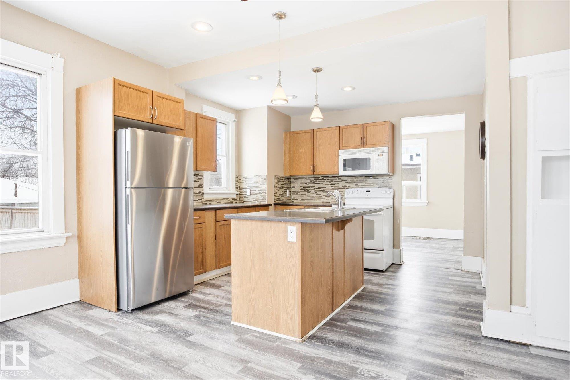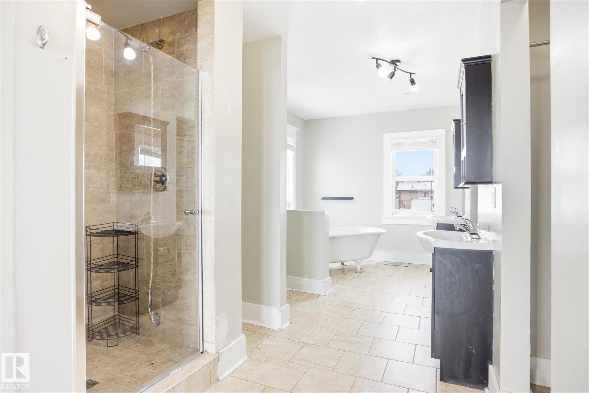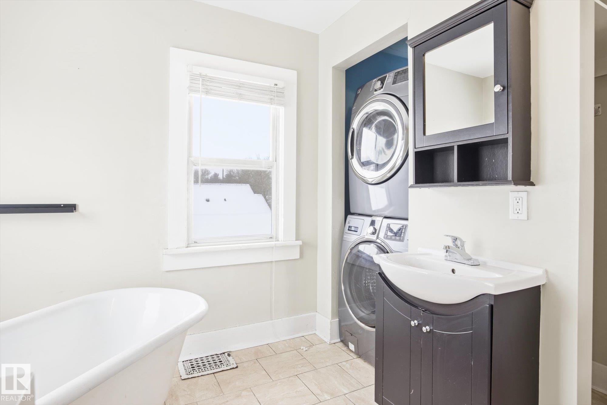 Fantastic opportunity on a large 690 sqm lot in a quiet cul-de-sac in Eastwood! This 1,983 sq ft 2-storey home offers a versatile layout with a separate entrance to a fully finished 2 bedroom, 1 bathroom basement unit. The main home features a functional floor plan with multiple living spaces, upstairs laundry, and partial updates throughout. The primary ensuite includes a classic clawfoot tub, adding character and charm. The west-facing front brings in great natural light, while the expansive backyard offers plenty of room to enjoy or further develop. The basement suite includes its own laundry for added convenience. Recent updates include shingles (2020), hot water tank (2014), and 100 amp electrical service. Located minutes to downtown, NAIT, schools, parks, and transit, with quick access to major routes.