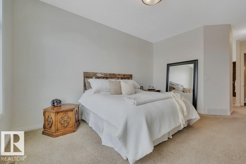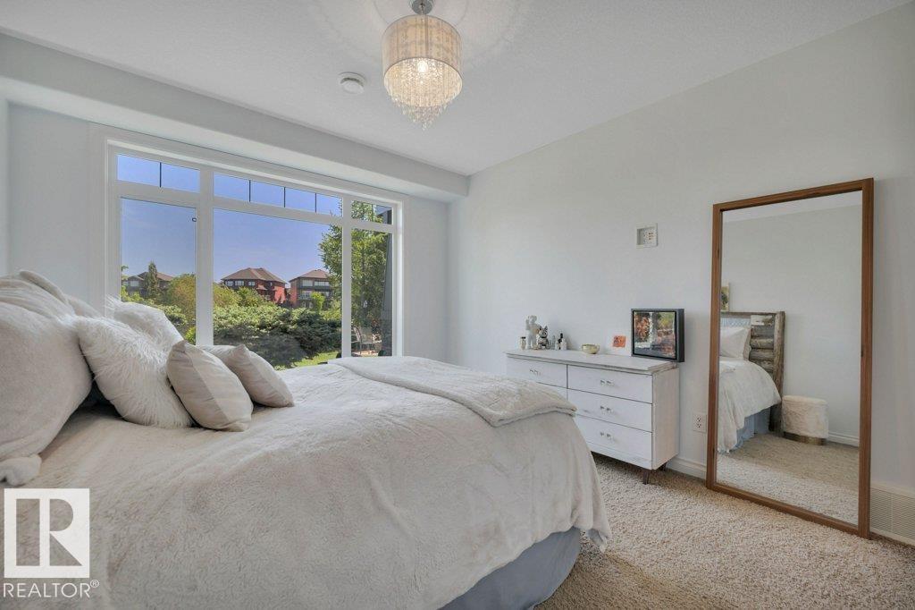 Executive Walkout Bungalow | Custom Built by Hillview Homes. Offering 3371 sqft of living space on a quiet lot backing onto a beautiful pond and fountain, with trails leading to the river valley. Features 4 bedrooms plus den, 2.5 baths, 10'?14' coffered ceilings, and transom windows that fill the home with natural light. Kitchen includes Sub-Zero fridge, gas cooktop, double wall ovens, and new washer/dryer. Spa-inspired primary suite with steam shower and private deck access. Walkout basement offers 3 bedrooms, rec room, fireplace, and in-floor heating with boiler system and new hot water holding tank. This very well maintained home by original owners shows pride in ownership throughout, with upgraded Hardie plank siding, AC, and oversized heated garage with drain, hot/cold water, and dog run off man door. Rocky Mountain-inspired yard with a hidden ?wine time? retreat. Close to schools and Currents of Windermere. Do not miss out on this one.