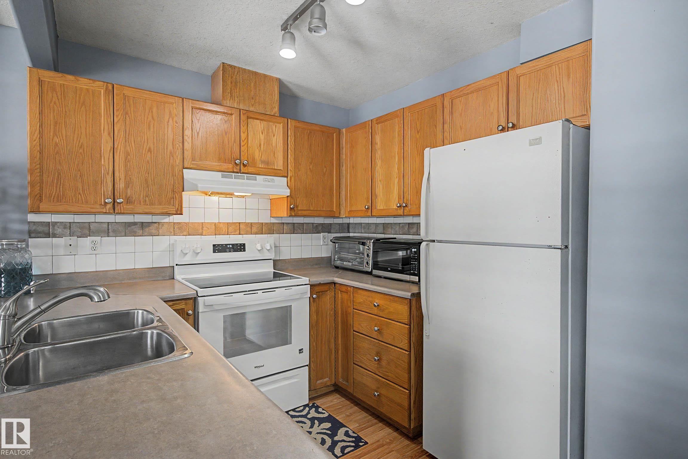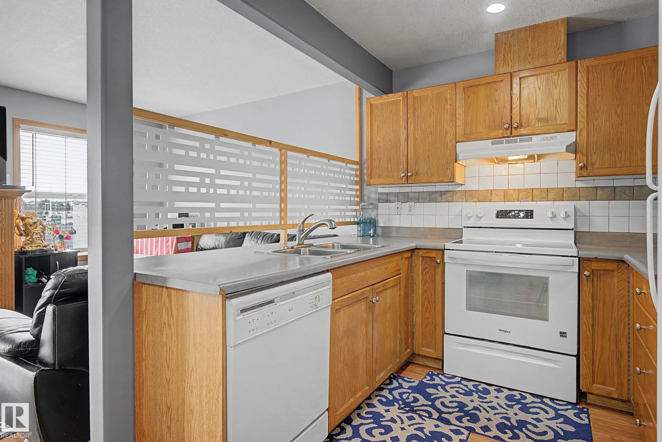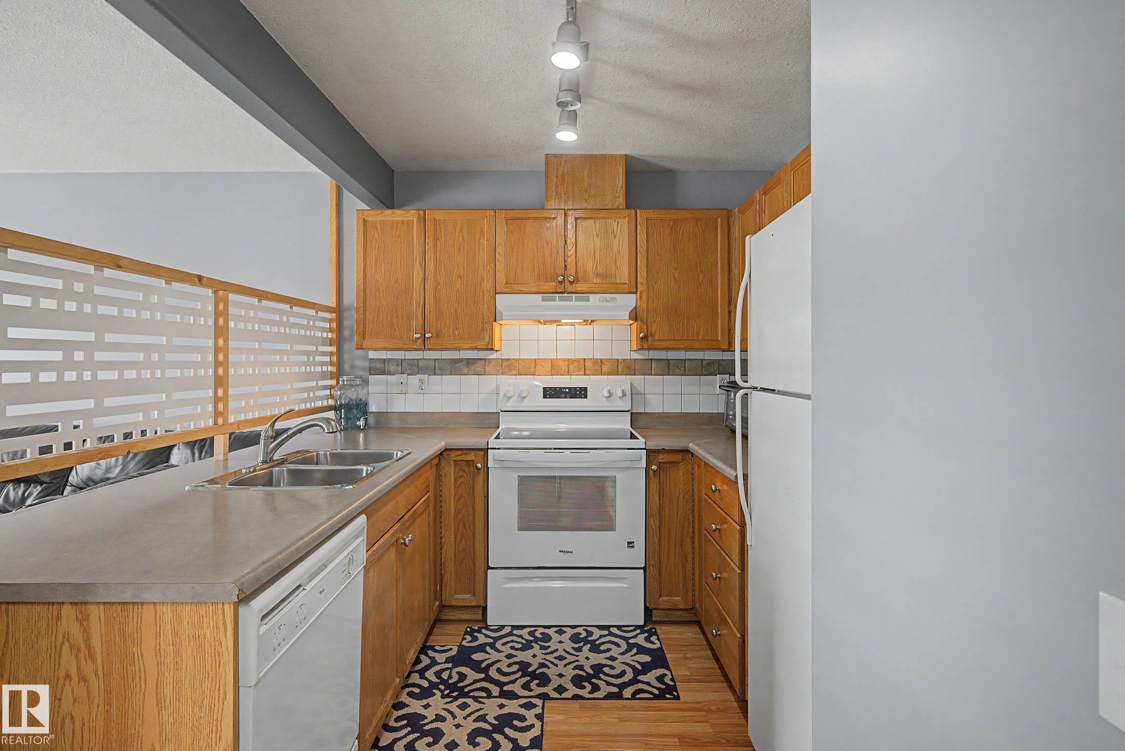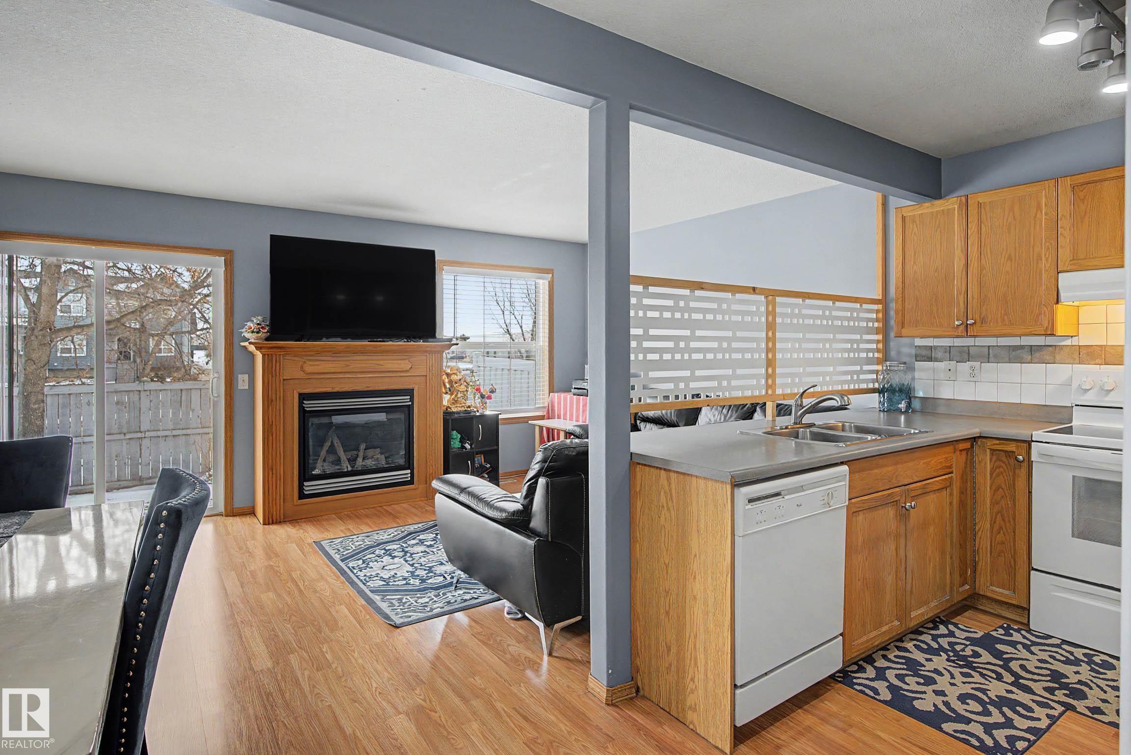Affordable & well maintained 2 bedroom, 2 bathroom condo perfect for first time home buyers, downsizers or investors! This bright & functional unit offers an open concept layout with a spacious living room featuring large windows that fill the space with natural light & a gas fireplace. The kitchen is equipped with ample cabinetry, white appliances & a convenient layout ideal for everyday living & entertaining. The large primary bedroom (14.9'x11.3') includes a private 3 piece ensuite. The second bedroom is also generously sized (12.1'x12.3') & next to a full 4 piece bathroom. Enjoy the added convenience of in-suite laundry & plenty of storage space. Step outside to your private patio ideal for relaxing or summer BBQs. Added bonus of a single attached garage plus parking pad extension allowing for 2 vehicles on the driveway. Located in a well managed complex with low condo fees & close to schools, parks, shopping, public transit & all essential amenities.