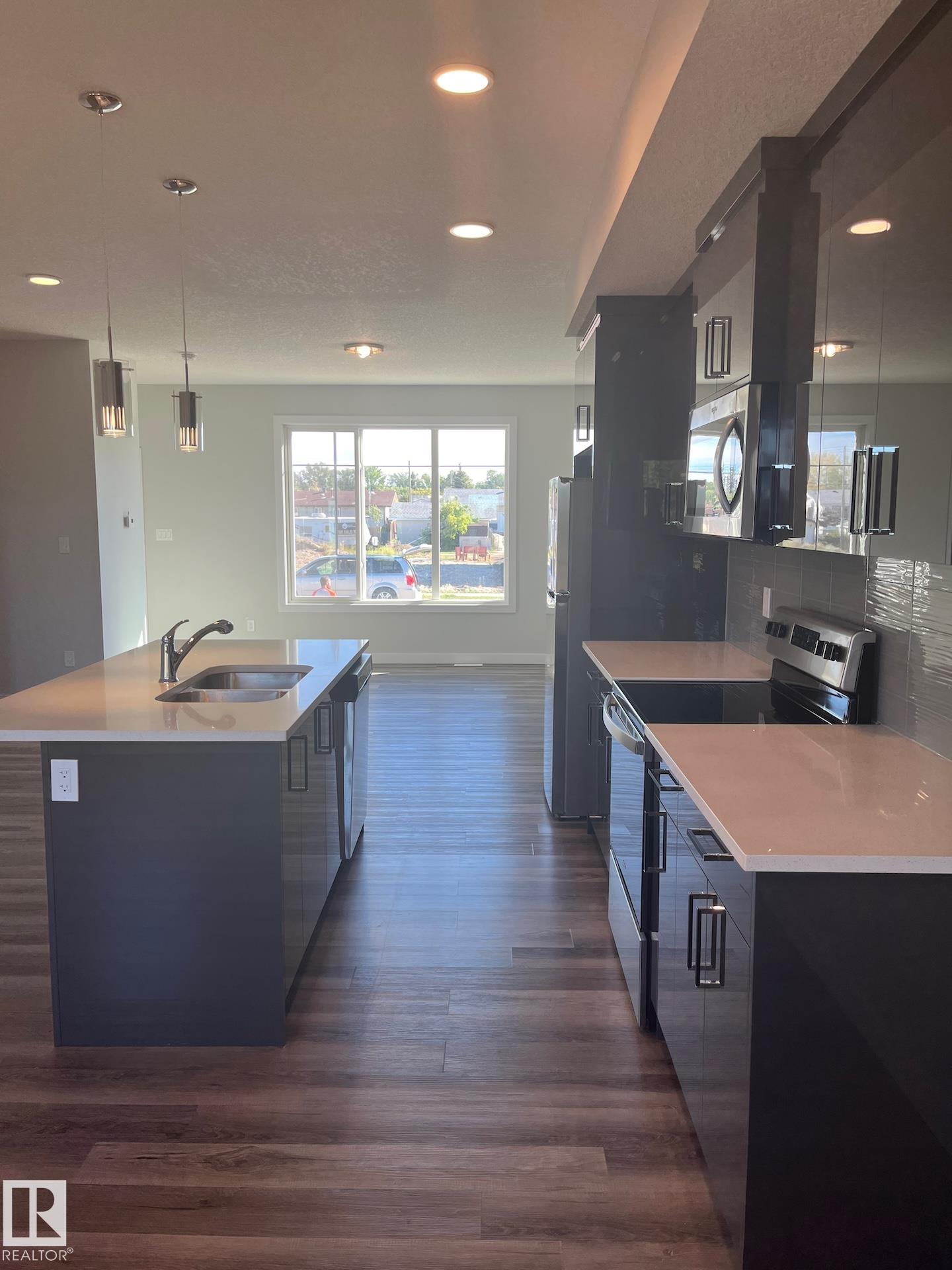 Welcome Home to the Willows in Peaceful Redwater! Perfect 1423 sq ft 3 Bedroom Townhome. Move to the Industrial Heartland with easy access to northern routes of Alberta and quick drive to Edmonton and Fort Saskatchewan. Wonderful great room concept main floor. Open entrance way leads to family room. Extra large kitchen with tons of counter space and pantry overlooks electric fireplace. Large dining area. Half bathroom and patio door leads to rear deck. Great rear lane access overlooks pond. Top floor has large laundry room, full master bedroom with second floor balcony, ensuite and walk in closet, 2 additional bedrooms and full bathroom. Home comes with appliances and completed landscaping. Terms and pets permitted subject to final owner approval. Tenant pays all utilities.