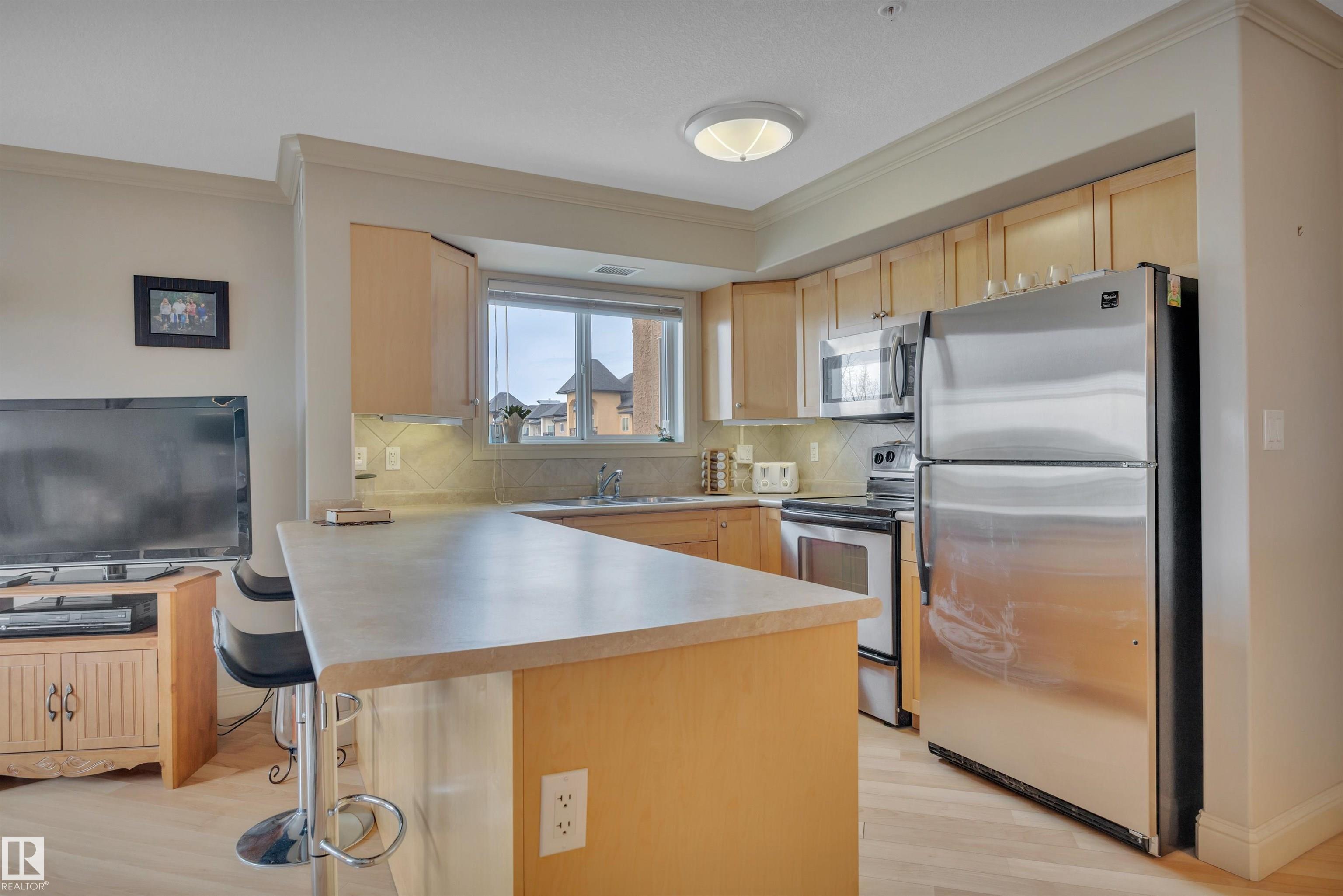 Welcome to this absolutely stunning 3rd-floor corner unit offering incredible value, Featuring TWO parking stalls, including a heated underground stall with attached storage and central A/C, this is a rare find! Step inside to a spacious, open-concept layout designed for both comfort and style. The kitchen is beautifully appointed with light maple cabinetry, stainless steel appliances, under-cabinet lighting, and plenty of counter space perfect for cooking and entertaining. This well-designed condo offers two generous bedrooms, including a primary suite with dual windows, a walk-in closet, and a private 4-piece ensuite. A second full bathroom adds convenience for guests or roommates. Step outside to your wraparound southwest-facing balcony, complete with a natural gas BBQ hookup. Perfectly located within walking distance to schools, transit, grocery stores, restaurants, and Skyview Shopping Centre, everything you need is right at your doorstep. A perfect condo awaits in Baranow!