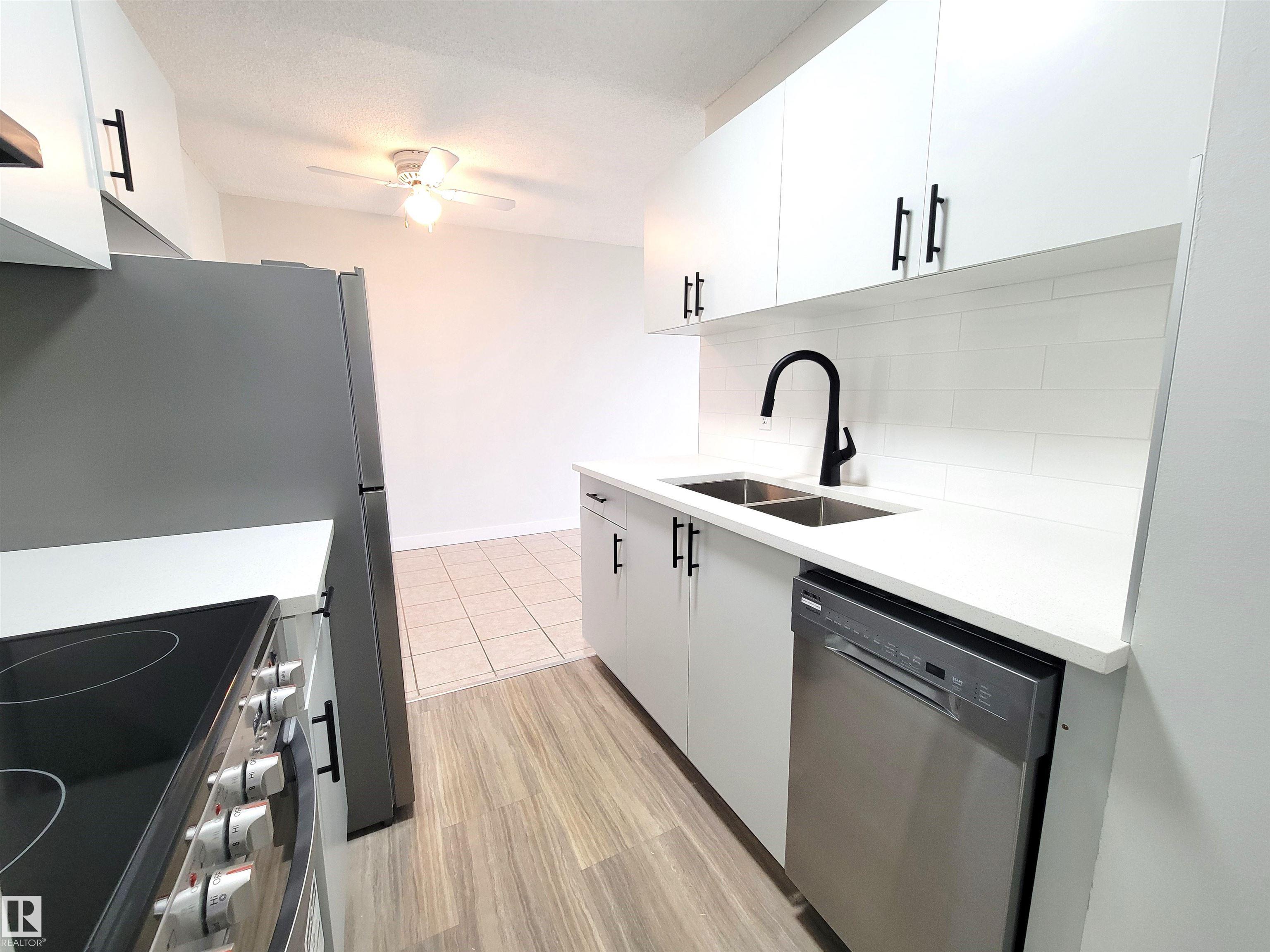 Fully renovated and move-in ready, this 8th floor 1 bedroom condo offers exceptional value with sweeping southwest views of the city skyline and river valley. Bright and inviting, the unit features fresh paint, new flooring, and large windows that fill the space with natural light. The updated kitchen is finished with quartz countertops and new appliances (still under warranty), while the bathroom has also been tastefully upgraded. The functional layout provides a comfortable living area and well-sized bedroom, ideal for first-time buyers or investors. Located on Jasper Ave, just a short walk to the Quarters LRT, Commonwealth Rec Centre, Dawson Park, and Riverdale, with quick access to downtown, trails, and amenities. A turnkey opportunity with strong rental potential.