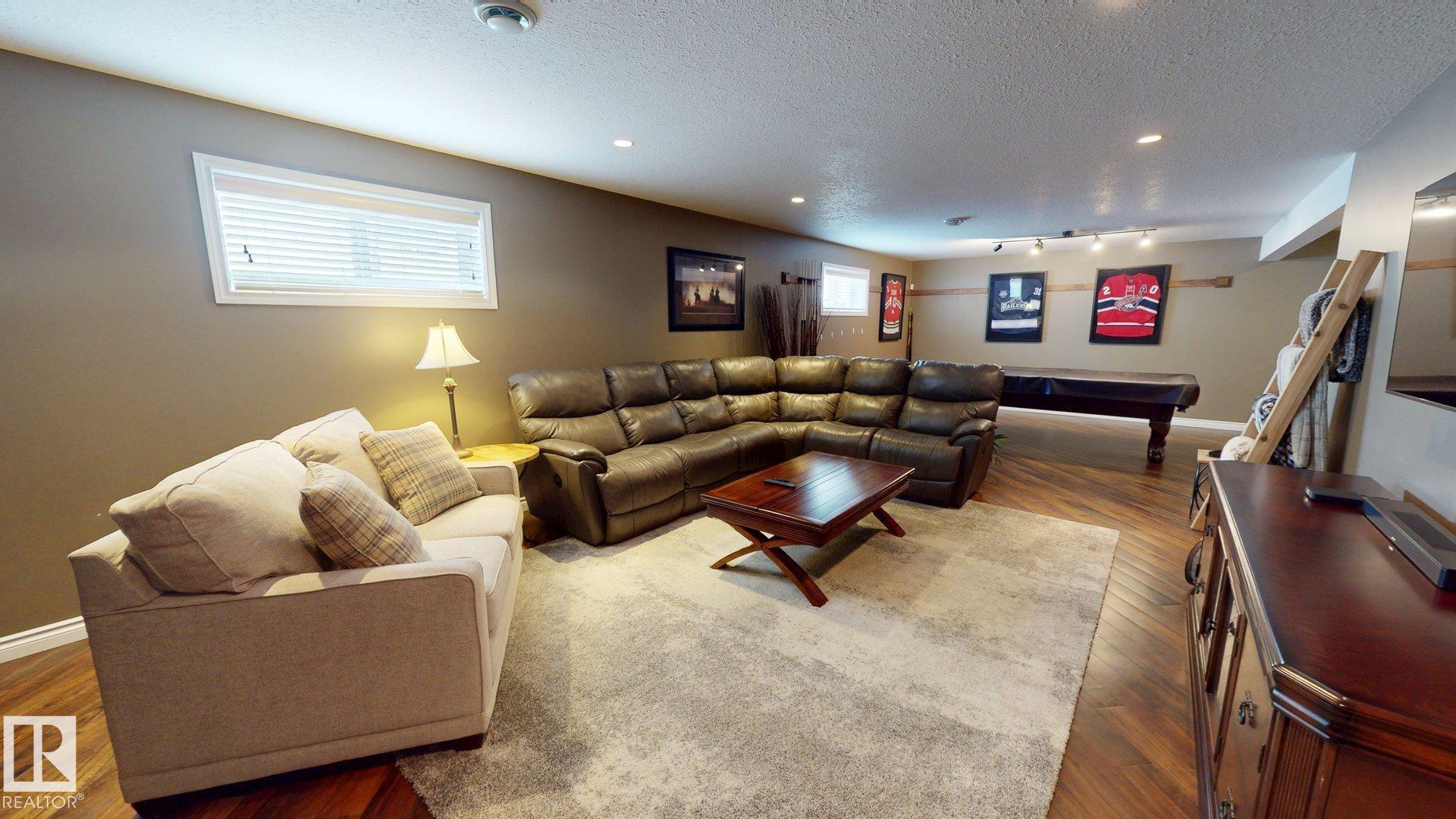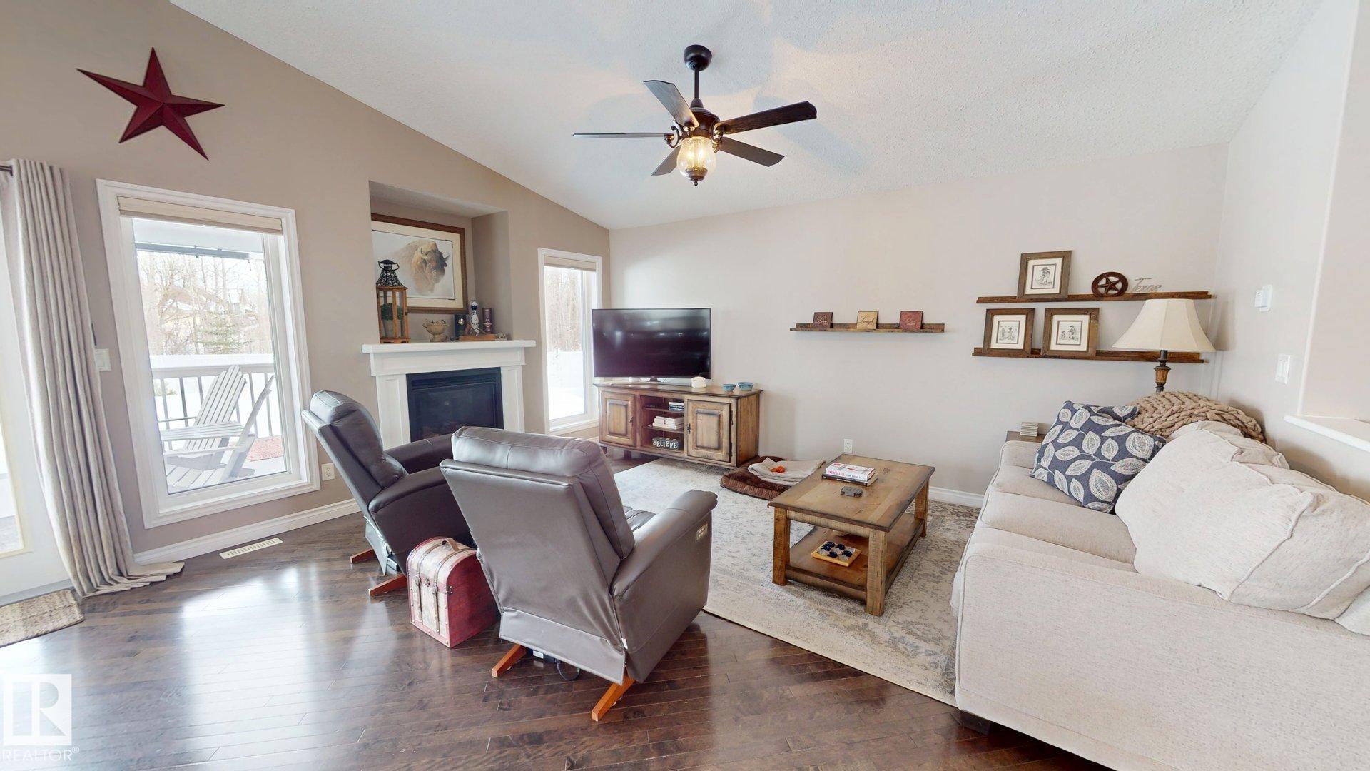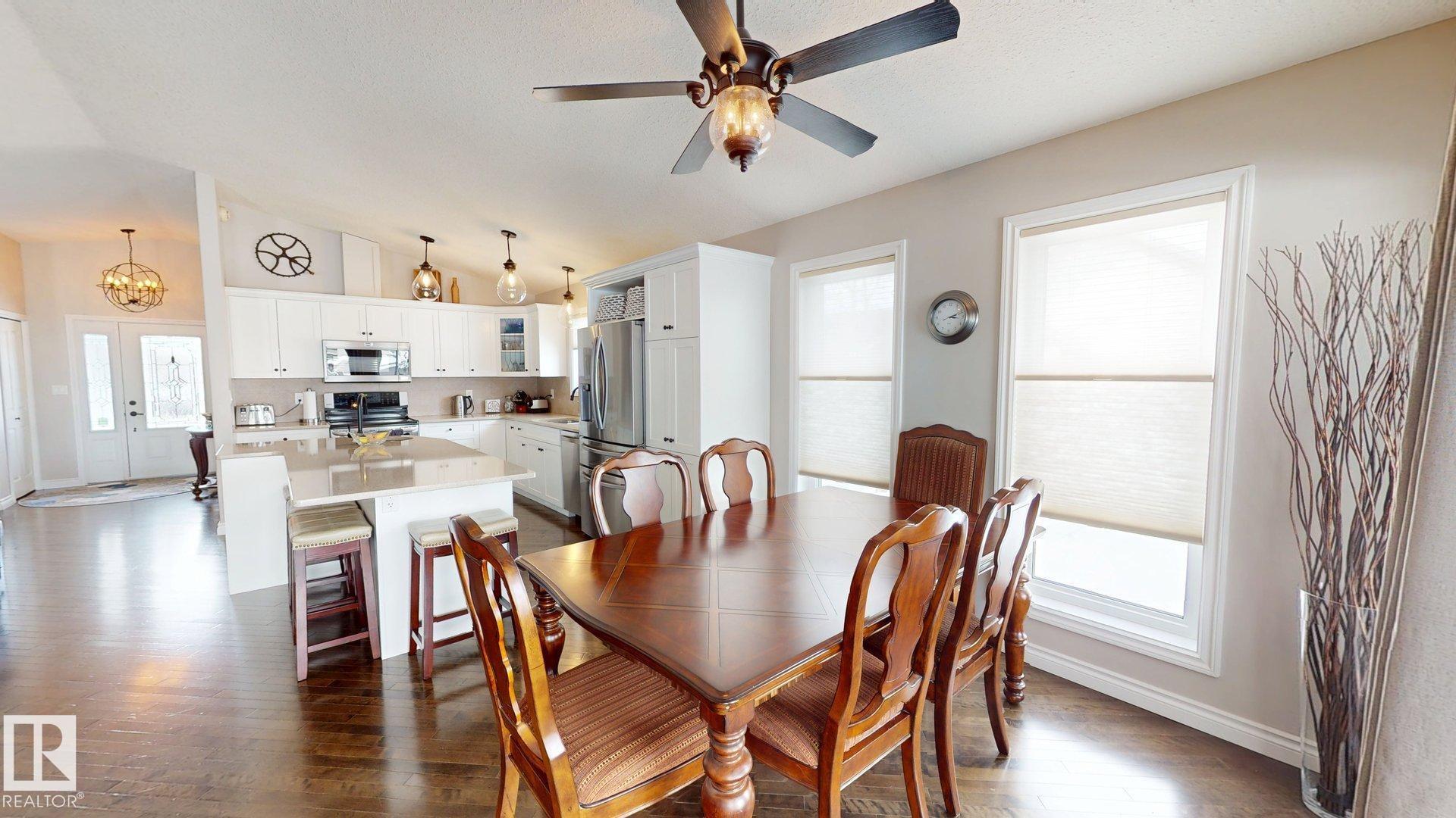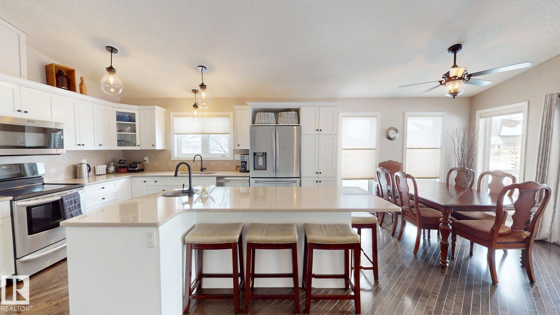 STUNNING 3+2 bdrm home on a HUGE lot in highly sought after Regency Park! Pride of ownership is abundantly clear in this fabulous home, you'll begin to see it from the curb! You walk into a sprawling open floorplan with soaring vaulted ceilings, gleaming hardwood, and a kitchen you'll look forward to cooking in! Tons of cabinets, custom Italian tile backsplash, quartz countertops, PLUS..an extra sink in the island that also features a breakfast bar! Just adjacent is a spacious living room with a cozy gas fireplace, & garden doors leading to your covered deck with gas line...perfect for entertaining! Further, there are 3 spacious bdrms, as well as a gorgeous office/den, or possible 4th bdrm up with in-floor heat! Downstairs features vinyl plank flooring, a bright oversized family room with 2 more bdrms, & one is oversized! Don't forget the backyard!! one of the largest lots in town, you've got more than enough room for a pool, skating rink, & ALL of your garden furniture! BONUS There's room for an RV pad!