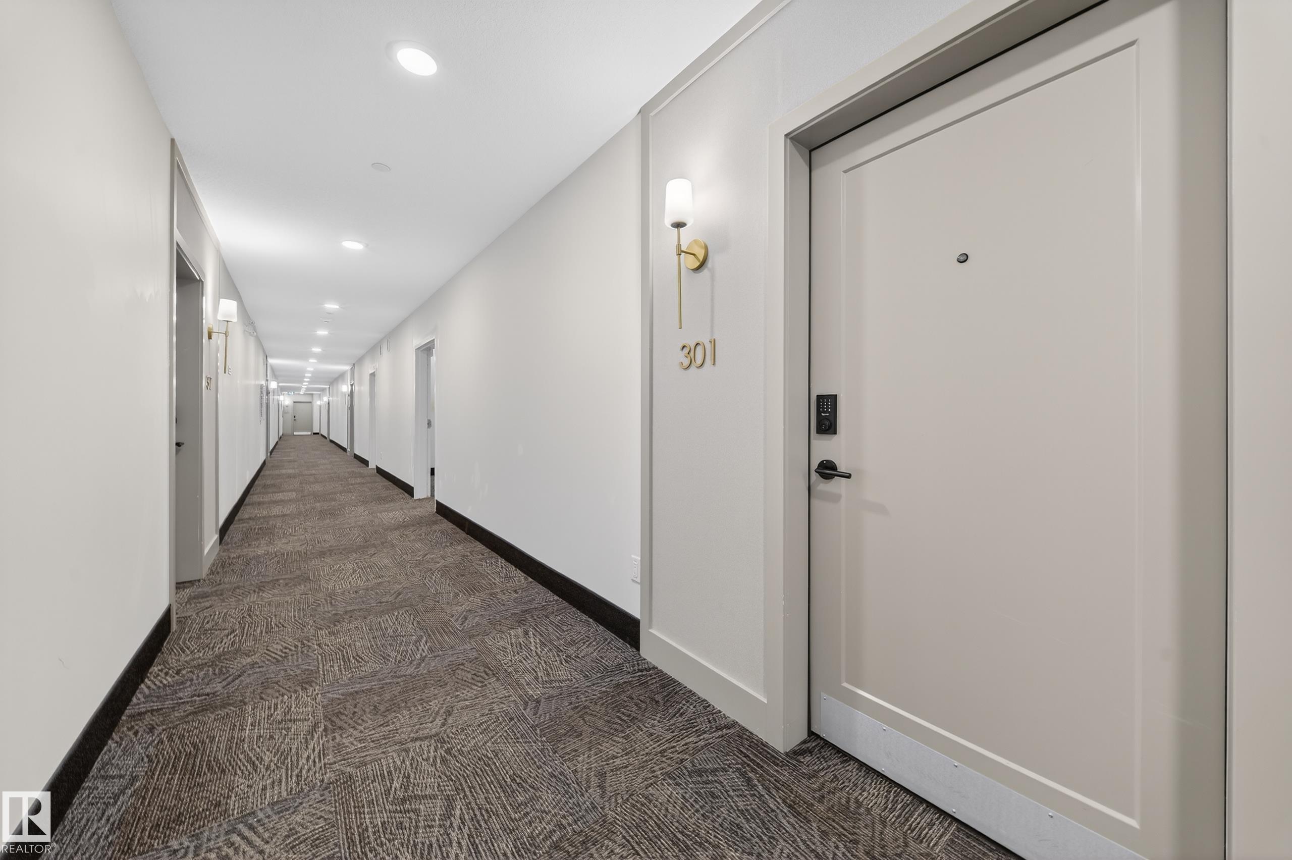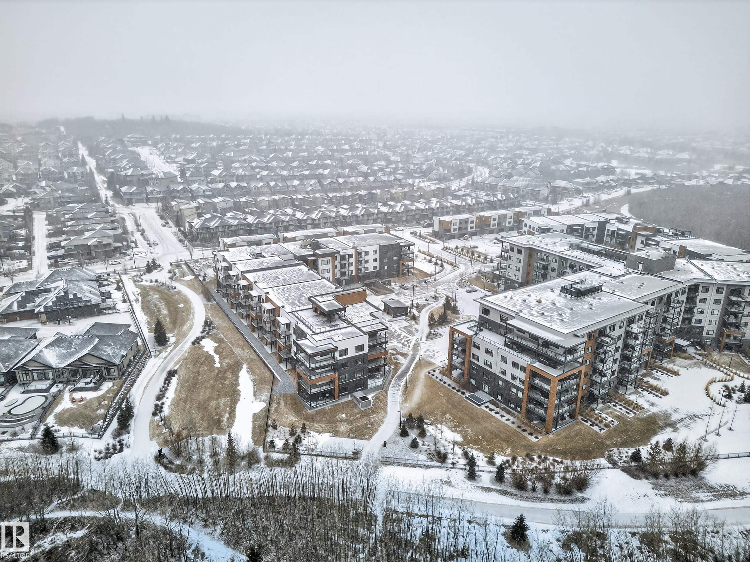 Welcome to Edge at Larch Park! This bright and beautifully finished 2 bed, 2 full bath unit offers the perfect blend of luxury and comfort. Featuring stunning vinyl plank flooring and a spacious open-concept layout, the kitchen is a showstopper with shaker cabinetry, upgraded KitchenAid appliances, quartz counters, large pantry and a dedicated coffee station. The inviting living area is highlighted by a stylish feature wall with fireplace, while large windows fill the space with natural light. Step out onto your private balcony with a gas line for BBQ and enjoy partial ravine views. The spacious primary retreat includes custom walk-in closet cabinetry and a spa-inspired ensuite with hand-rails in the walk-in shower. Additional features include A/C, in-suite laundry, blinds included, underground heated parking, and storage. Enjoy resort-style amenities including a lounge with pool table and chef?s kitchen, fitness centre, meeting rooms, guest suites, and a rooftop patio with BBQs and scenic ravine views.