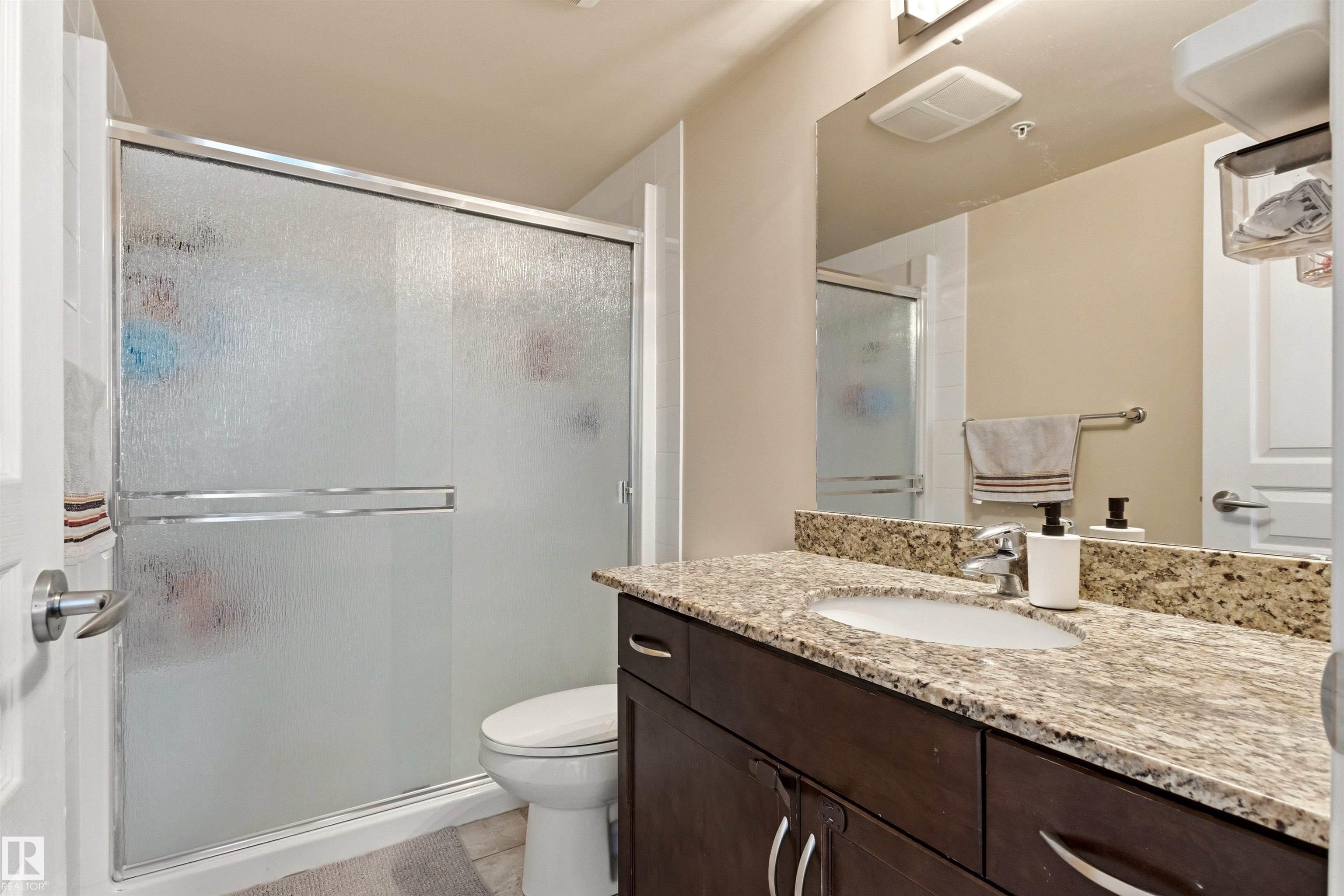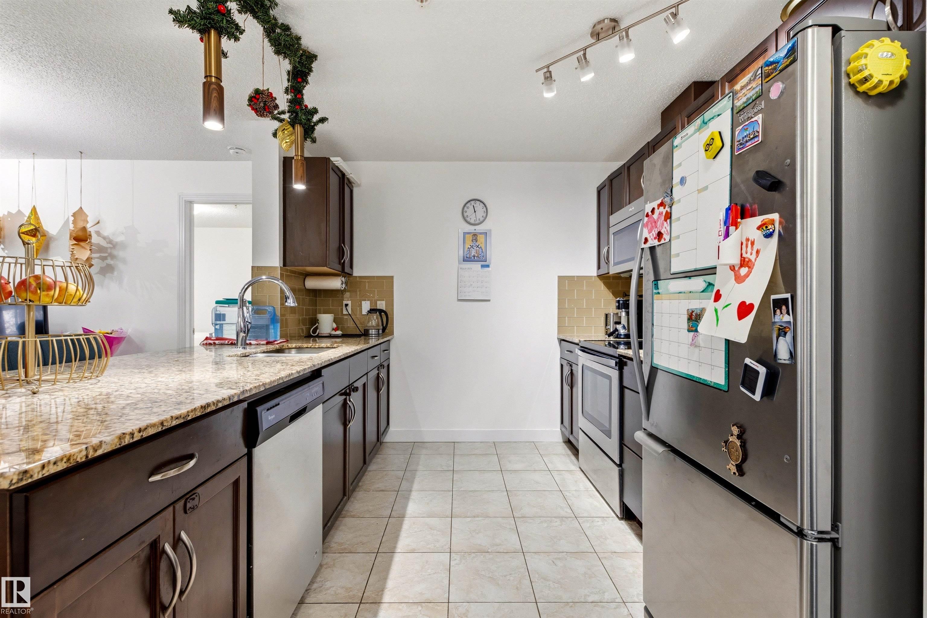 Welcome to this beautifully maintained condo offering over 1,000 sq ft of bright living space in a fantastic location. This well-designed unit features 2 spacious bedrooms plus a versatile den?perfect for a home office. Large windows flood the home with natural light, and there is in floor heating creating a warm atmosphere throughout. The kitchen is thoughtfully finished with granite countertops and stainless steel appliances, opening to a comfortable living and dining area ideal for both everyday living and entertaining. With 2 full bathrooms, convenience and comfort are built in. Step outside to enjoy the generous-sized balcony?perfect for morning coffee or evening relaxation. This unit also includes 1 underground parking stall with additional storage. The building is immaculately kept and offers excellent amenities including an exercise room, owners? lounge with kitchen,TV& pool table, and a guest suite for visitors. Close to transportation, shopping, schools, right at your doorstep!