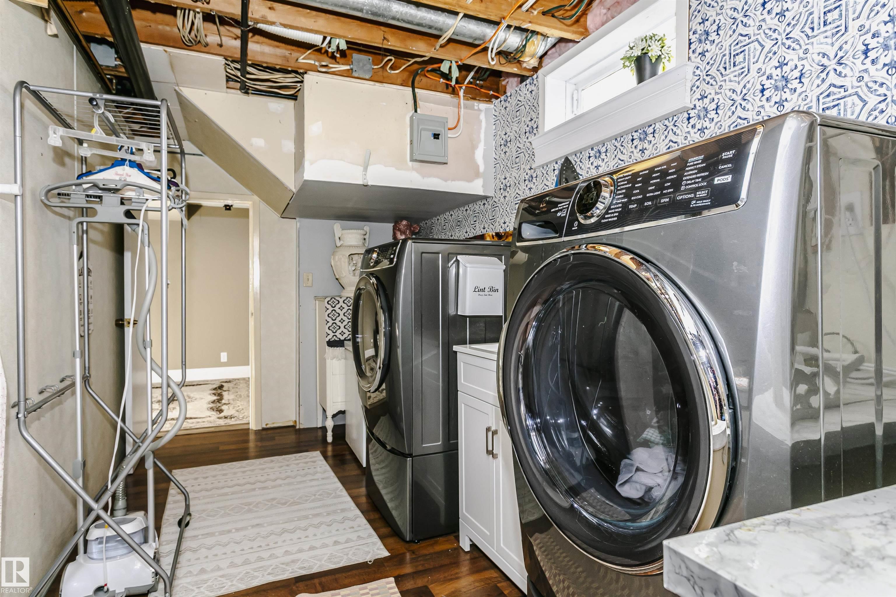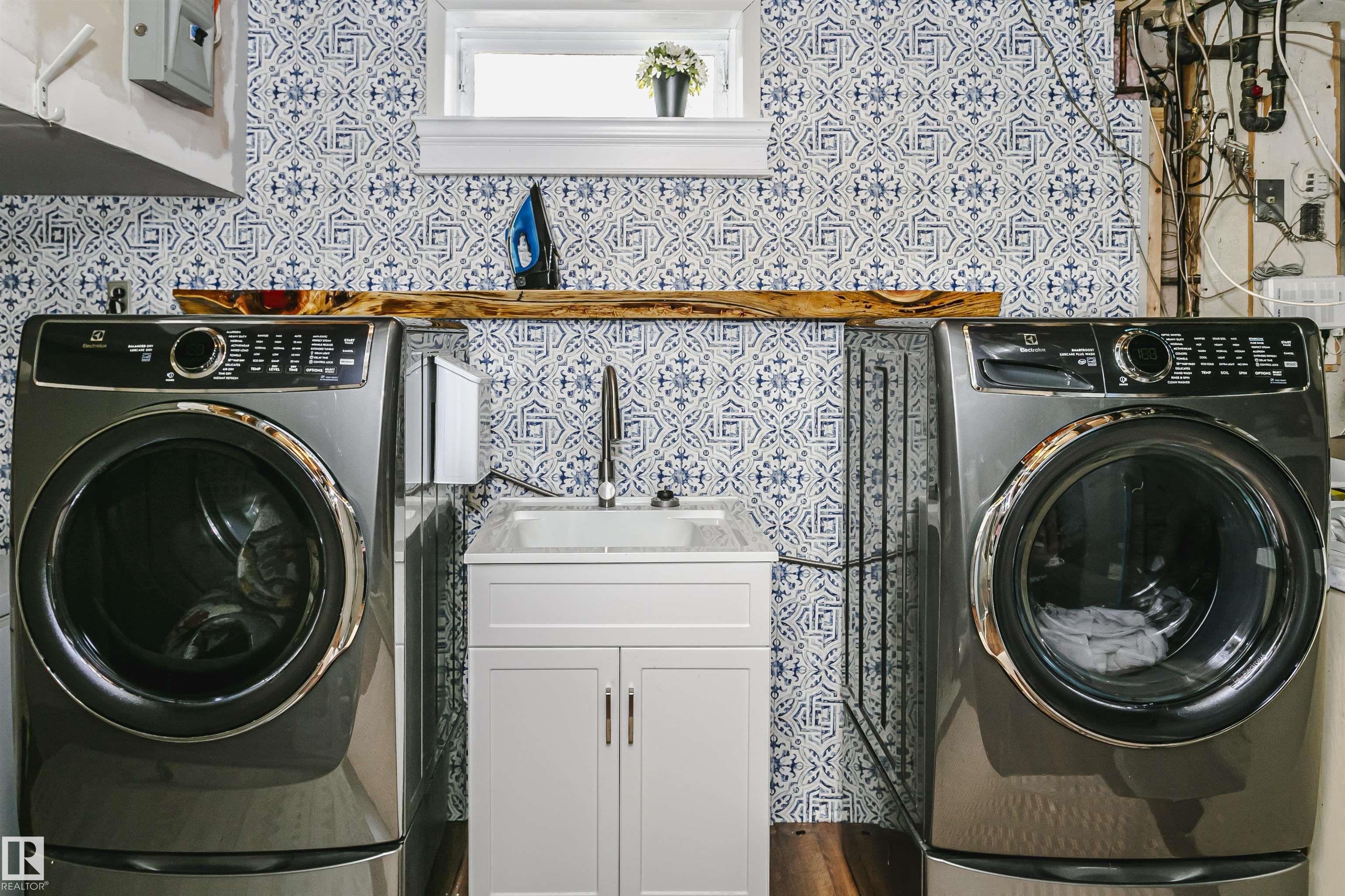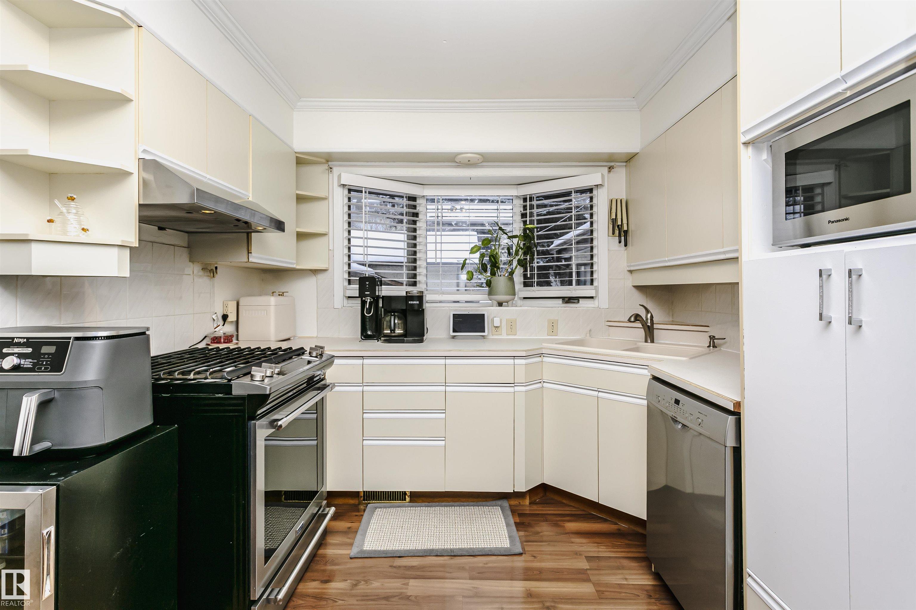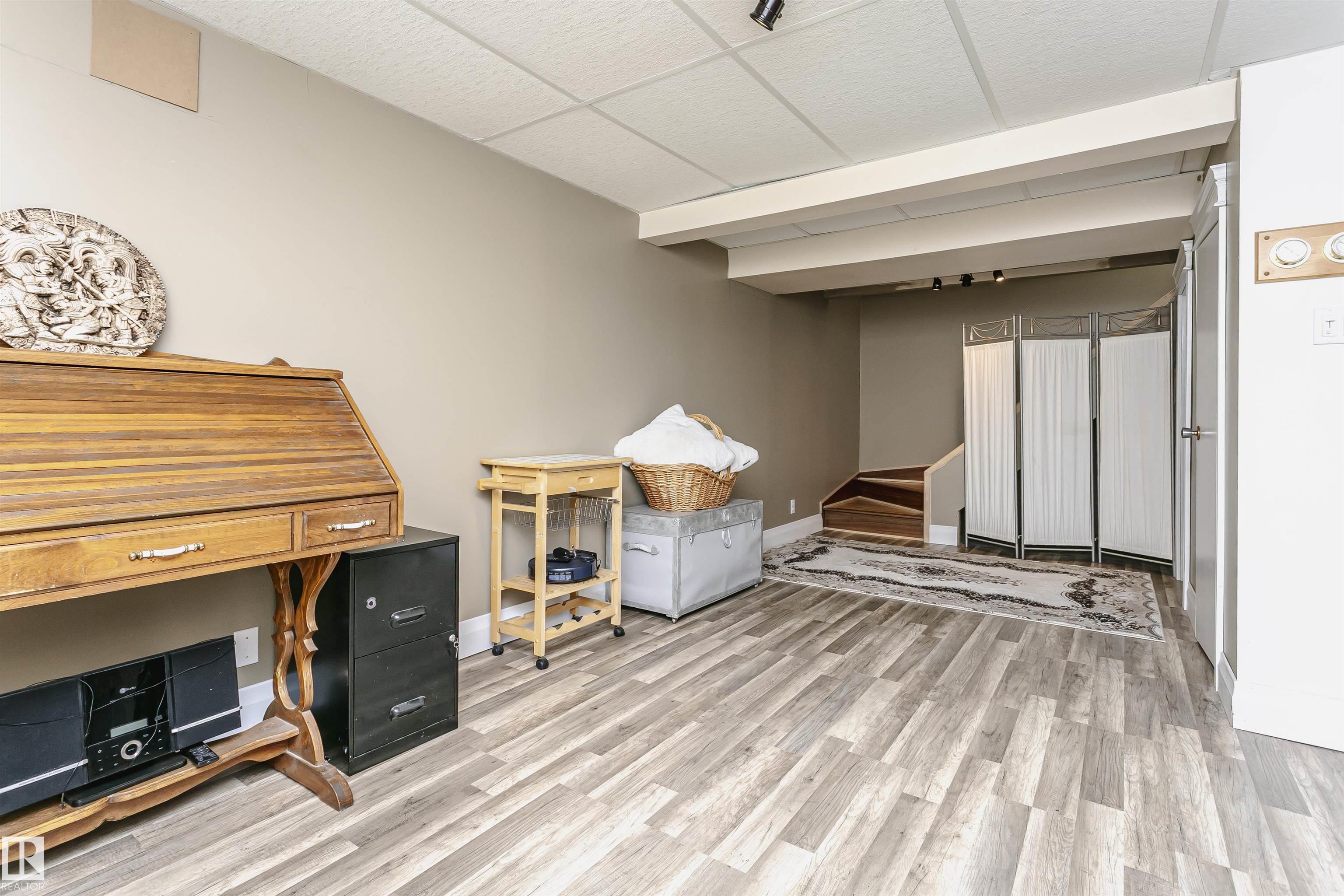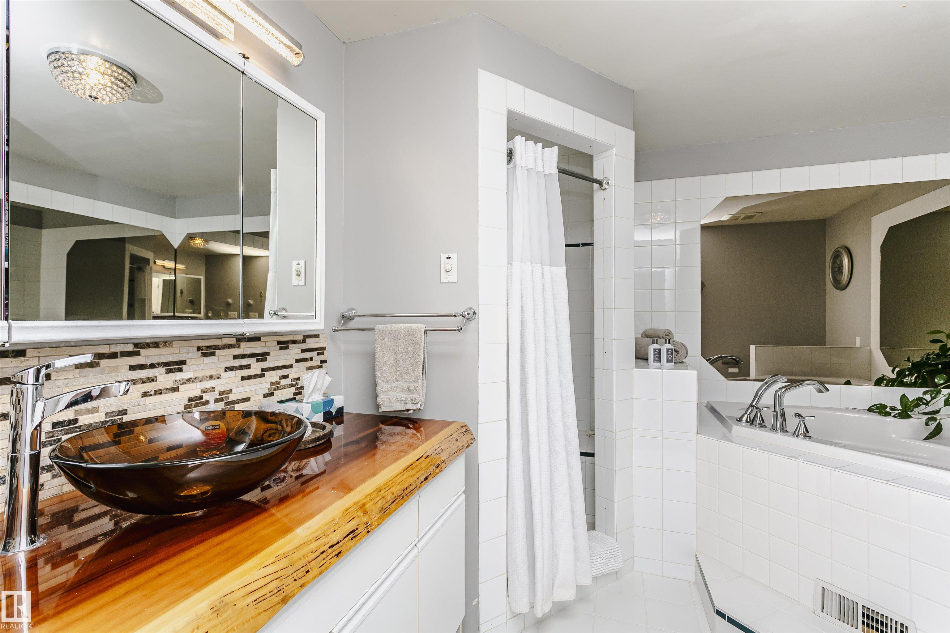 Fantastic 3 bedroom, 3 bathroom bungalow in St. Albert with fully finished basement and MASSIVE garage. Main floor features eat-in kitchen with gas stove and newer stainless appliances. Gather in the large living room complete with wood burning fireplace. Enjoy the sunken primary suite with numerous windows, vaulted wood ceiling, access to the yard and a 5 piece ensuite anchored by a corner raised tub. You will also find a 2nd primary type suite on the main if you add a wardrobe or you could use as a home workspace/salon as it has side entry exterior access, faux F/P and a 2 piece bathroom. The finished basement is host to a huge family room, 3rd bedroom, 3 piece bathroom and laundry storage area. The garage is a home mechanics/woodworkers dream as it is basically a 20x24 garage attached to a 24x32 garage attached to a storage area. Most recent update are new sewer line in 2020, shingles approx 10 years, appliances last 6 years, hwt last 3 years.