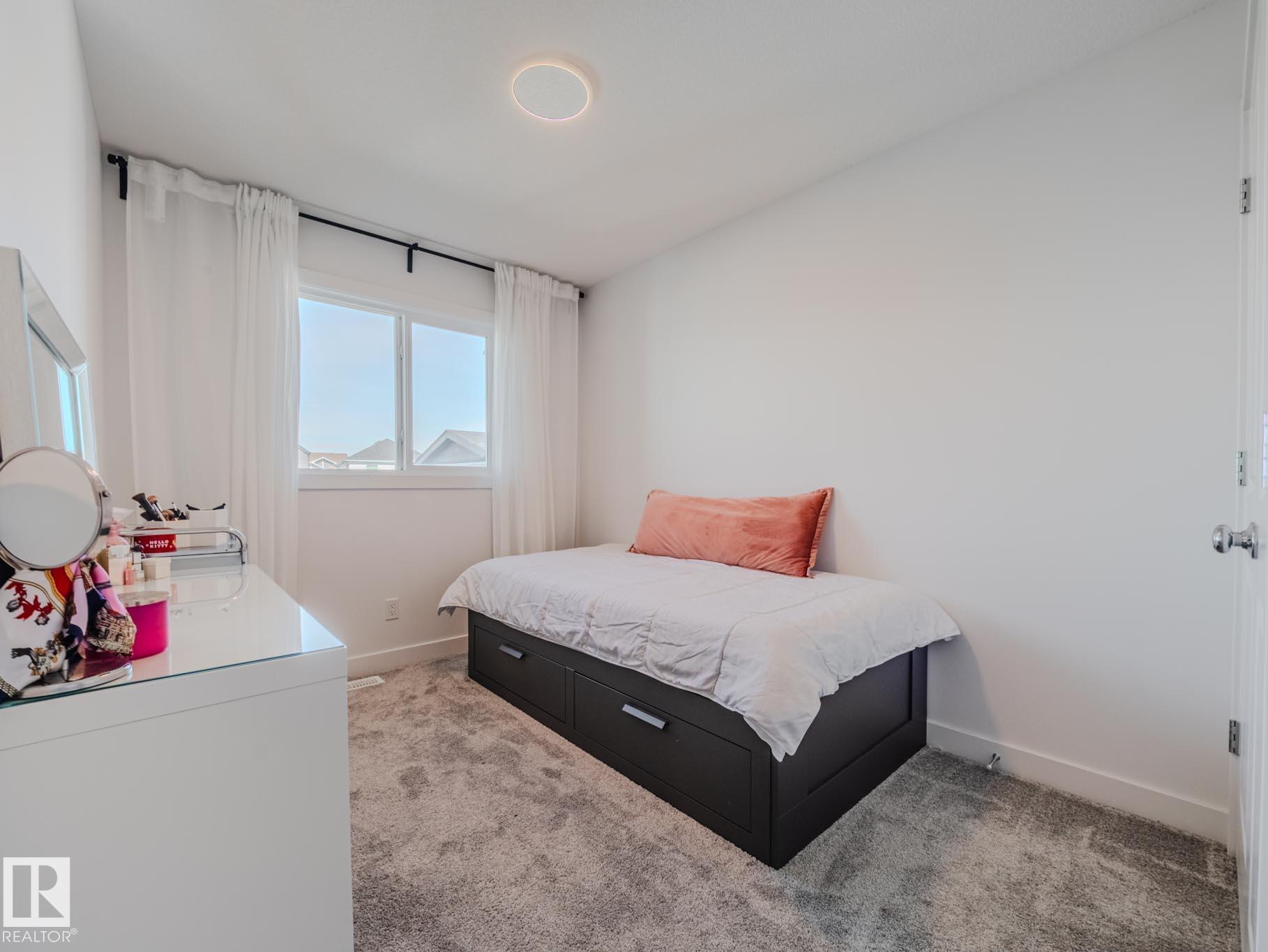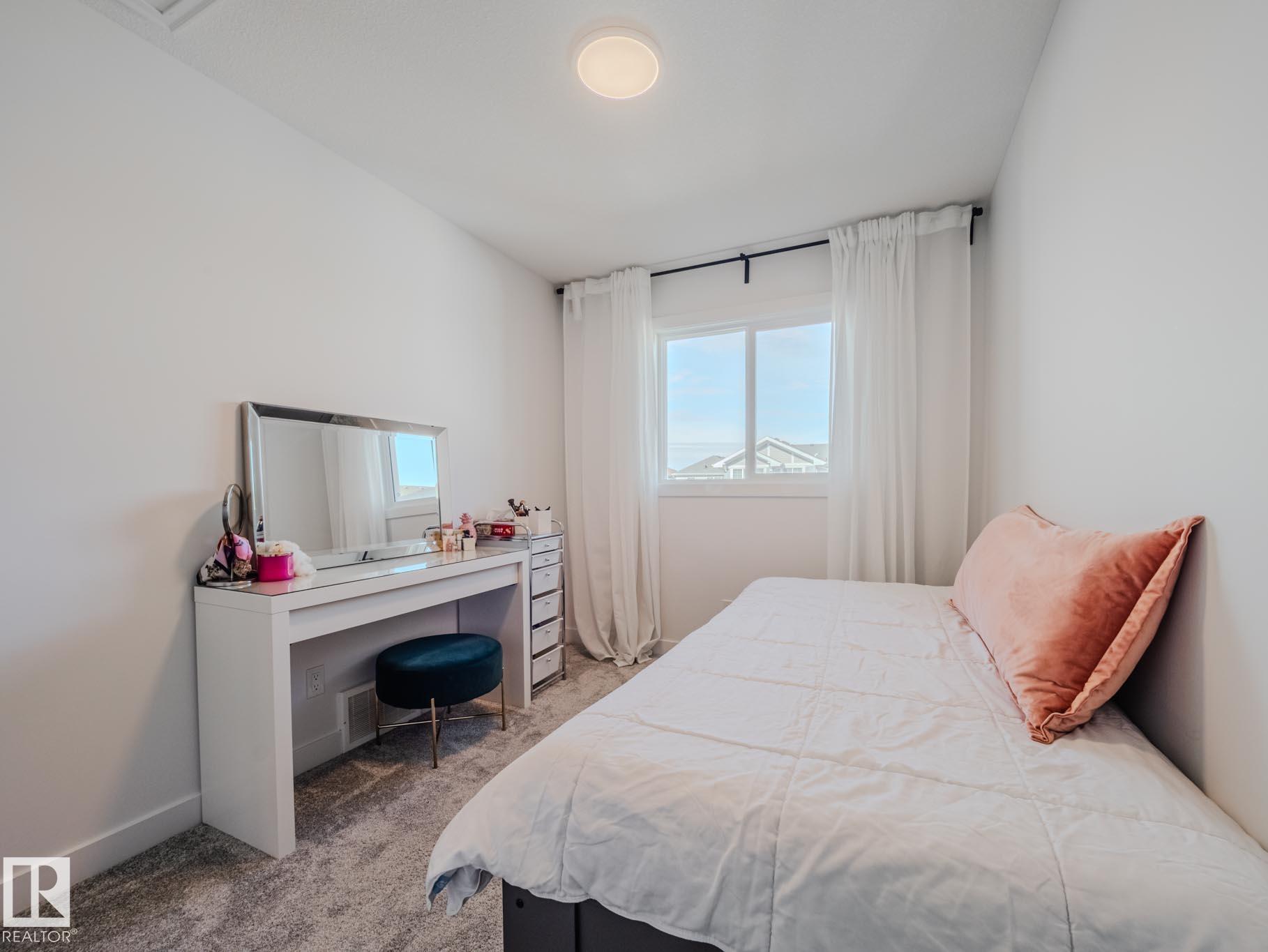 WOW! Step into this beautifully designed 3-bedroom, 2.5-bath home offering a bright and open-concept layout perfect for modern living. The spacious living room flows effortlessly into a generous dining area and a sleek, upgraded kitchen featuring a large island with breakfast bar, elegant quartz countertops, quality cabinetry, and a convenient pantry. A practical boot room and a stylish half bath complete the main floor. Upstairs, the primary suite offers a relaxing retreat with a walk-in closet and private ensuite. Two additional well-sized bedrooms, a full 4-piece bath, and an upstairs laundry room provide comfort and convenience for the whole family. An easily separated basement entrance offers fantastic potential for future development or a legal suite! Fenced yard, double garage and extra parking! Located in the vibrant Chappelle community, you'll enjoy access to scenic wetlands, vast green spaces, walking trails, schools, a community center, and more. Welcome Home!