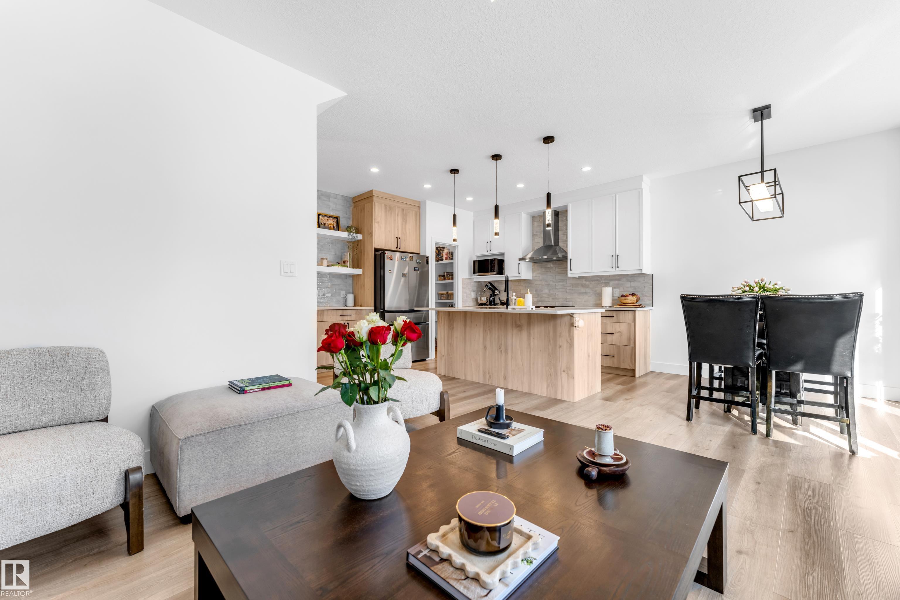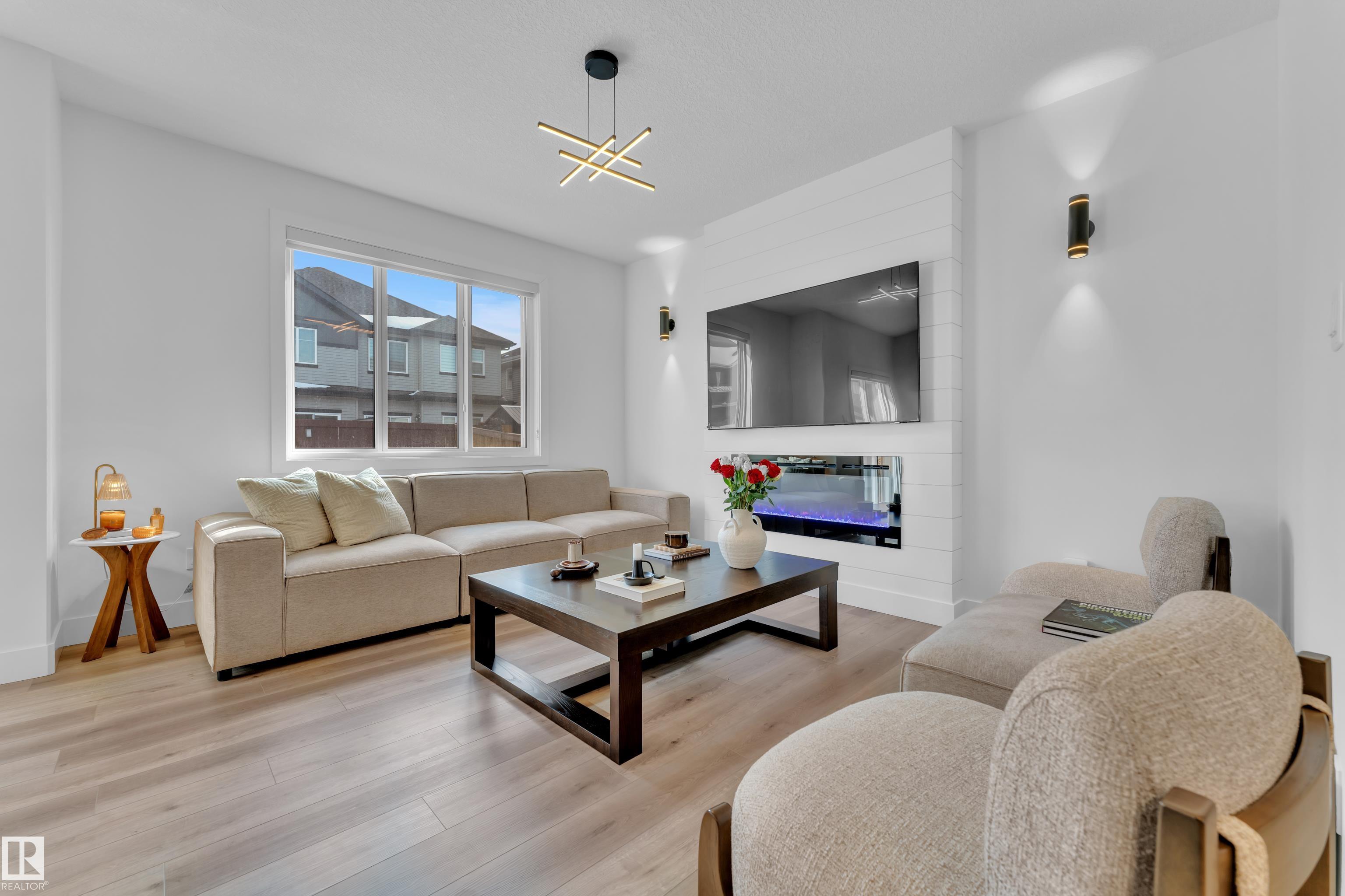 Welcome to this beautiful half duplex in the desirable community of Harvest Ridge featuring LANDSCAPING DONE and a SIDE ENTRY. This well-designed home offers a double attached garage, 3 BEDROOMS, and 2.5 BATHROOMS, along with a spacious BONUS ROOM and convenient SECOND-FLOOR LAUNDRY. The main level boasts 9 FT CEILINGS, a stylish living area with a FEATURE WALL AND FIREPLACE, and a functional kitchen with QUARTZ COUNTERTOPS and a WALK-IN PANTRY. TRIPLE-PANE WINDOWS enhance comfort and energy efficiency throughout the home. Additional highlights include A/C, TANKLESS HOT WATER SYSTEM, HRV SYSTEM, GAS LINE, MDF CLOSET ORGANIZERS, a LAUNDRY SINK, and PARTIAL FENCING?making this a move-in ready home that blends style, comfort, and functionality.