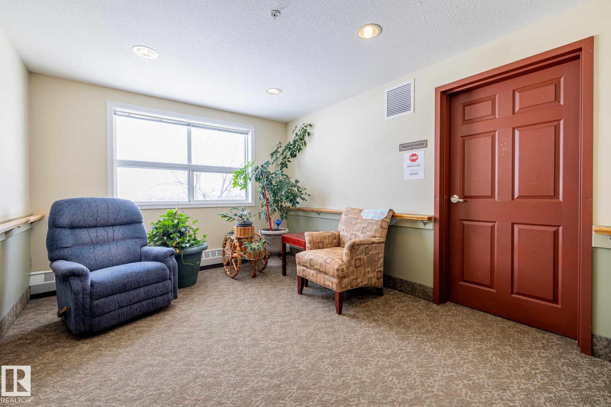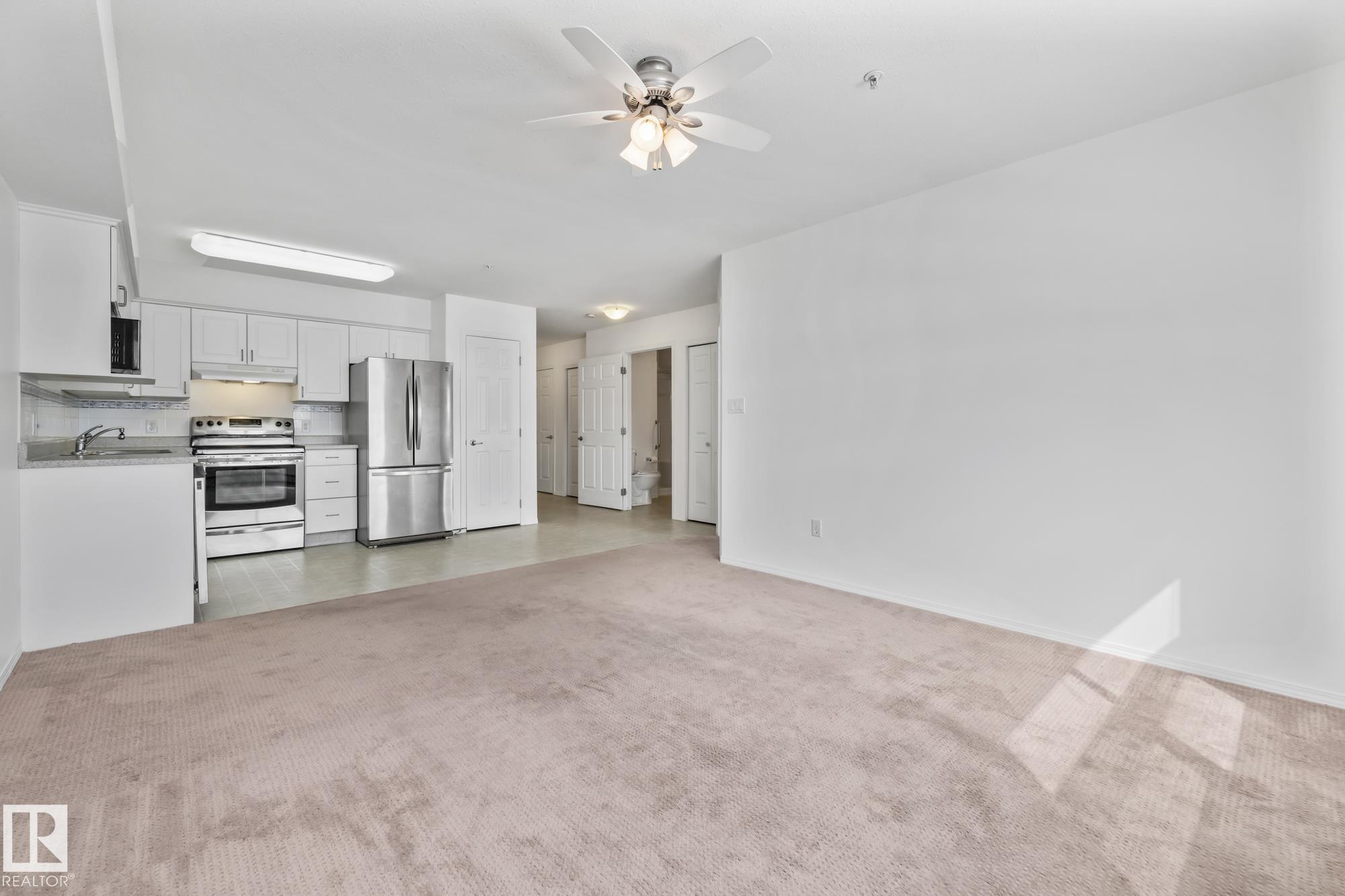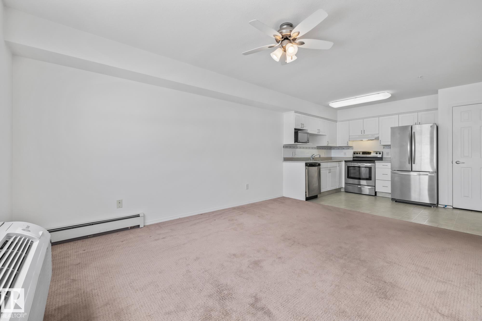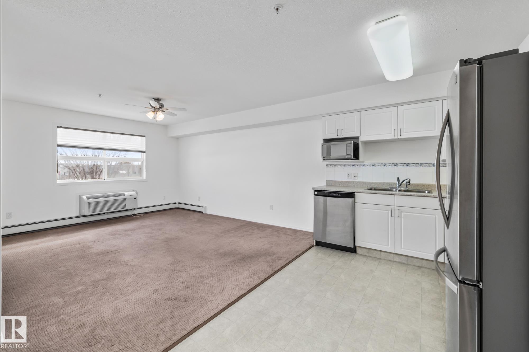 Welcome Home to The Gardens in South Fort! This bright southeast-facing 1 bedroom + den condo is filled with natural light and offers a spacious, functional layout. Featuring a generous primary bedroom, versatile den, in-suite storage and a large 3-piece bathroom, this unit is designed for comfortable living. The kitchen comes equipped with stainless steel appliances, plenty of counter space and ample cabinetry, perfect for easy meal prep. Relax in the cozy living room with carpeted flooring and enjoy year-round comfort with a brand new A/C unit. The building boasts exceptional amenities including a games room, fitness centre, library and lounge with fireplace, activity room, kitchen and dining area and even a chapel! Step outside to the beautifully landscaped grounds offering a pond and water feature. Convenient laundry facilities are located on each floor and optional meal plans add flexibility to your lifestyle. Comfort, community and convenience all in one!
