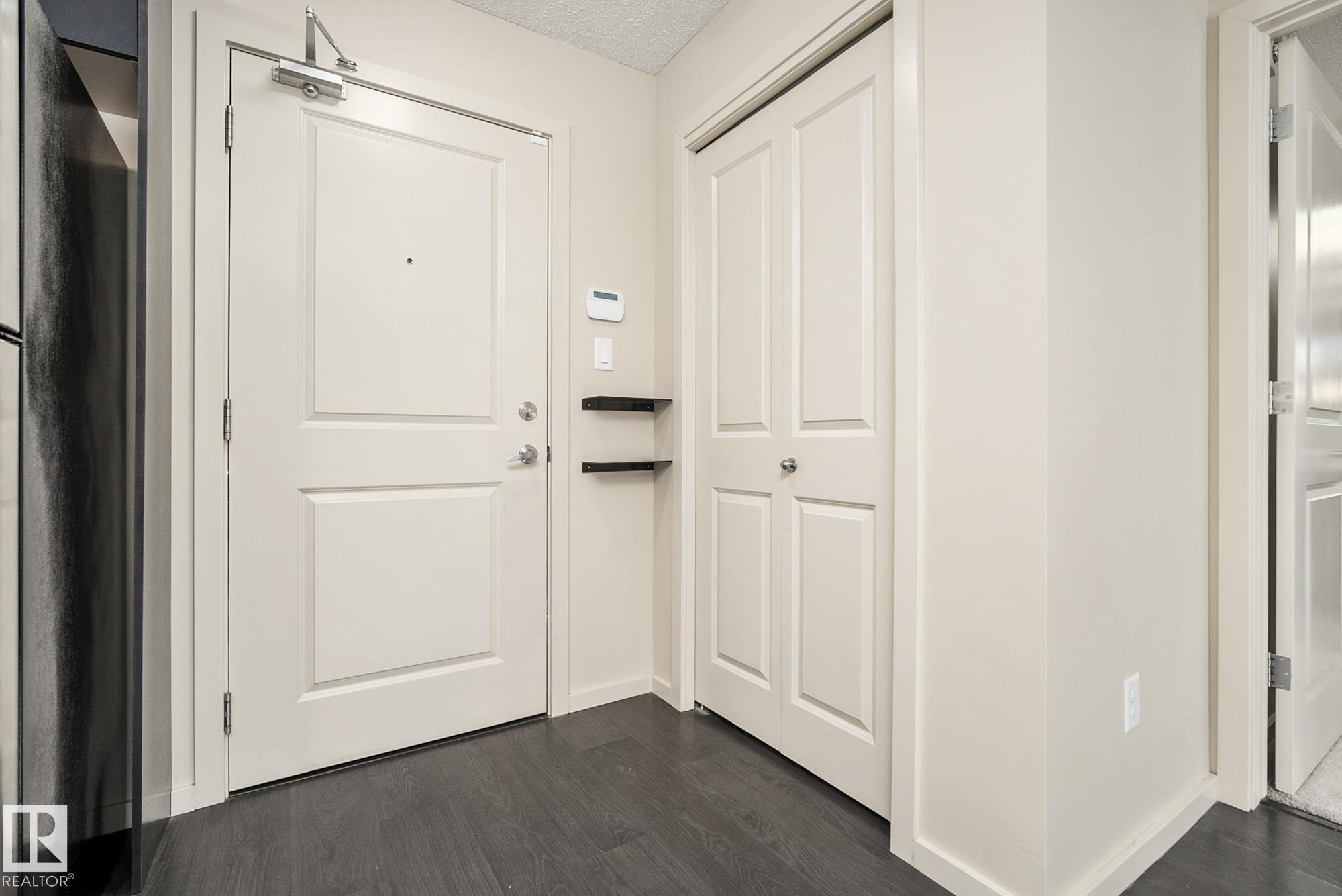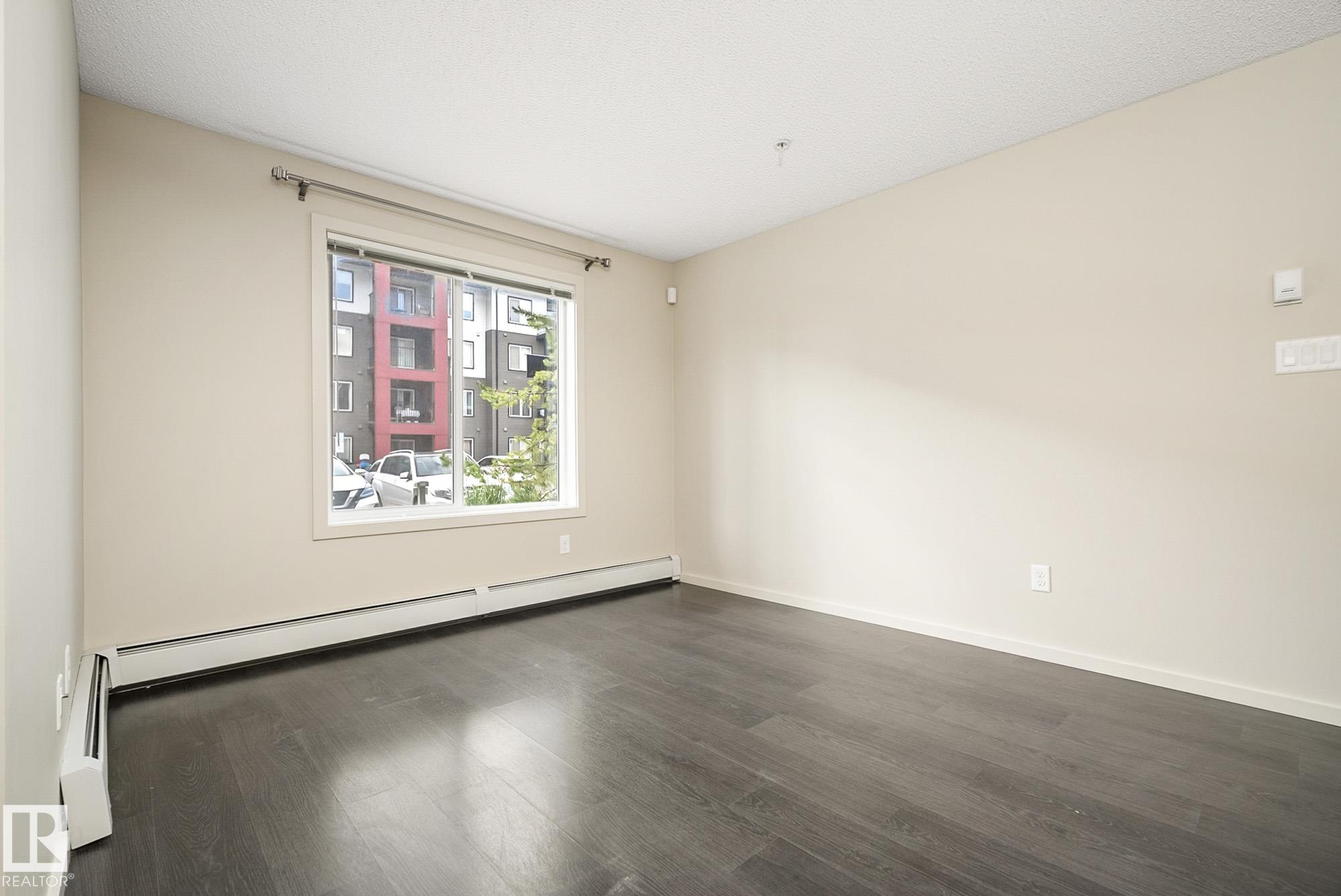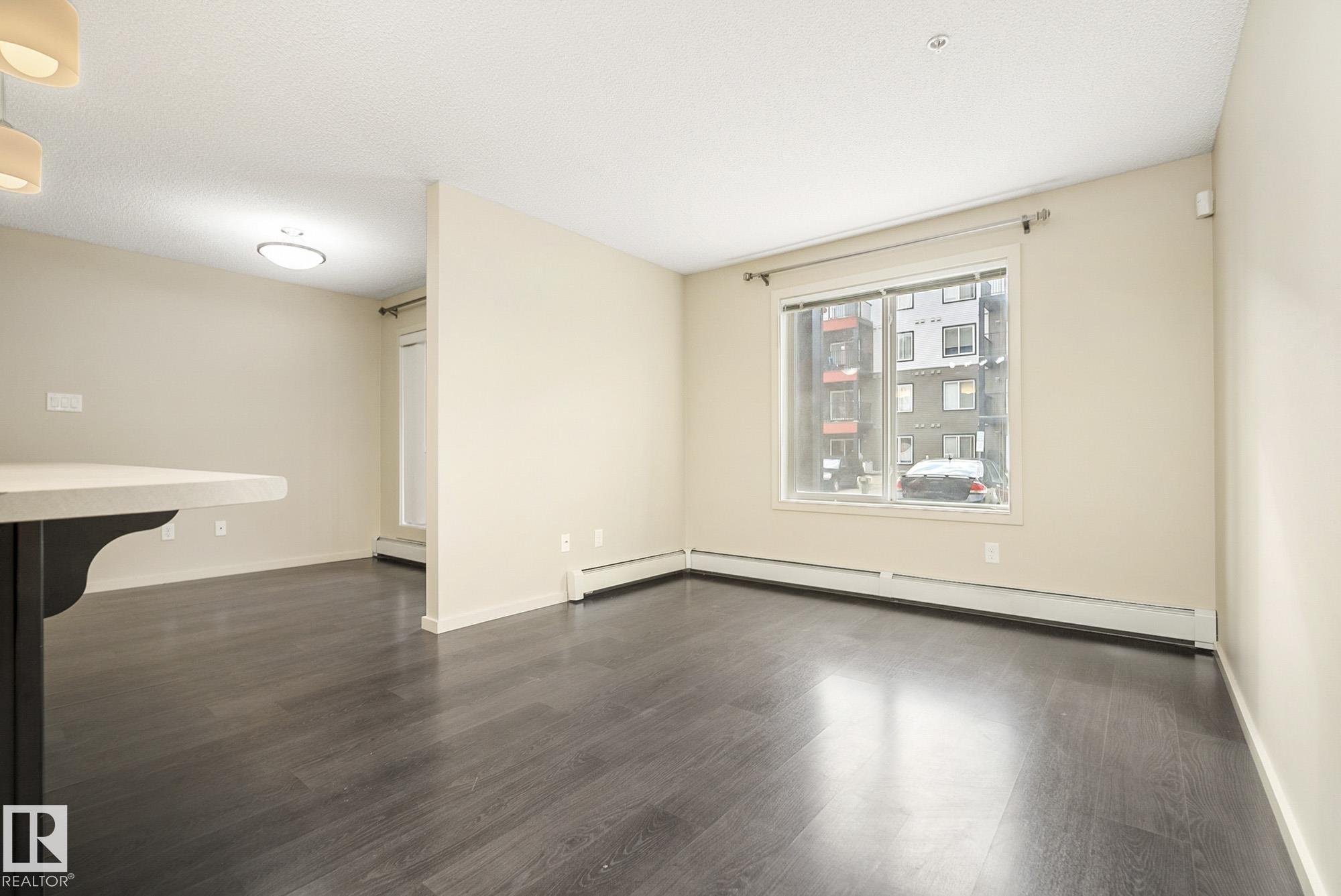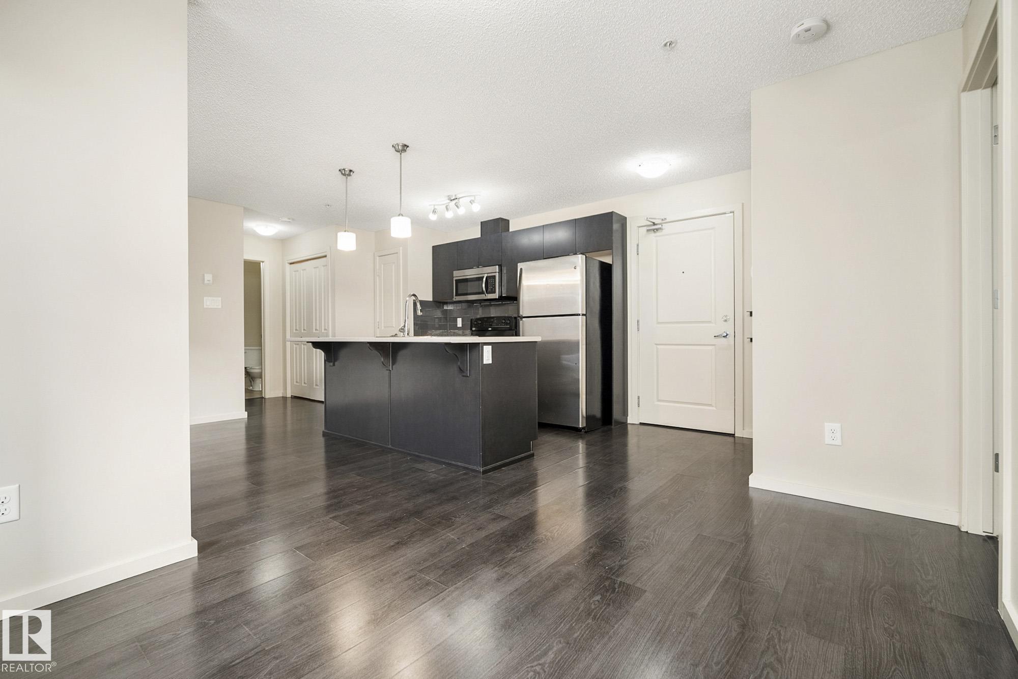 Welcome to Elements at Windermere! This trendy main-floor condo offers nearly 800 sq. ft. of well-designed living space with 2 bedrooms and 2 full bathrooms. The primary bedroom features a 4-piece ensuite and a spacious closet, while the smart layout ensures privacy between bedrooms along with separate living and dining areas. The gourmet kitchen includes stainless steel appliances, a gloss-tile backsplash, and ample cabinet and counter space. Laminate flooring flows throughout the main living areas, and the bright living room is filled with natural light from the walk-out patio door. Additional features include in-suite laundry, low-E argon gas-filled windows, pressurized and air-conditioned corridors, and a video camera entrance system. This unit comes with two titled parking stalls (one underground and one surface). Ideally located in the heart of Windermere, just steps from schools, shopping, recreation centre, walking paths, and ponds. A great opportunity for first-time buyers or investors!