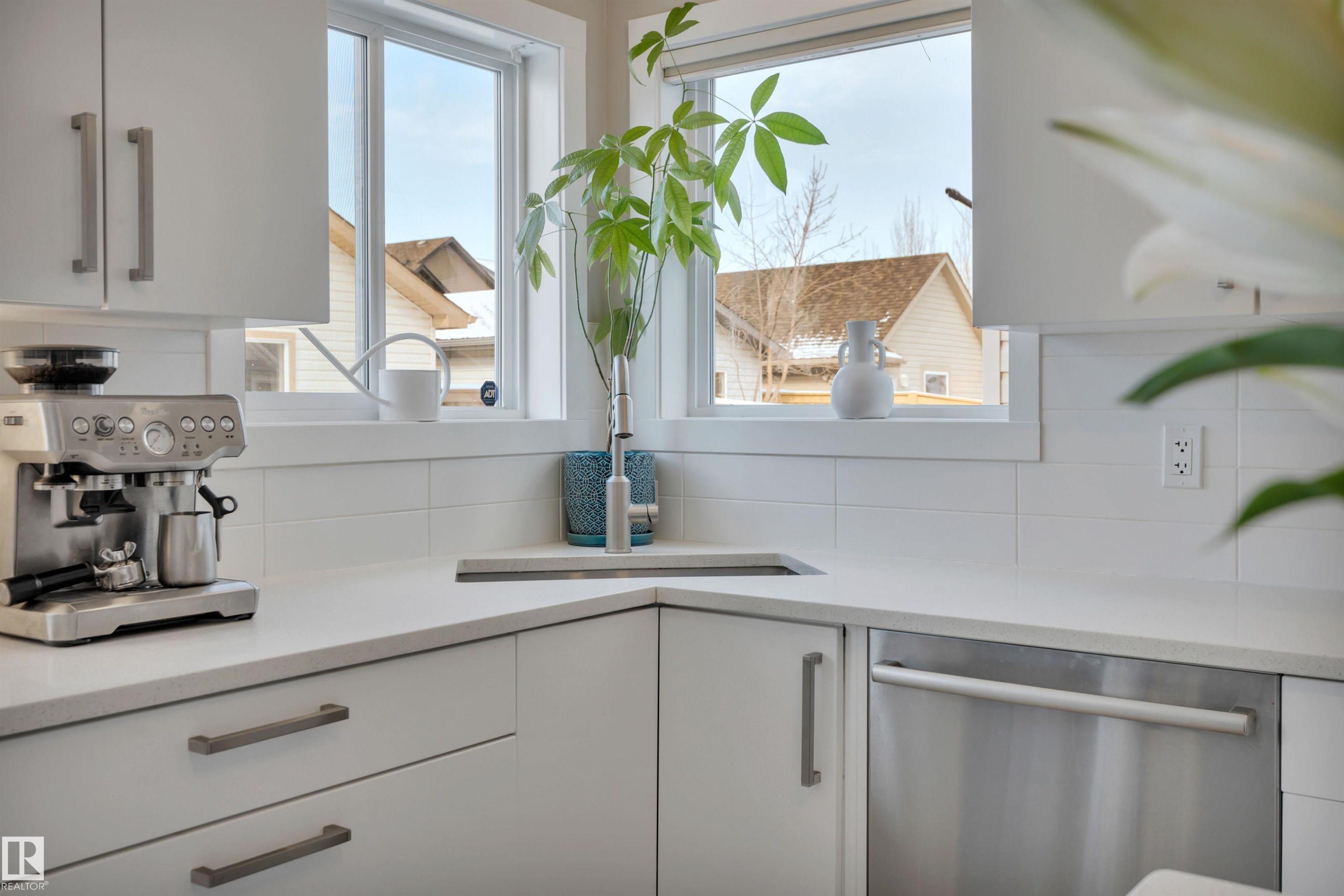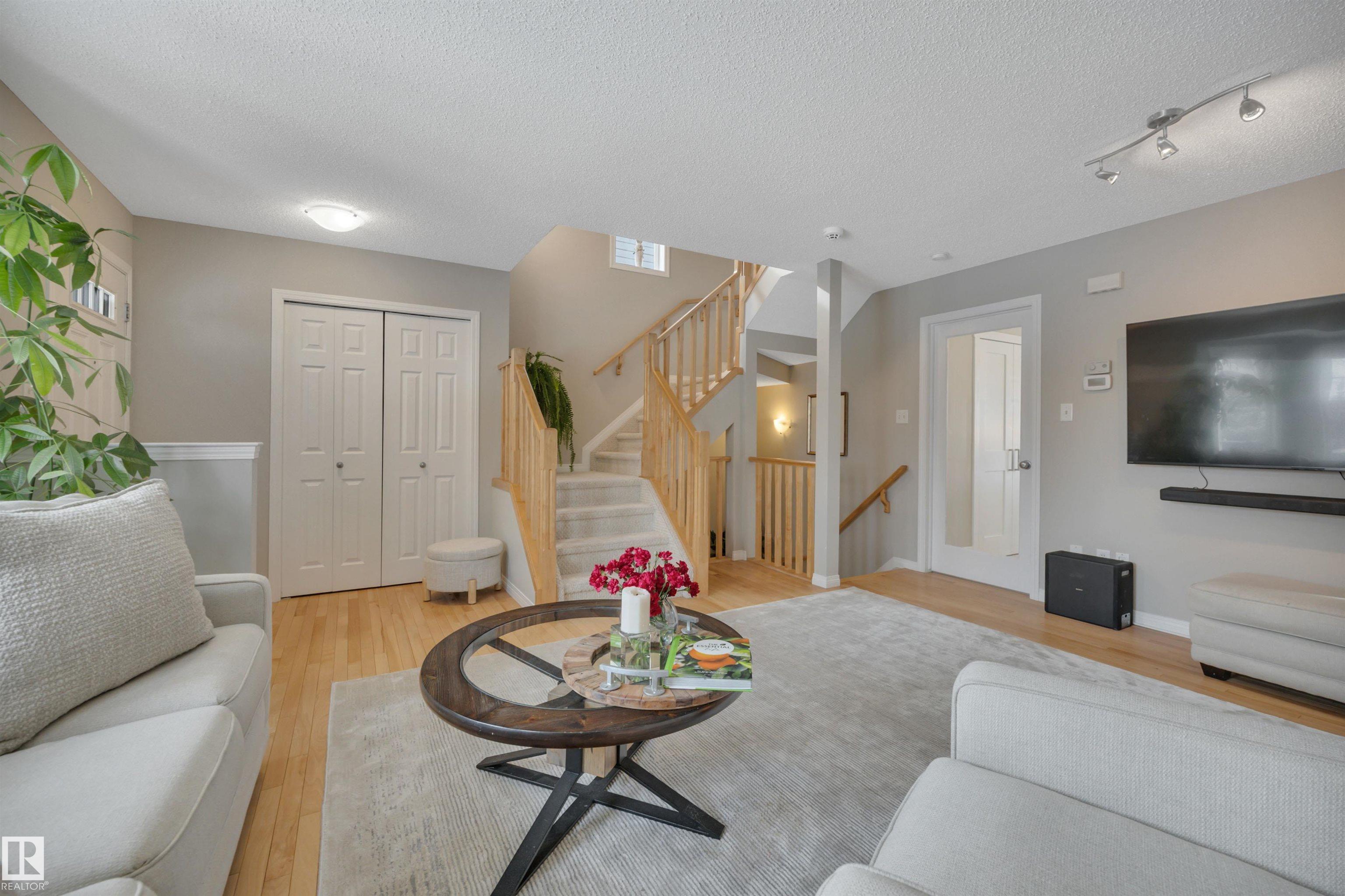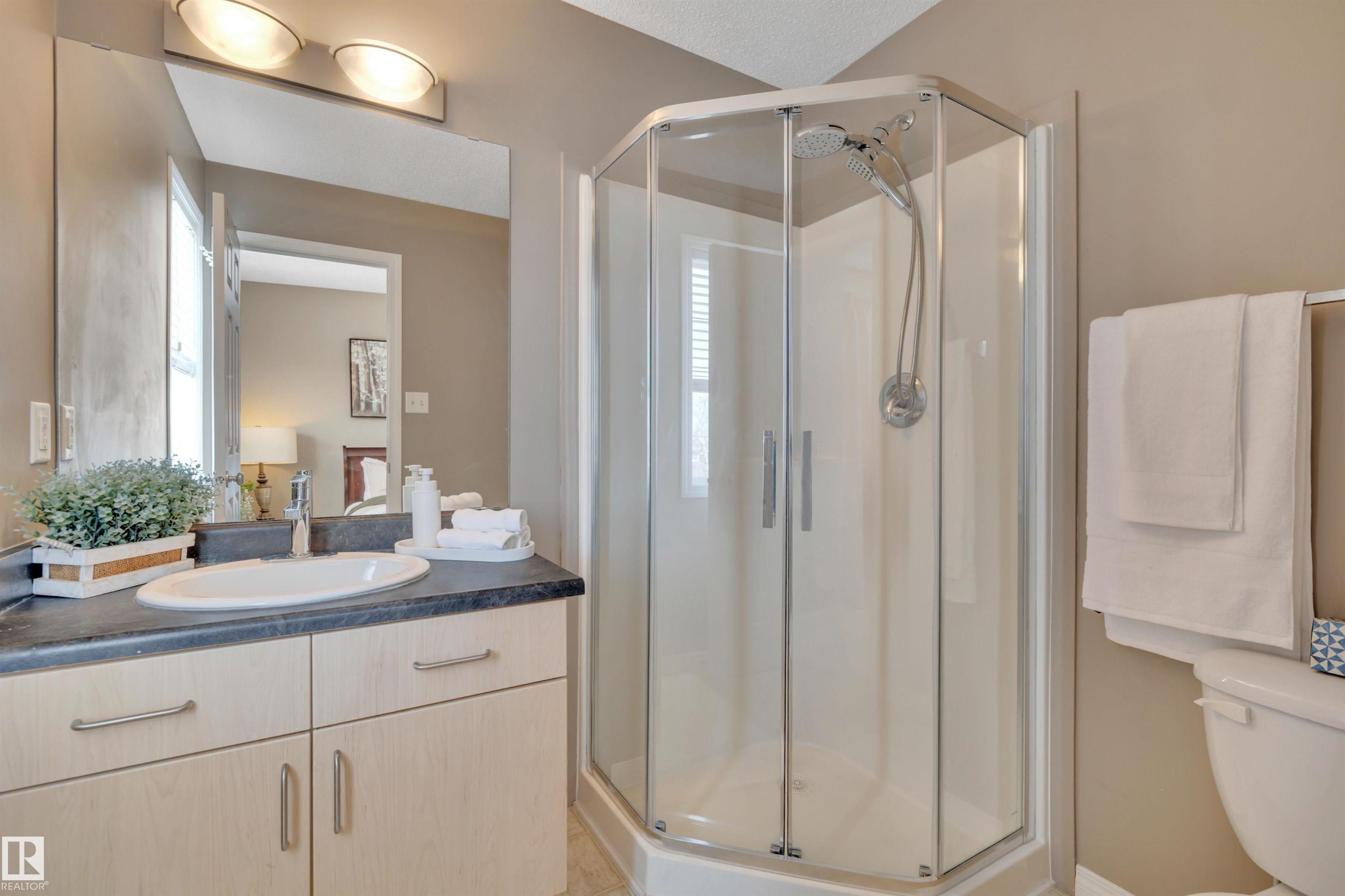 Welcome home to the family-friendly community of South Terwillegar! Perfectly situated across from a scenic park and pond with walking paths, this home offers both comfort and convenience. The spacious living room features rich hardwood floors, while the fully renovated kitchen boasts new cabinetry, gleaming white quartz countertops, ceramic tile flooring, a large pantry, and newer stainless steel appliances, including a Bosch dishwasher! Upstairs, you?ll find a generous primary bedroom with tranquil pond views and a 3-piece ensuite, along with two additional well-sized bedrooms and a full bath. The sunny south-facing backyard includes a large deck?ideal for entertaining. An oversized insulated double garage (23.5' x 21.6') easily fits two trucks. Additional features include central A/C and close proximity to schools, amenities, a splash park, rec centre, and the Henday. A perfect place to call home !!