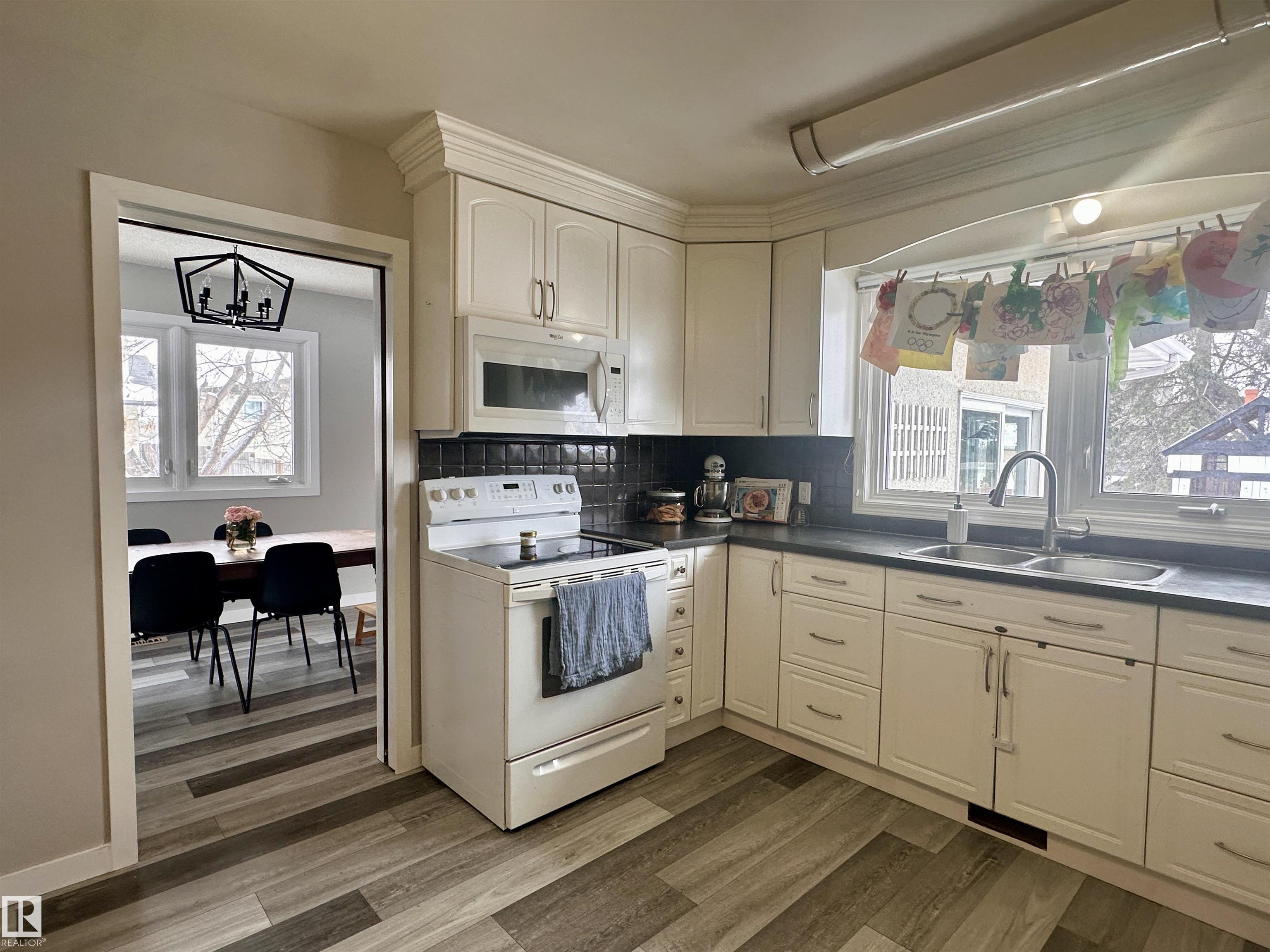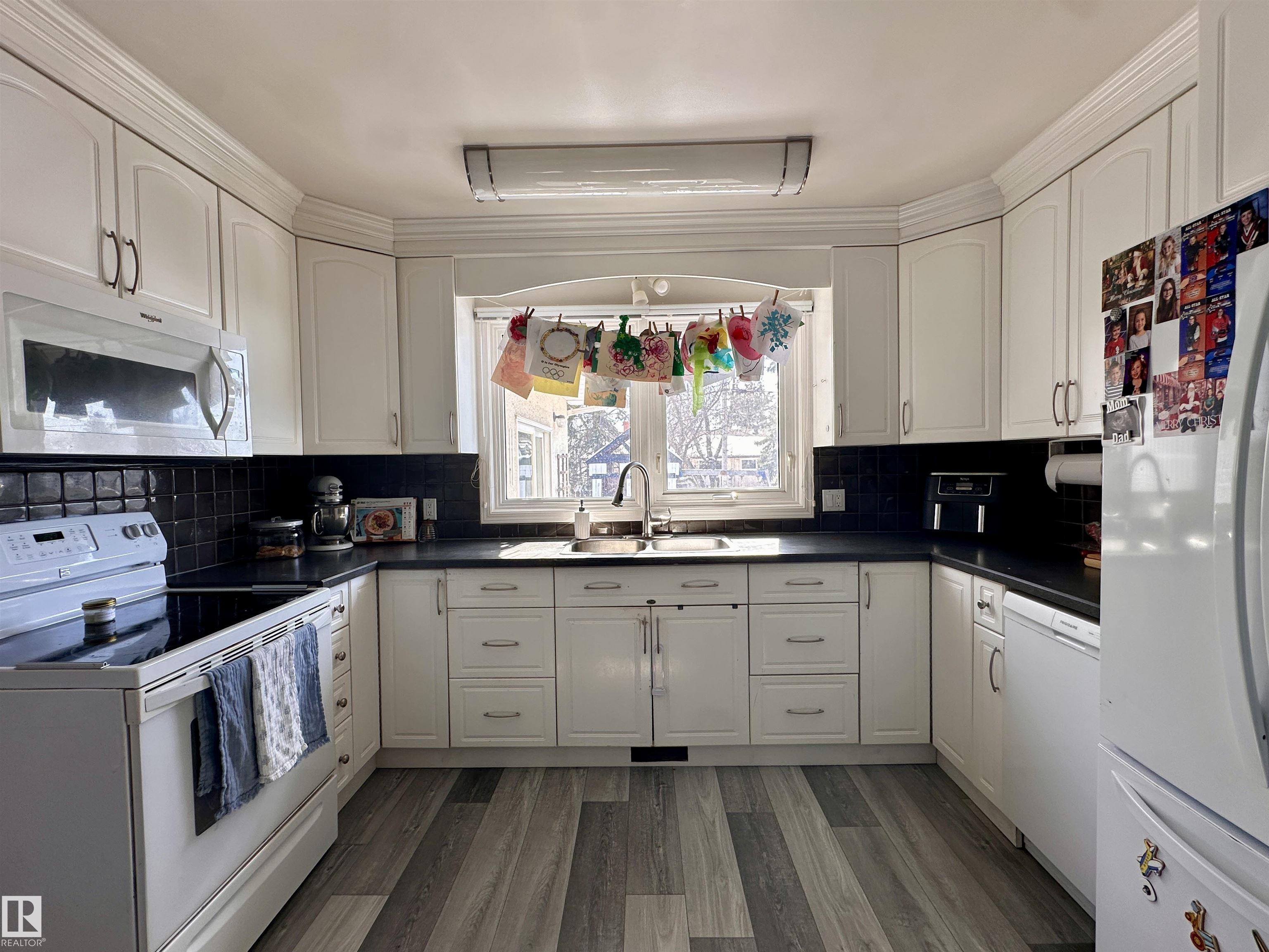 Impressive, expansive and homey. Welcome to this beautiful home offering over 2,475 sqft of total living space, plus 523+ sqft of storage, a covered carport, and a double garage? all set on an oversized, fully usable lot. Enter into a welcoming, functional foyer with hallway-complete with hooks for everyday life. As well as a handy 3 piece bath, a tucked cutesy laundry closet, and an expansive first family room with huge sliding doors, out to the covered patio. Up to the well-appointed U-shaped kitchen offering abundant cabinetry, ample counter space, and a large window over the sink providing natural light and backyard views. Brand new flooring and paint throughout the home. Spacious dining room, connecting seamlessly into the grand living room, as well as the South-facing 4-season sunroom. Up-upstairs, you will find a comfortable bedroom area with a shared 5 piece bath; the primary bedroom being incredibly generous in size. Lovely yard featuring tree cover and a playhouse that stays. A true family home.