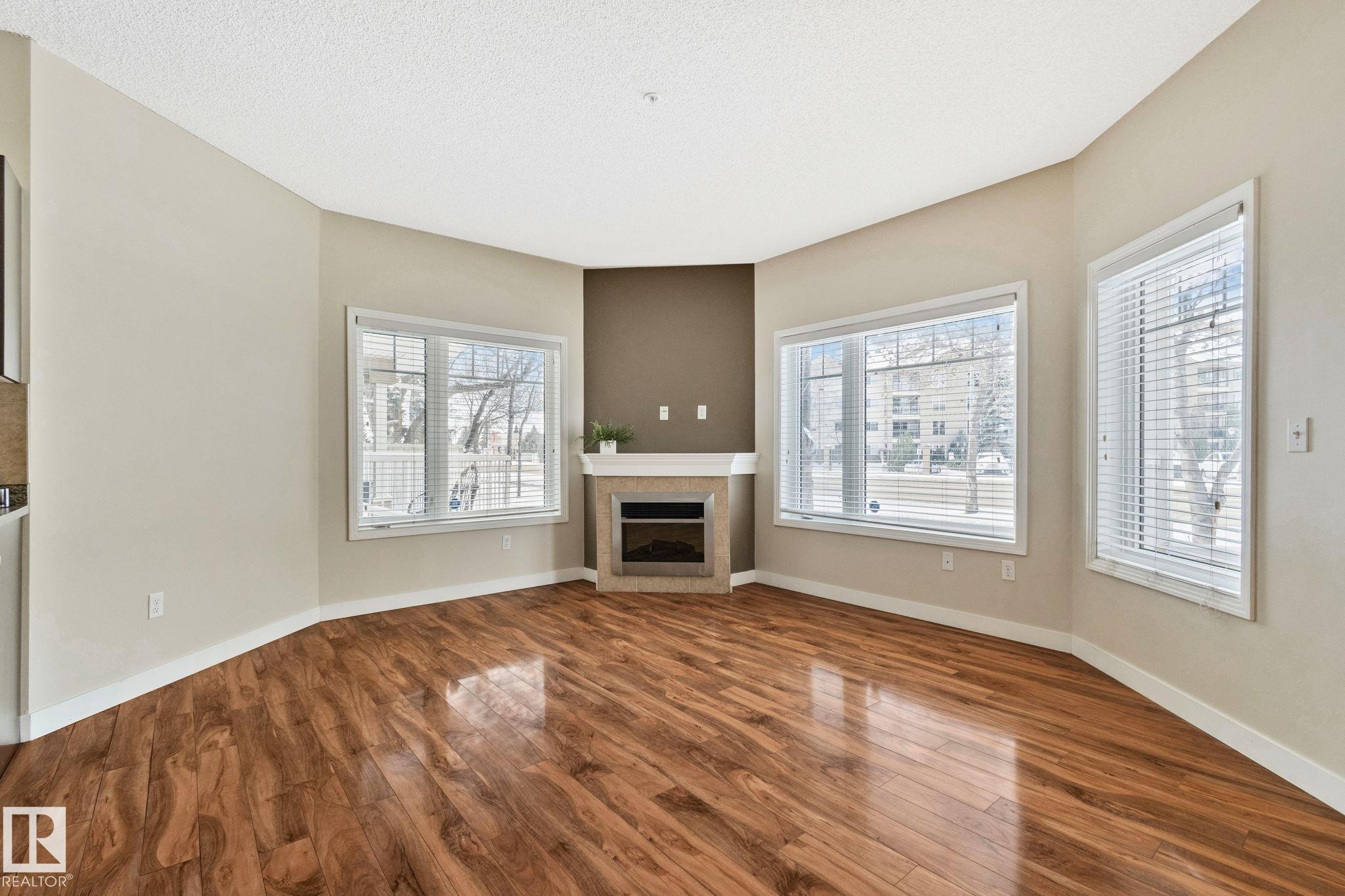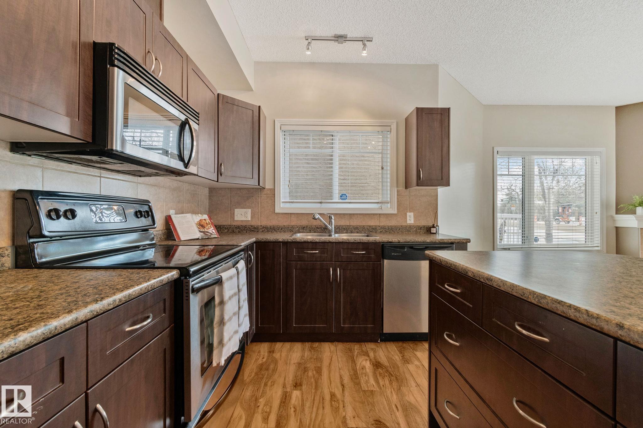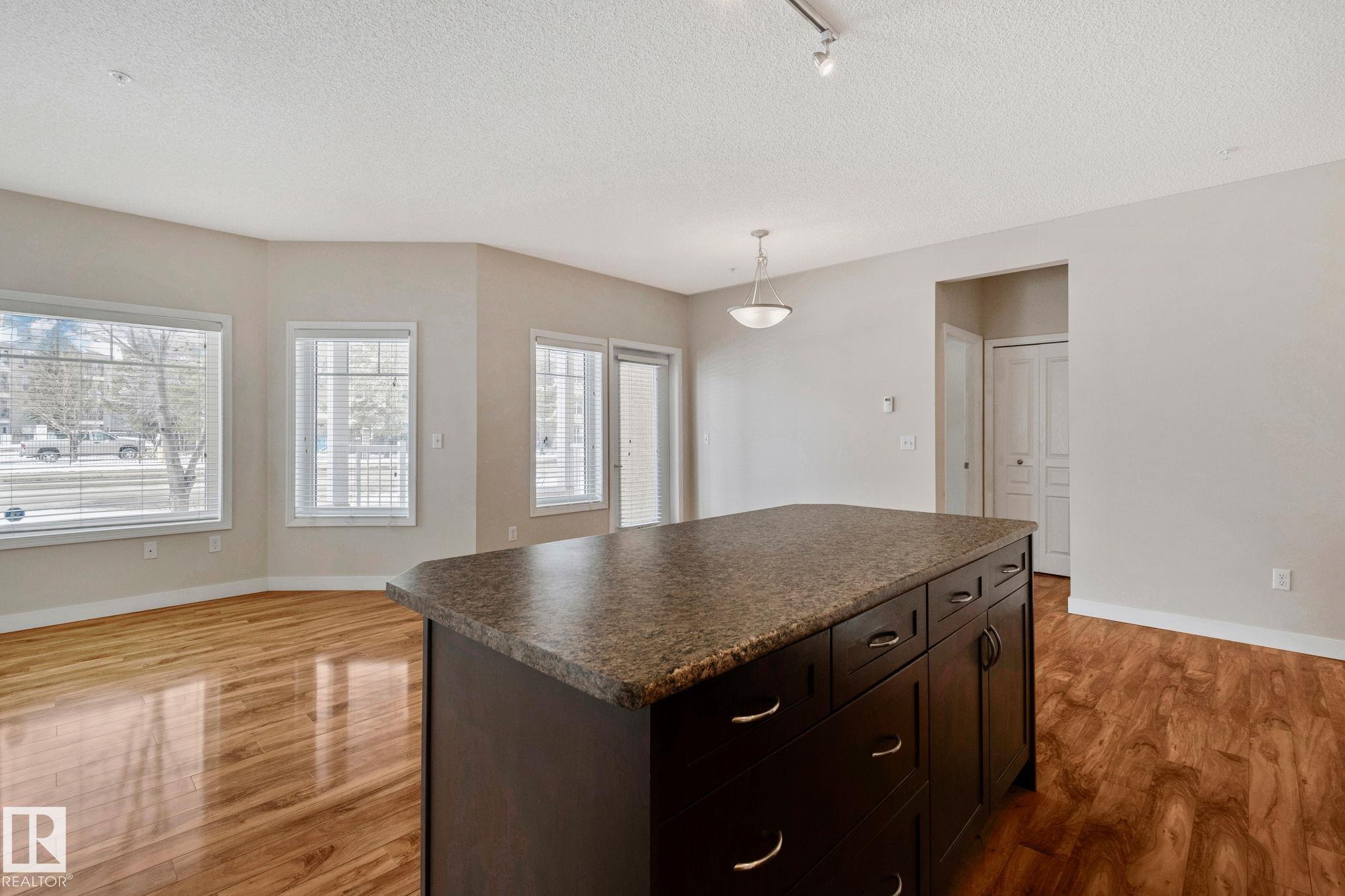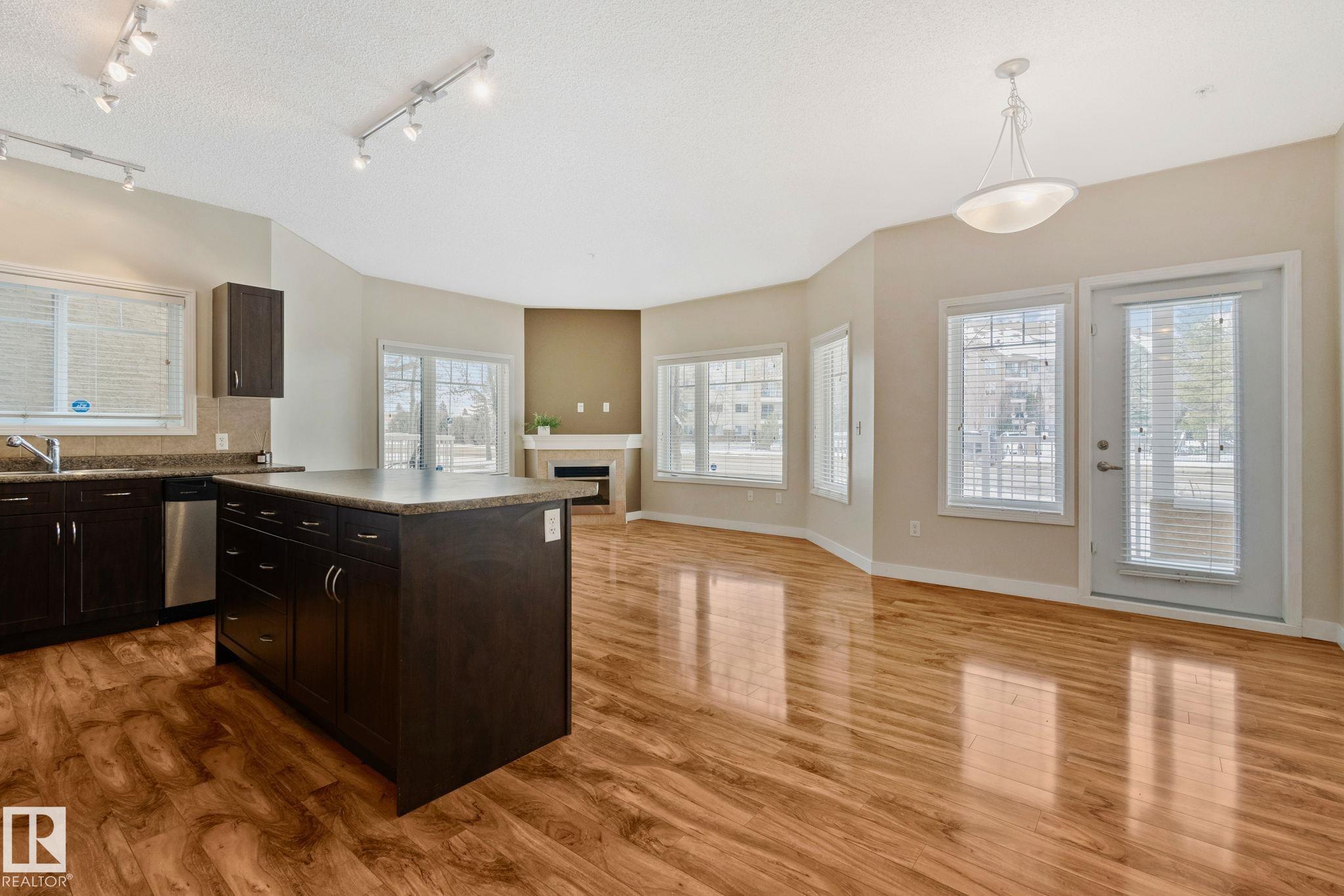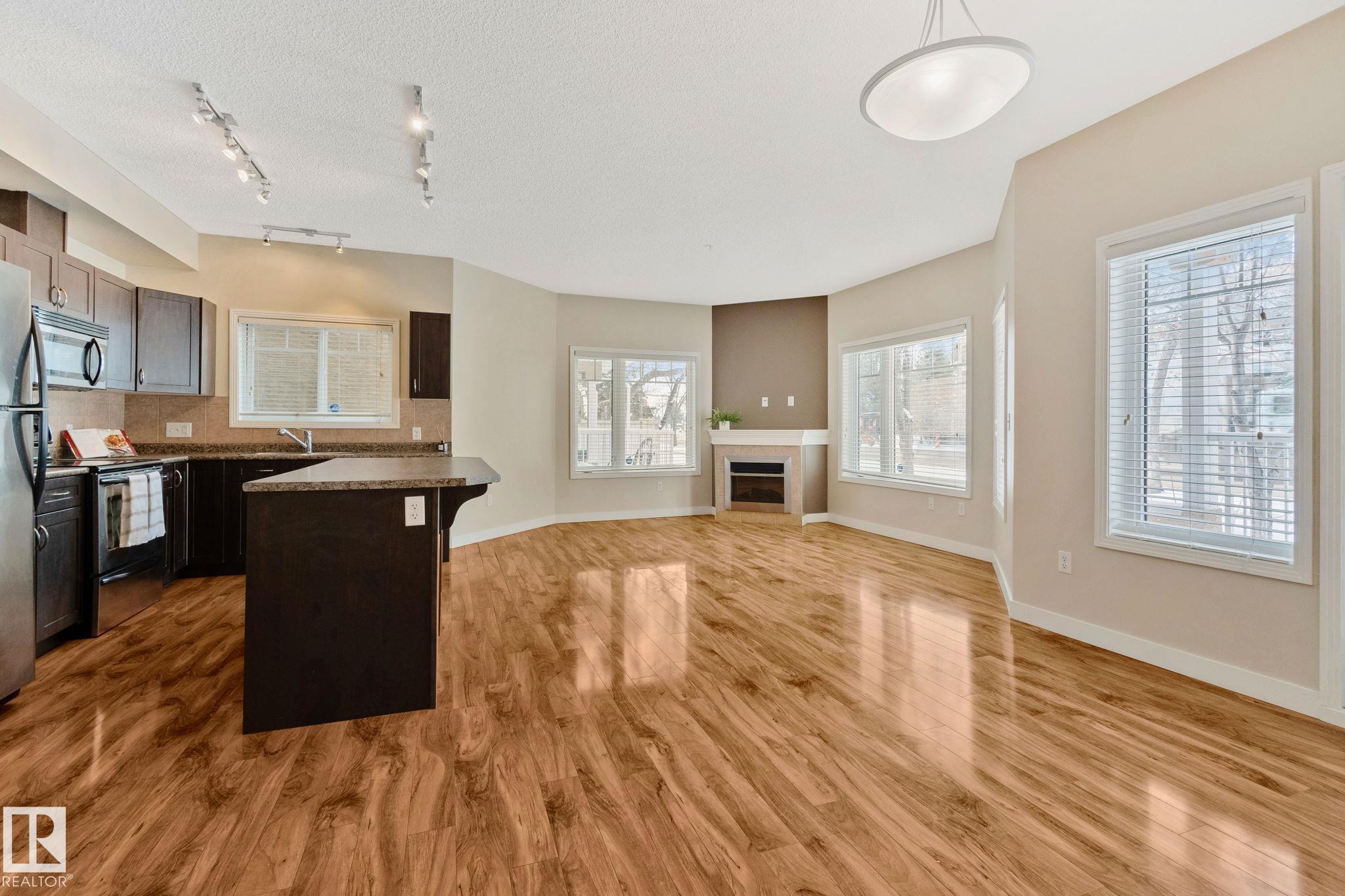 Welcome to this main floor condo at Californian Meadowlark, freshly painted with brand new carpet and move in ready with room to add your personal touch. This 2 bedroom plus den, 2 bathroom unit features 9 foot ceilings and an open kitchen and dining layout with stainless steel appliances and a brand new dishwasher. The primary bedroom offers a walk in closet and spacious ensuite, while the second bedroom and den provide flexible space for guests, work, or hobbies. Enjoy laminate flooring, in suite laundry, and a west facing patio with a gas line for BBQ and rough in for AC, perfect for evening light and relaxation. Includes one heated underground stall and storage near the elevator. Building amenities feature a gym, social room, and car wash. Condo fees include heat and water. Ideally located minutes from West Edmonton Mall, Misericordia Hospital, LRT, parks, schools, shopping, and more.