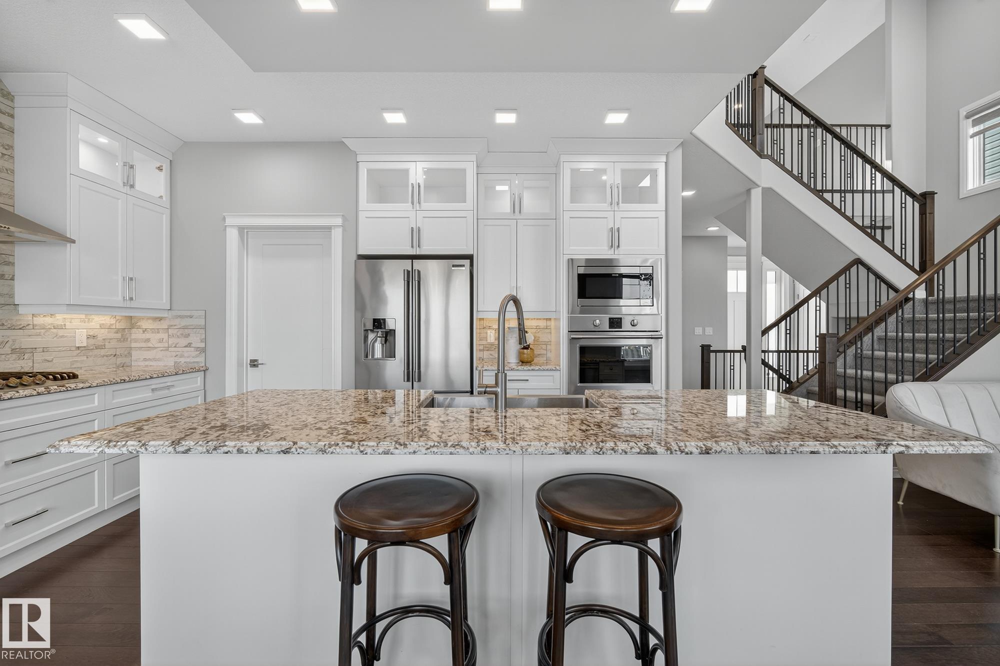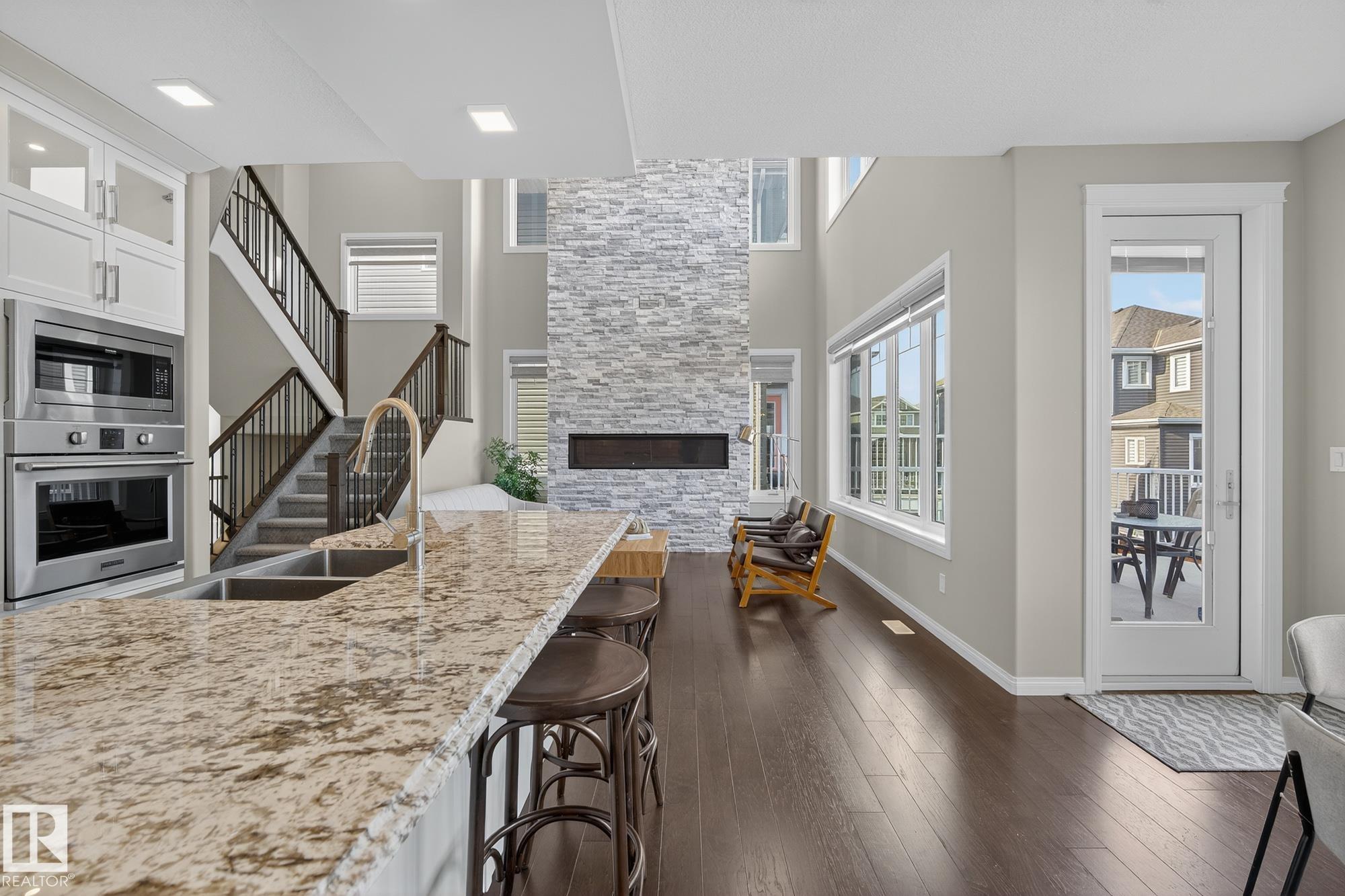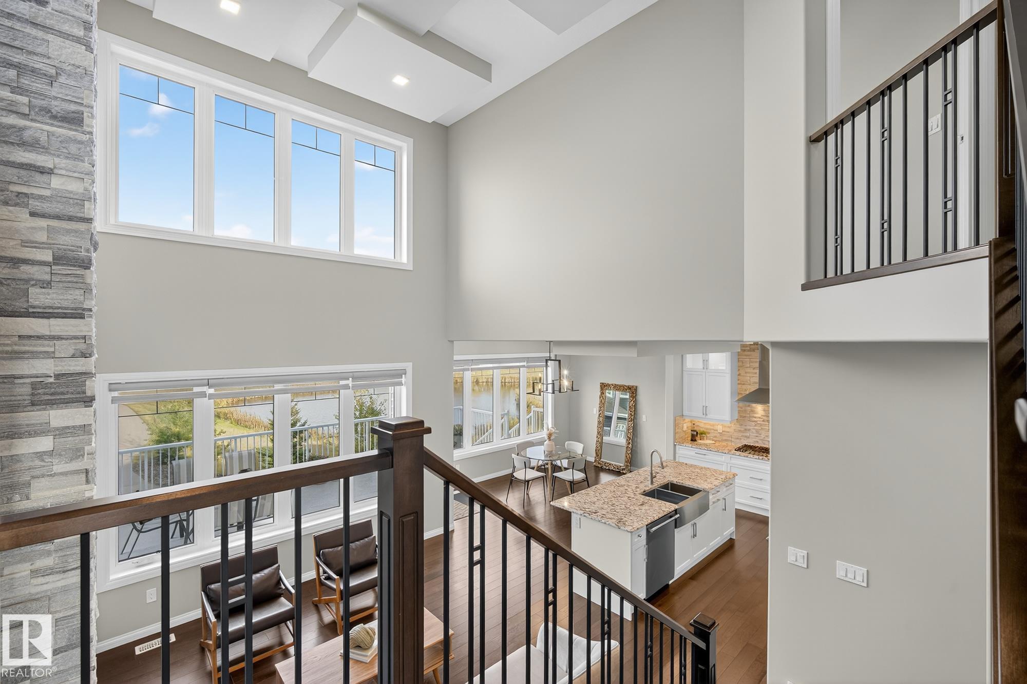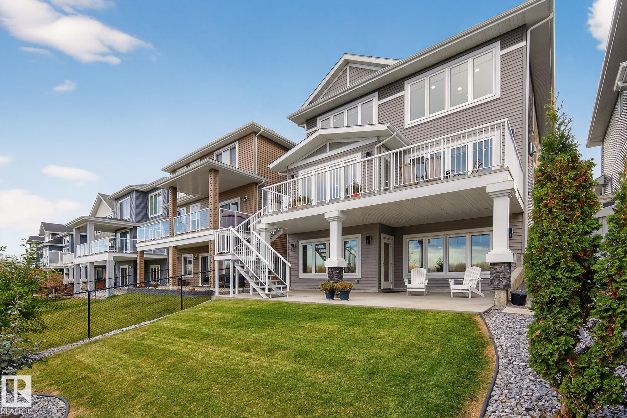 Turnkey and impeccably maintained, this custom-built walkout two-storey offers refined living BACKING DIRECTLY ONTO THE POND in the heart of Starling. Soaring 18-ft ceilings and a dramatic open-to-above great room are framed by a 4-panel window wall, flooding the home with natural light and capturing uninterrupted water views. The kitchen is elegantly appointed with European-style cabinetry, Frigidaire Professional appliances, gas range, and beveled granite countertops. Upstairs features a spacious bonus room, a private primary retreat with walk-in closet connecting to the laundry room, and two additional bedrooms?each with its own ensuite. The fully finished walkout basement is designed for entertaining with a custom wet bar, rec space with stone fireplace, fourth bedroom, and access to a beautifully finished lower patio overlooking the pond. A rare offering combining design, function, and stunning views.